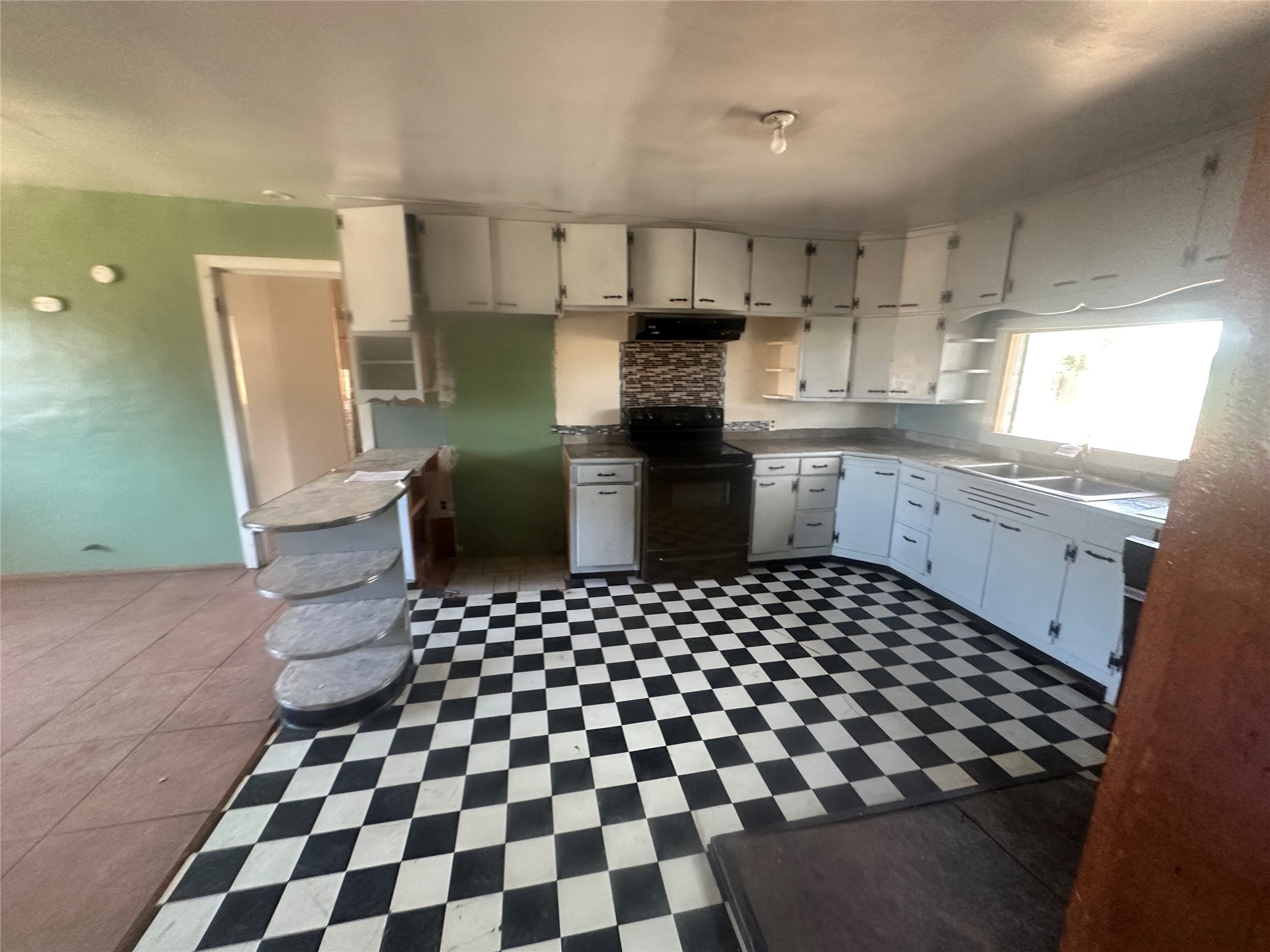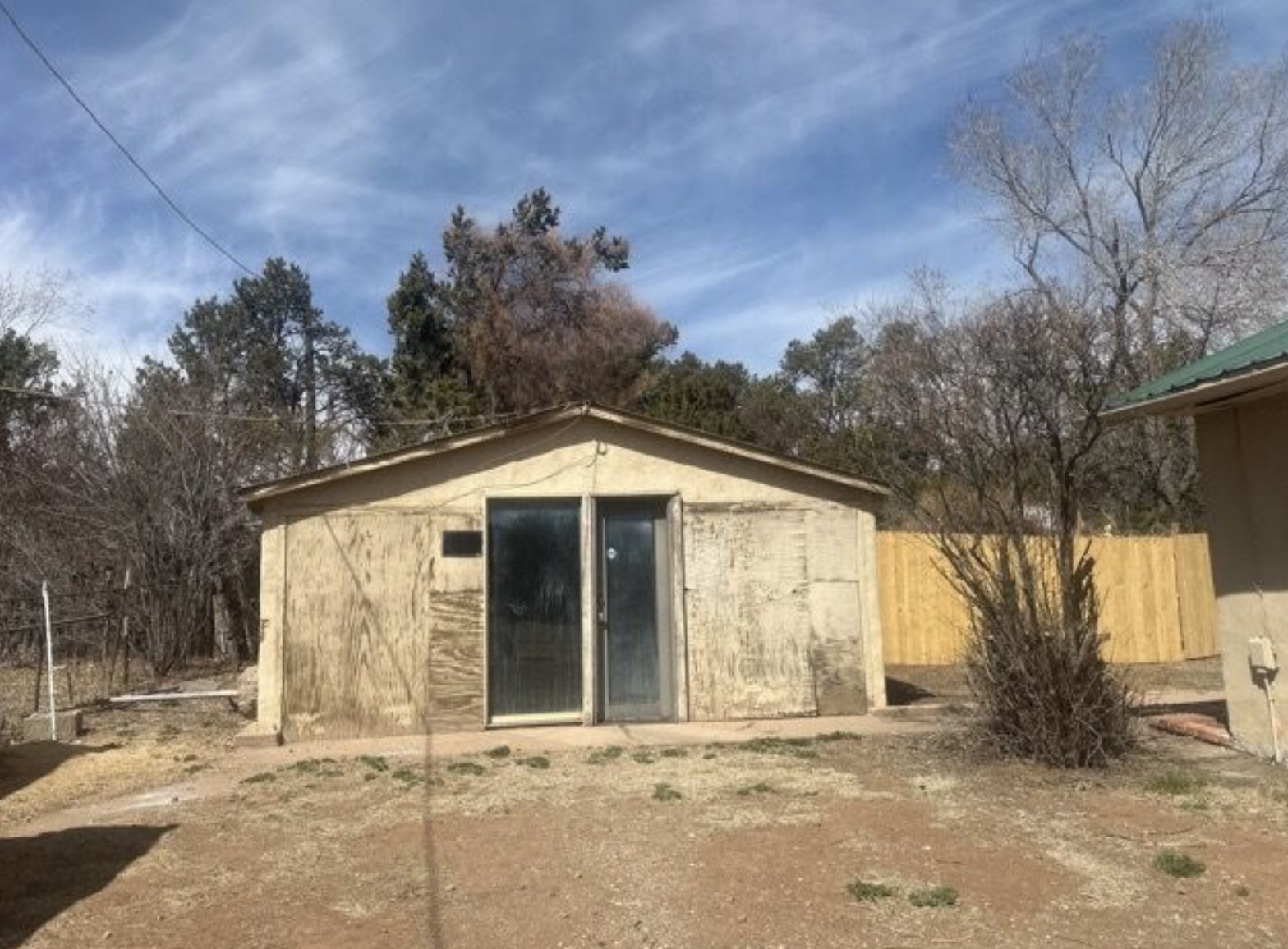 This charming three-bedroom, one-bath home is nestled on approximately 3/4 of an acre, minutes from the river in Pecos. The kitchen exudes retro 1960s charm a classic black-and-white floor, and beautifully crafted cabinets, all flowing into a tiled dining area. Enjoy picturesque mountain views. Three storage sheds and a carport.