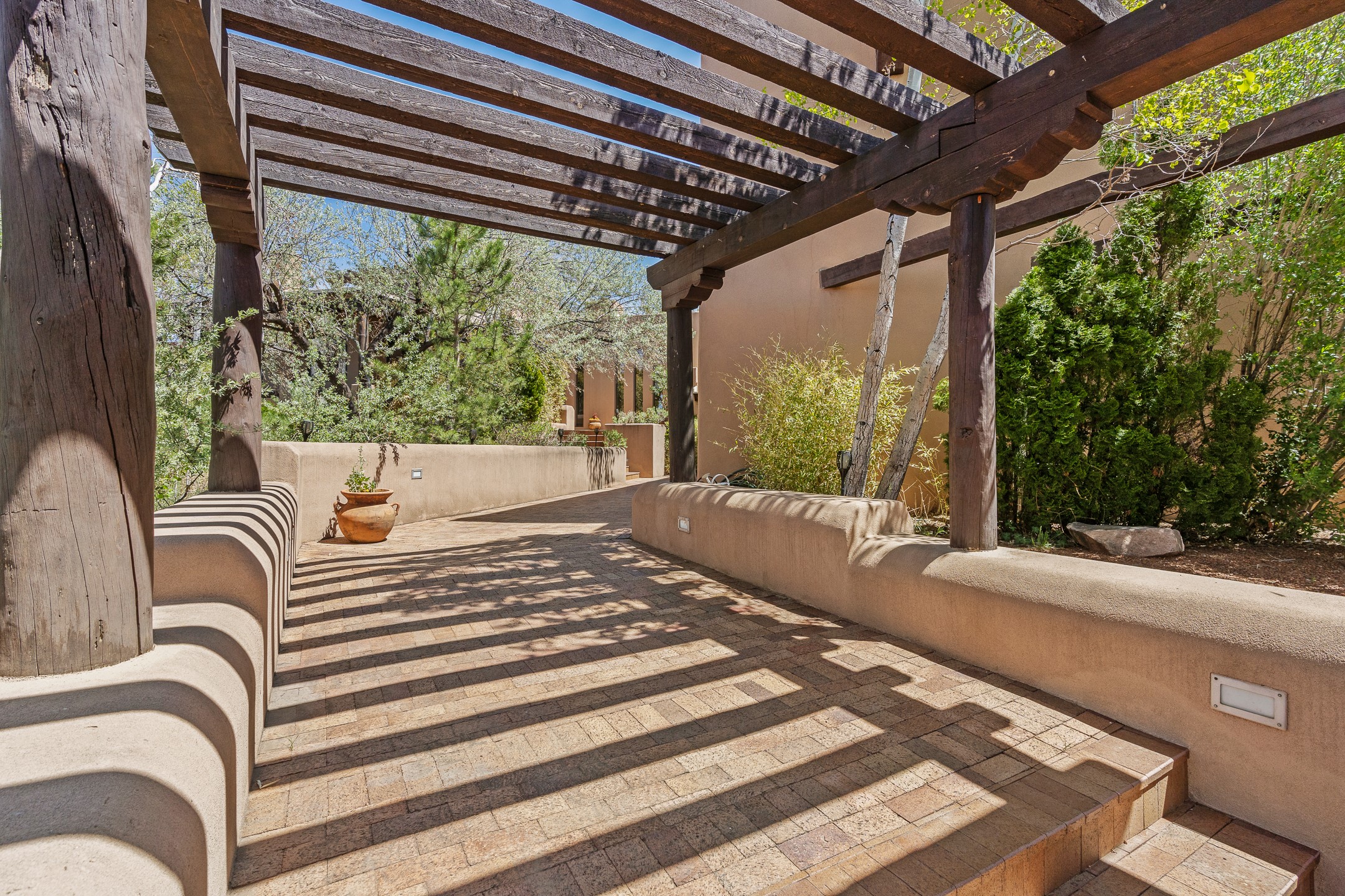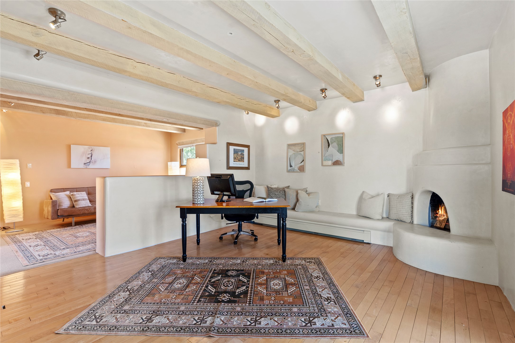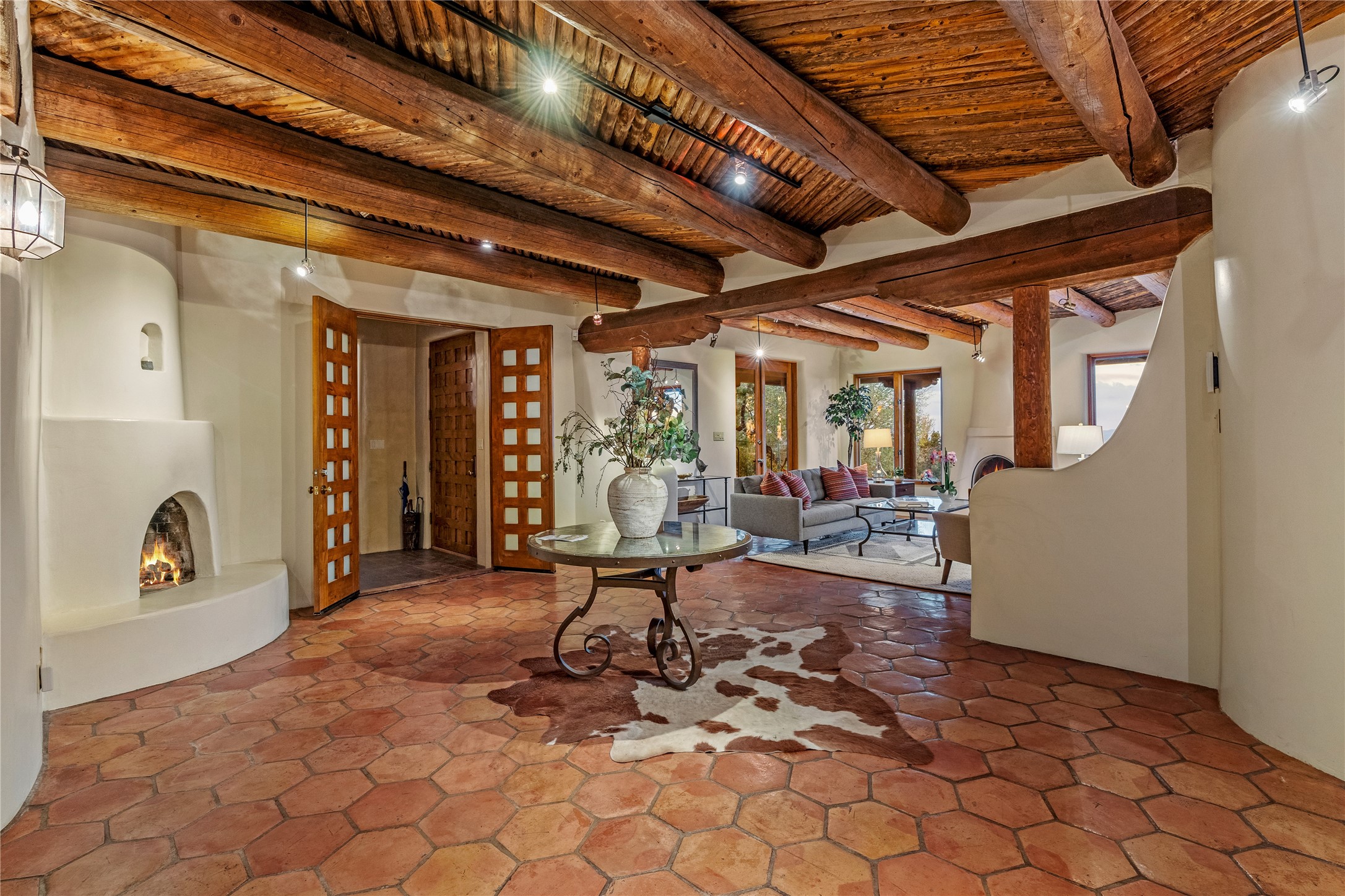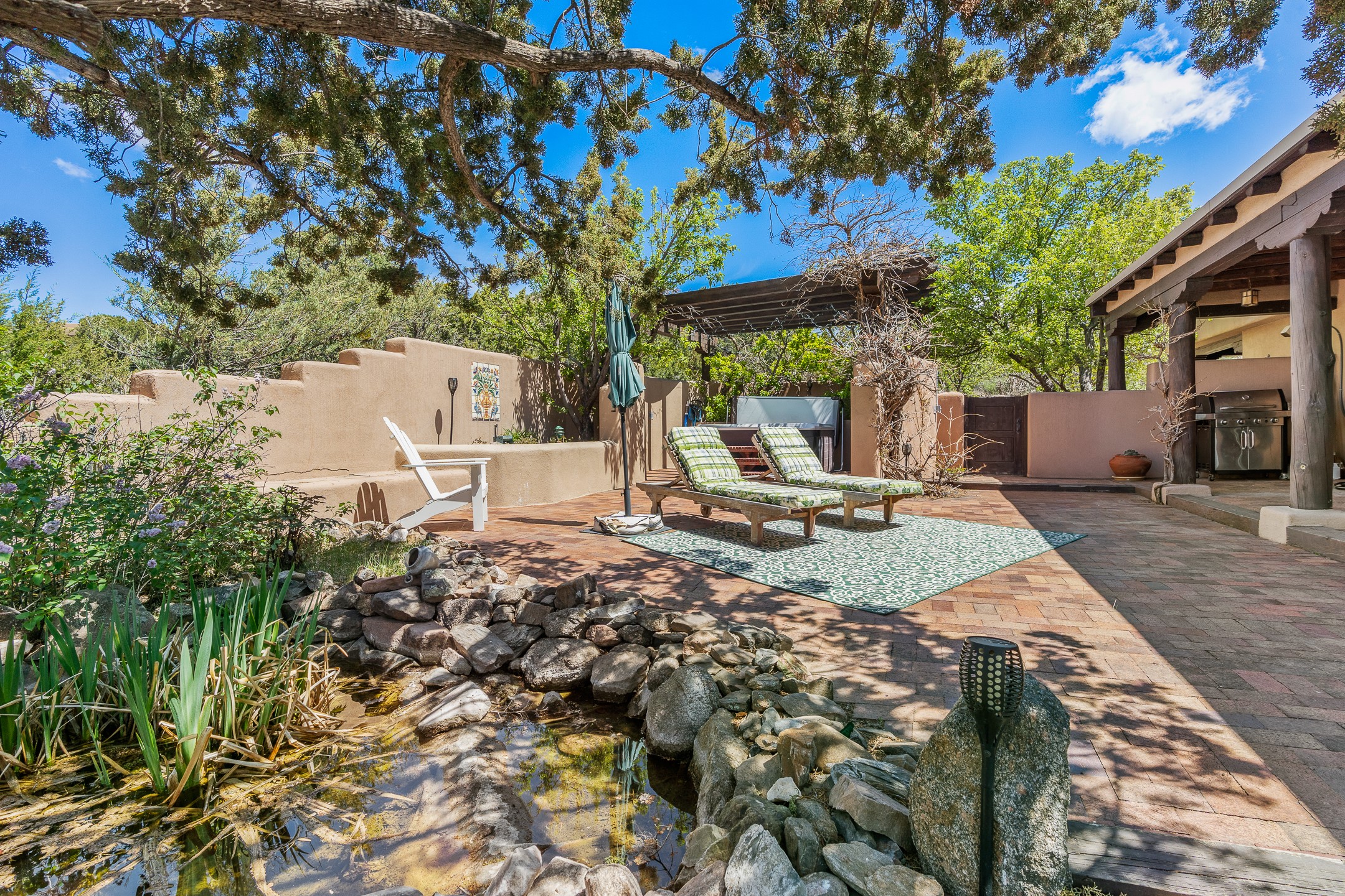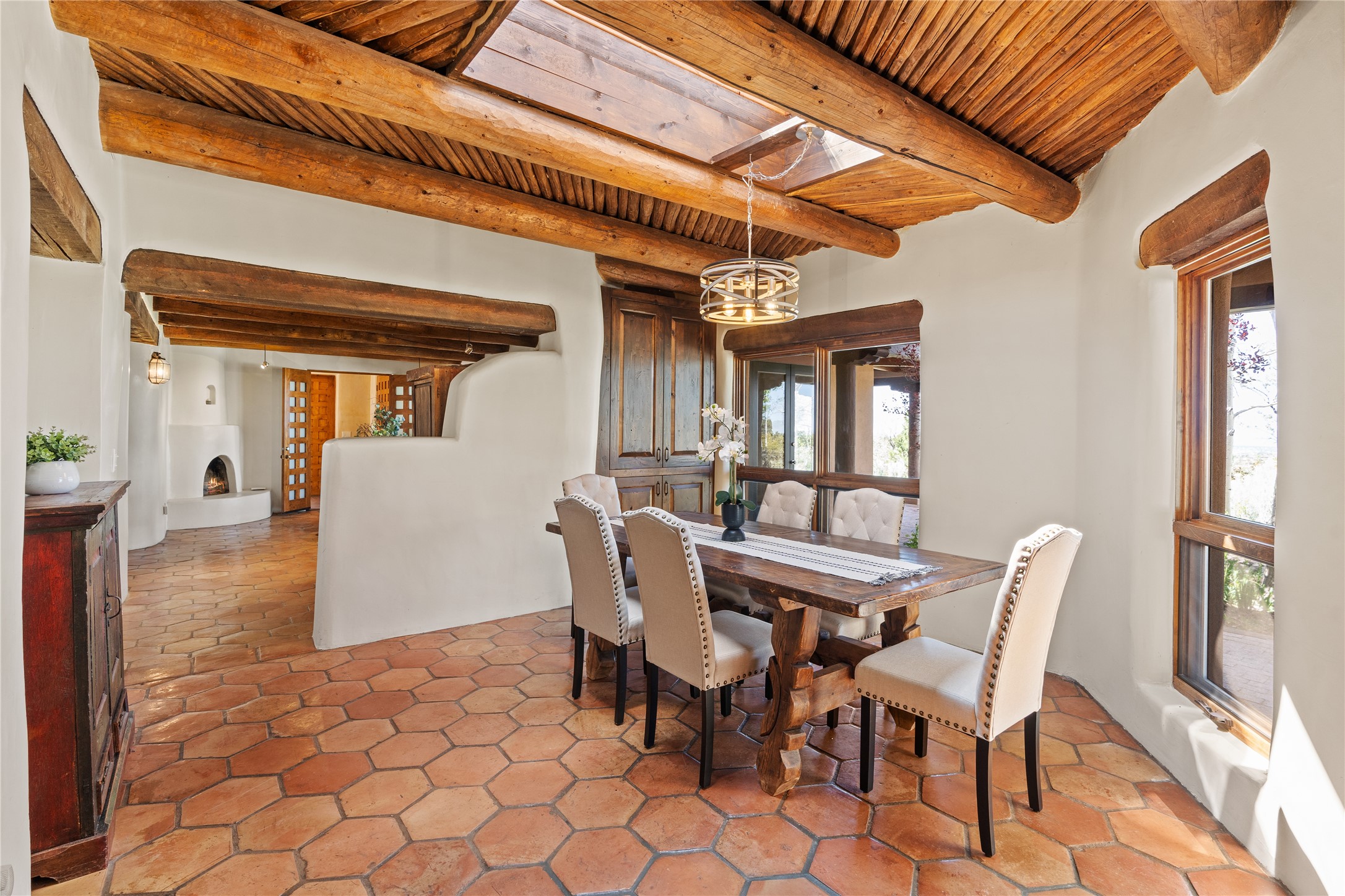 Incredible, rare, and versatile live/work opportunity off HWY 285.Situated on 11.07 acres, this unique property blends Santa Fe's old-world charm with modern style, offering a 5,481 sq. ft. main house and a 3539 sq. ft. guest house/studio. There are 4 large bedrooms, 2 full bathrooms, 3 3/4 bathrooms and 4 half-baths on the property. A large 2-car garage boosts additional space for storage and a small workshop area. Bordering the 4,000-acre Eldorado Preserve, there is also a 2,400 sq. ft. Morton barn with four oversized stalls. The remodeled main house features a European-inspired design with a gourmet kitchen, designer fixtures, and multiple Kiva fireplaces. The guest house/studio area, accessible via several entrances, includes a bright gallery space, a loft, 2 offices, and a reception space with 16-foot ceiling heights. Outdoor living areas boast covered portals, patios, and a moss rock pond, creating a serene private retreat close to shopping and amenities.