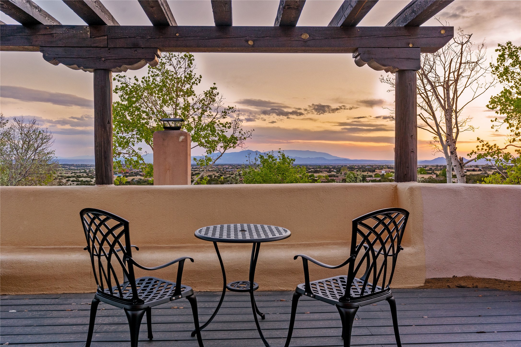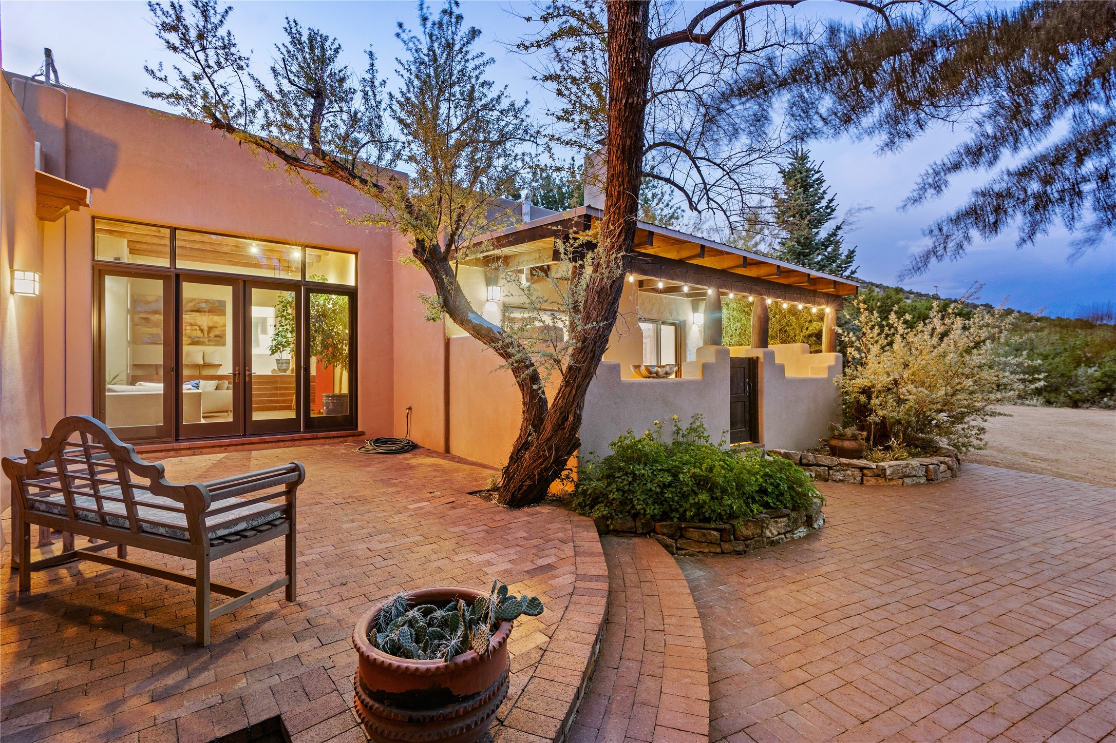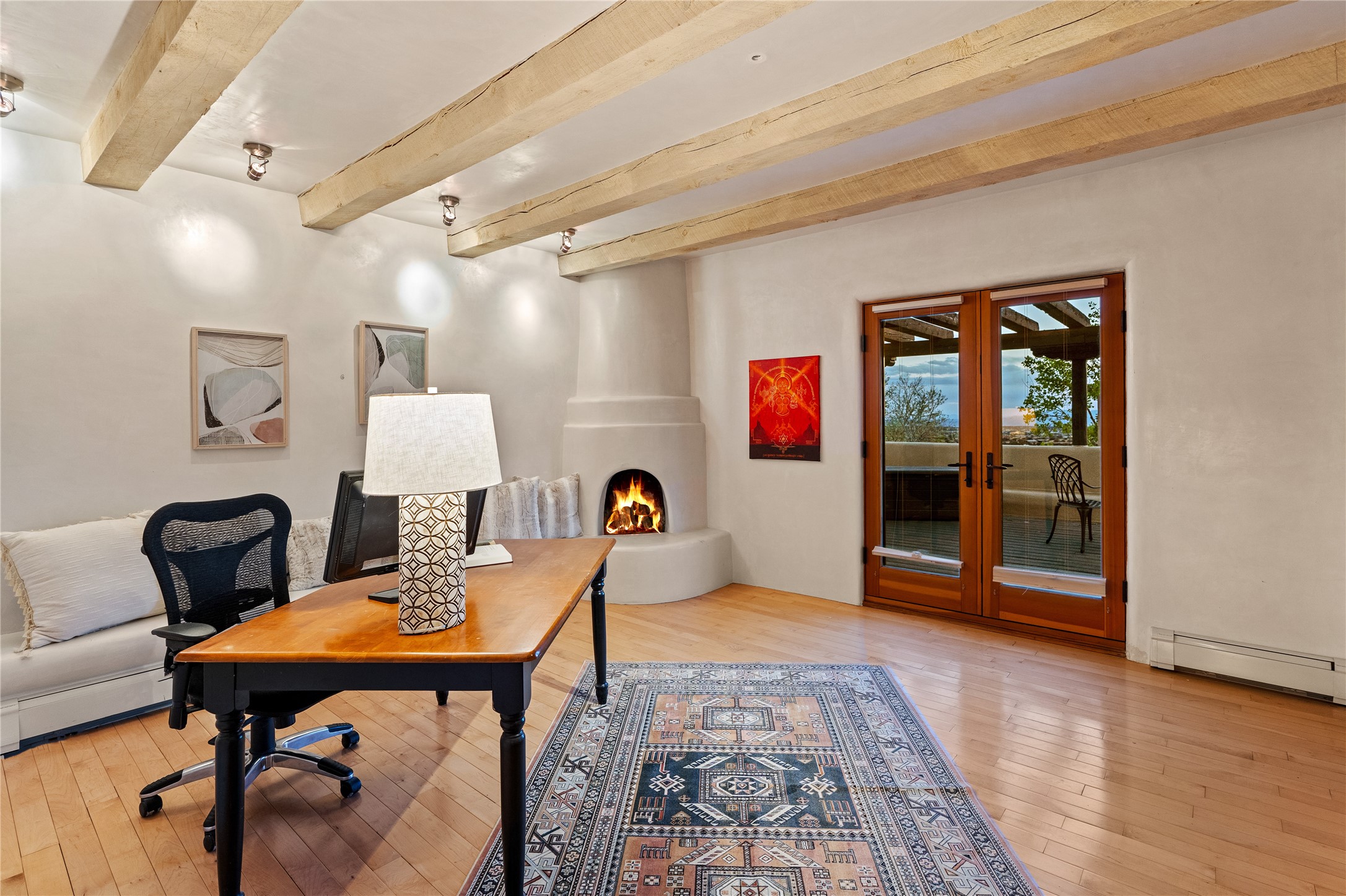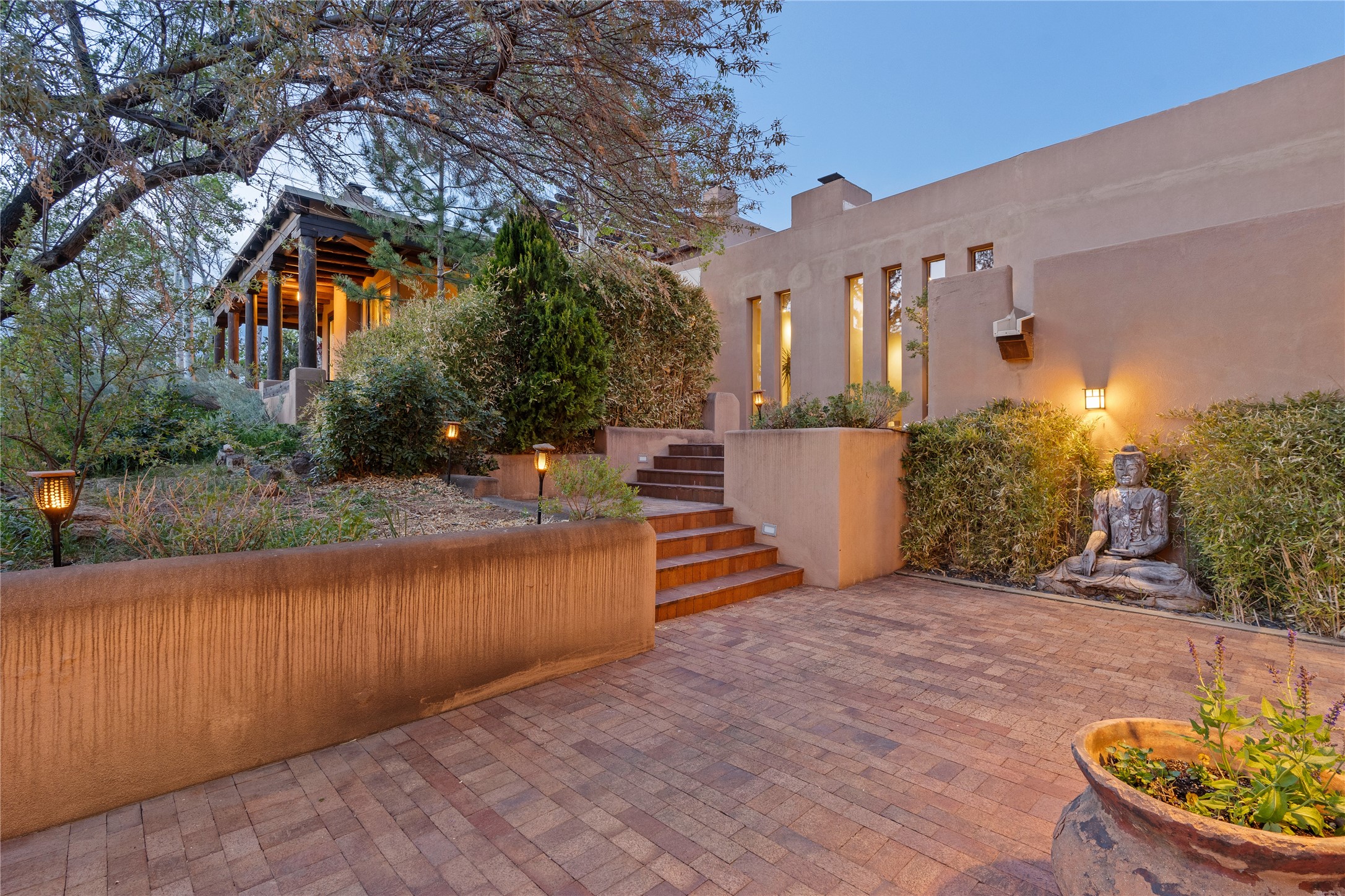 Incredible, rare, and versatile live/work opportunity off HWY 285.Situated on 11.07 acres, this unique property blends Santa Fe's old-world charm with modern style, offering a 5,481 sq. ft. main house and a 3539 sq. ft. guest house/studio. There are 4 large bedrooms, 2 full bathrooms, 3 3/4 bathrooms and 4 half-baths on the property. A large 2-car garage boosts additional space for storage and a small workshop area. Bordering the 4,000-acre Eldorado Preserve, there is also a 2,400 sq. ft. Morton barn with four oversized stalls. The remodeled main house features a European-inspired design with a gourmet kitchen, designer fixtures, and multiple Kiva fireplaces. The guest house/studio area, accessible via several entrances, includes a bright gallery space, a loft, 2 offices, and a reception space with 16-foot ceiling heights. Outdoor living areas boast covered portals, patios, and a moss rock pond, creating a serene private retreat close to shopping and amenities.