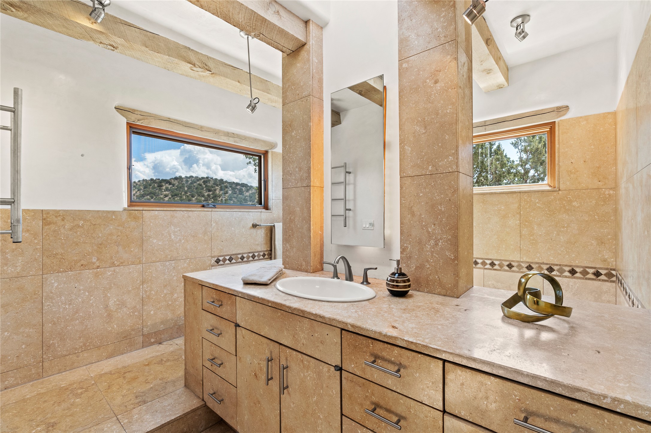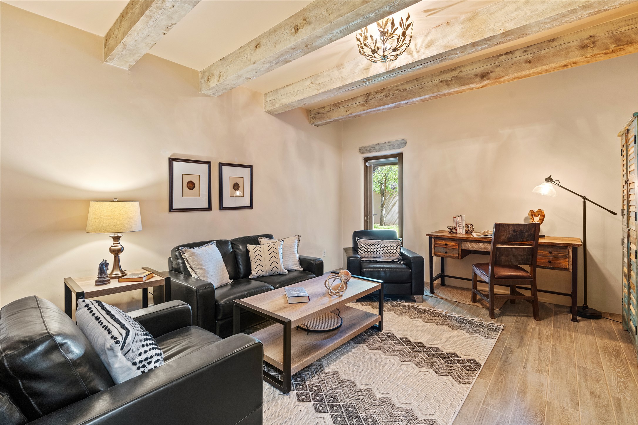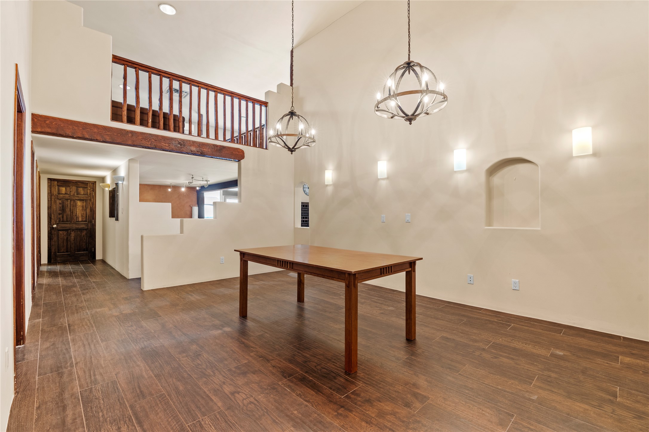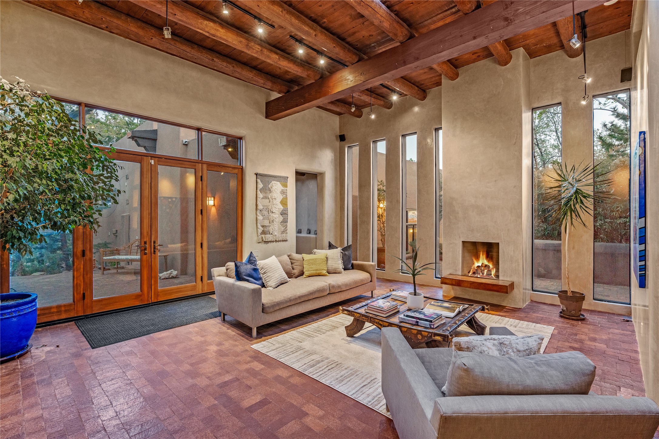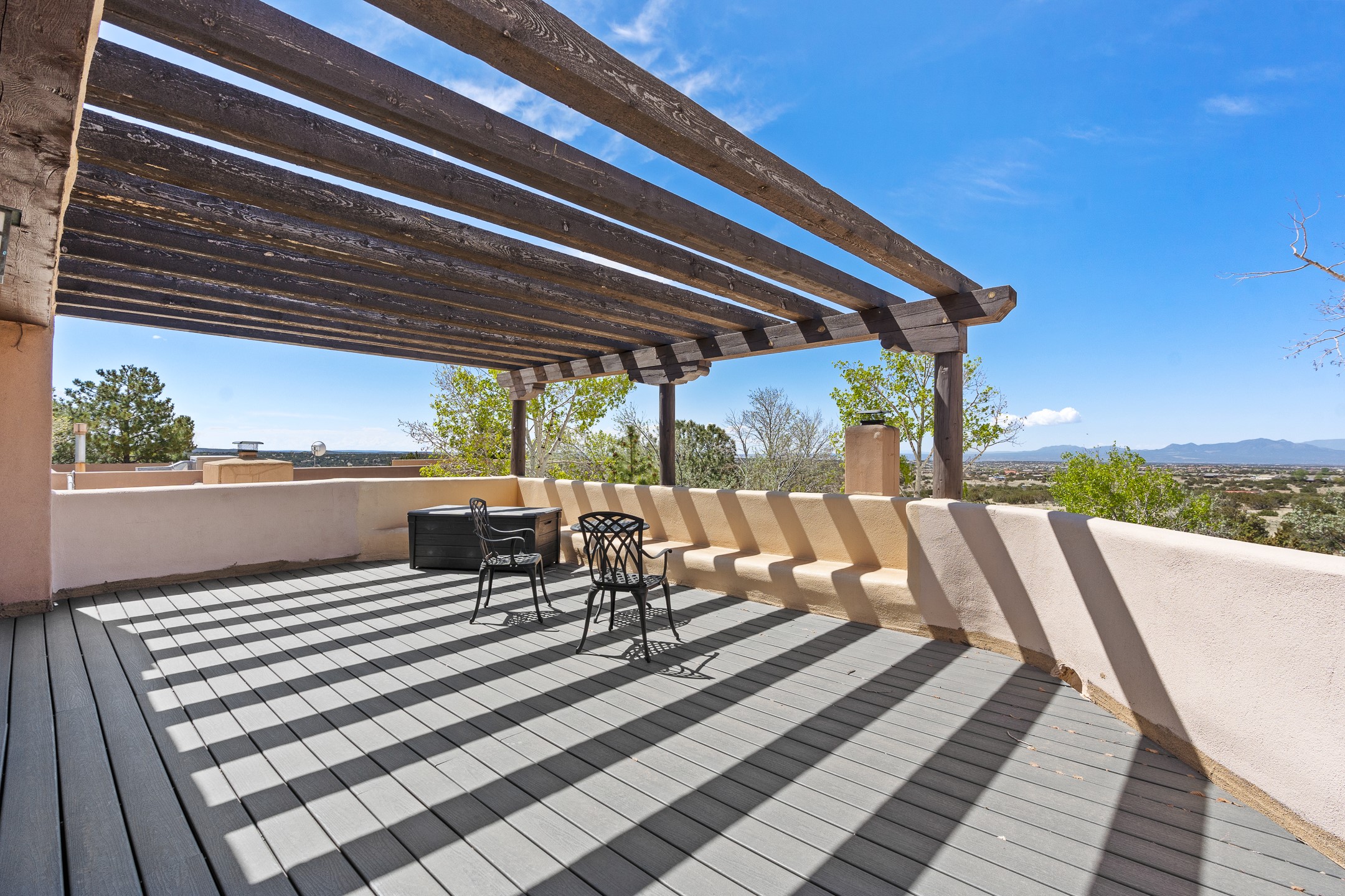Incredible, rare, and versatile live/work opportunity off HWY 285.Situated on 11.07 acres, this unique property blends Santa Fe's old-world charm with modern style, offering a 5,481 sq. ft. main house and a 3539 sq. ft. guest house/studio. There are 4 large bedrooms, 2 full bathrooms, 3 3/4 bathrooms and 4 half-baths on the property. A large 2-car garage boosts additional space for storage and a small workshop area. Bordering the 4,000-acre Eldorado Preserve, there is also a 2,400 sq. ft. Morton barn with four oversized stalls. The remodeled main house features a European-inspired design with a gourmet kitchen, designer fixtures, and multiple Kiva fireplaces. The guest house/studio area, accessible via several entrances, includes a bright gallery space, a loft, 2 offices, and a reception space with 16-foot ceiling heights. Outdoor living areas boast covered portals, patios, and a moss rock pond, creating a serene private retreat close to shopping and amenities.