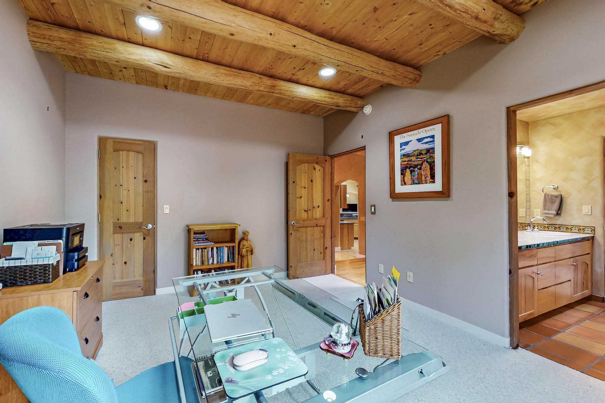 HUGE PRICE IMPROVEMENT! Welcome to 25 Old Santa Fe Way! This immaculately maintained home is nestled in the foothills of the Sangre de Cristo mountains but is less than 20 minutes away from the Santa Fe Plaza. This beautiful 3 bed, 3 bath home is found in the most serene setting. The spacious and cozy open concept living area is filled with light due to the generous windows! Prepare to be absolutely stunned by the view of the foothills from both inside and outside the home, and at nighttime, you will be delighted as the mountains are nothing short of magical! This lovely home has had many updates, such as NEW garage doors (2025), NEW stucco (2024), NEW roof (2024), NEW blinds (2024), and the primary bath was completely remodeled (2024). This home is move in ready and waiting for it's next family to call it home!