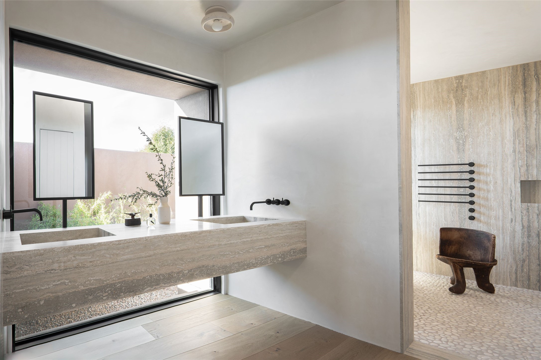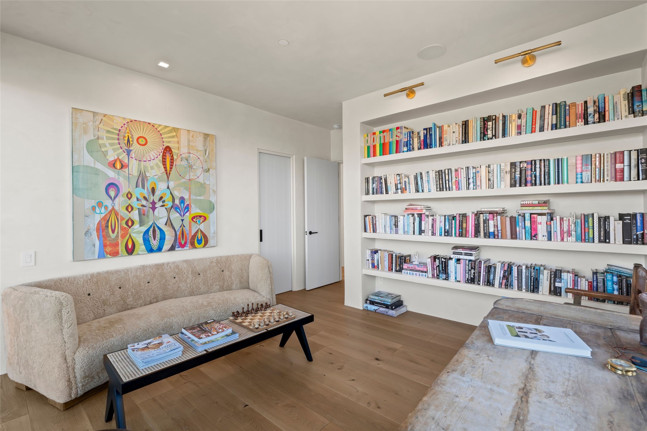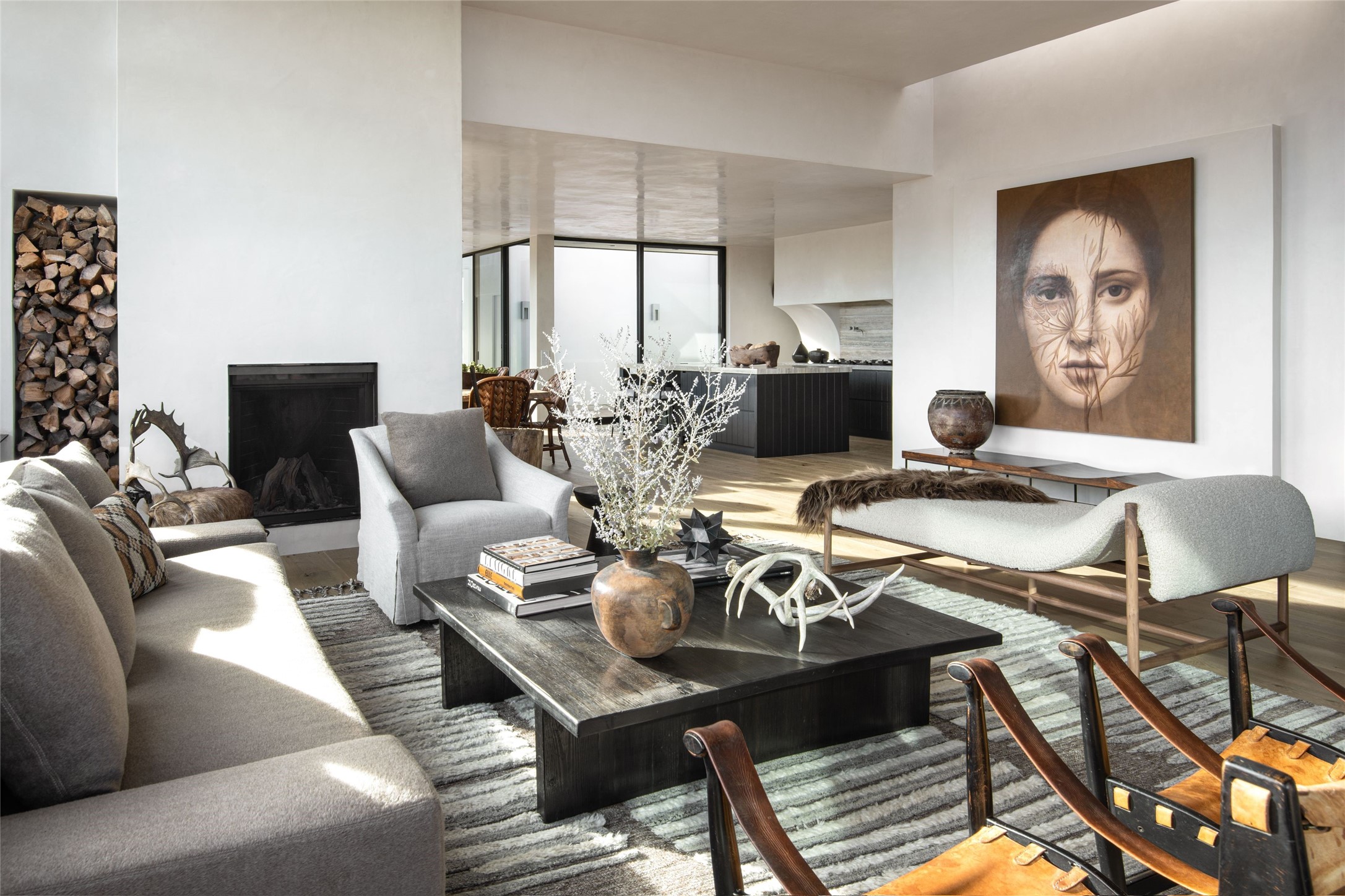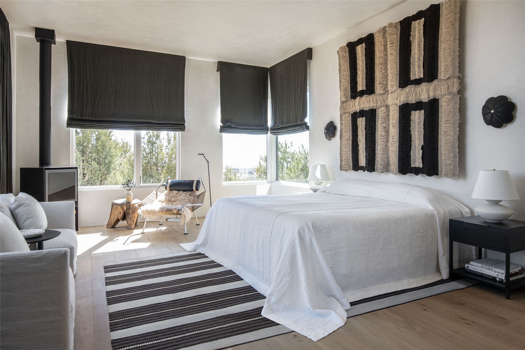 Experience the pinnacle of luxury living in this stunning 4-bedroom, 3.5-bath home, including an 878 sq. ft. guesthouse. Situated within the esteemed Monte Sereno community, this award-winning residence, designed by architect Robert Zachry and builder Scott Wong of Solterra, captures the essence of modern elegance. Perched on one of the highest lots in the community, with a private, gated entrance, enjoy 270-degree unobstructed views of the Sangre de Cristo Mountains, the Badlands, Ortiz/Sandia Mountains, and the twinkling lights of Santa Fe. This single-level home has recently been thoughtfully reimagined by designer Mary Clark with luxury finishes throughout. The flow from the living room to the dining area, kitchen, and outdoor portals creates an inviting atmosphere. The open kitchen includes custom oak cabinetry, travertine countertops, Gaggenau ovens, Thermador and Miele appliances, as well as a hidden scullery. Luxurious owner's suite provides privacy, featuring a Swedish wood burning stove, two walk-in closets, exercise room, and an en-suite bath with a travertine wet room, Waterworks soaking tub, Vola faucets and shower for two. Additional highlights include 32 solar panels, a heated driveway and sidewalks and a comprehensive audio system. The in-ground hot tub / plunge pool and outdoor custom kitchen, equipped with a Hestan grill and Alfa gas pizza oven, are ideal for entertaining. Low-water xeriscape landscaping enhances outdoor appeal, while the 2-car garage plus another in the guesthouse adds convenience. Discover unparalleled living in a convenient, close-in location where comfort and sophistication unite.