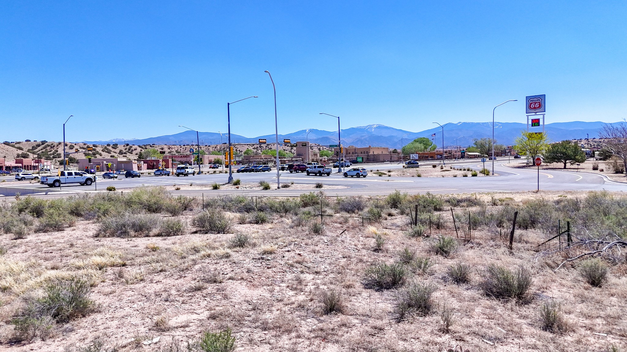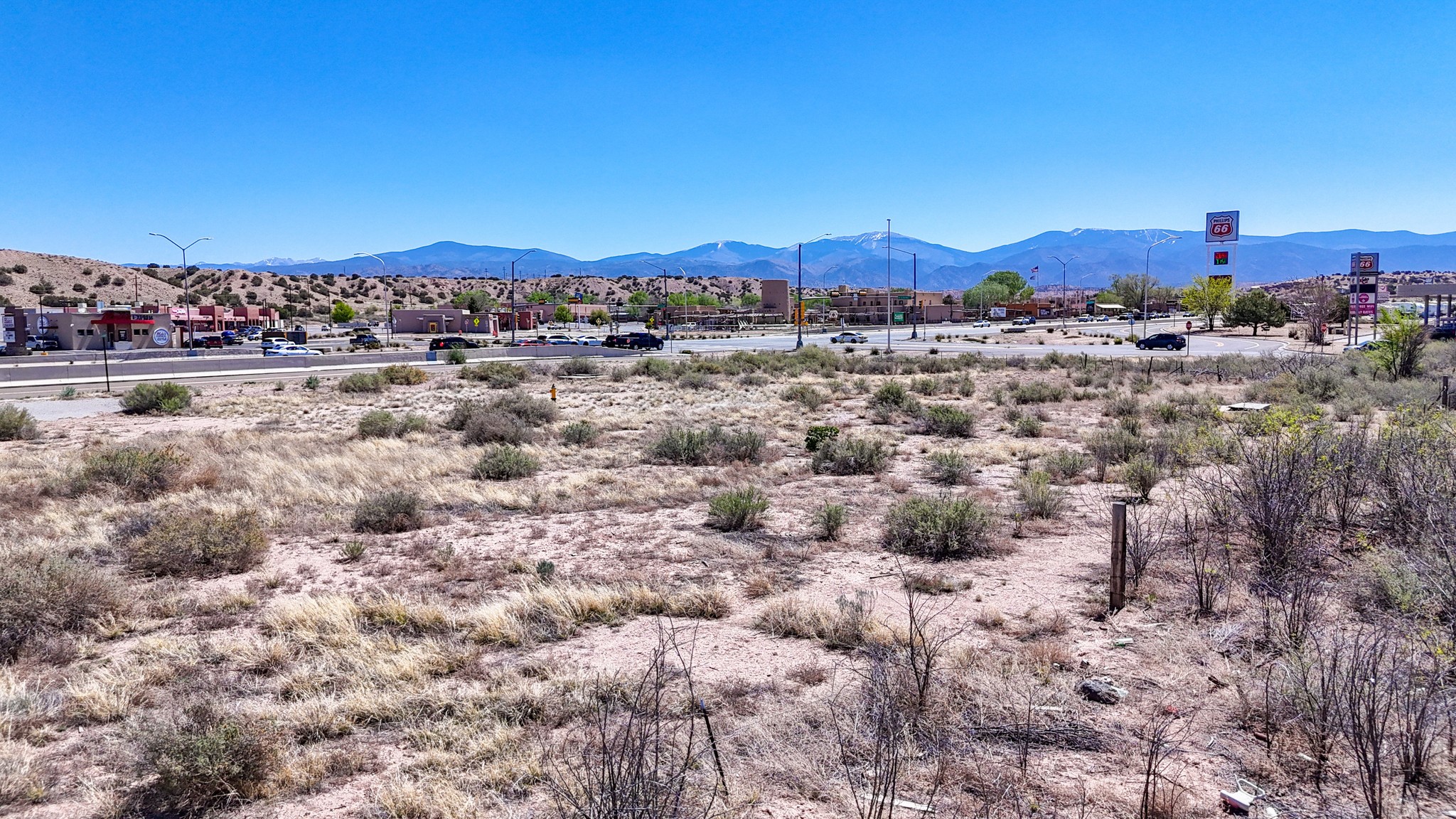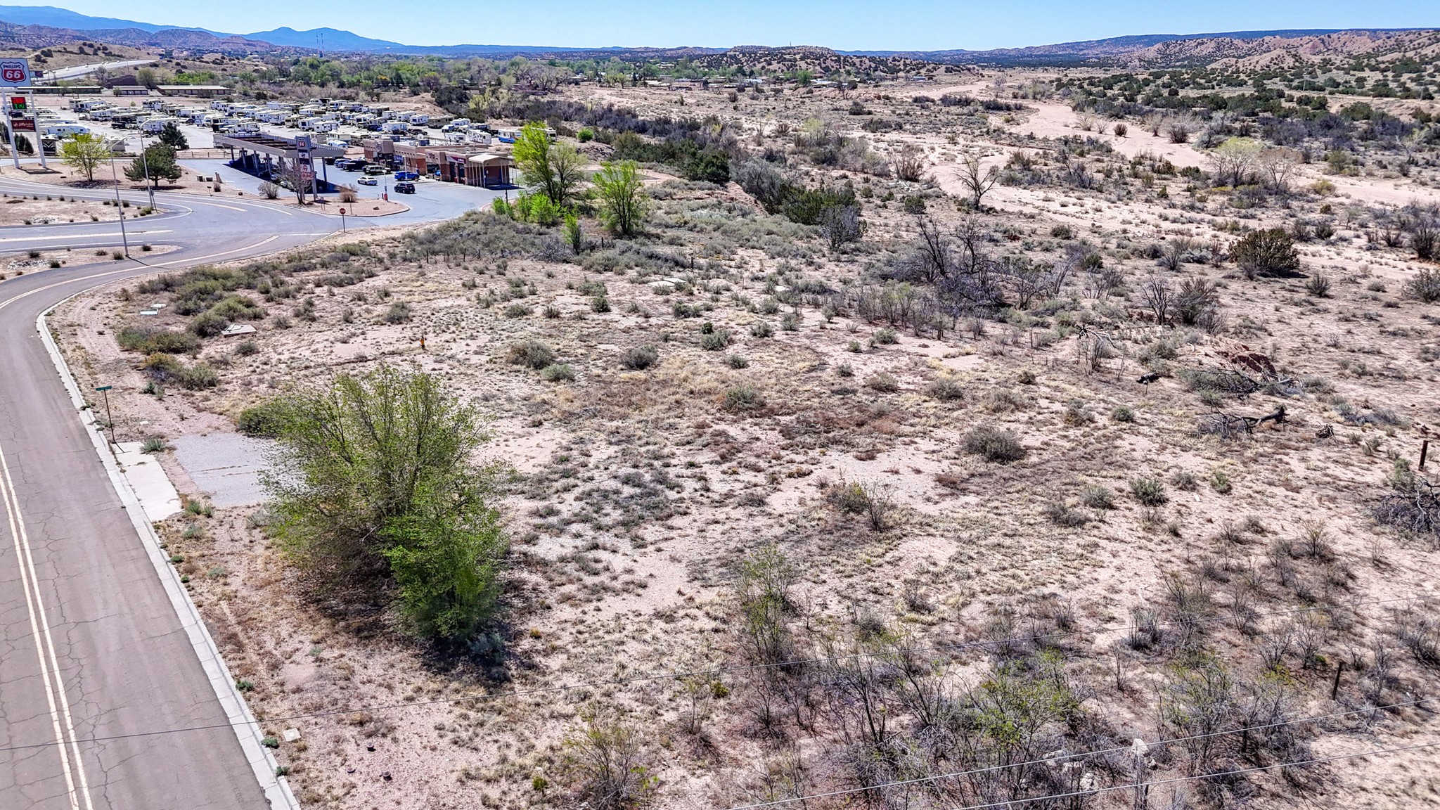 Here is a fantastic opportunity to own a rare piece of property with many commercial zoning uses allowed. This location and 1.12 acre parcel offers high visibility and great accessibility being just off of 84/285 right in the heart of Pojoaque's business district. Electricity and natural gas to lot. Approximately a 15-20 minute drive to Los Alamos and Santa Fe. This land is surrounded by Pojoaque Tribal Lands. Come and make your development dreams come true on this rare location and offering today.