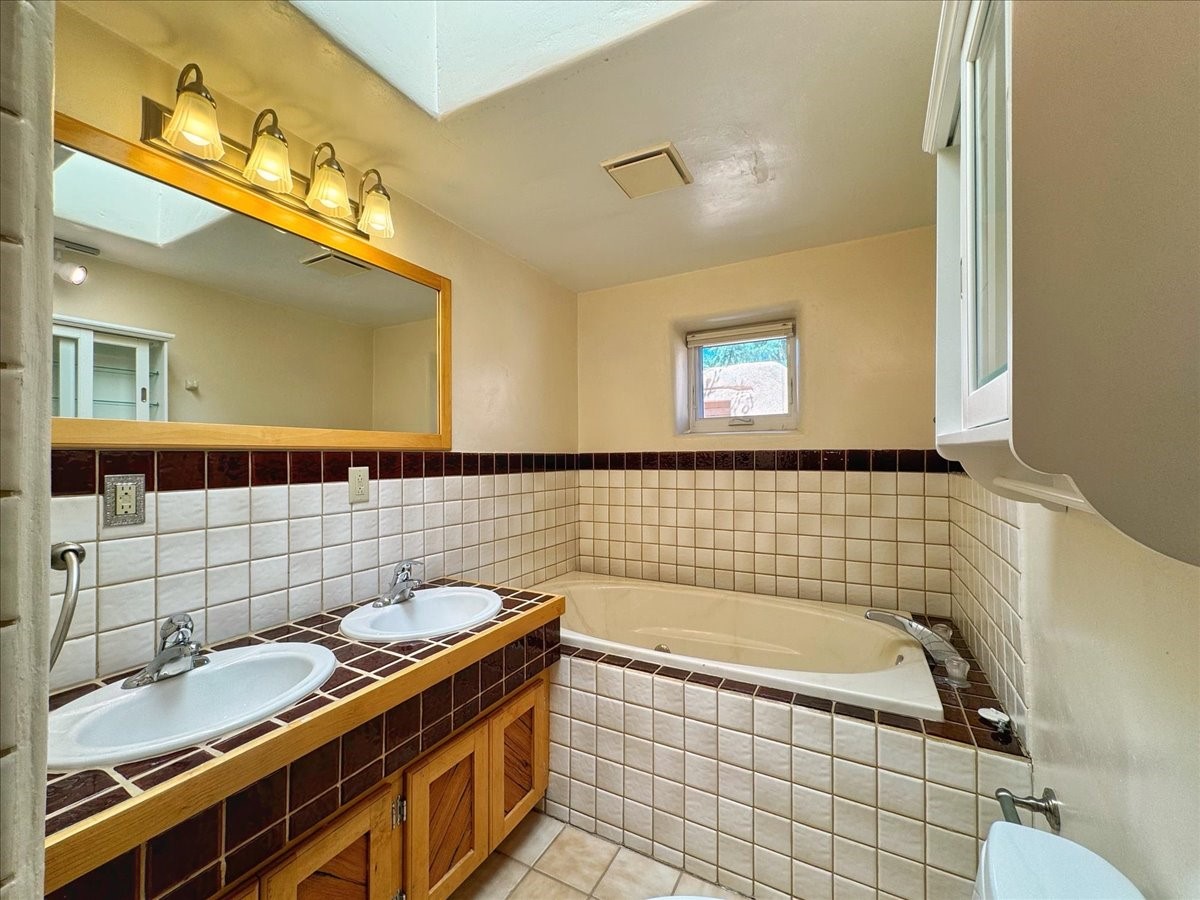 Charming Historic Adobe Home in Santa Fe's East SideNestled in the heart of Santa Fe's coveted historic Eastside, this classic territorial style, all-adobe home, built in the 1900s, offers timeless character and exceptional location. Just a short stroll from iconic Canyon Road, this unique property includes a beautifully maintained main residence and a detached casita, large basement with bathroom and 5 parking spaces. Main house is two bedrooms, 2 baths with kiva fireplace, original wood floors, plaster walls and traditional viga ceilings that exudes Santa Fe style. The brick-floored portal and multiple patios with adobe walls offer lovely options for outdoor living areas. Main house also features an 885 sq ft basement with separate exterior entrance, bathroom and multiple rooms for added possibilities for studio, office or remodel into living space.Property also includes a detached two-bedroom, one-bath casita--perfect for guests or as a proven income-producing rental - with a remodeled contemporary kitchen and utilities separately metered.This rare find blends convenience with traditional Southwestern charm and is a truly special opportunity to own a piece of Santa Fe history with strong rental potential and unbeatable walkability.Price subject to existing lienholder for short sale.