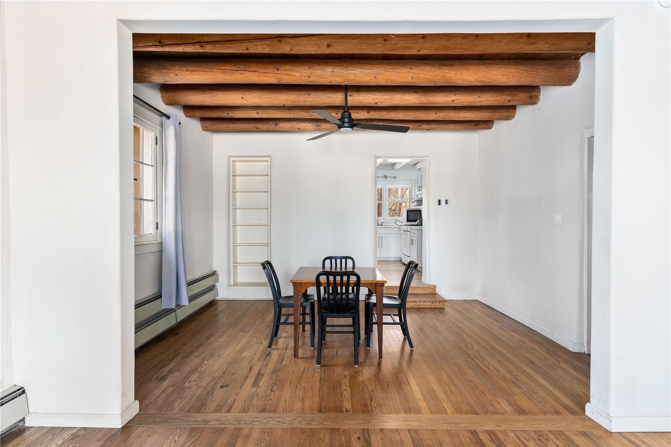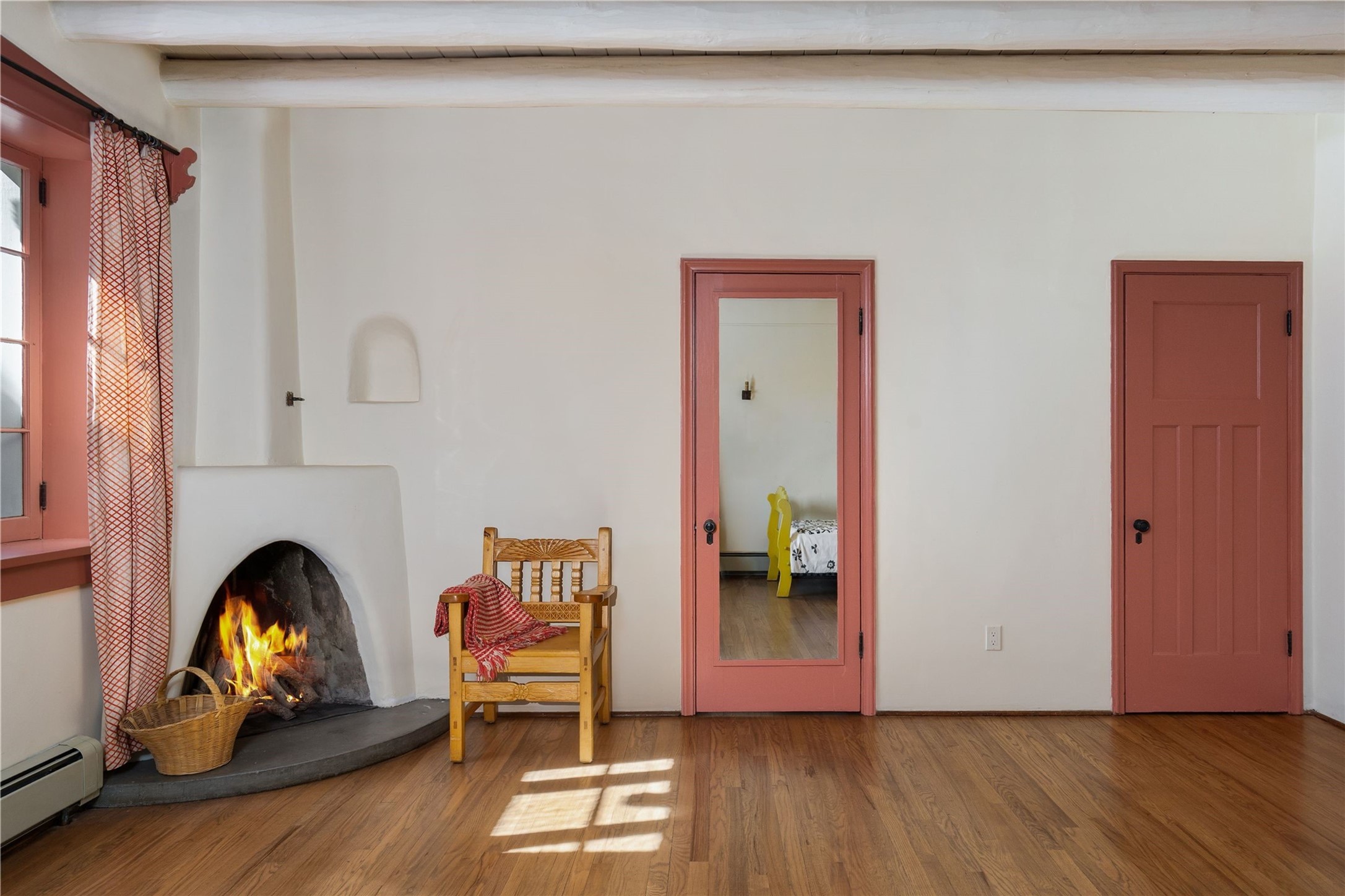 Acquire a treasured piece of Santa Fe history with The Acequia Madre House, a cornerstone and time capsule of Santa Fe's rich cultural and artistic legacy. This truly remarkable estate, built in 1926 by the influential women Eva Scott Fnyes, her daughter Leonora S. M. Curtin, and granddaughter Leonora F. Curtin, is a living museum of fine handcrafted woodwork, sculpted kiva fireplaces, and traditional artistic details. These trailblazing women played a significant role in the "cultural crafting" of Santa Fe, and their legacy is beautifully reflected in the exquisite workmanship of this extraordinary property. Set on just over 3 acres within the esteemed Camino del Monte Sol Historic District, The Acequia Madre House features a spacious 5,450 sq ft main house alongside a 2,313 sq ft carriage house. Recognized by both federal and state historic preservation authorities, the main house embodies the rich heritage of the region. Designed in classic Old Santa Fe Style, the single-story structure showcases territorial elements that capture the essence of Southwestern architecture. Inside, the main house offers an array of inviting spaces, from cozy to grand, including a spacious living room that serves as the perfect gathering place, an elegant dining room, and a study that provides a quiet retreat for work or reflection. Two luminous sunrooms create serene spots to enjoy the beautiful natural surroundings. The estate includes a one-car garage as well as parking for up to 13 vehicles. The property is adorned with mature trees and features a large lawn. Conveniently located just moments away from iconic Canyon Road and the historic downtown plaza, this architectural and historical showpiece is unequaled in its entertaining and artistic potential. Being offered below appraisal.