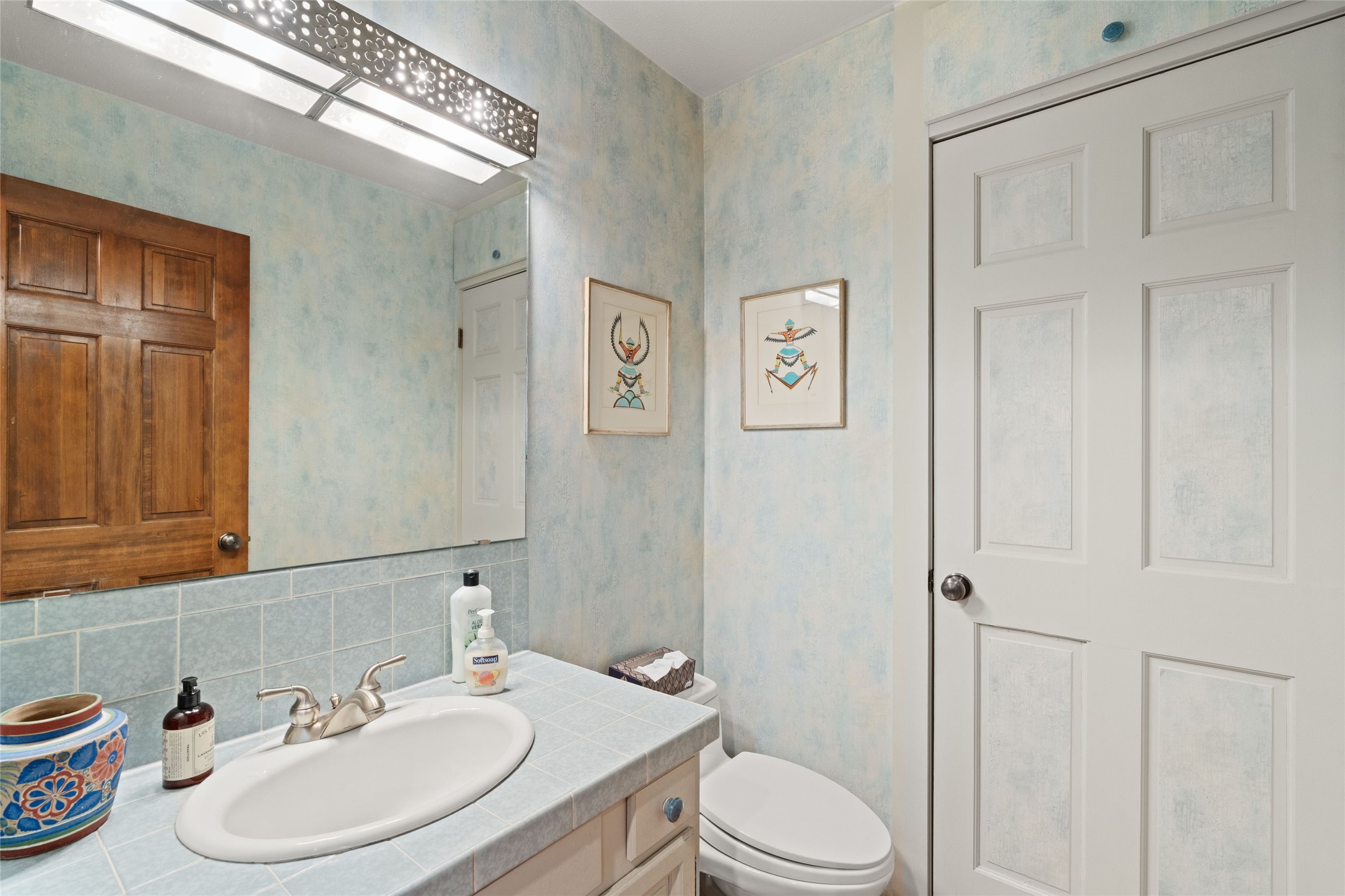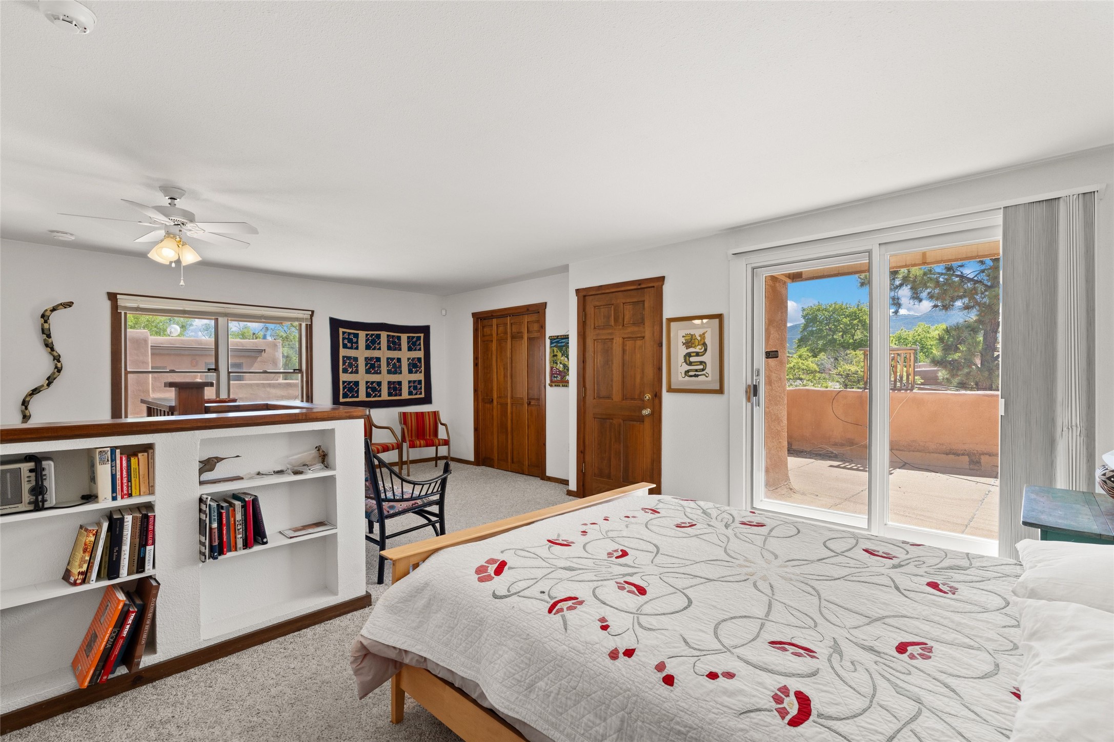 Charming Pueblo-Style Home in prime Santa Fe location, just minutes from downtown Santa Fe and the famed Canyon Road. This 2,102 sq ft Pueblo-style home blends timeless Southwestern character with modern comforts. Featuring 3 bedrooms and 2.5 bathrooms, this residence offers classic Santa Fe architecture with brick floors, exposed wood vigas, and two fireplaces. The kitchen boasts custom cabinetry, new dishwasher, and thoughtful craftsmanship throughout. Two generously sized bedrooms are located on the main level, while the upstairs hosts a large, private bedroom retreat with access to the rooftop--perfect for enjoying panoramic views of the Sangre de Cristo mountains and Santa Fe sunsets. Outdoors, professionally landscaped gardens are supported by a drip irrigation system. Additional features include a two-car garage and ample private outdoor spaces. This is a rare opportunity to own a beautifully appointed home in one of Santa Fe's most coveted locations. Furnishings available for purchase.