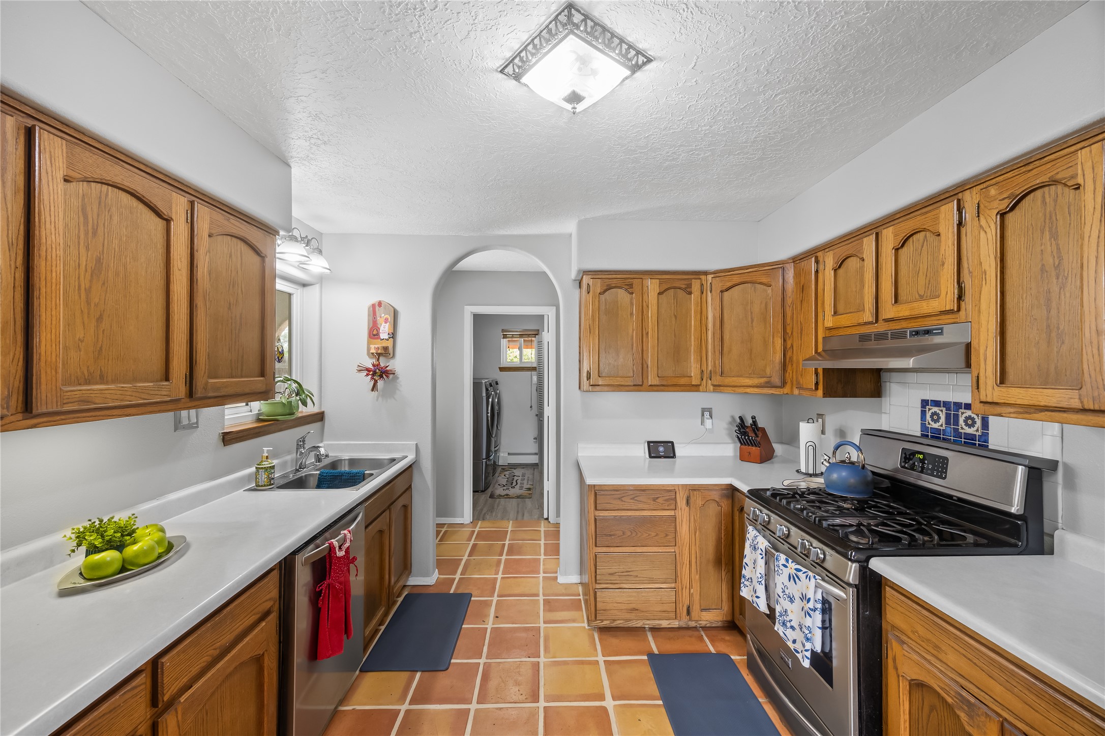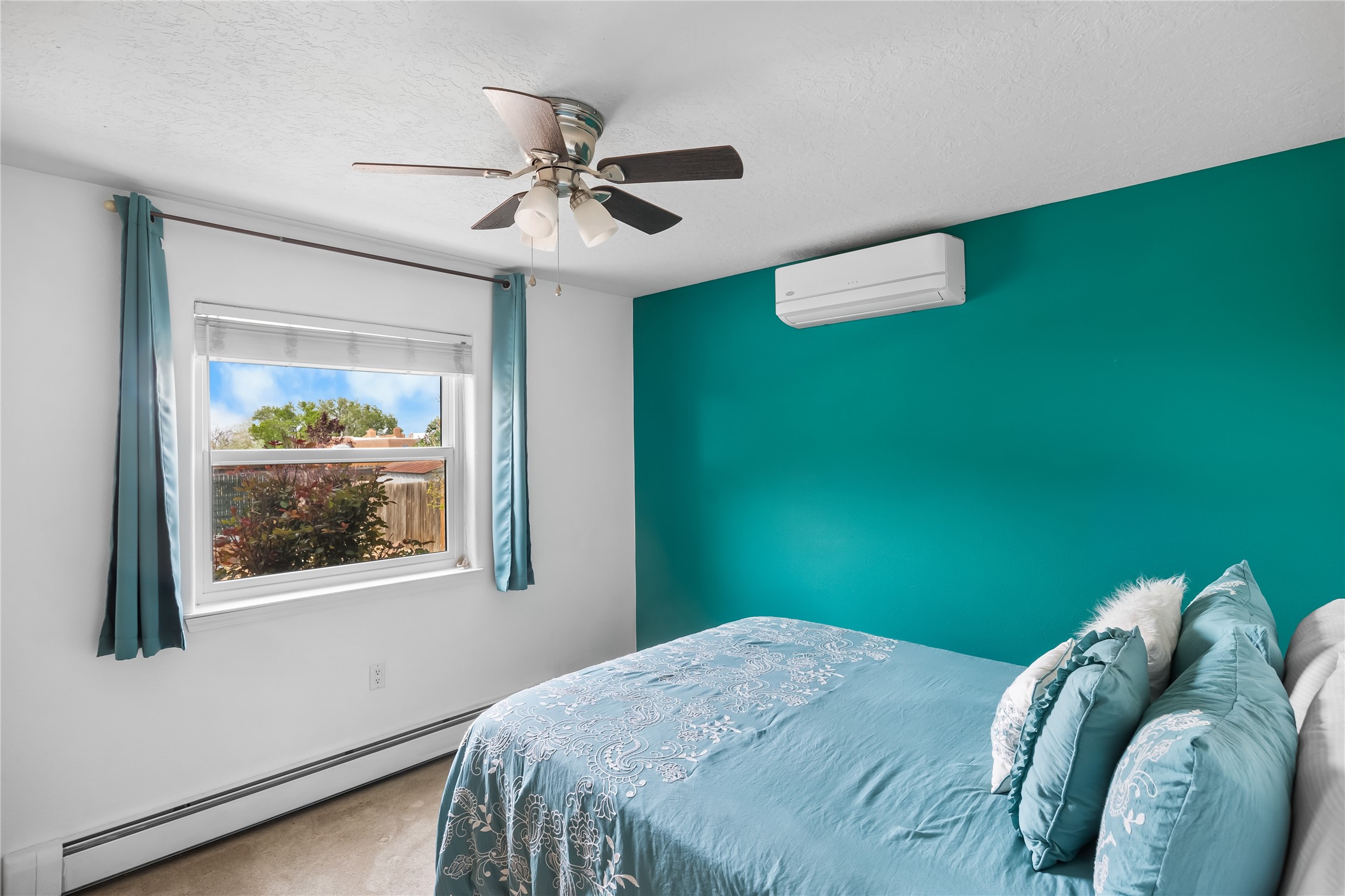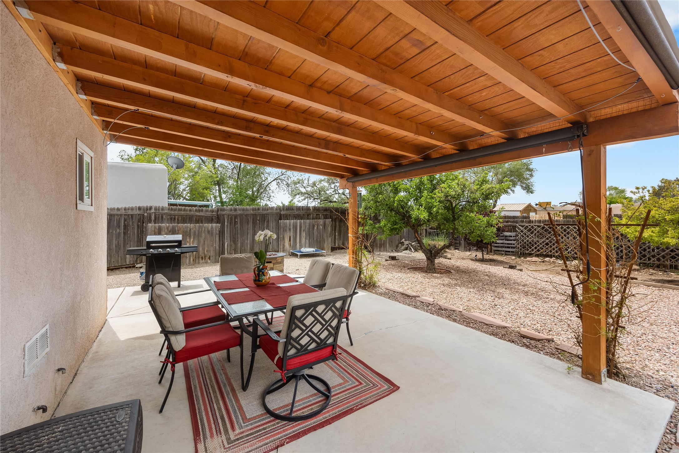 Home Sweet Home! Enter the thoughtfully landscaped, fenced, large front courtyard through a coyote fenced gate. The home's first level is graced with owner installed wooden flooring, high beamed ceilings, Anderson windows, custom blinds and has a wonderful flow from its spacious Living Room to its Dining Room, Kitchen, laundry room, hall bathroom (with Dream Style shower) and guest bedroom. A brand-new stainless dishwasher plus newer range & fridge enhance a highly functional, comfortably sized kitchen. Enjoy a welcoming, extensive rear yard which includes an owner added roomy portal, great for entertaining, plus a variety of mature fruit trees & lots of space for pets to roam. The second level features the primary bedroom with a deck and Dream Style shower, as well as a second guest bedroom. Rest cool and easy with the addition of 4 mini-splits and a well-maintained roof over your head, in this well maintained property in an established, friendly neighborhood.