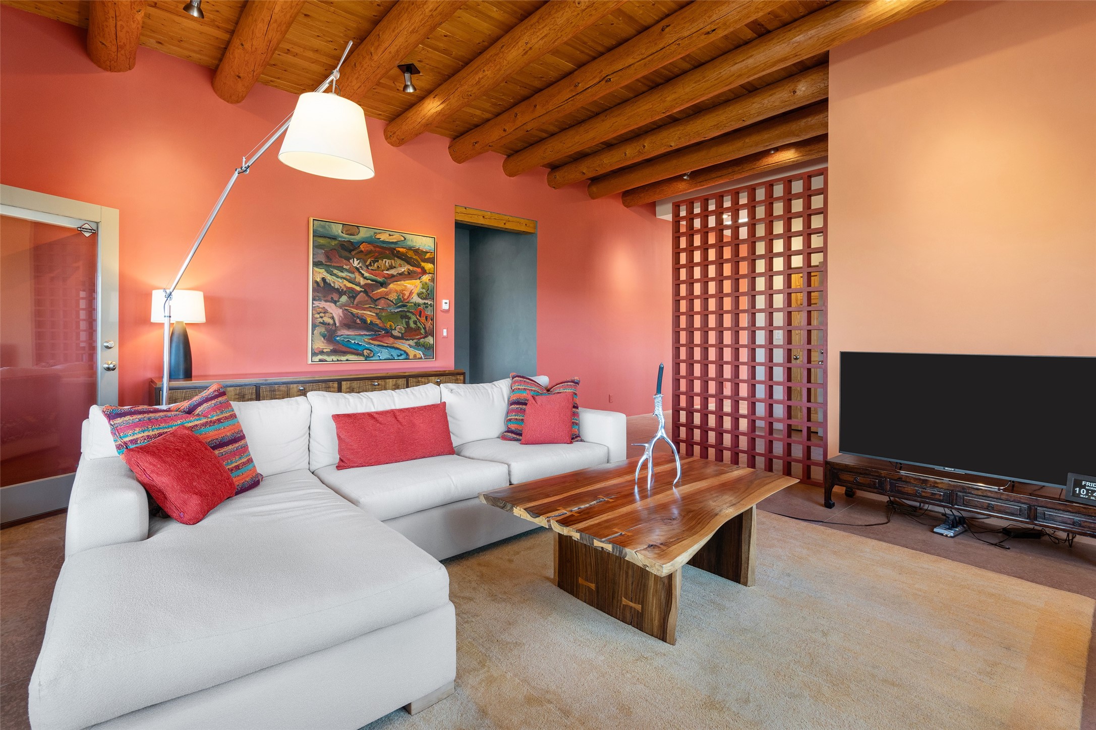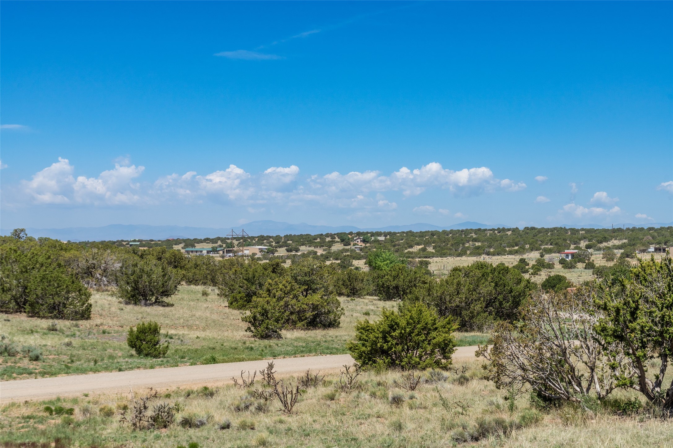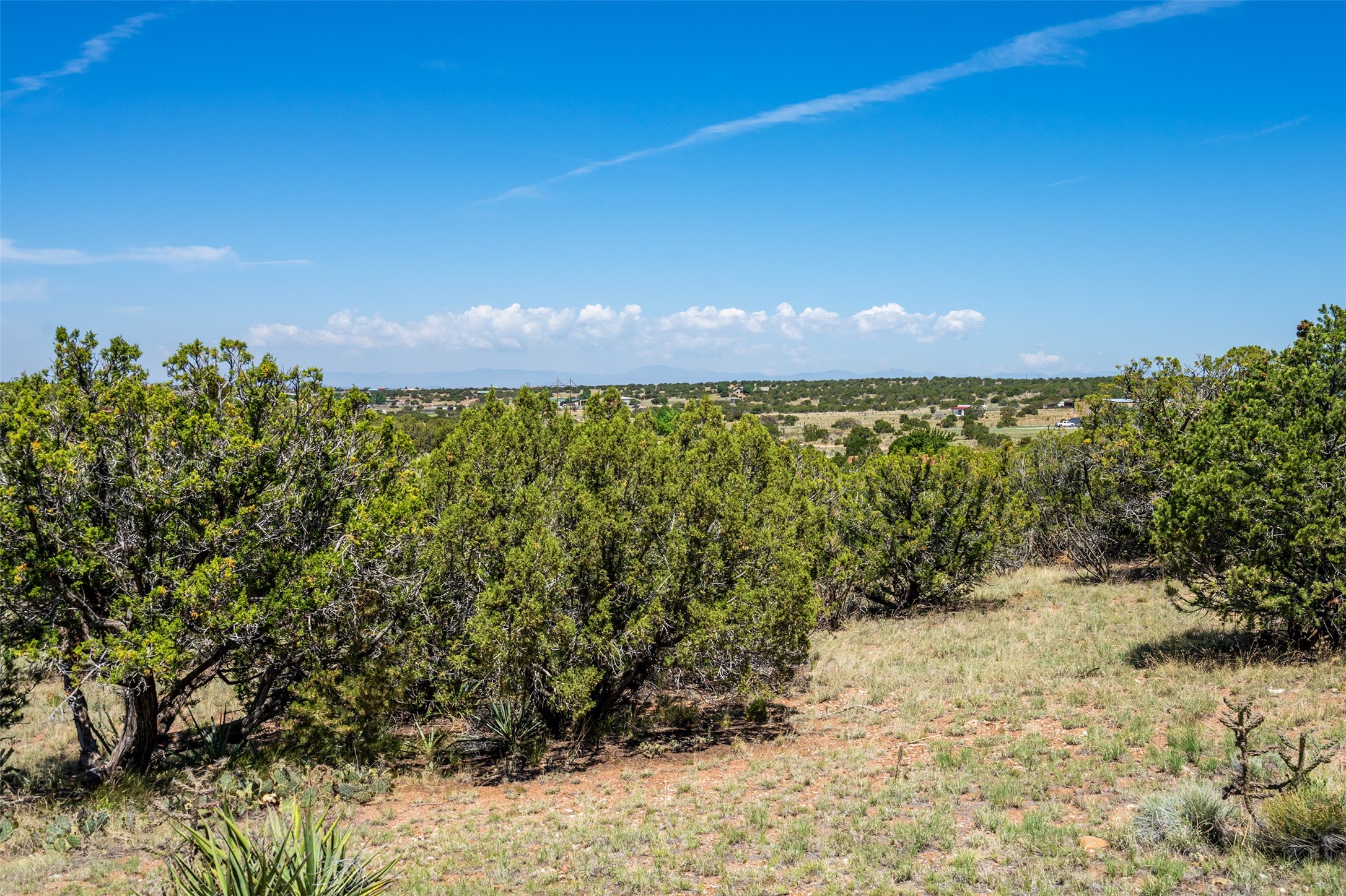 Lovely, contemporary Santa Fe style home in the East Ranch subdivision. This home sits on 2.13 acres, has views and features 3 bedrooms, 2 baths with concrete flooring throughout. Tiled counter tops in the kitchen with stainless appliances, maple cabinets plus an Ikea pantry unit. Seven skylights provide diffused lighting inside the home. Santa Fe touches include vigas and a kiva fireplace in the living area and vigas in the primary bedroom. Bold and colorful accent walls all around! New Hunter Douglas blinds recently installed. Light and bright laundry room with side by side W/D, a sink and cabinets. Two covered portals are located on the north and south side of the house. One portal has a kiva fireplace, the other portal has a kiva fireplace and a built in grill; perfect for outdoor entertaining. Spacious fenced yard in the back with a garden shed. Attached two car garage. This property is conveniently located just 4 miles from the Agora Shopping Center. Don't miss seeing this gem and the serenity of Southwest living!