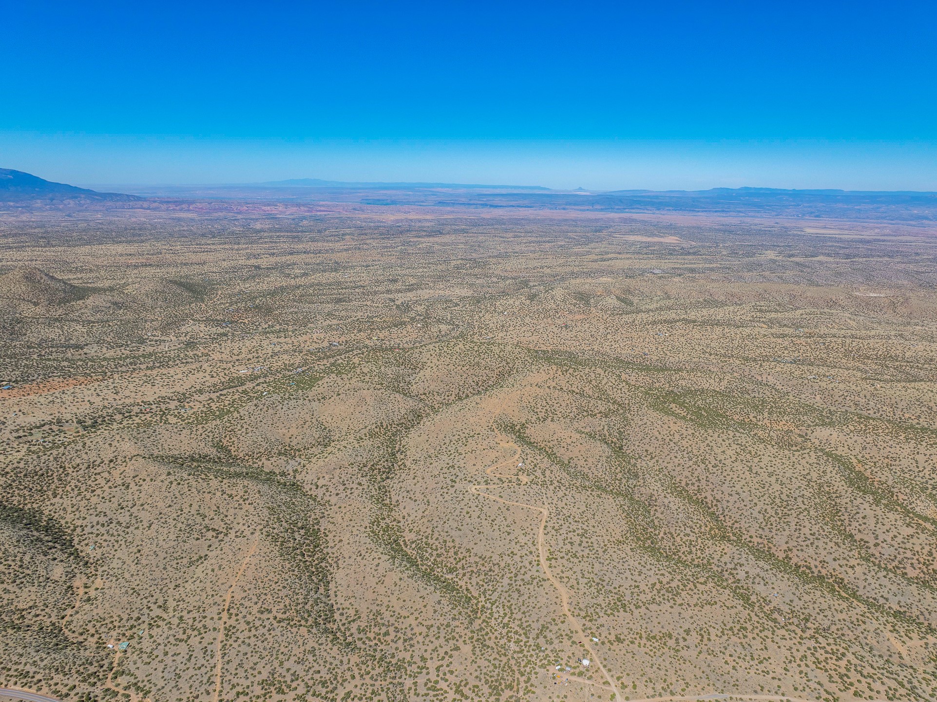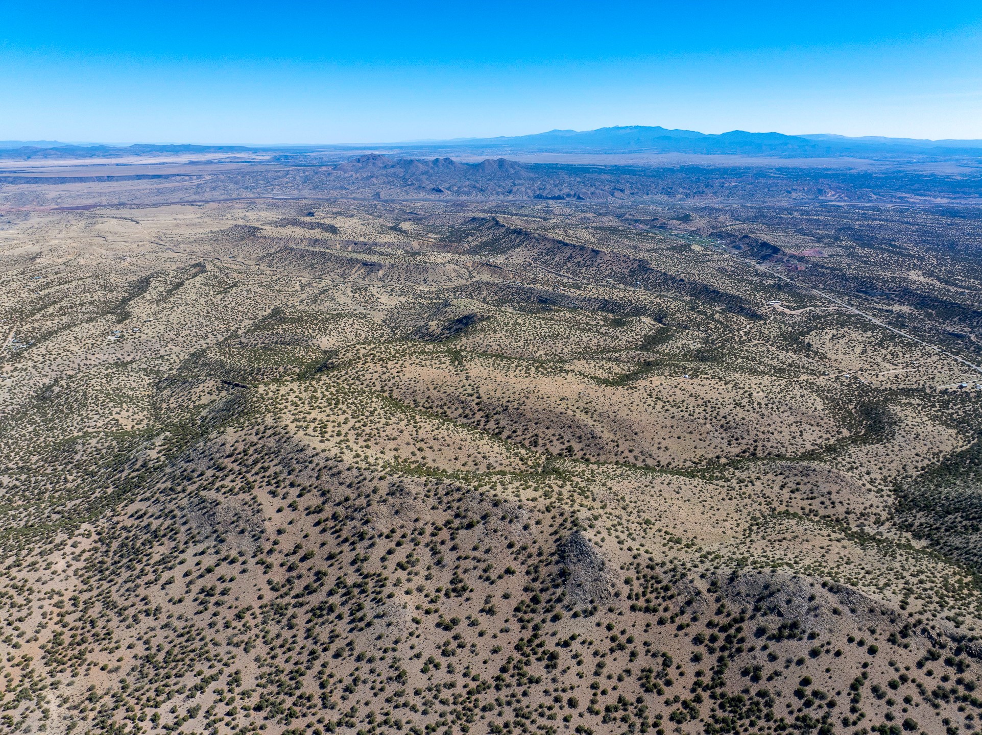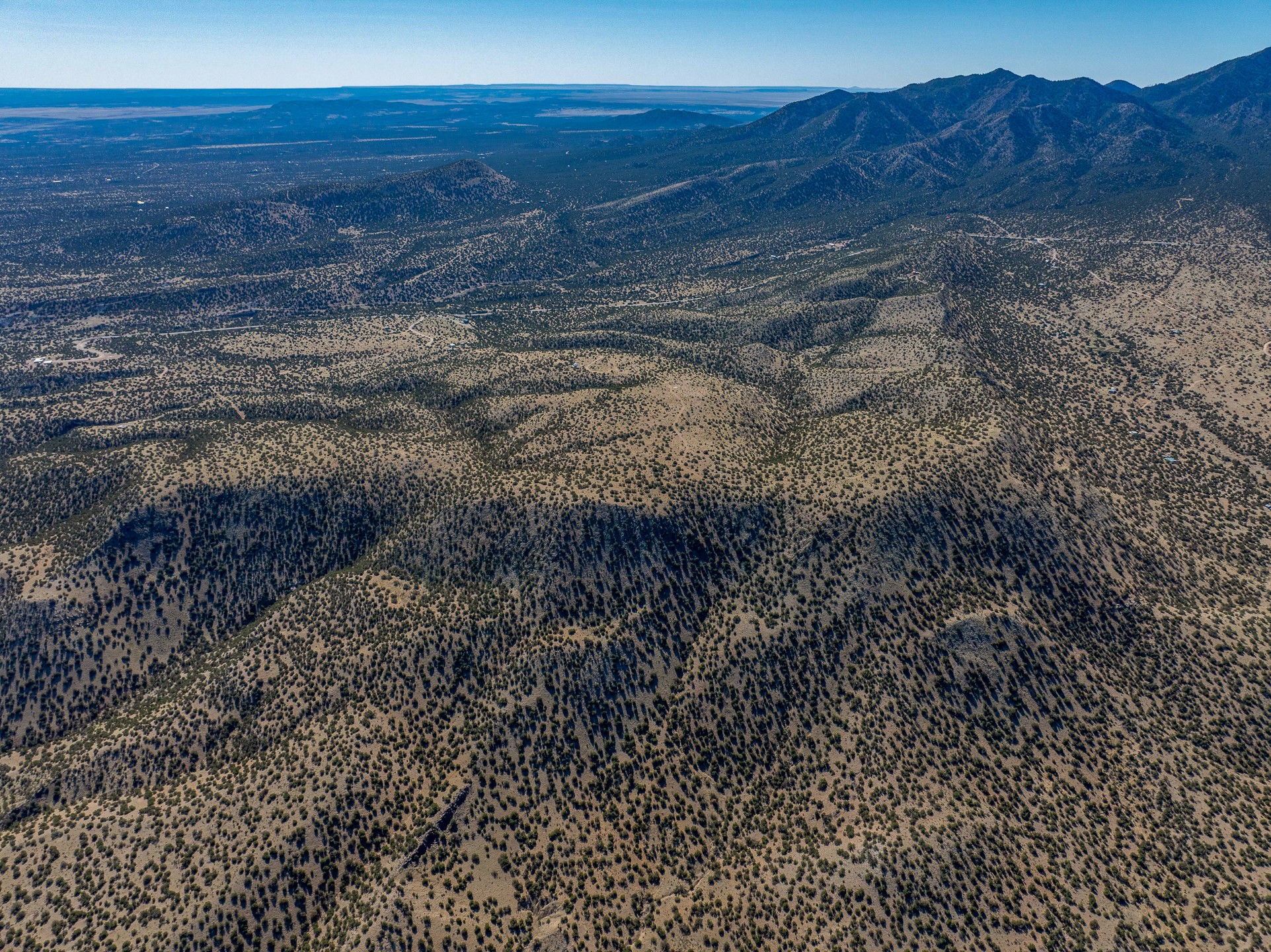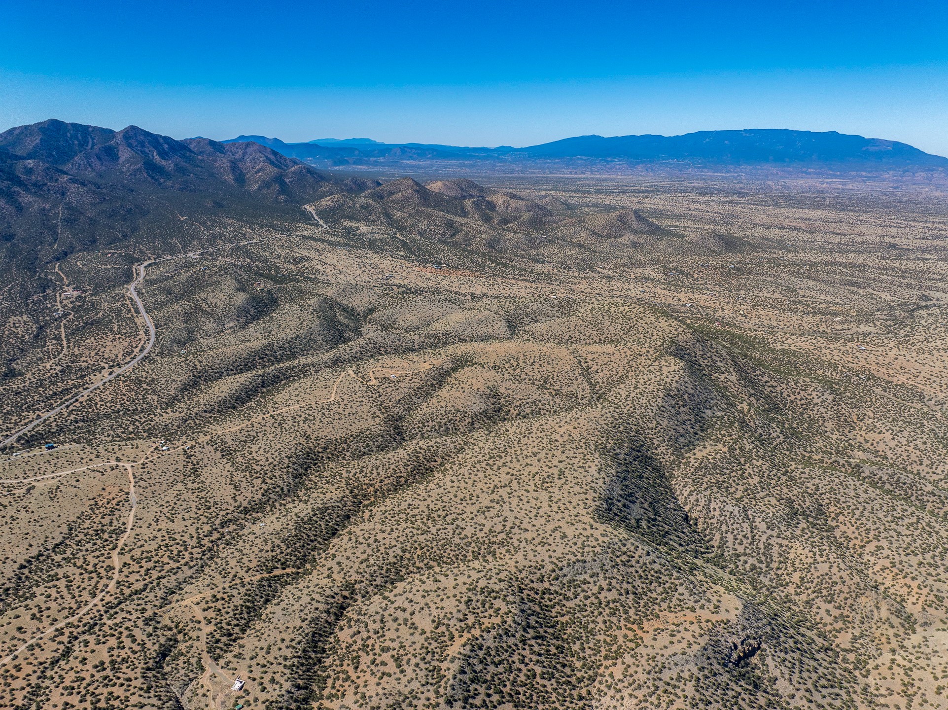 Two hundred and thirty mountain top acres with a PVC dome featuring all modern conveniences near Madrid. On two lots with two wells, this private getaway awaits the adventurous soul who wants to get above it all while still being connected. With 360 degree views from the mountain top, and the dome sited on a slope with amazing views of the Sangre de Cristo's, buyers will find this to be an incomparable view property. This far out, the Milky Way will shine bright, and the wood fired hot tub is the perfect place to stargaze from after a day of exploring the mountain. The dome has a small kitchen, bathroom, loft storage area, mini-split for heating and cooling, a luxurious glamping hideout or a cozy full time home. The solar system is modern and robust, and sewage is handled by an innovative bio-gas system. Closer than it feels, the property is just a half mile from the pavement, but that half mile is a steep and rocky climb, and a 4x4 with some clearance is recommended.