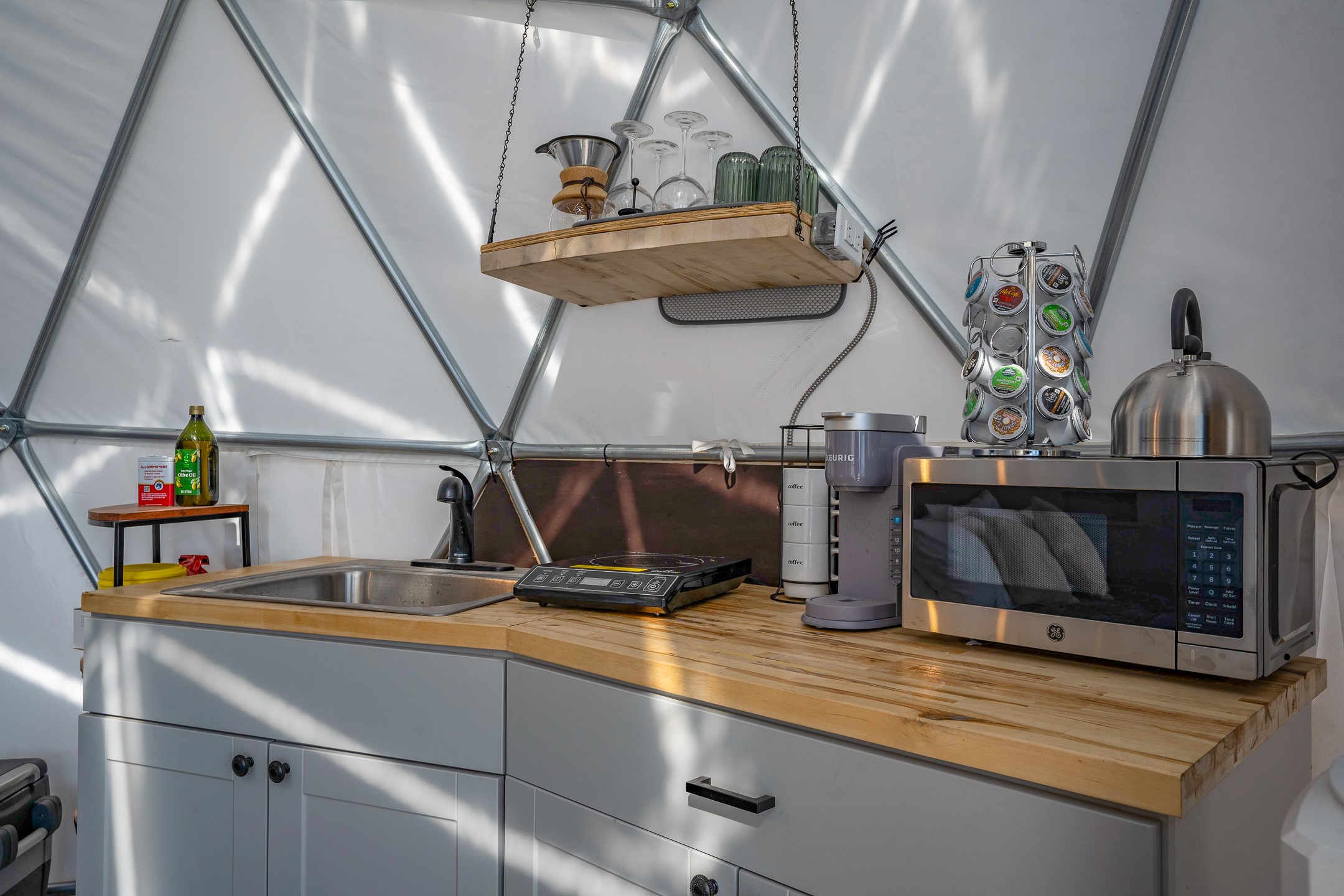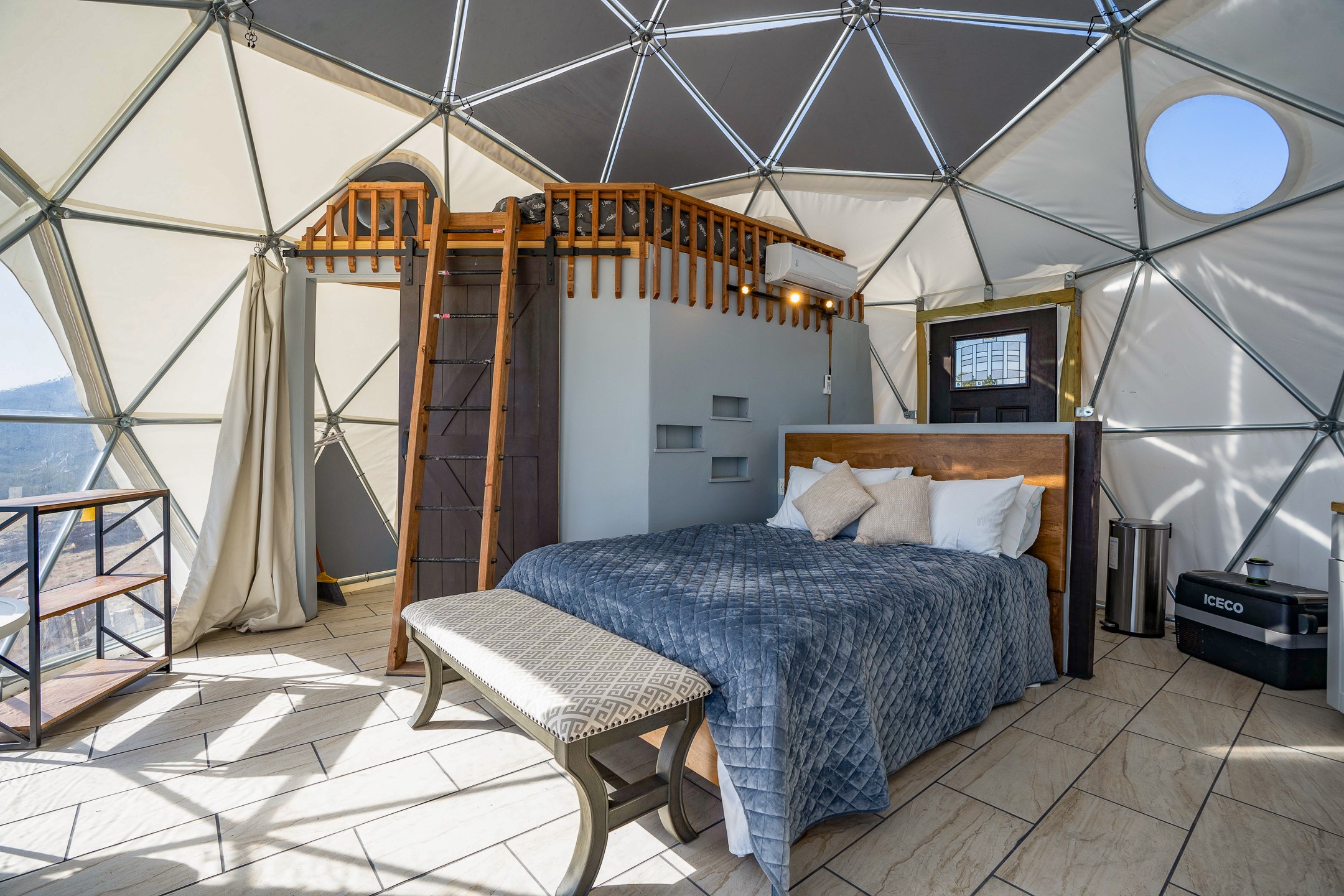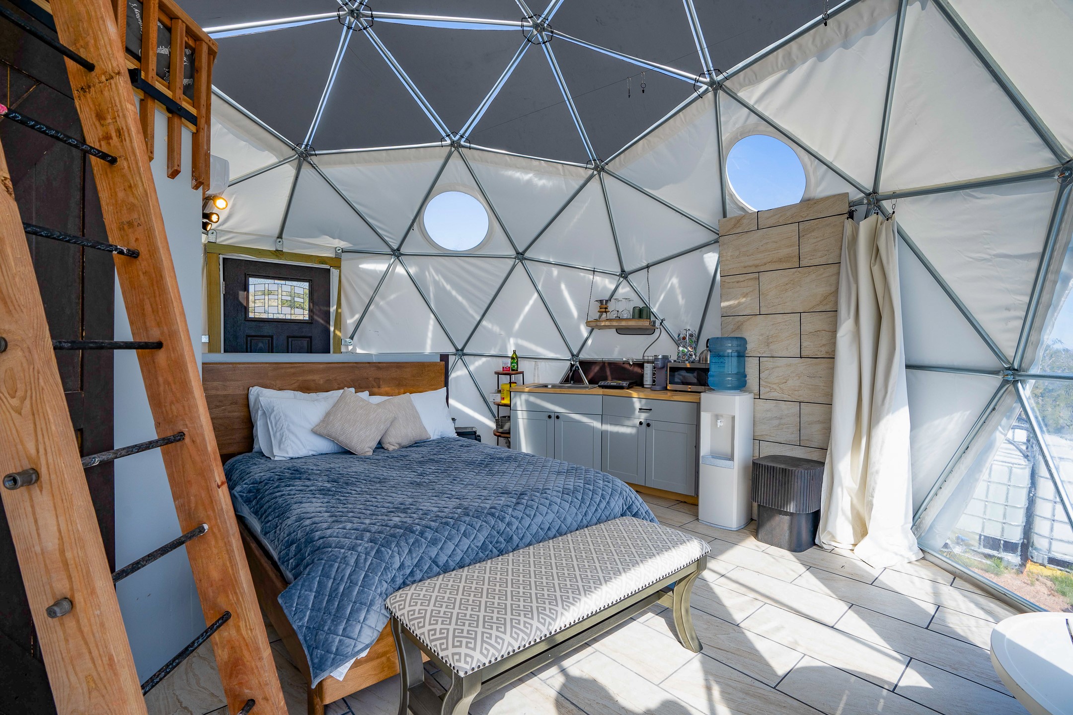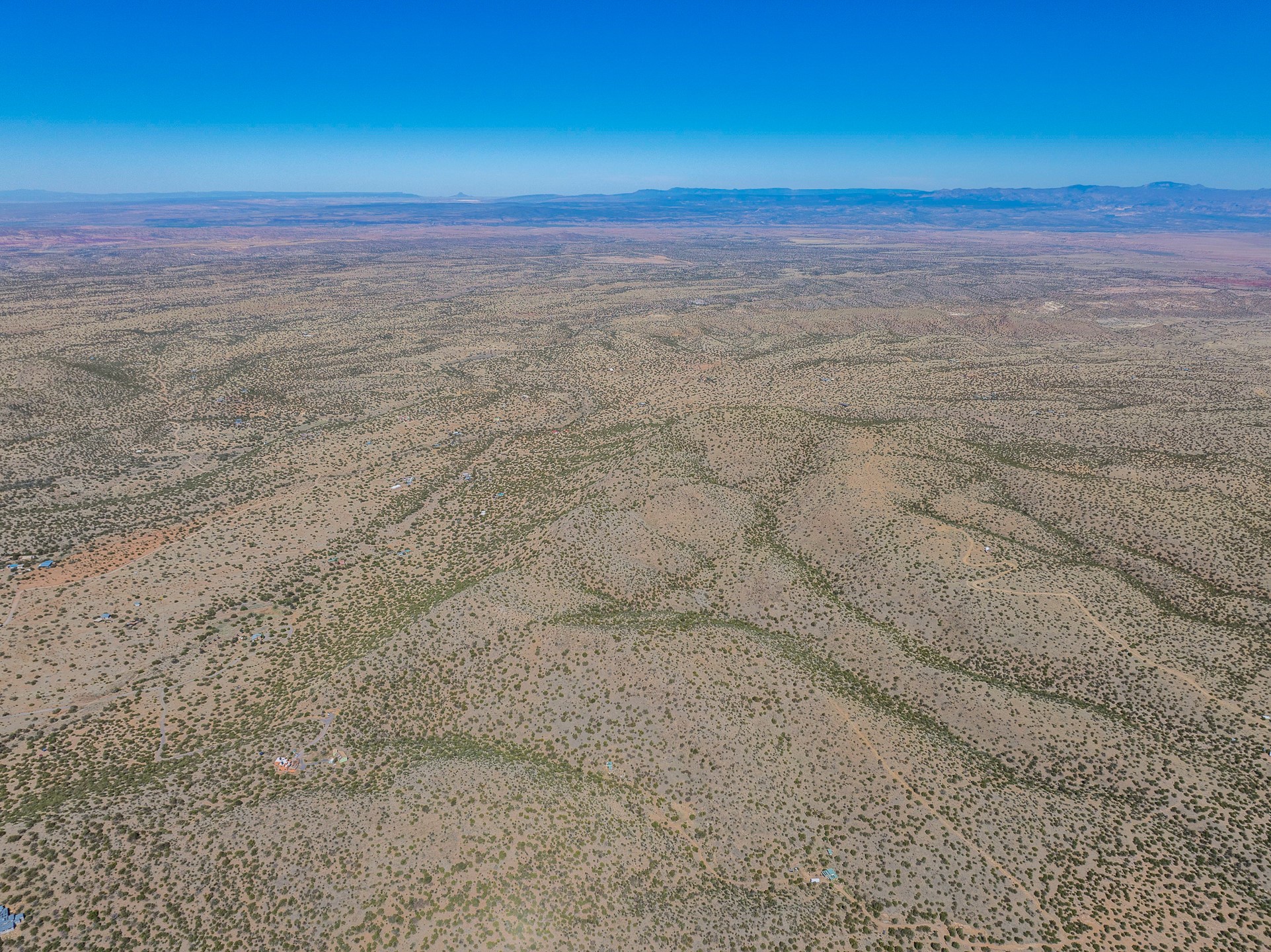 Two hundred and thirty mountain top acres with a PVC dome featuring all modern conveniences near Madrid. On two lots with two wells, this private getaway awaits the adventurous soul who wants to get above it all while still being connected. With 360 degree views from the mountain top, and the dome sited on a slope with amazing views of the Sangre de Cristo's, buyers will find this to be an incomparable view property. This far out, the Milky Way will shine bright, and the wood fired hot tub is the perfect place to stargaze from after a day of exploring the mountain. The dome has a small kitchen, bathroom, loft storage area, mini-split for heating and cooling, a luxurious glamping hideout or a cozy full time home. The solar system is modern and robust, and sewage is handled by an innovative bio-gas system. Closer than it feels, the property is just a half mile from the pavement, but that half mile is a steep and rocky climb, and a 4x4 with some clearance is recommended.
