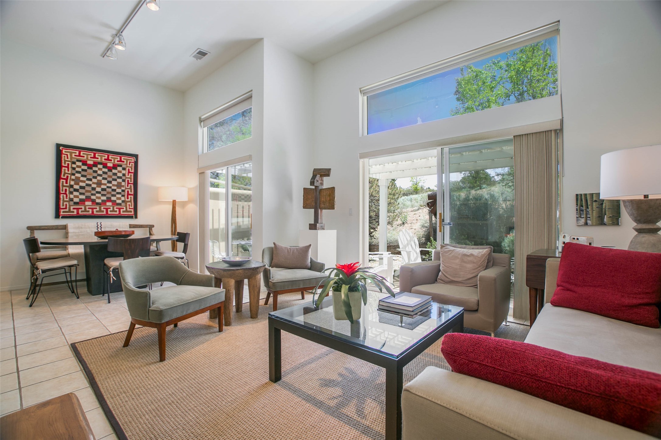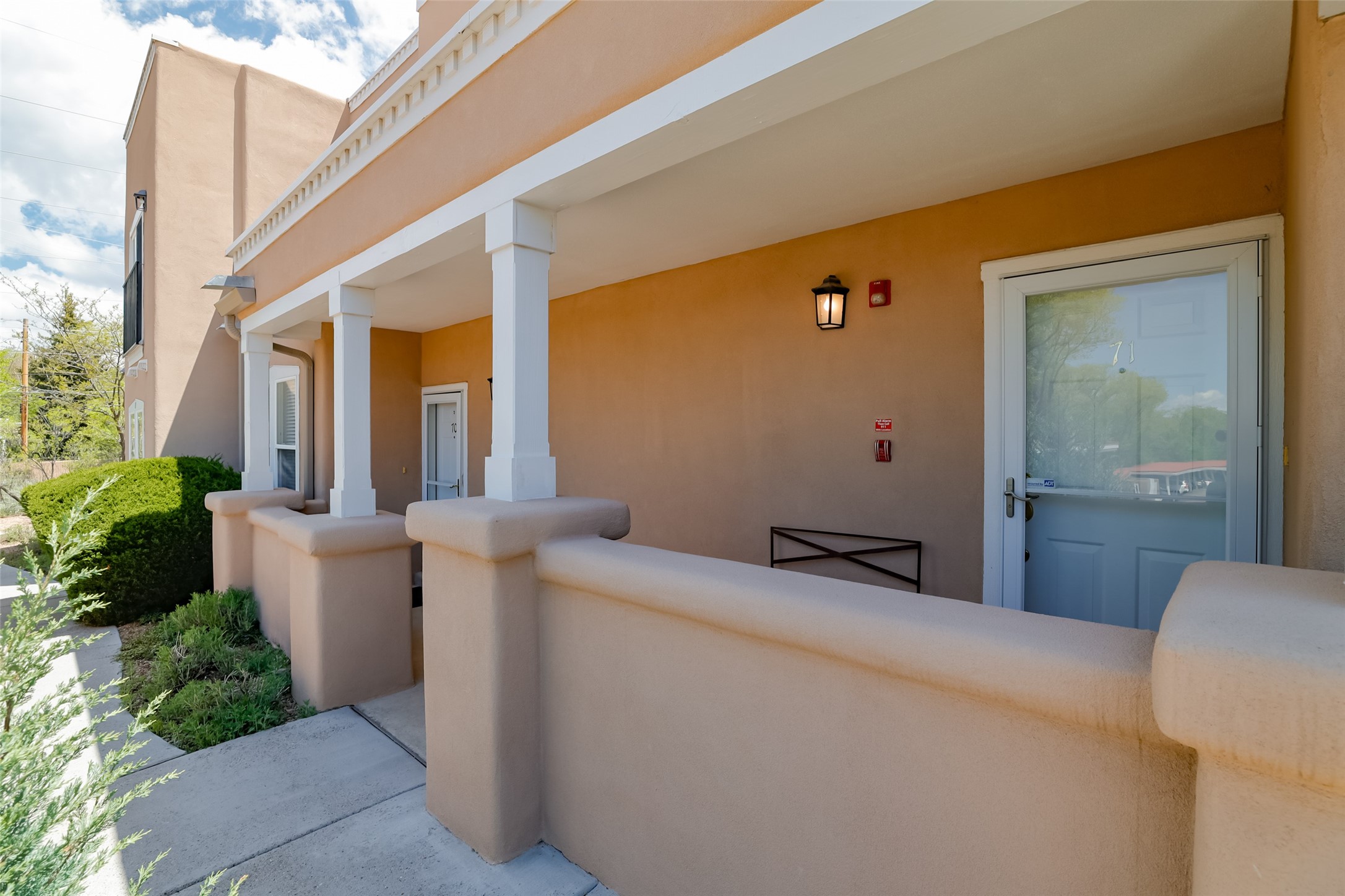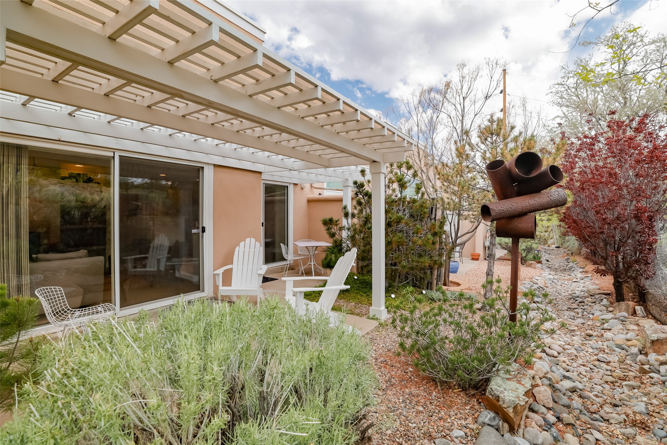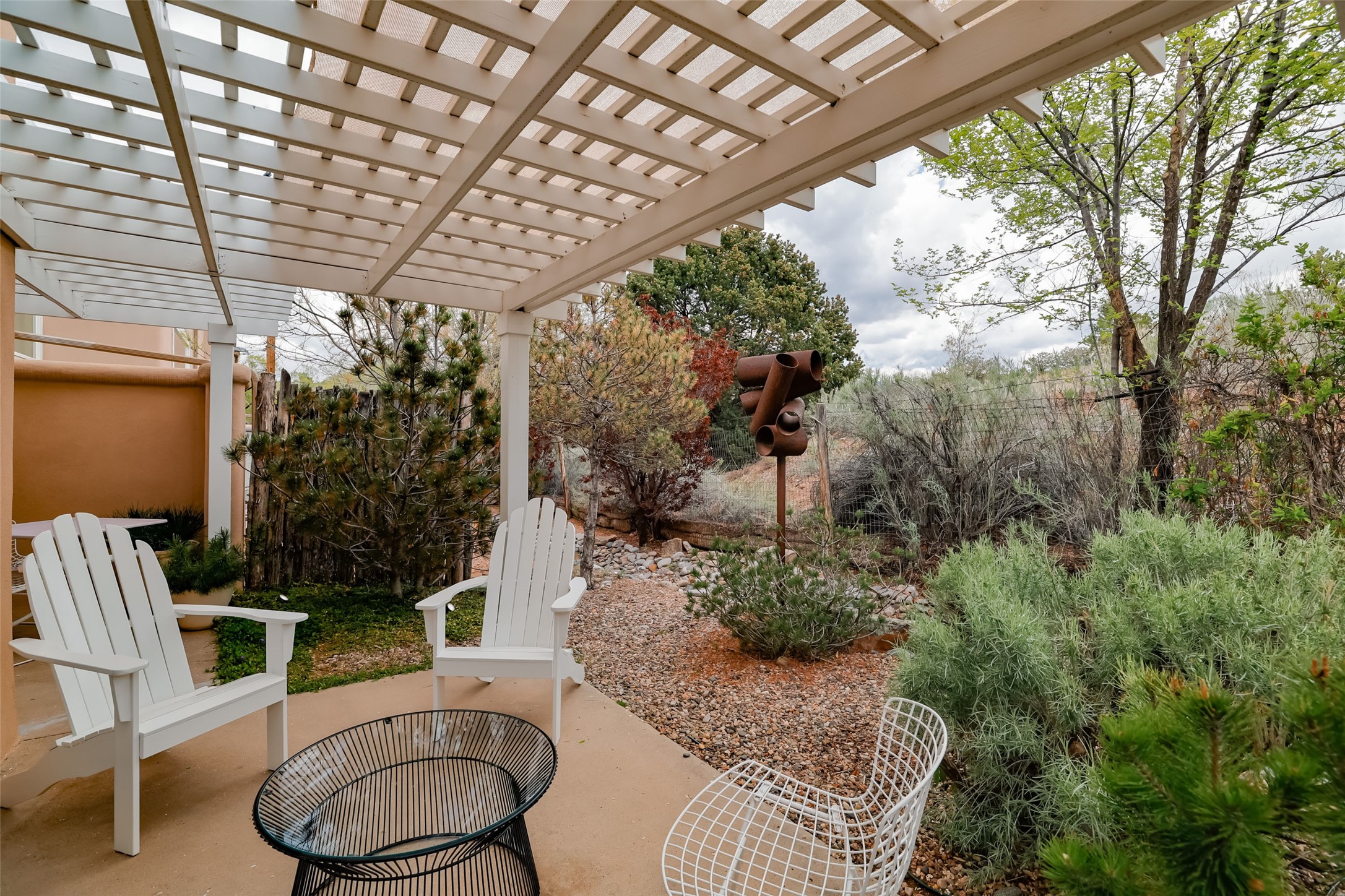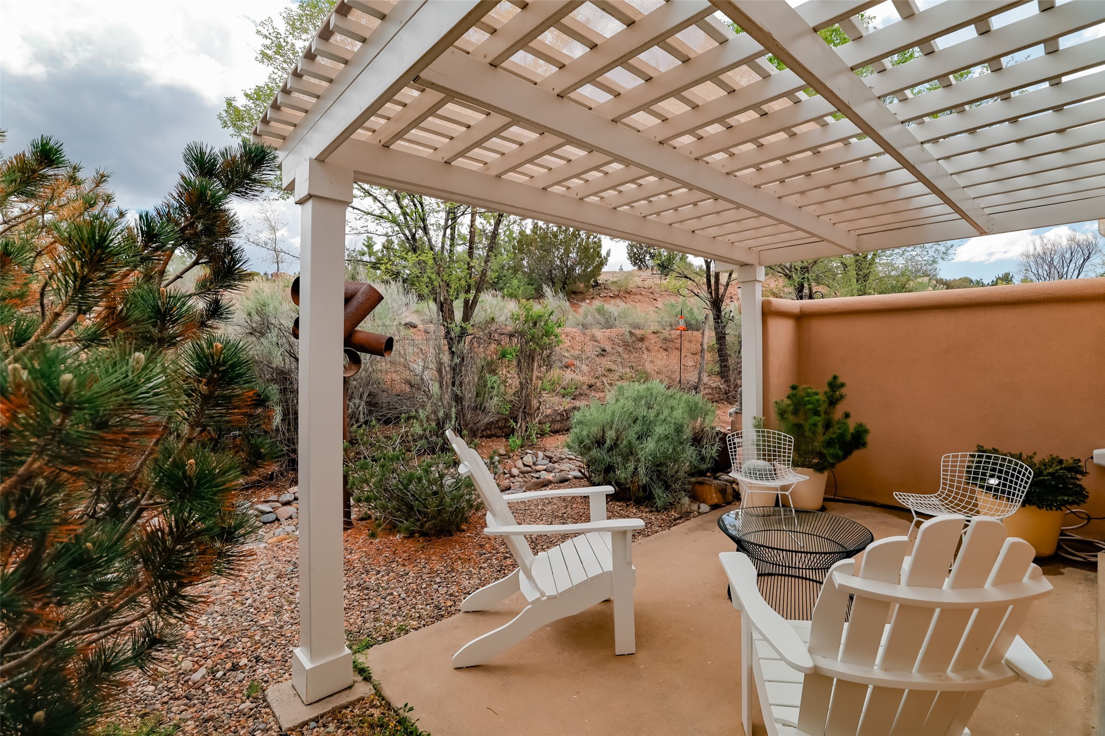 Price now includes all interior and exterior furnishings, This condo is a gem! Its location near the historic downtown district and Fort Marcy Park, along with the nearby hiking trails, shopping, and dining options, makes it a prime spot for leisure and convenience. The natural light flowing into the unit and the double patio doors leading to a cozy outdoor space with views offer a delightful living experience. With two spacious bedrooms, each with a walk-in closets, 2 full bathrooms, and a washer dryer set-up, this home provides comfort and practicality. The open layout of the main floor living area, complete with raised ceilings and a kitchen overlooking the living space with fireplace, adds to the charm of the property. The inclusion of tile floors, carpeted bedrooms, and a luxury feel throughout the home creates a comfortable and inviting atmosphere. Additionally, all furniture, dcor, artwork, and essentials for a "lock and leave" home adds further convenience for potential buyers. Steel sculpture outside does not convey. One private covered parking space and additional parking is available. It sounds like an ideal place for anyone seeking a private and luxurious living space in Historic Santa Fe!