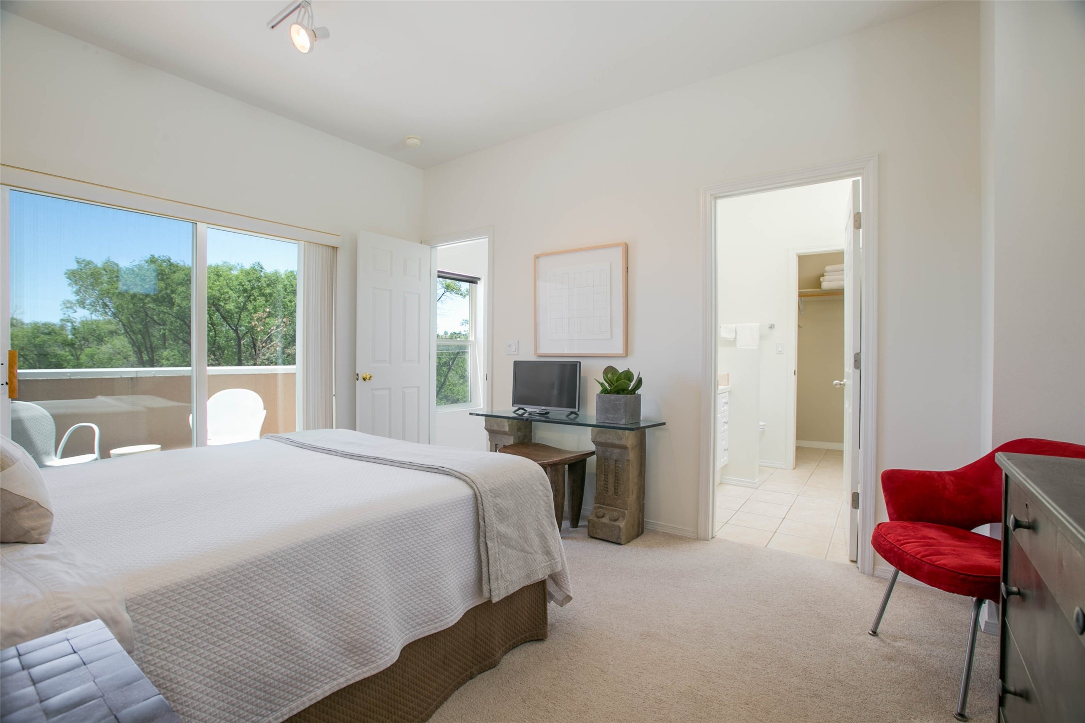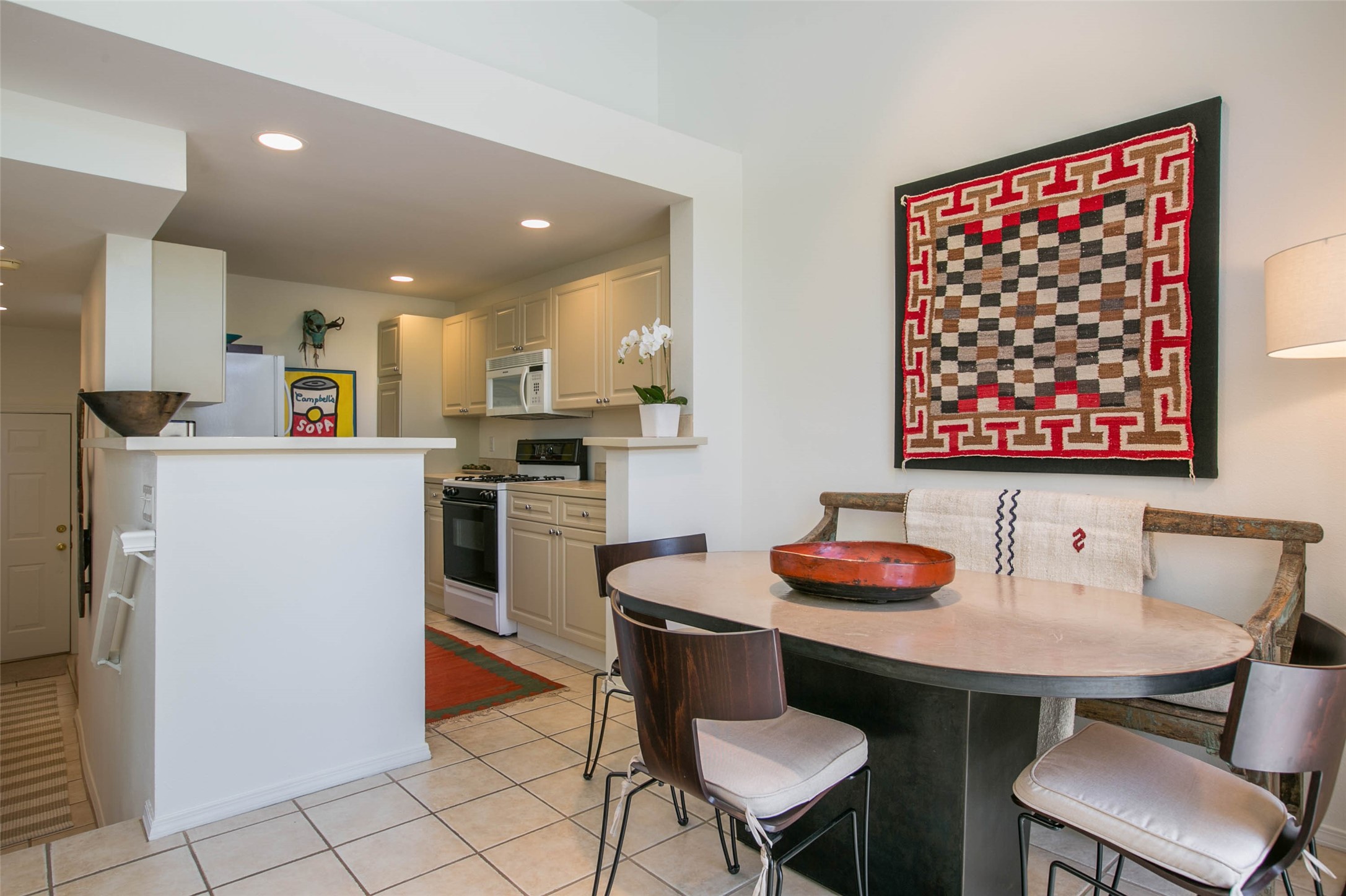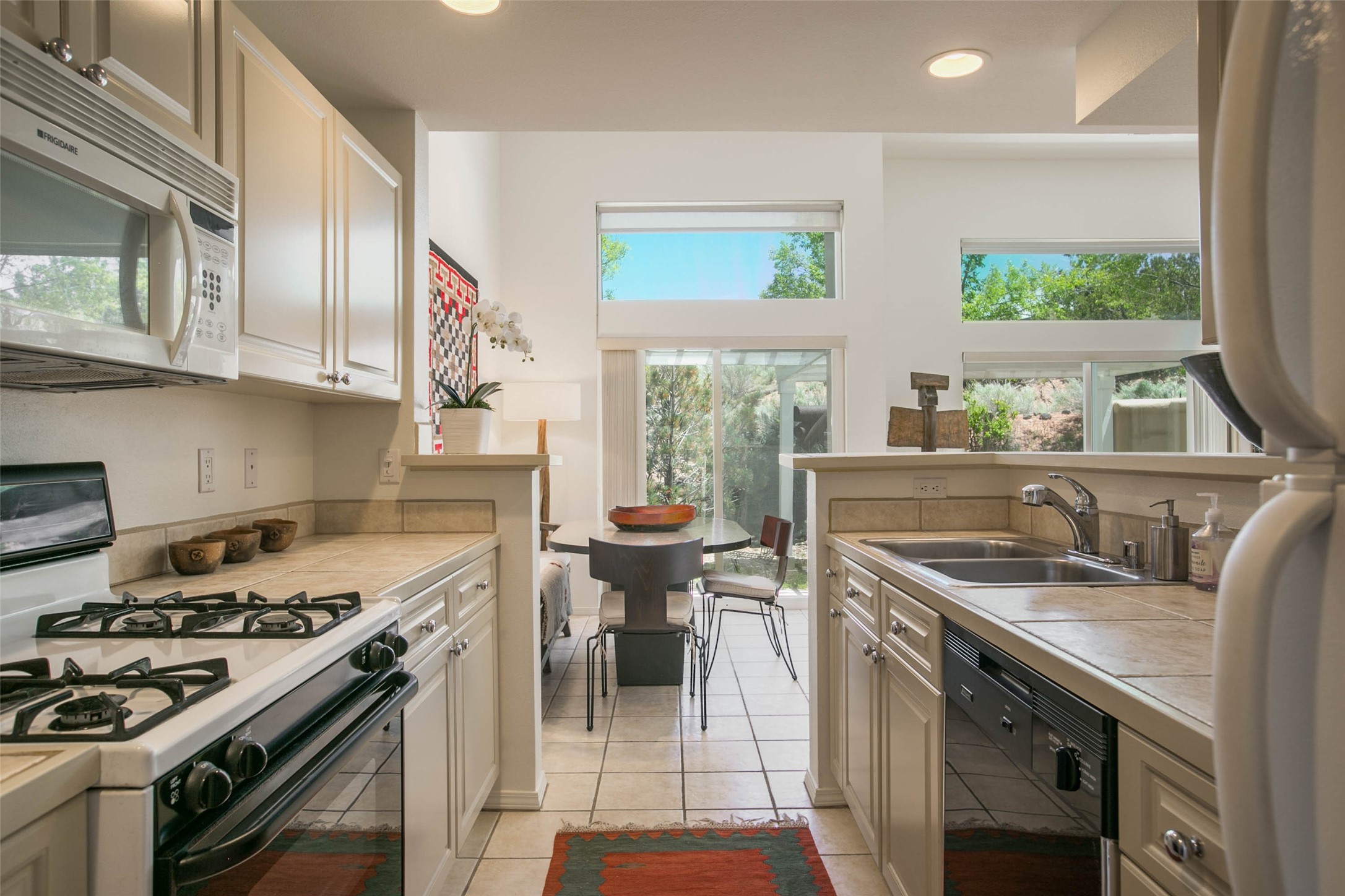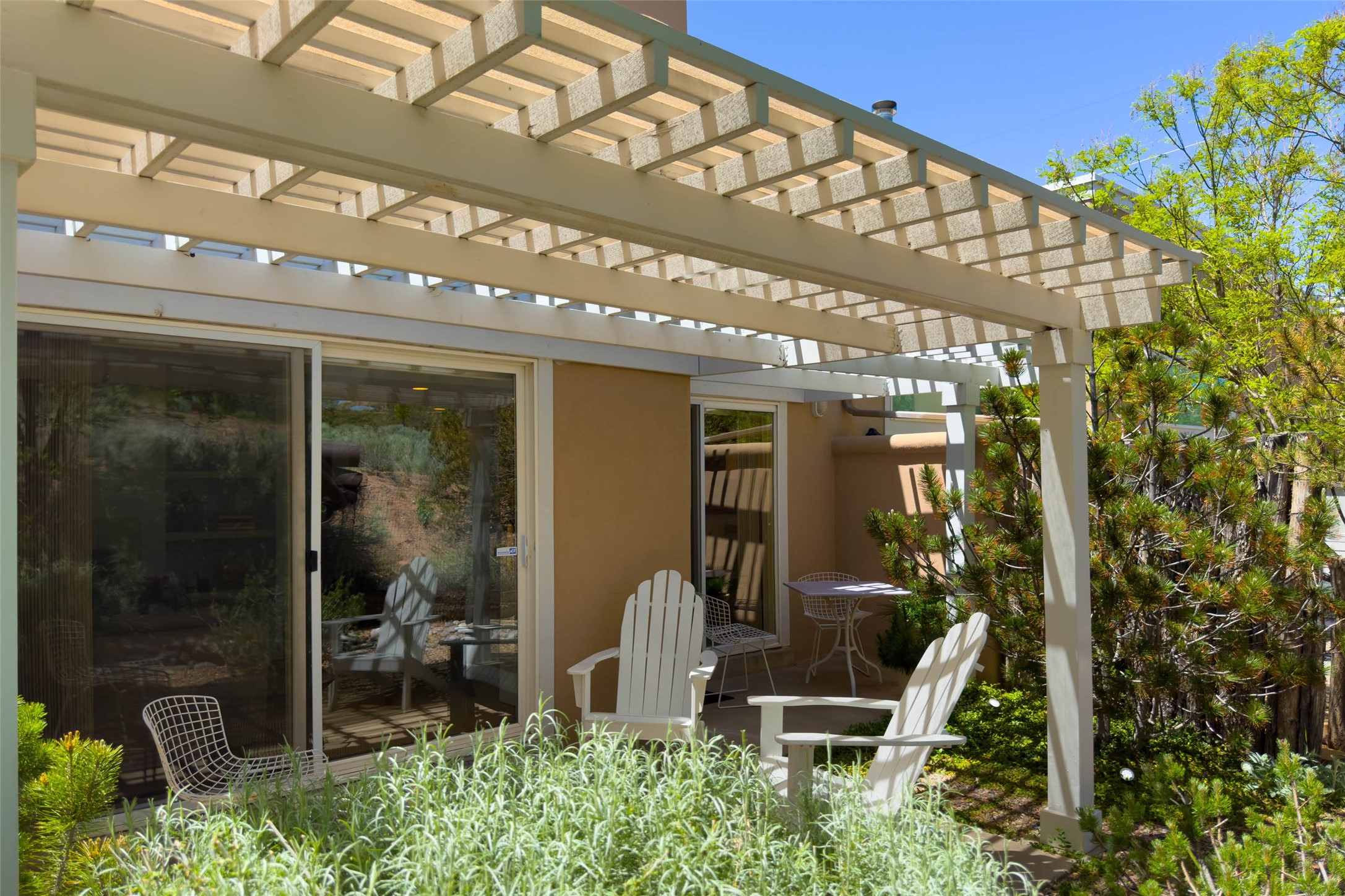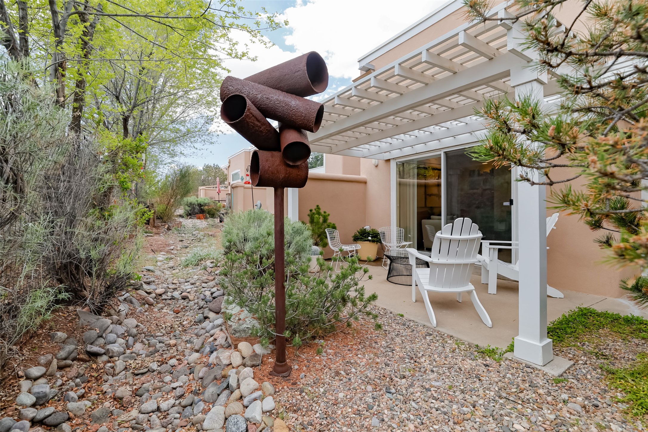 Price now includes all interior and exterior furnishings, This condo is a gem! Its location near the historic downtown district and Fort Marcy Park, along with the nearby hiking trails, shopping, and dining options, makes it a prime spot for leisure and convenience. The natural light flowing into the unit and the double patio doors leading to a cozy outdoor space with views offer a delightful living experience. With two spacious bedrooms, each with a walk-in closets, 2 full bathrooms, and a washer dryer set-up, this home provides comfort and practicality. The open layout of the main floor living area, complete with raised ceilings and a kitchen overlooking the living space with fireplace, adds to the charm of the property. The inclusion of tile floors, carpeted bedrooms, and a luxury feel throughout the home creates a comfortable and inviting atmosphere. Additionally, all furniture, dcor, artwork, and essentials for a "lock and leave" home adds further convenience for potential buyers. Steel sculpture outside does not convey. One private covered parking space and additional parking is available. It sounds like an ideal place for anyone seeking a private and luxurious living space in Historic Santa Fe!