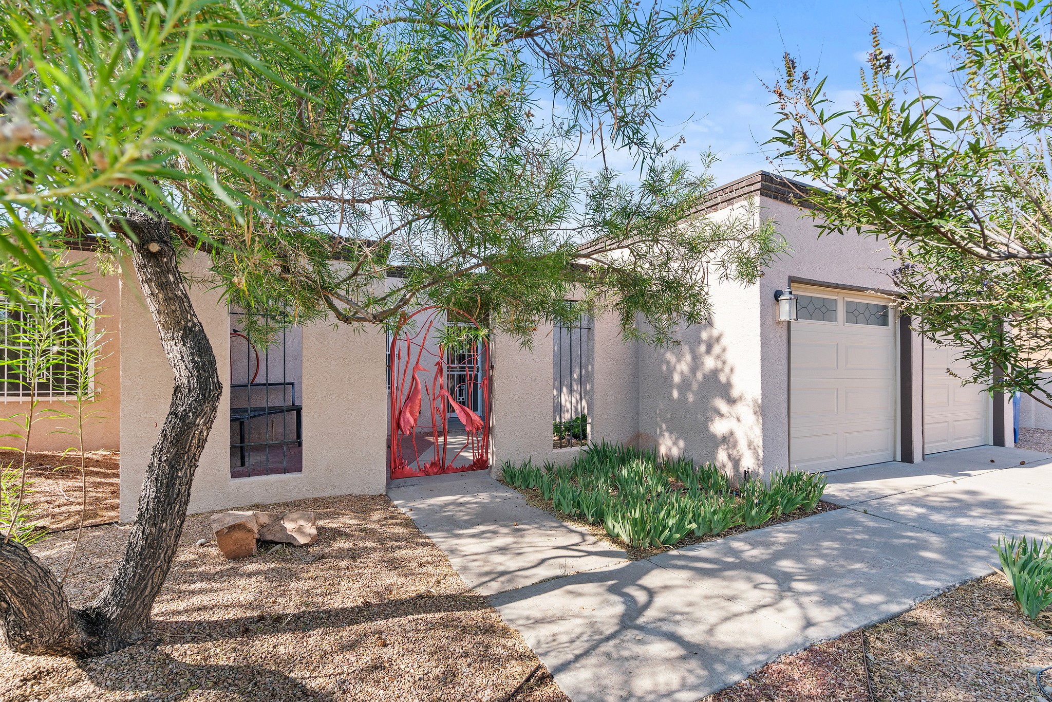 Welcome to this charming NE Heights Home. The location cannot be beat and is close to the freeway, shopping, restaurants and grocery stores!! This 3-bed, 2-bath gem features an open living room with a natural gas fireplace. This beautifully remodeled kitchen is the perfect place to entertain. This home includes a breakfast nook, and a separate dining room that could double as an office or playroom. The living room opens to a beautiful sunroom equipped with electricity, and lots of natural light! Step outside the sunroom to a beautifully landscaped well-maintained backyard with a Sandia Mountain view or step out front into the walled courtyard with raised flower beds, a custom gate and privacy. Enjoy a 2-car garage and extra storage throughout the entire home.