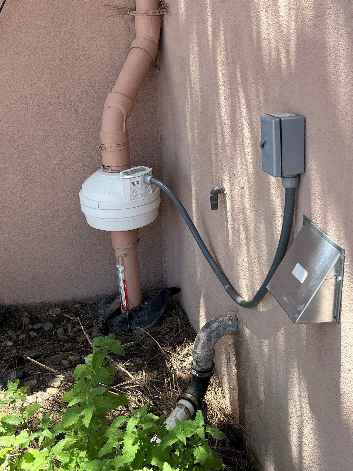 Updated charming ADOBE Passive solar home with a rustic contemporary vibe. It has two bedrooms and an office/bedroom, plus two full bathrooms on a large lot with STUNNING mountain views. The kitchen and both bathrooms were meticulously remodeled in late 2021, featuring sleek, quartz countertops, Fisher/ Paykel refrigerator, JennAir range, and a Bosch dishwasher. In addition, a new TPO roof, hot water tank, and a highly efficient Kuma wood-burning fireplace insert were also added. In 2023, two HVAC mini-split systems were installed, along with six inverters and a new washer/dryer. In 2024, a new hot tub/spa for relaxing and viewing the stellar sunsets, night sky, and bright stars. The primary bedroom features a kiva fireplace, a Trombe wall, and an en-suite bathroom. The bedrooms are on opposite sides of the home with private courtyards. The heated two-car garage has storage shelves and a workbench. The side yard is fully fenced and great for pets. Enjoy miles of walking and biking trails, a community center with a pool, tennis, pickleball courts, and dog parks. El Dorado has its own grocery store, convenience store, post office, gym, clinic, hardware store, senior center, restaurants, etc.. The home is also within blocks of one of the more highly regarded elementary schools in Santa Fe. All within a 15-20 minute drive to Santa Fe.