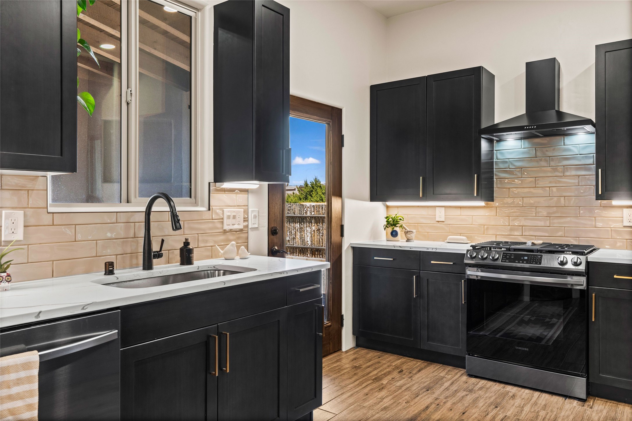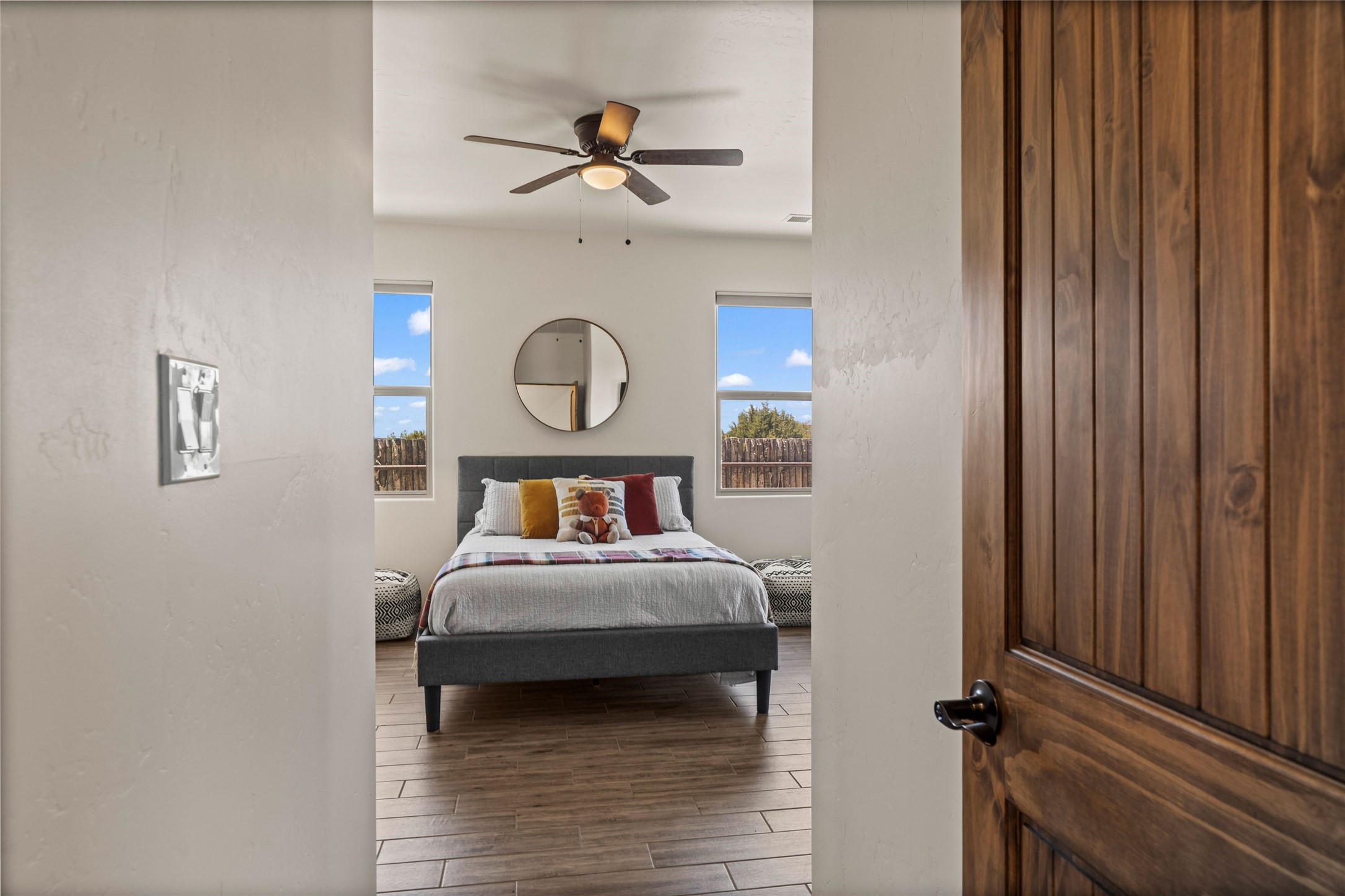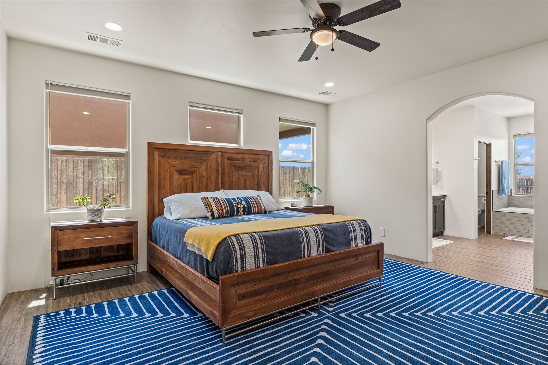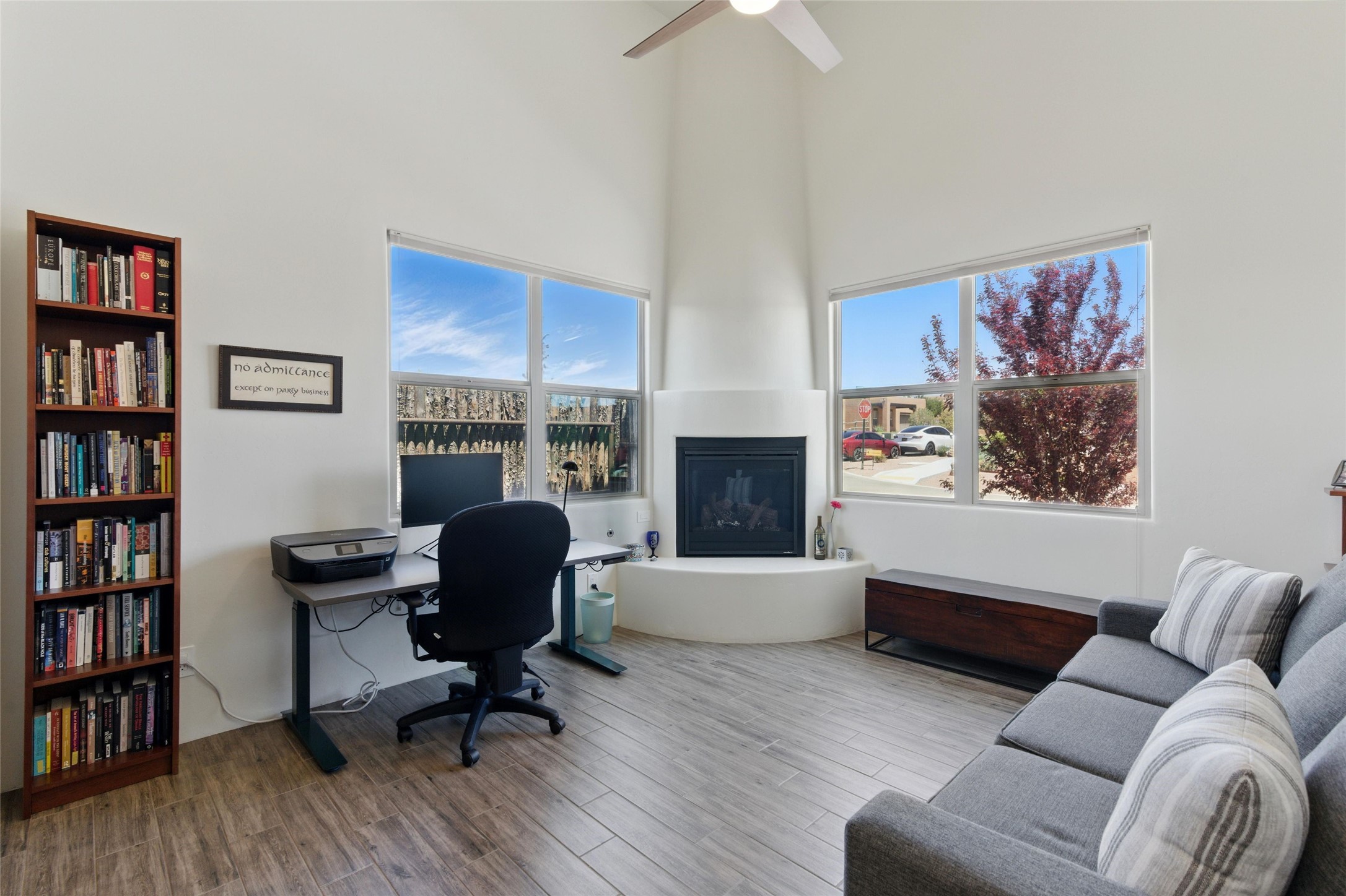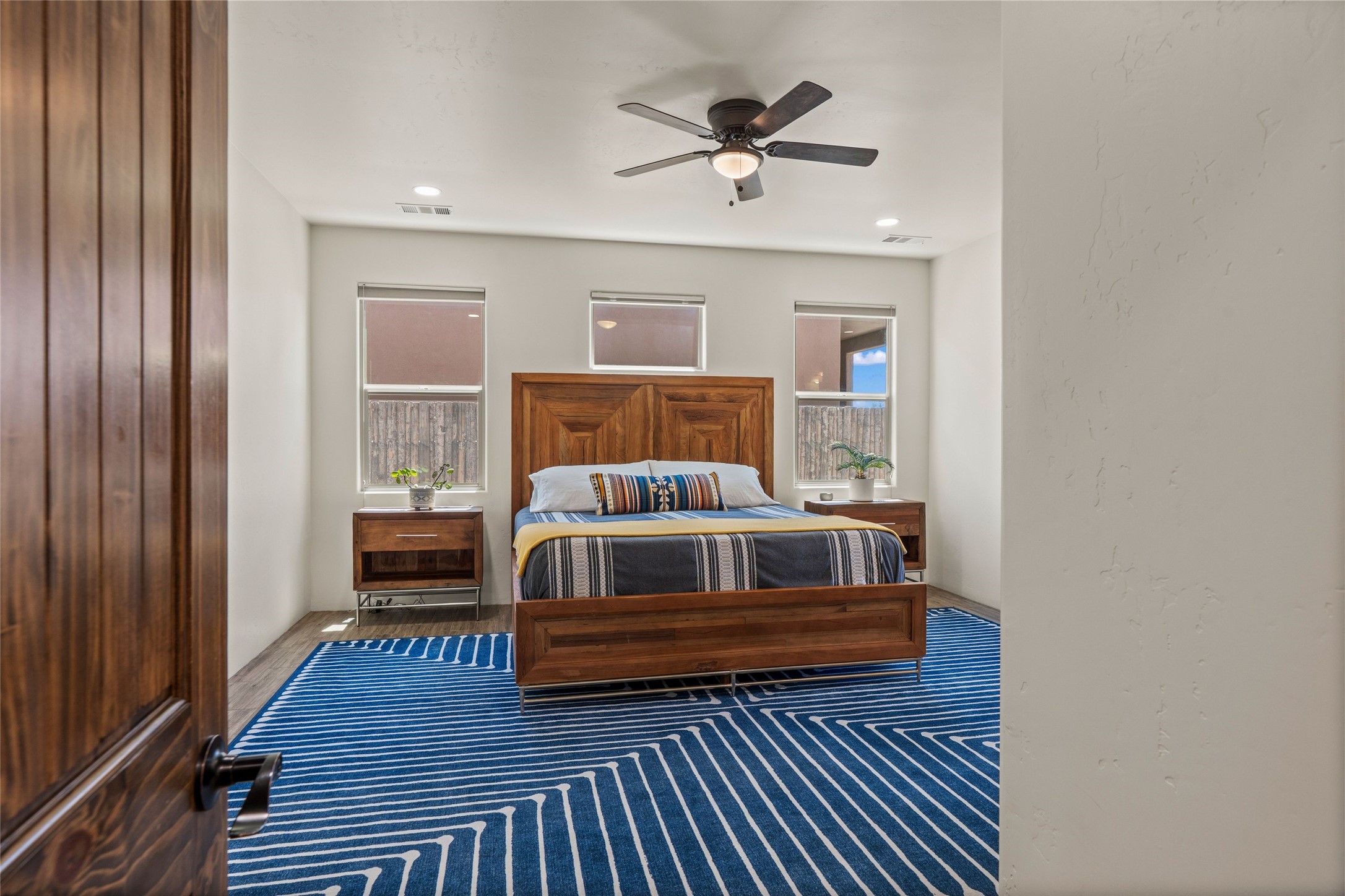 Outstanding property nestled in the community of La Pradera. This 3 bedroom, 4 bath residence offers modern luxury and an effortless living environment. Built just three years ago & lightly lived in - this residence boasts a large chef's kitchen including quartz countertops, subway tile backsplash, island with secondary sink, dual ovens, a sleek black stainless steel appliance package, & pantry. Relax & enjoy the open floor plan with high ceilings, square vigas, as well as a cozy gas fireplace in the living room. The kitchen & dining areas are adjacent to the living room, providing great functionality with plenty of space for entertaining. The wonderful high-end finishes throughout this home were personally selected by the discerning homeowners. Each of the three bedrooms feature an ensuite bathroom, ensuring privacy & additional comfort. The bedroom off the entry has a Kiva fireplace & lots of natural light. The other secondary bedroom has a large walk-in closet. The spacious primary suite includes a walk-in closet, a luxurious bathroom with walk-in shower, soaking tub, & dual sinks. Large laundry room with sink & many built-ins add to the convenience & ease of this highly desirable property. This well-designed home features tile floors throughout, as well an abundant amount of storage. The property has a three car garage with My Q garage door openers, two storage closets, pre-wiring for an EV charger, & a tankless water heater. The Nest thermostat & Ring doorbell adds a touch of smart home integration. Multiple covered patios with brick flooring, & a gas fireplace adds to the ambiance of the outdoor spaces - creating an inviting space to enjoy year round. With only one neighboring home, this property enjoys a prime location next to a beautifully landscaped open space & backs onto one of the many scenic walking trails. This home is also set farther from I-25 than many others in the neighborhood. Close to many south side restaurants & shops. It's a must see!