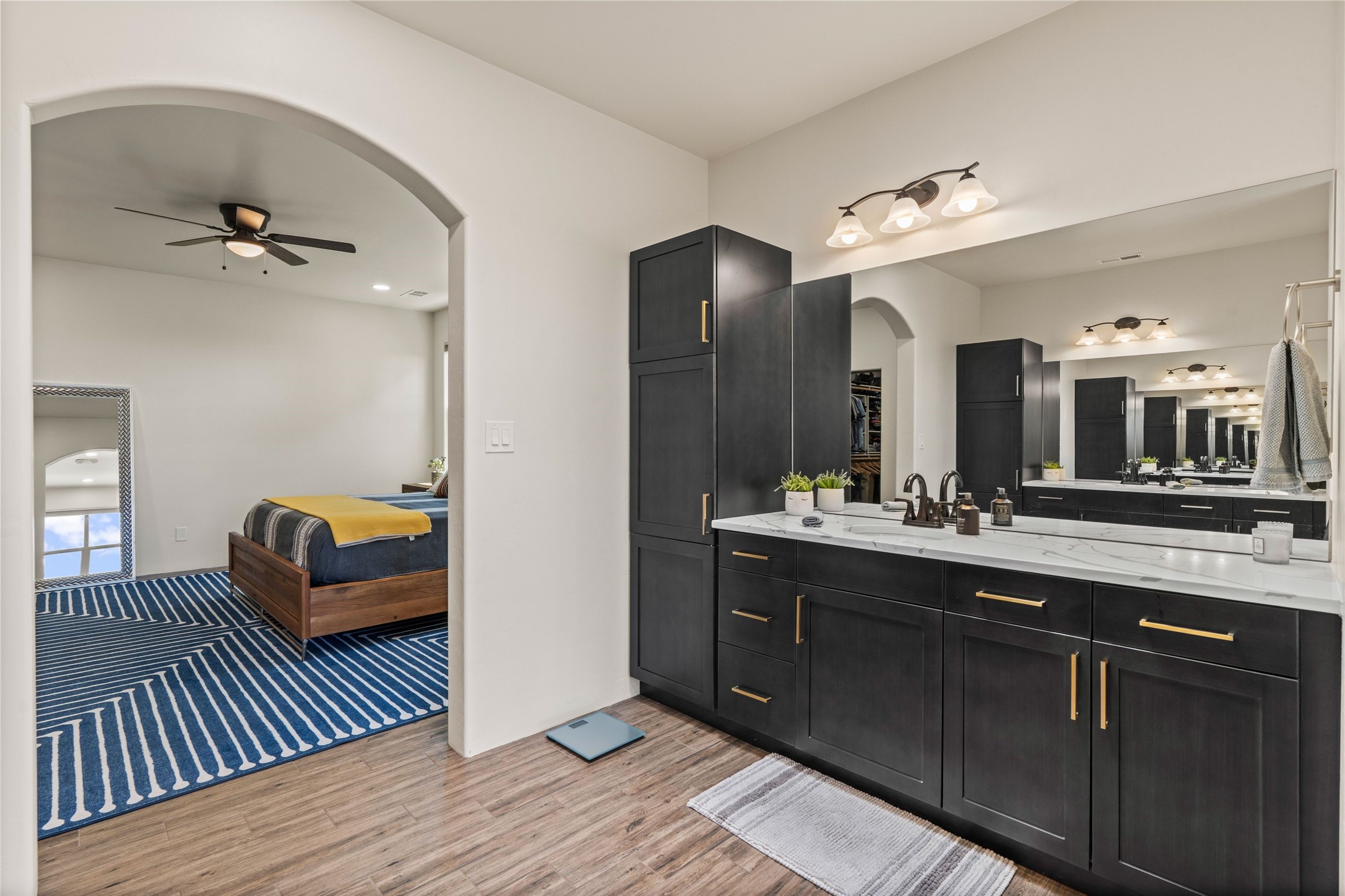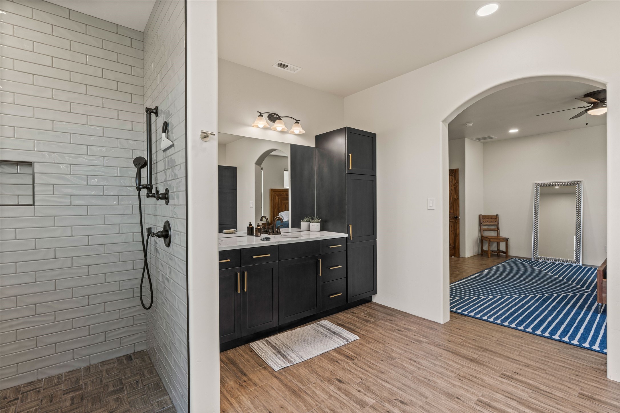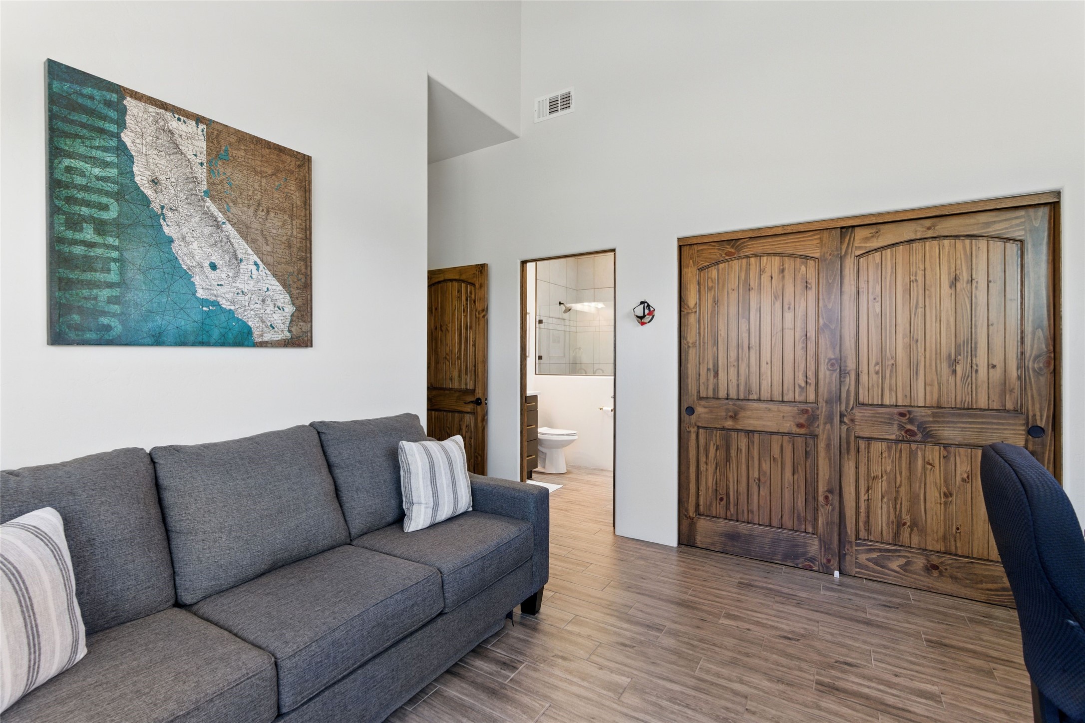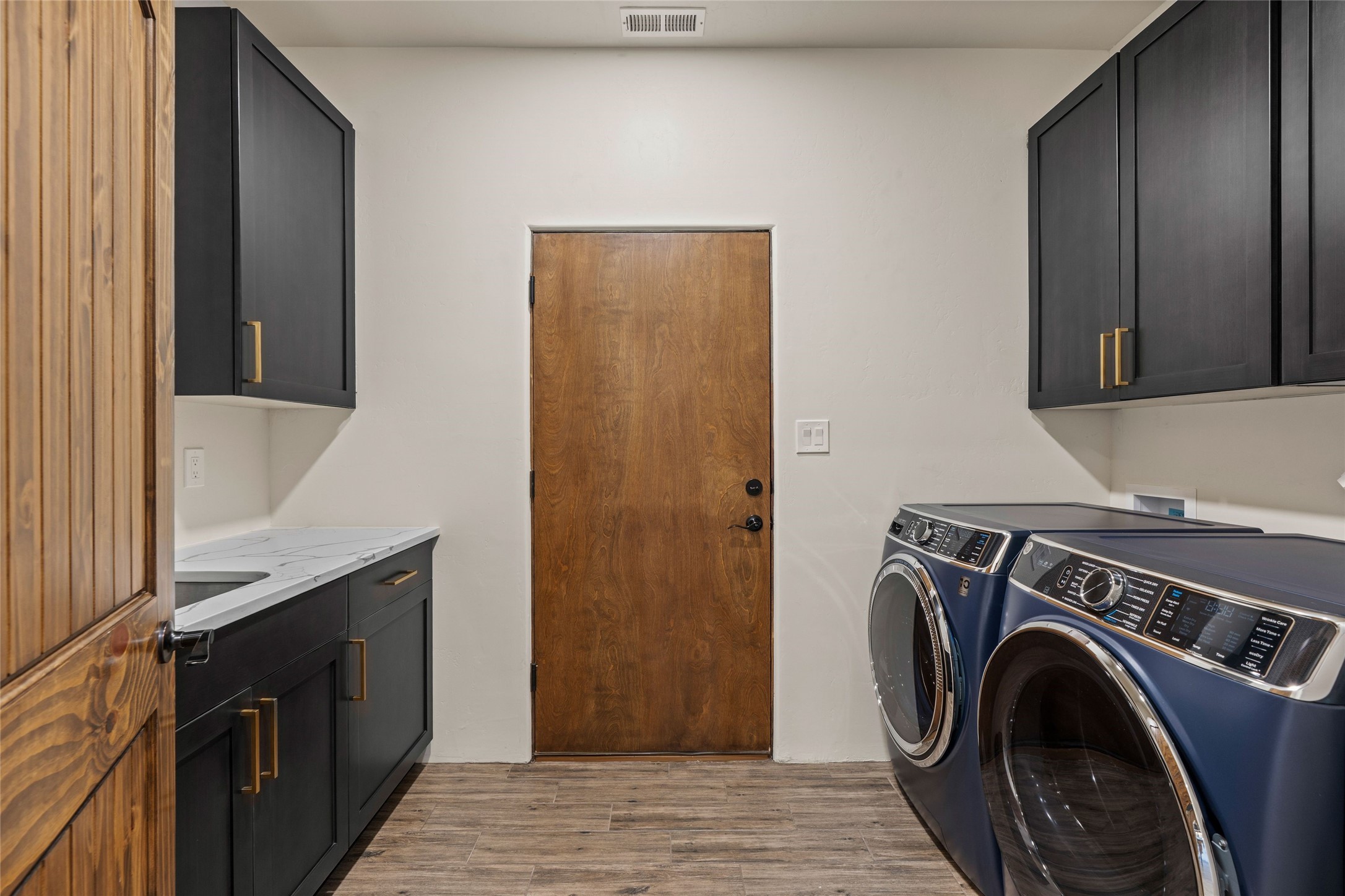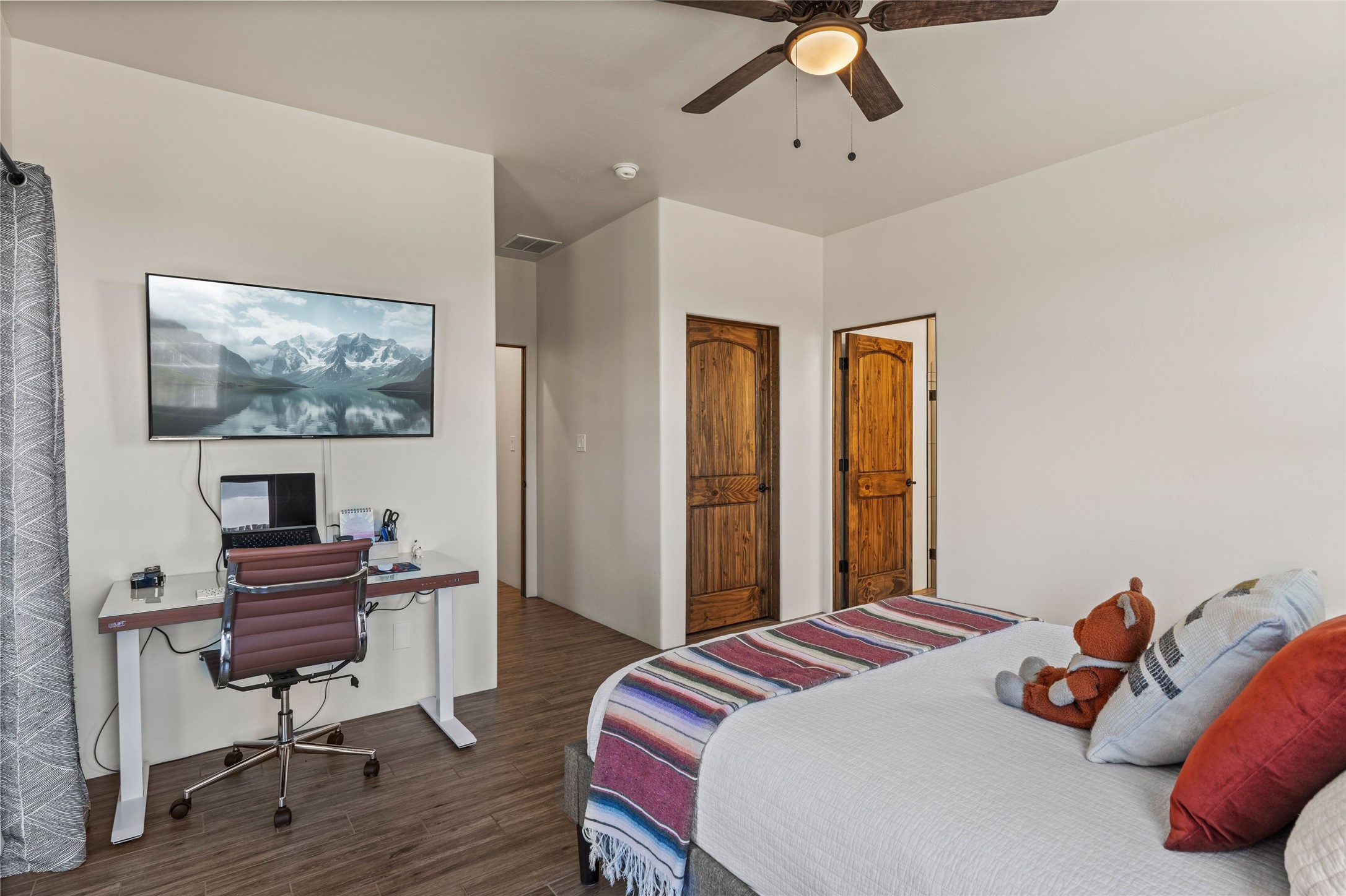 Outstanding property nestled in the community of La Pradera. This 3 bedroom, 4 bath residence offers modern luxury and an effortless living environment. Built just three years ago & lightly lived in - this residence boasts a large chef's kitchen including quartz countertops, subway tile backsplash, island with secondary sink, dual ovens, a sleek black stainless steel appliance package, & pantry. Relax & enjoy the open floor plan with high ceilings, square vigas, as well as a cozy gas fireplace in the living room. The kitchen & dining areas are adjacent to the living room, providing great functionality with plenty of space for entertaining. The wonderful high-end finishes throughout this home were personally selected by the discerning homeowners. Each of the three bedrooms feature an ensuite bathroom, ensuring privacy & additional comfort. The bedroom off the entry has a Kiva fireplace & lots of natural light. The other secondary bedroom has a large walk-in closet. The spacious primary suite includes a walk-in closet, a luxurious bathroom with walk-in shower, soaking tub, & dual sinks. Large laundry room with sink & many built-ins add to the convenience & ease of this highly desirable property. This well-designed home features tile floors throughout, as well an abundant amount of storage. The property has a three car garage with My Q garage door openers, two storage closets, pre-wiring for an EV charger, & a tankless water heater. The Nest thermostat & Ring doorbell adds a touch of smart home integration. Multiple covered patios with brick flooring, & a gas fireplace adds to the ambiance of the outdoor spaces - creating an inviting space to enjoy year round. With only one neighboring home, this property enjoys a prime location next to a beautifully landscaped open space & backs onto one of the many scenic walking trails. This home is also set farther from I-25 than many others in the neighborhood. Close to many south side restaurants & shops. It's a must see!