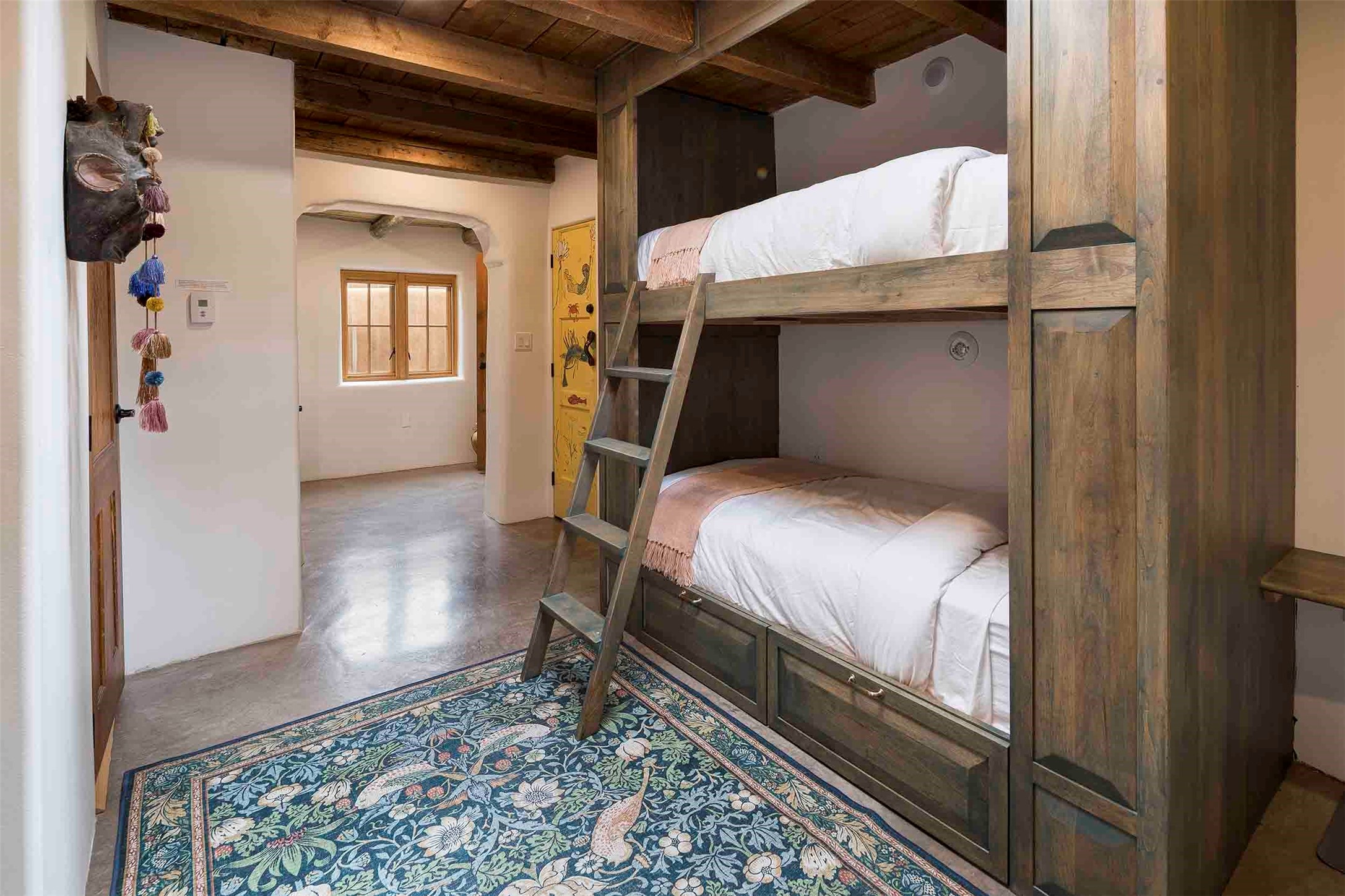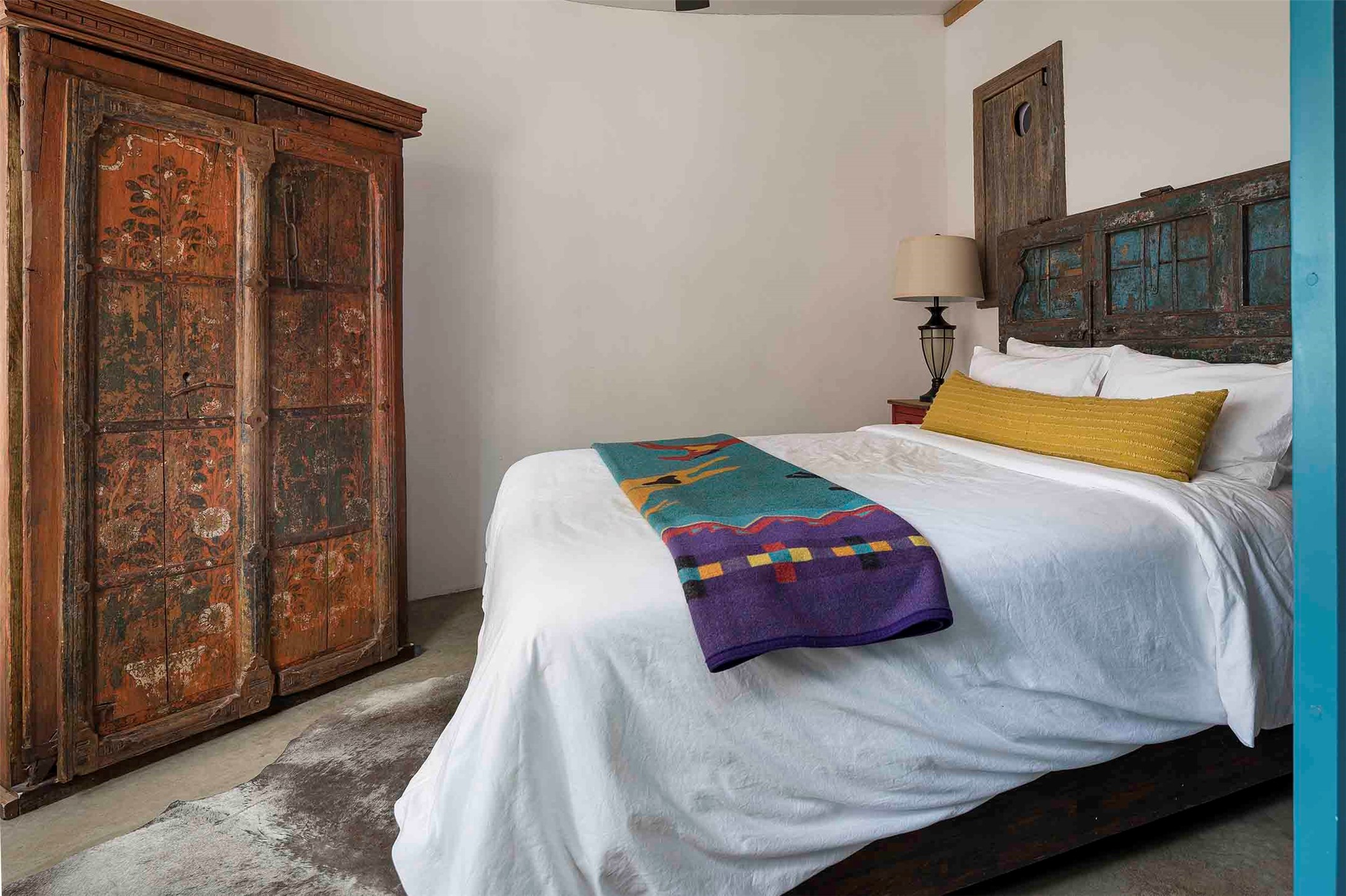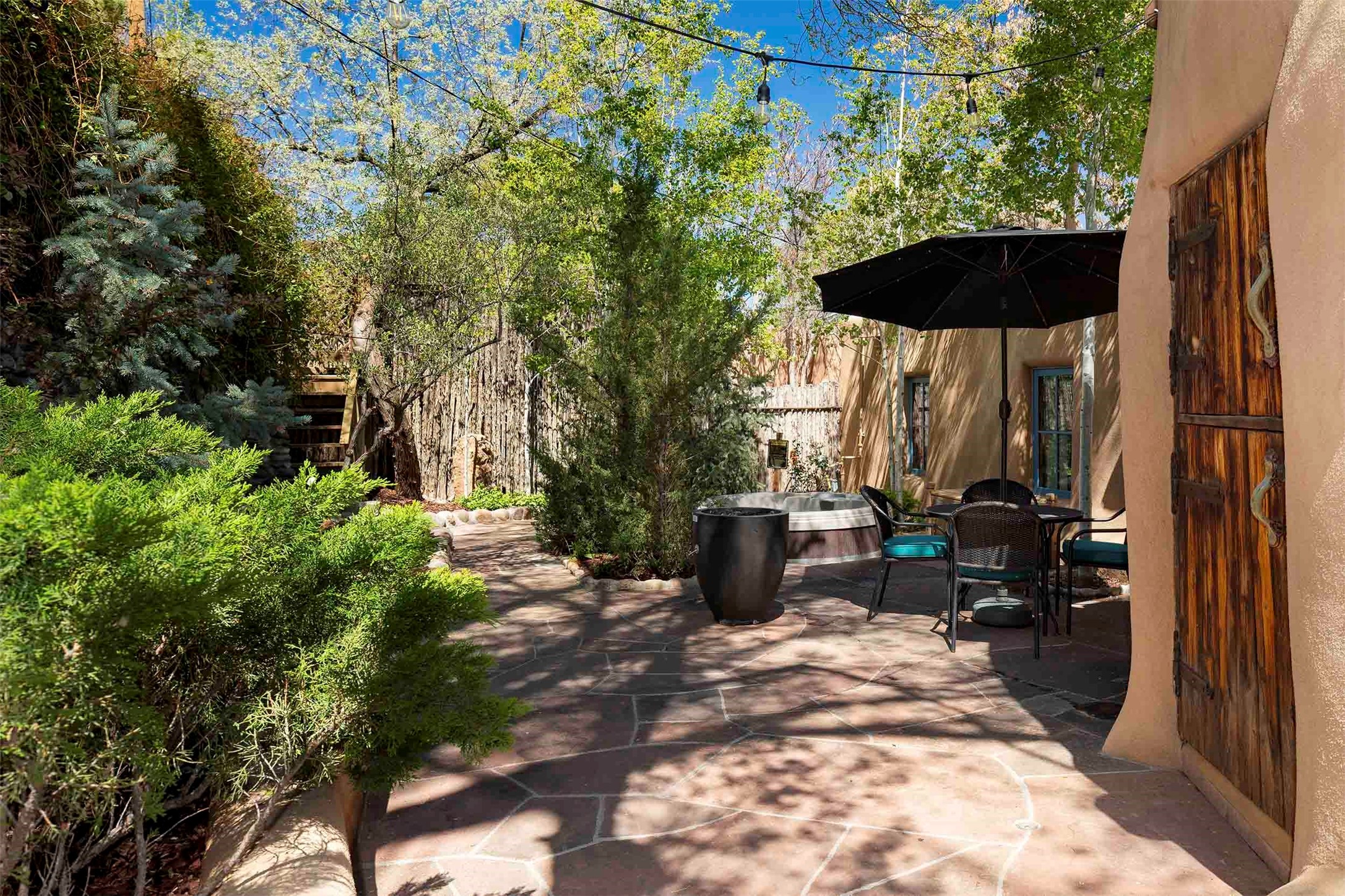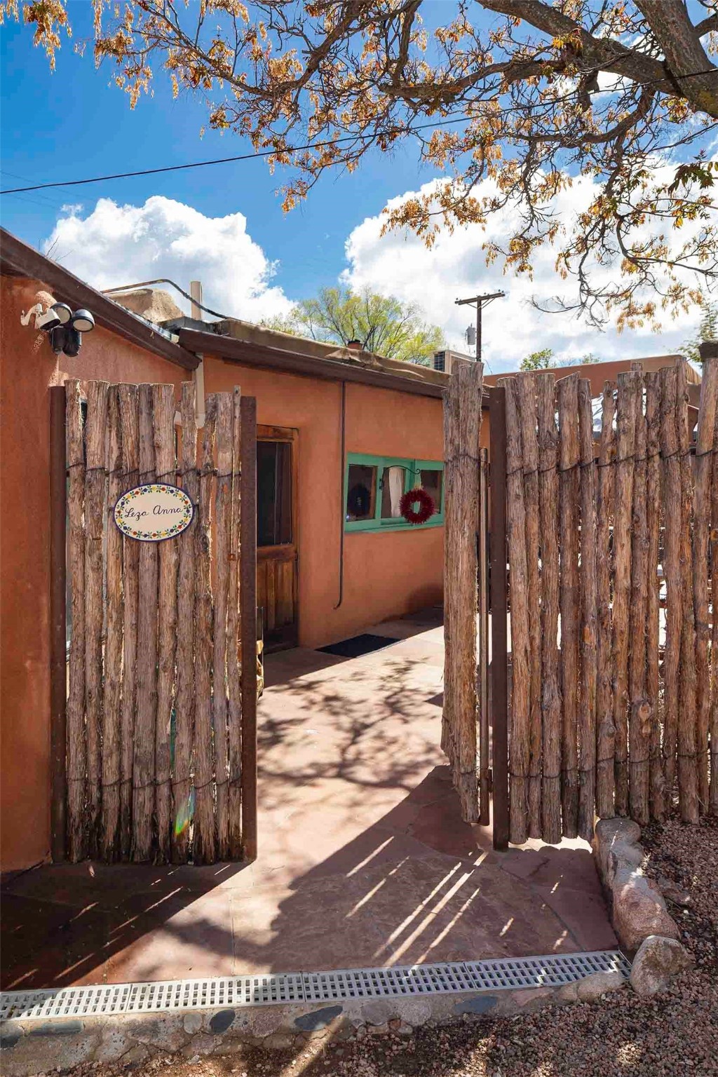 The history of Canyon Road is alive in the artisanal character of these two, Santa Fe classics. This successful Short Term Rental, set on a double lot, offers parking and storage in a desirable setting close to Patrick Smith Park. Each unique residence has been remodeled to a modern standard of comfort yet retains the imprint of its storied past. The back house, said to have started as a stable and tack shop in the early 1800s, has an Acequia Madre address and a dedicated parking spot at the top of a wooden staircase. A flagstone path and patio, with space for dining, a hot tub and a manageable dash of greenery, borders the home. The ceramic artwork of artist and former owner, Patricia Hoback, adds delightful dimension to both properties. The front house, rumored to have been a dance hall in the late 1800s, was Hoback's gallery. Between the two structures is a sheltered patio for alfresco meals and outdoor leisure, a Hoback artwork winking down from the wall. Enjoy the two dwellings for yourself, rent one for offset income, or rent both for maximum investment return. Buyers seeking history, authentic quality, and flexibility in the walkable heart of the Historic Eastside need look no further than this charismatic duet.