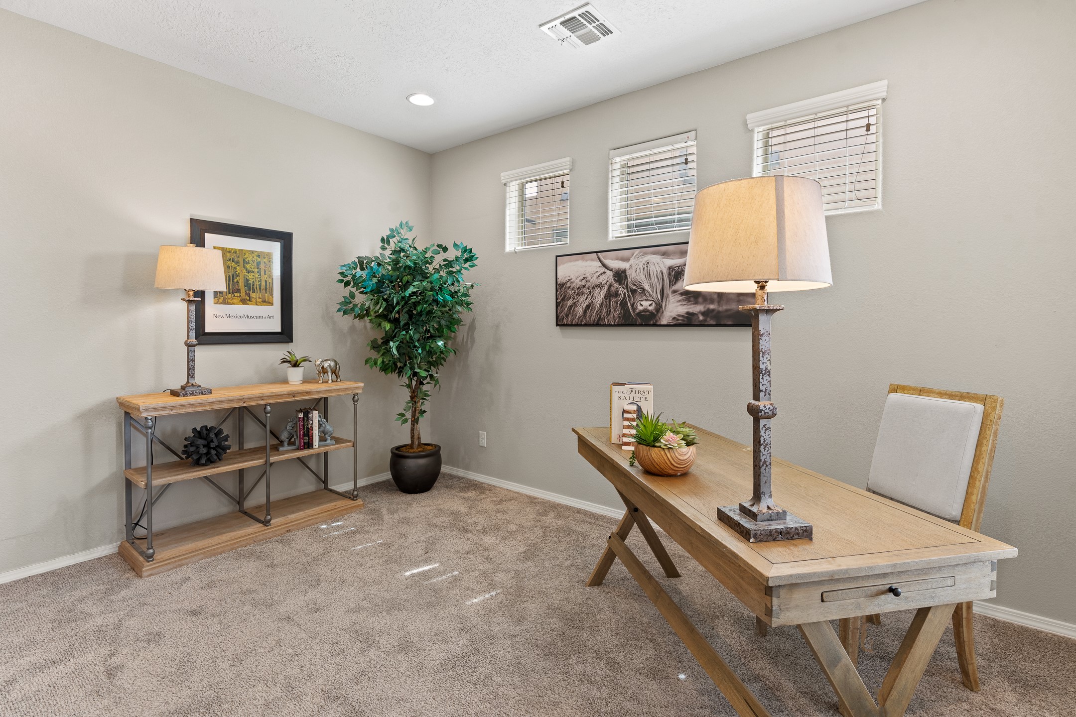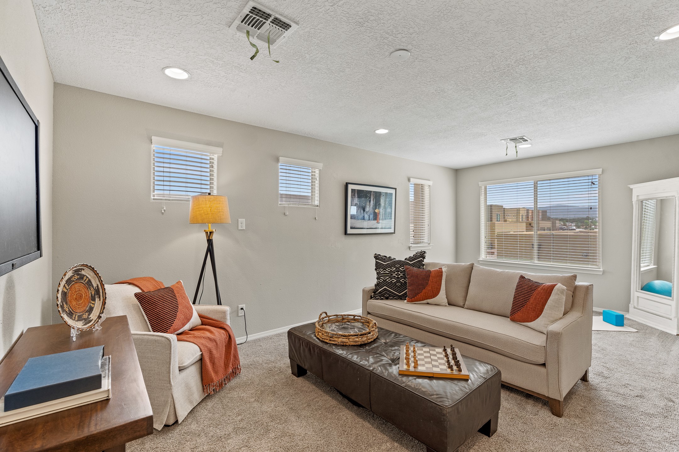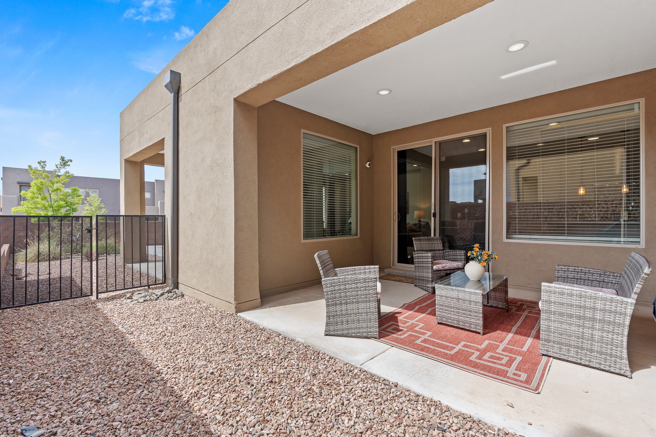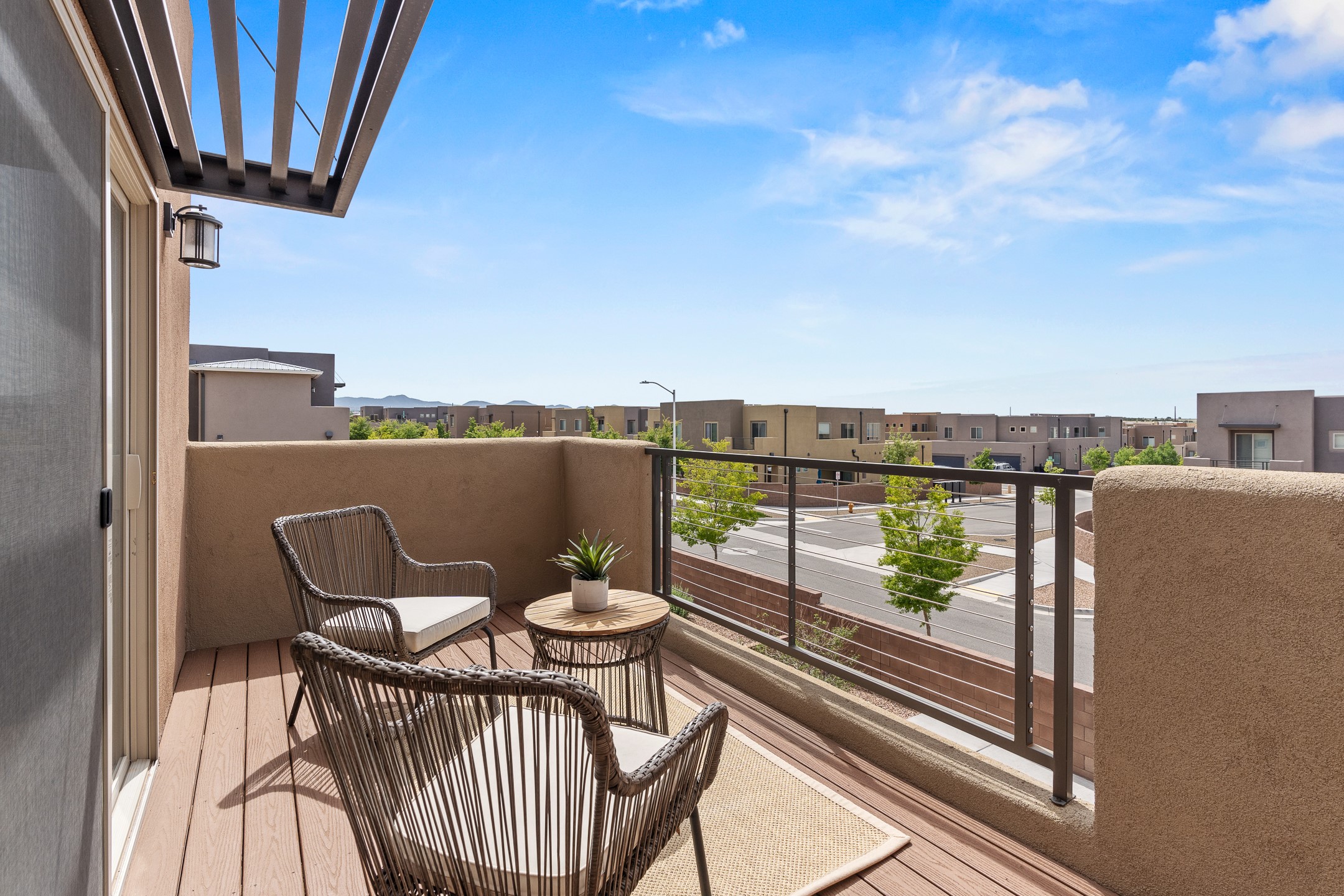 Welcome to this beautifully designed townhome offering the perfect balance of low-maintenance living and spacious indoor-outdoor living. a Ideal for a lock-and-leave lifestyle, yet with 2485 sq.ft. of generous living spaces, this home doesn't compromise on comfort or functionality. Enjoy the spacious balcony off the upstairs primary suite--perfect for a morning coffee or evening unwind while relaxing with the famous skies of Santa Fe. Downstairs settle into the generous private patio just off the kitchen and dining area, ideal for entertaining or dining al fresco. Inside, you'll find a flexible and functional floor plan featuring 3 bedrooms, 2.5 baths, a dedicated office/den/media room on the main level, and a versatile upstairs bonus room--perfect for a kids' playroom, home gym, media space, or a combination of all three. The well-equipped kitchen includes a pantry and modern finishes and newer stainless appliances, opening to a light-filled dining and living area. Conveniently located to shopping, and everyday essentials, this home makes coming and going a breeze--whether you're commuting, traveling, or simply living the life. Don't miss the opportunity to make this townhome yours today.