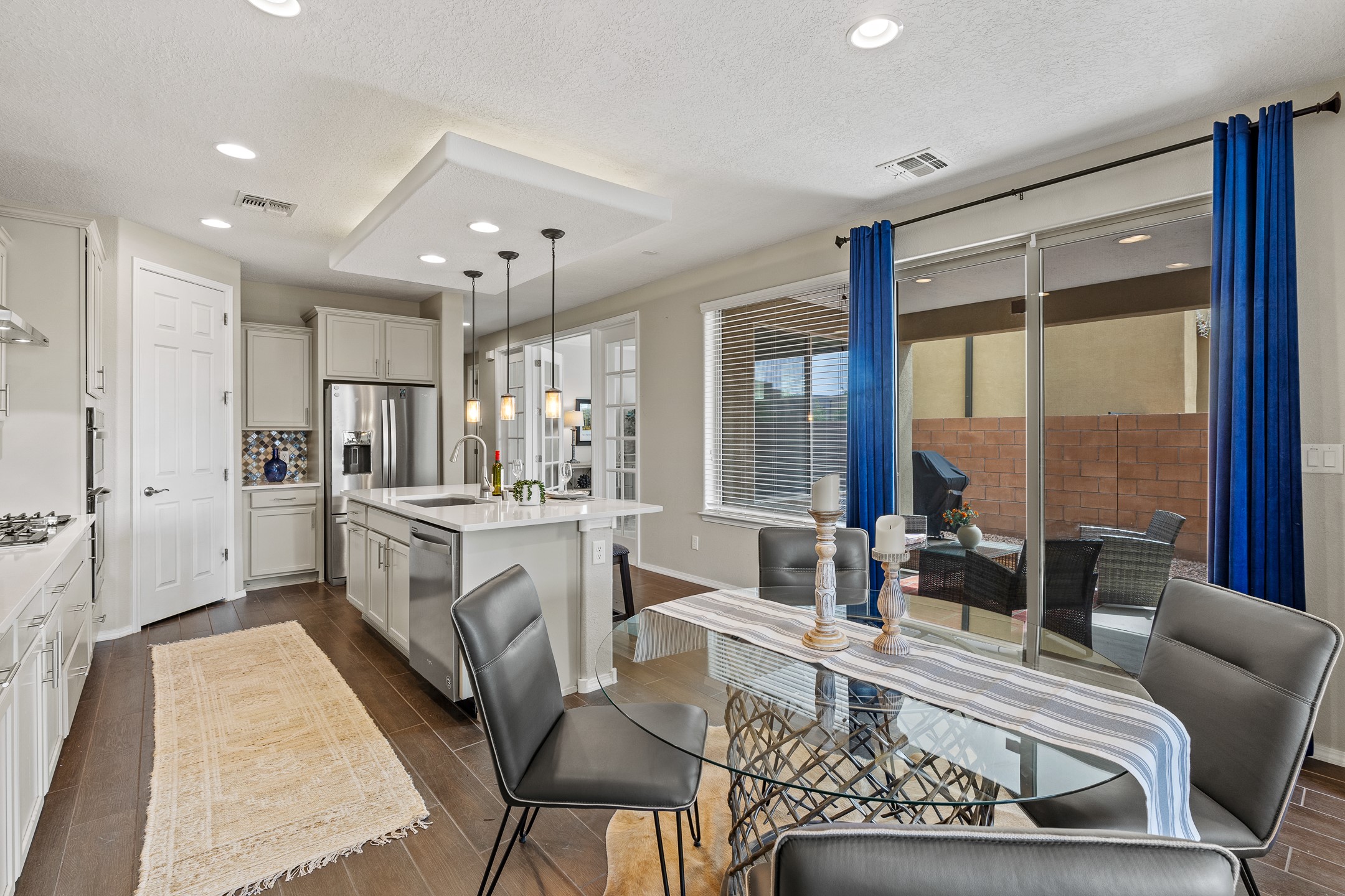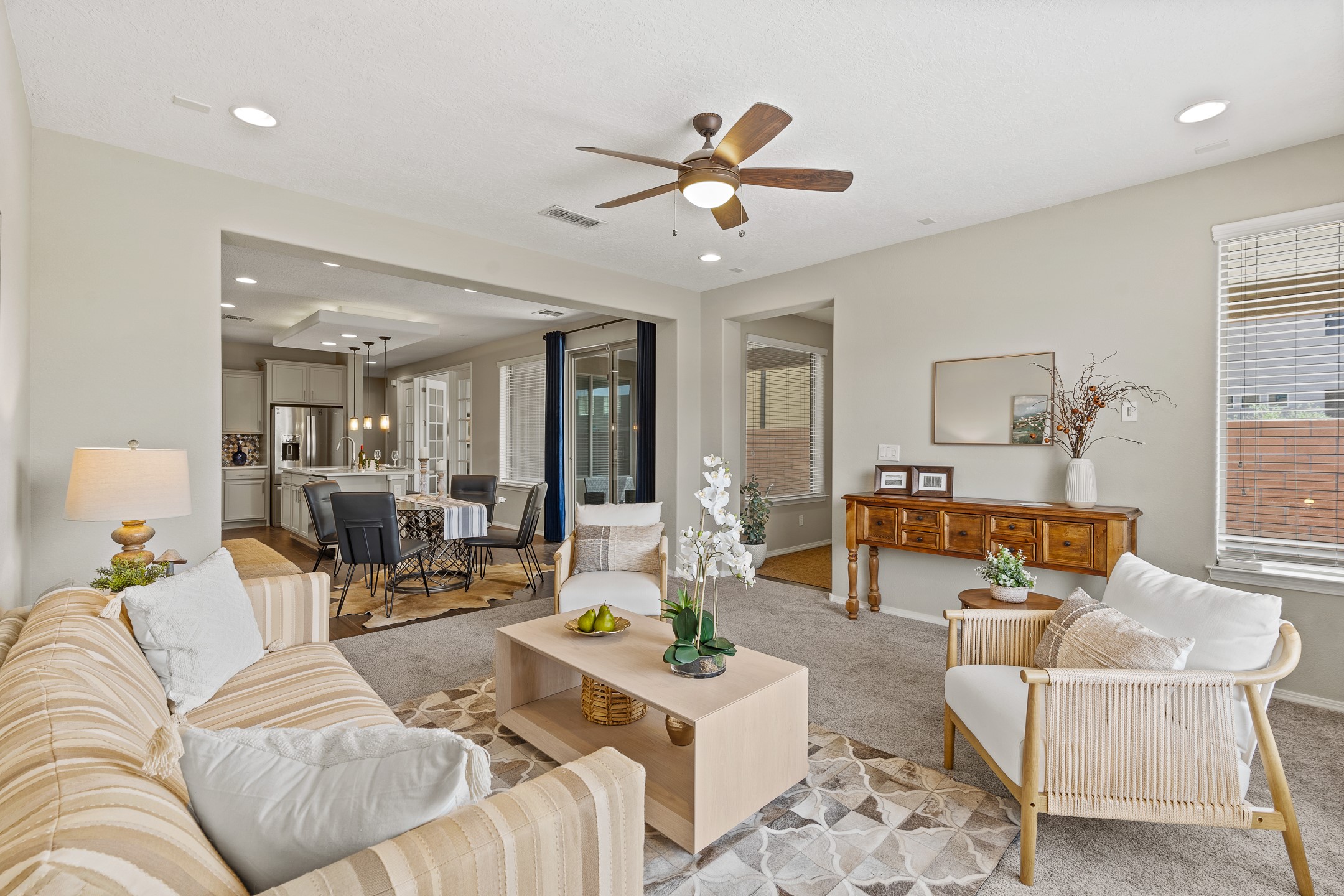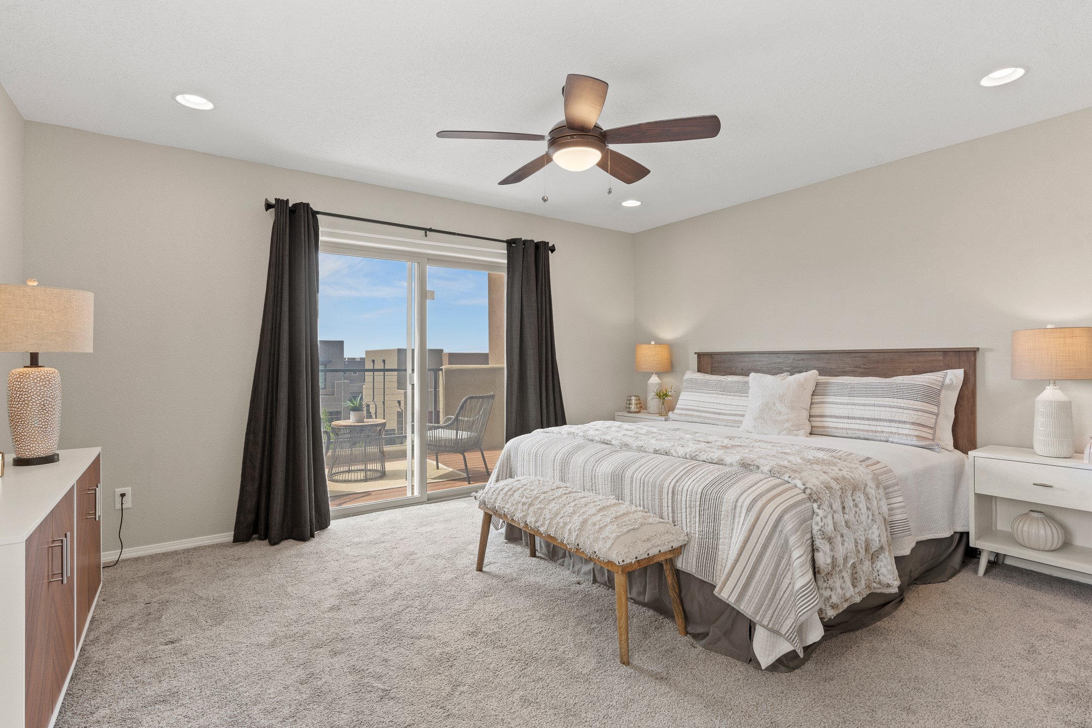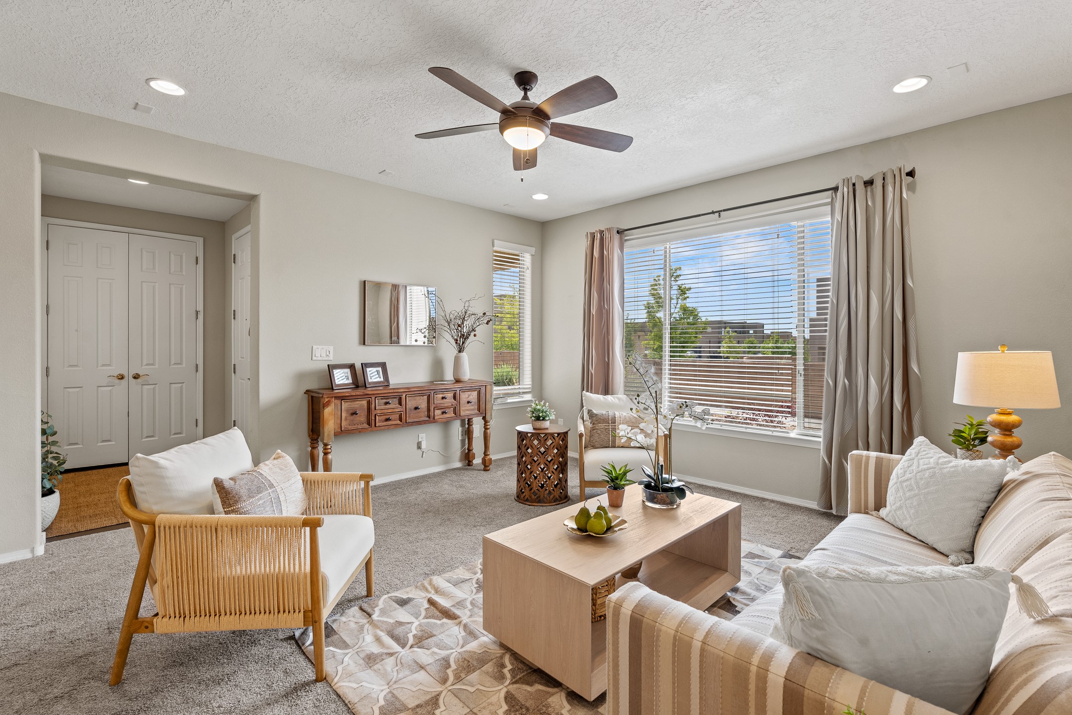 Welcome to this beautifully designed townhome offering the perfect balance of low-maintenance living and spacious indoor-outdoor living. a Ideal for a lock-and-leave lifestyle, yet with 2485 sq.ft. of generous living spaces, this home doesn't compromise on comfort or functionality. Enjoy the spacious balcony off the upstairs primary suite--perfect for a morning coffee or evening unwind while relaxing with the famous skies of Santa Fe. Downstairs settle into the generous private patio just off the kitchen and dining area, ideal for entertaining or dining al fresco. Inside, you'll find a flexible and functional floor plan featuring 3 bedrooms, 2.5 baths, a dedicated office/den/media room on the main level, and a versatile upstairs bonus room--perfect for a kids' playroom, home gym, media space, or a combination of all three. The well-equipped kitchen includes a pantry and modern finishes and newer stainless appliances, opening to a light-filled dining and living area. Conveniently located to shopping, and everyday essentials, this home makes coming and going a breeze--whether you're commuting, traveling, or simply living the life. Don't miss the opportunity to make this townhome yours today.