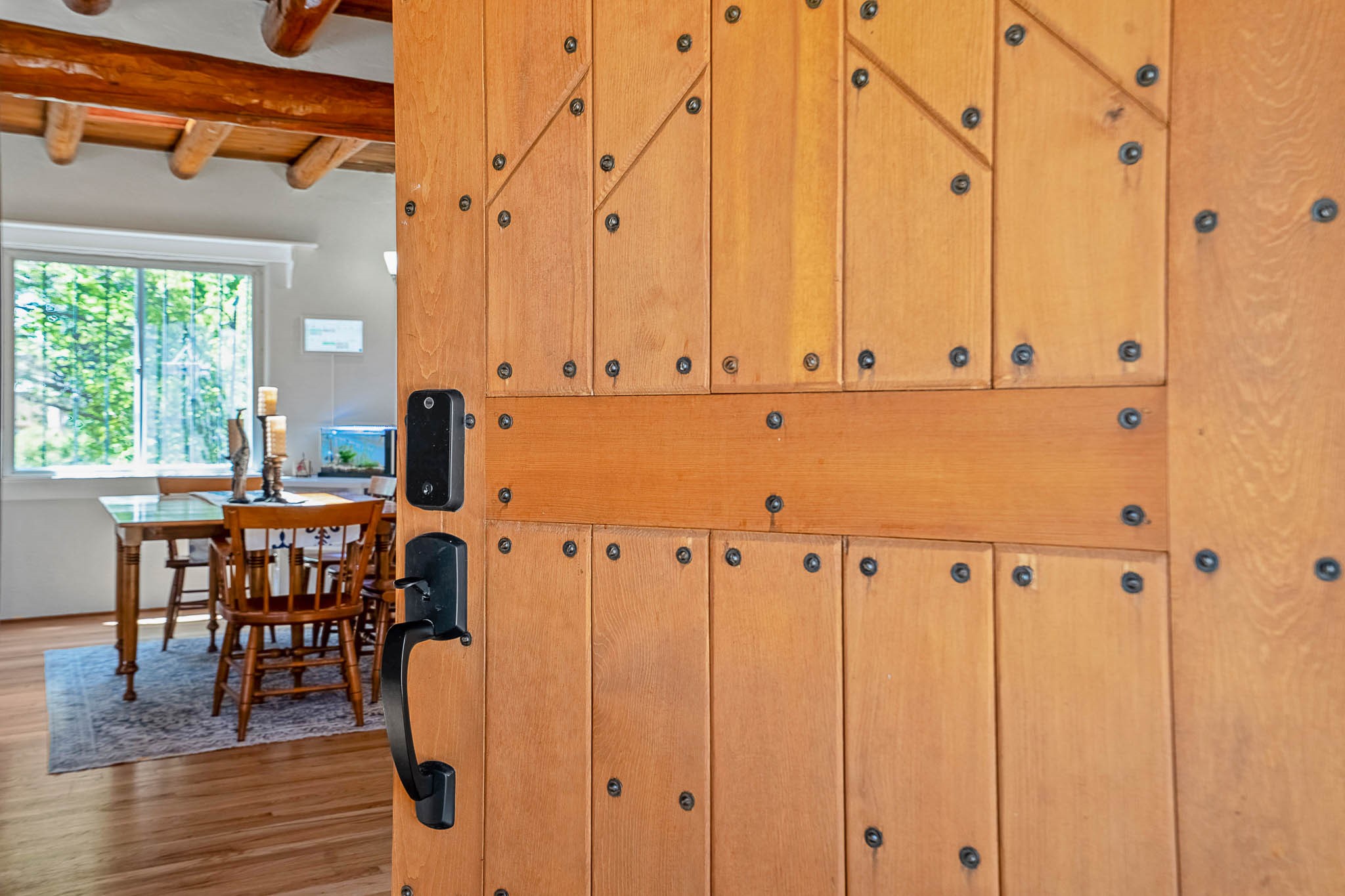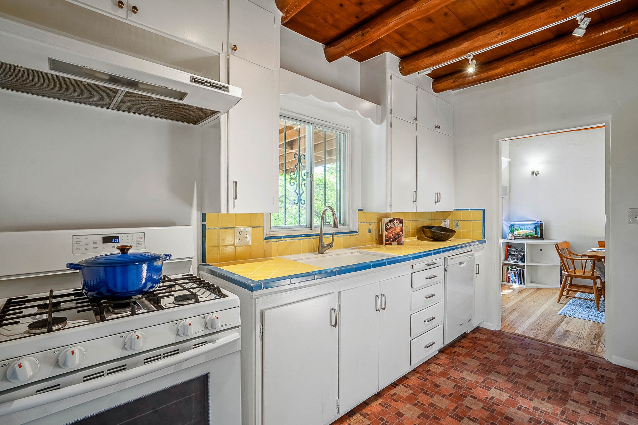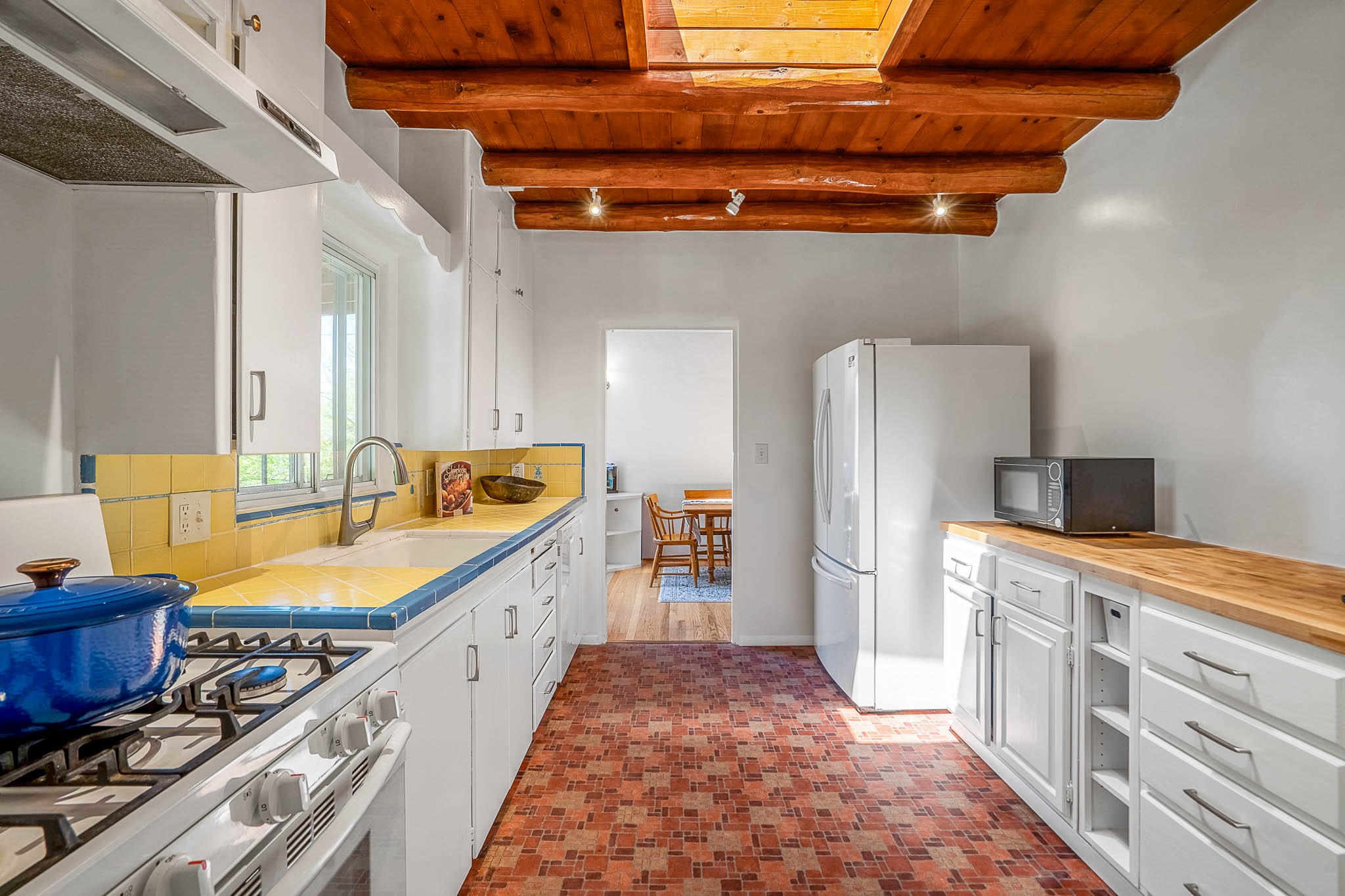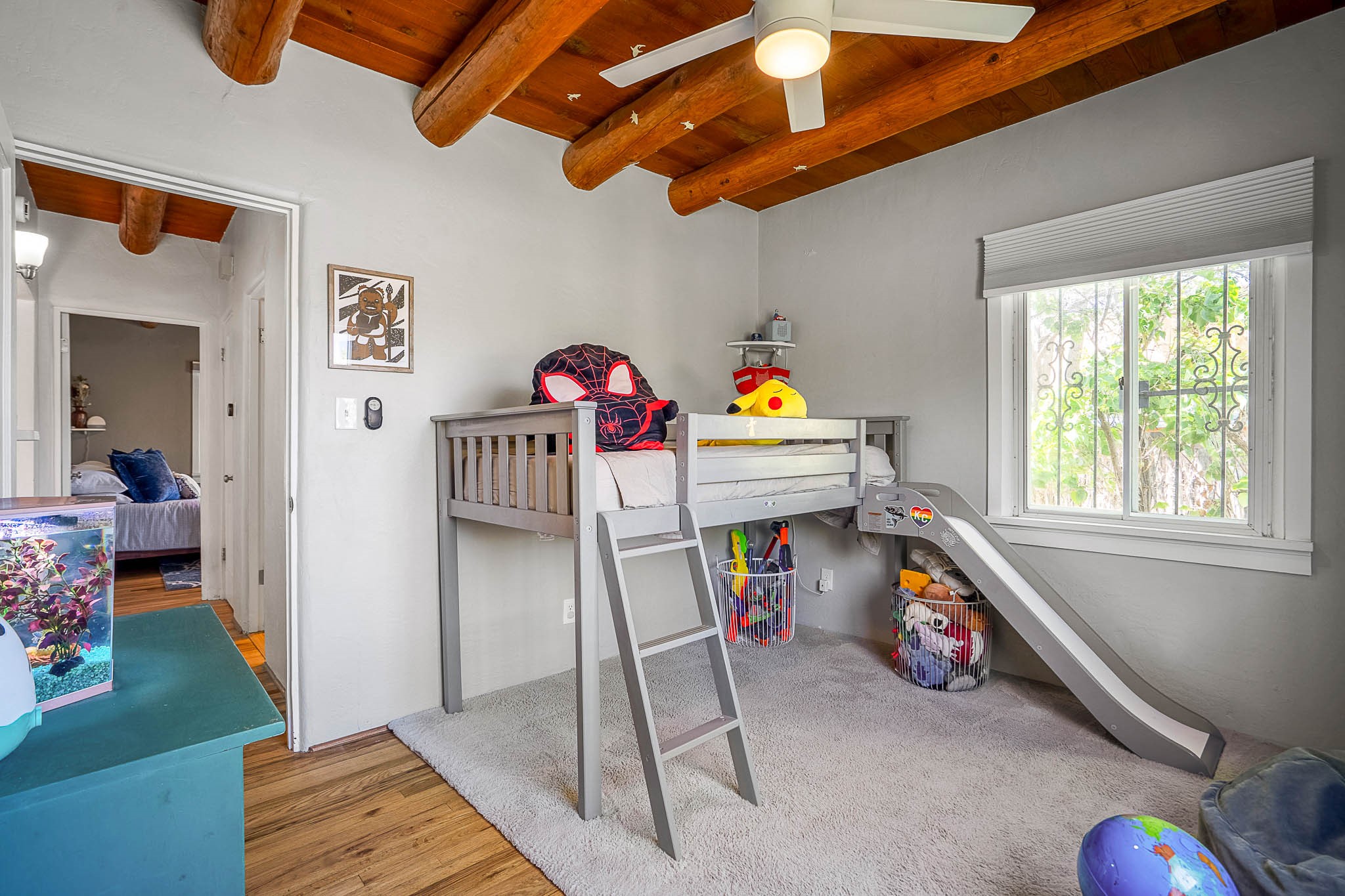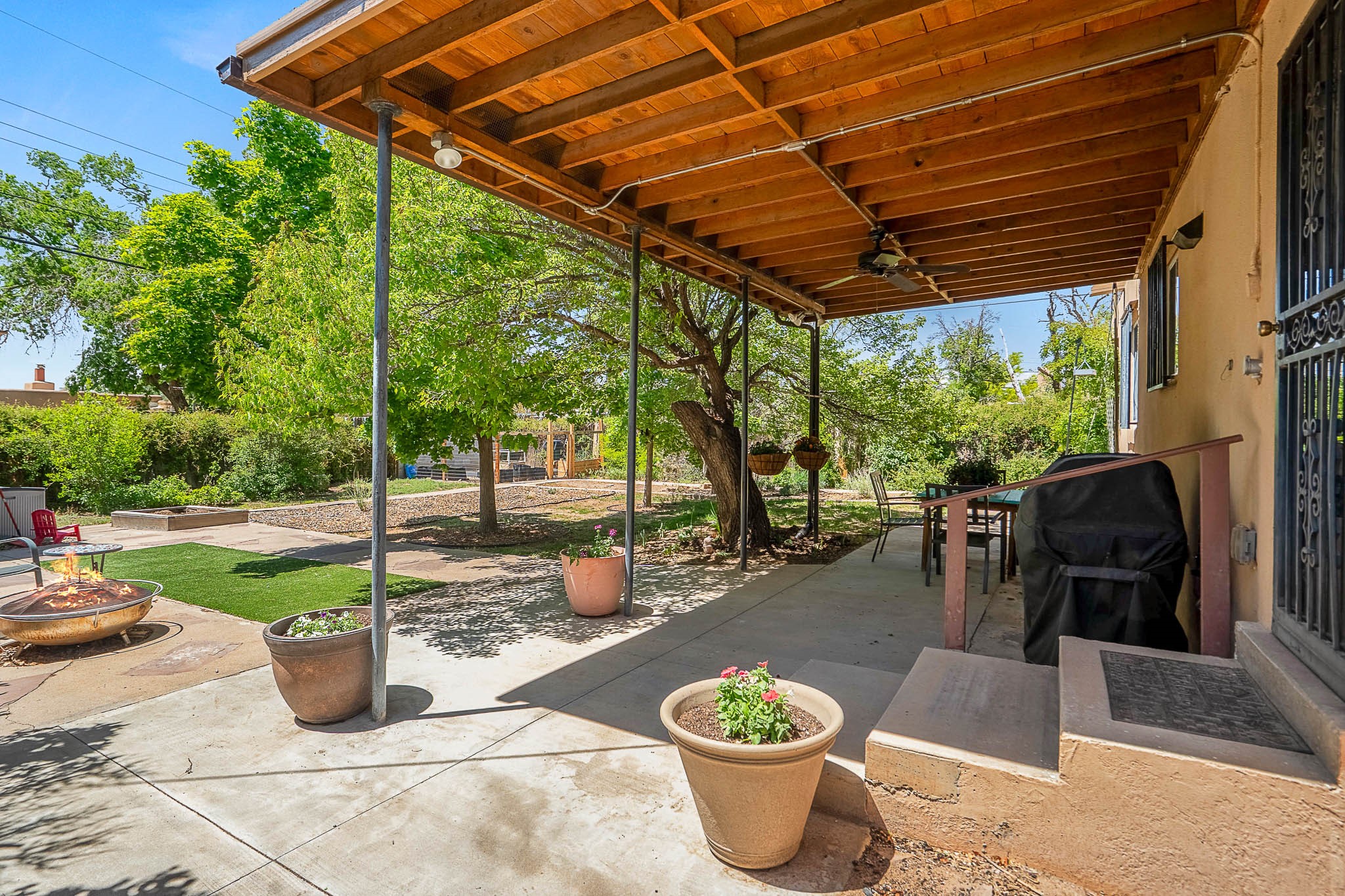 Classic Stamm located in the highly desirable Casa Linda neighborhood. This charming two-bedroom, one-bathroom home is situated within a well established Stamm neighborhood, known for its classic architectural style and central location.Inside, the residence boasts beautiful exposed vigas, original oak hardwood floors throughout (except in the kitchen), and a welcoming kiva wood-burning fireplace, complemented by a traditional nicho. The original solid wood front door has been thoughtfully restored, enhancing the home's unique character and creating a warm and inviting entry.This property also offers modern conveniences such as central cooling, forced air heating, a tankless water heater, and the added benefit of an electric car charger. Recent updates include a newer roof with a transferable 5-year warranty, and for future expansion, blueprints for a primary suite addition & carport are also included. The home is set on a spacious lot, providing ample outdoor living space.Given the desirability of Stamm homes in this area, they tend to be highly sought after and sell quickly. Schedule a showing today!