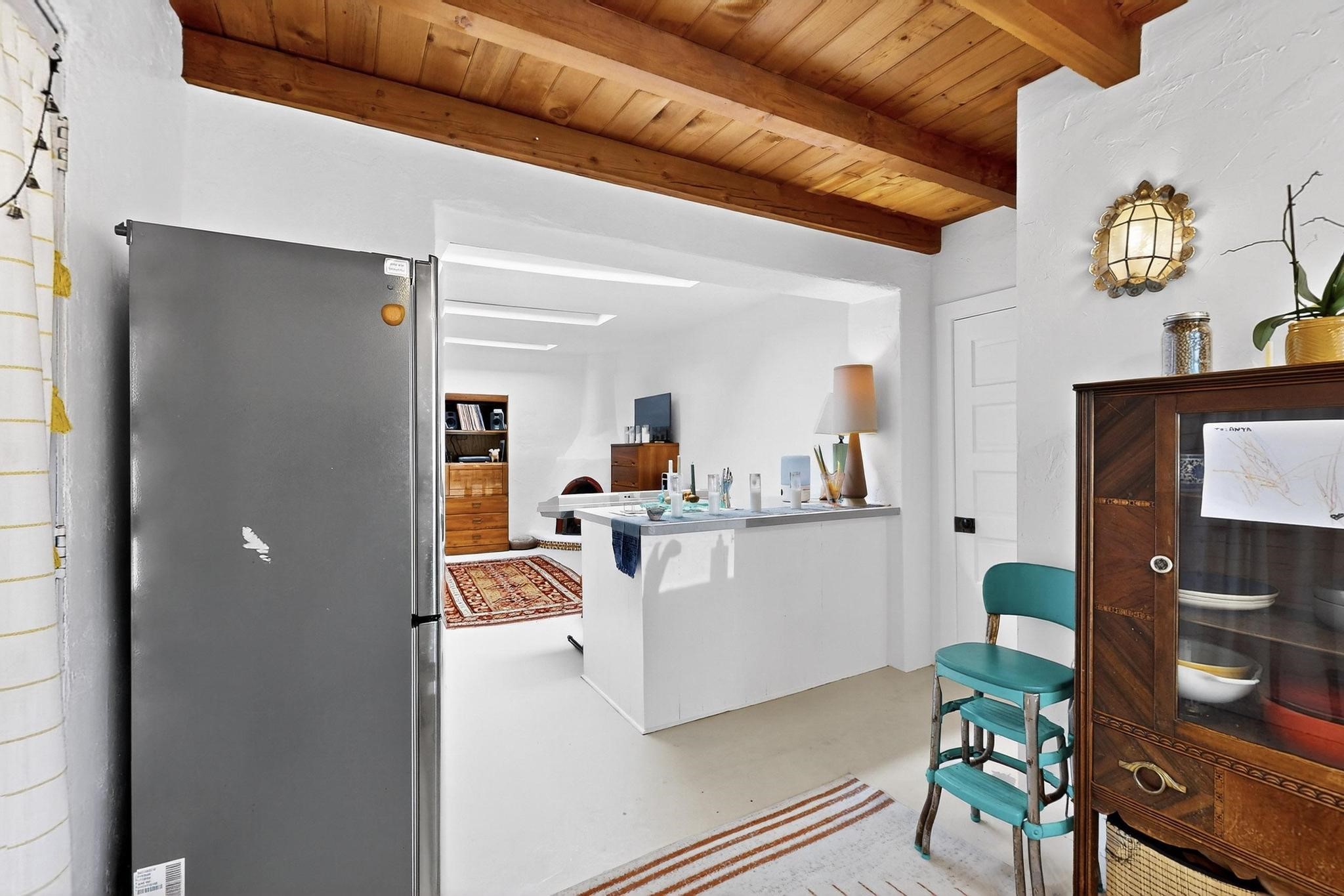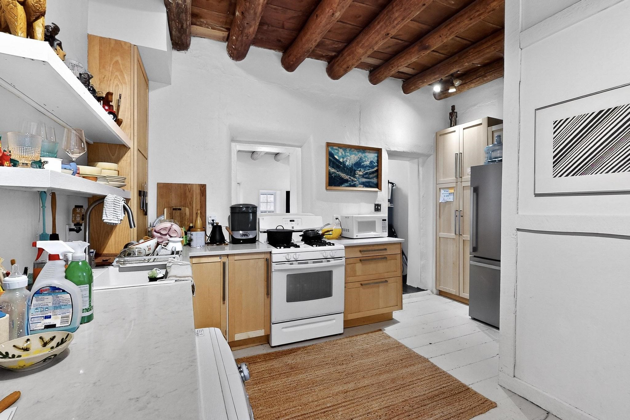 Downtown Historical Tri-Plex with 3 units (One studio, and Two separate units). The Sara Melton House is a late nineteenth-century adobe home which represents a long history of ownership beginning in 1871, when Nestora Gonzales (de Sisneros), a fifty-year-old widow, and her four children purchased the one-room adobe house for $49. Expanded over the years by family members, the Sara Melton House remains an example of how related, familial, and multi-generational households lived together and enlarged their houses as needed. The home also demonstrates the regional practice of bequeathing single rooms or groups of rooms to various family members. The Sara Melton House incorporates the best of Santa Fe style and character in a classic downtown setting.