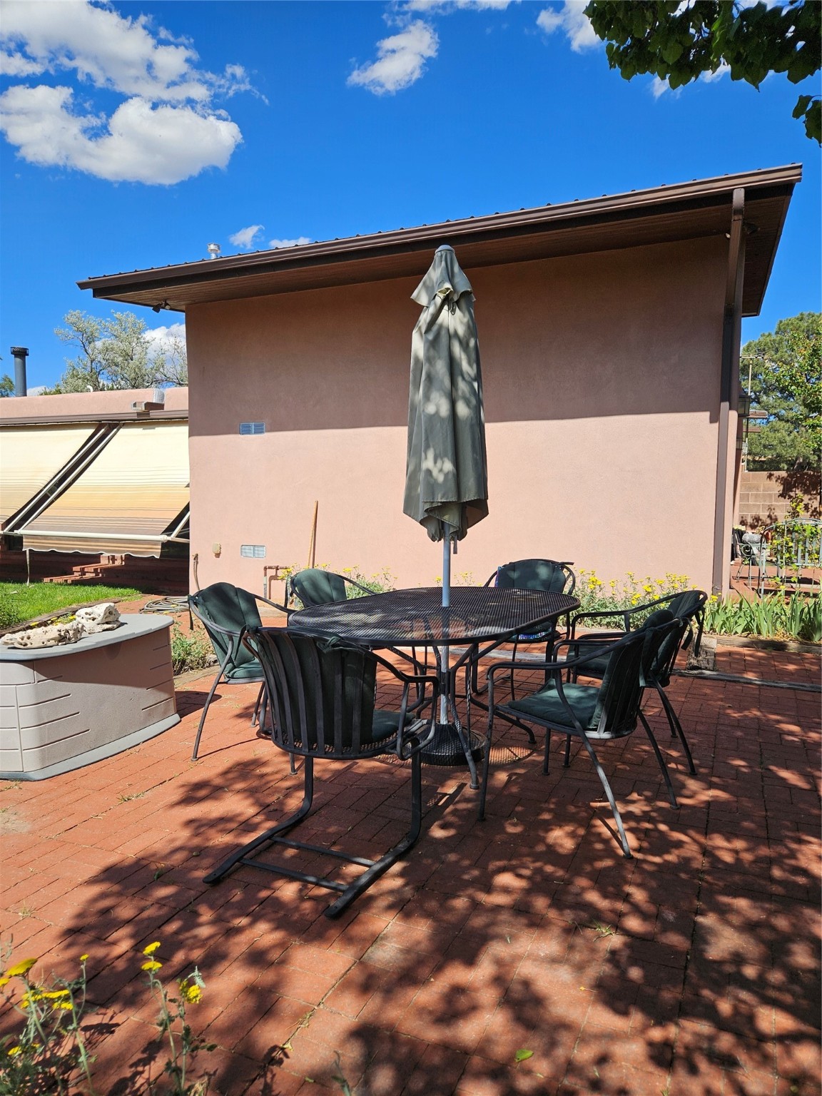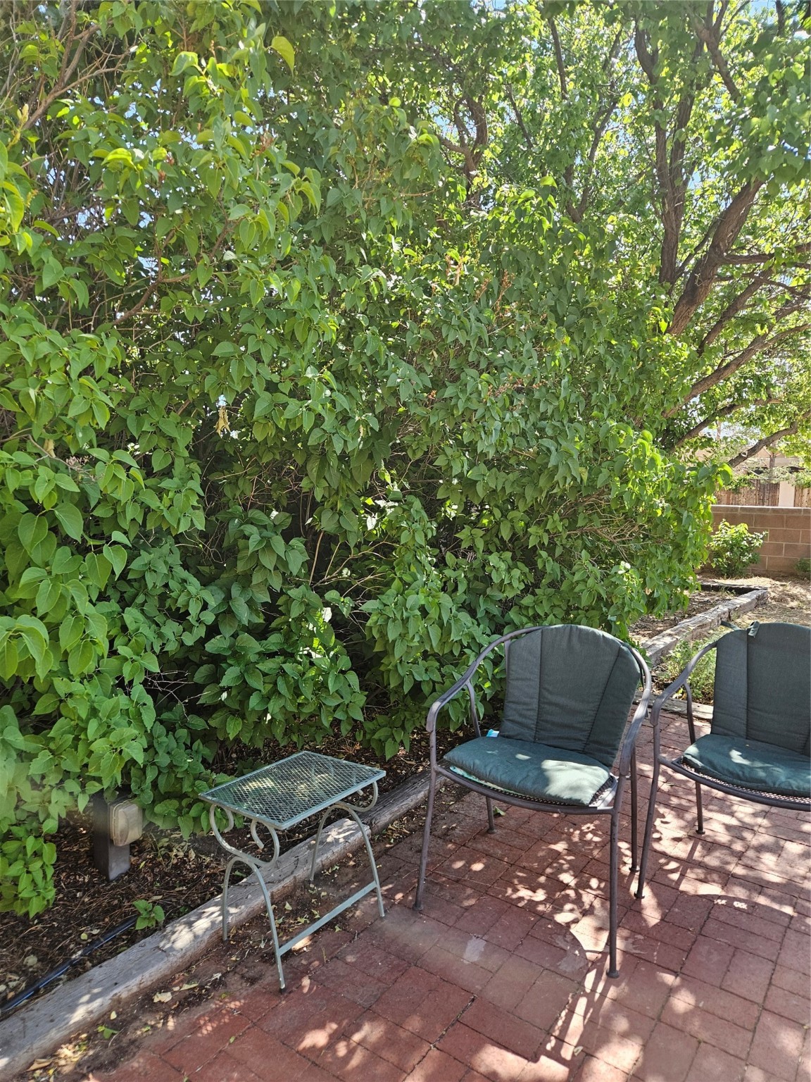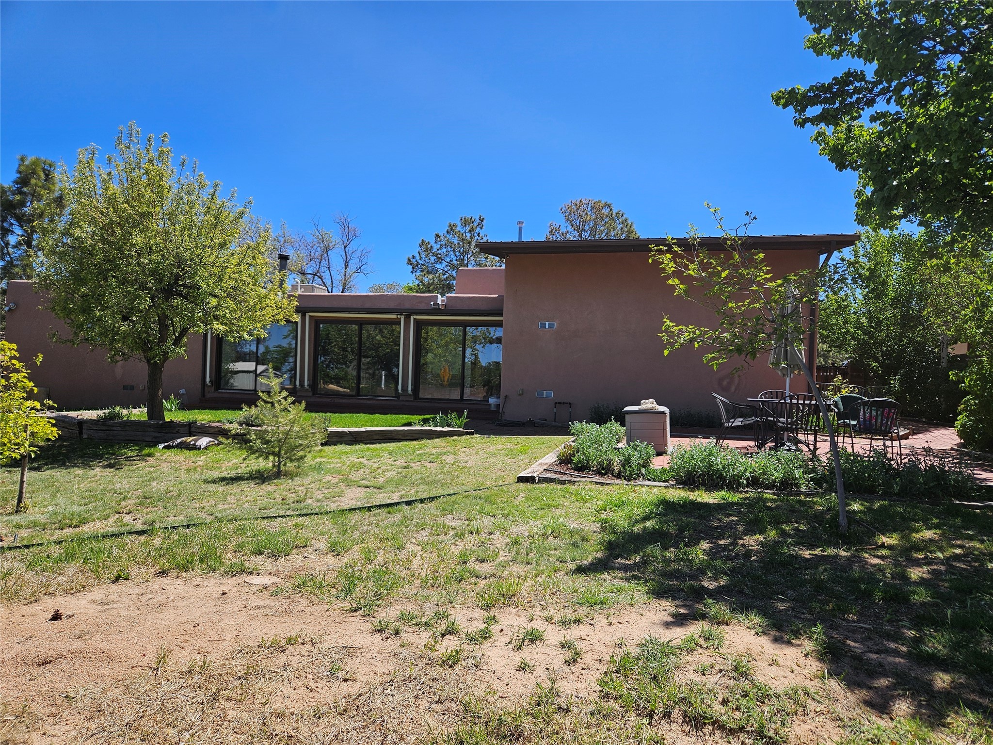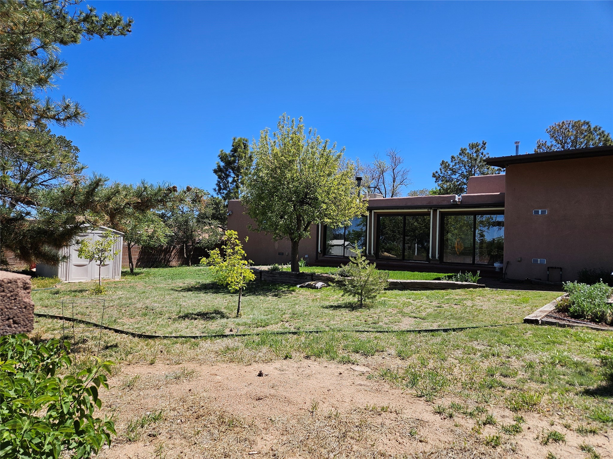 Calling All Investors! Great Location with a great price! Located in Via Caballero on a large, walled lot. Walk through the front door into a great entryway with a tall vigas ceiling, which is great for displaying artwork. This versatile single-level home features 3 bedrooms/2 1/2 baths, a living room, a den/studio/office with a tall beamed ceiling, lots of cabinets and storage with an exterior entrance, a dining room with a wood stove, and a bright eat-in kitchen. The main house has a flat roof over the main house, and a metal pitch roof on the mother-in-law quarters. Additionally, a laundry room with a new washer. The 2-car garage offers direct entry to the large entryway. Solar Panels (leased) keep the electric bill reasonable. Mature trees and a metal shed are a bonus! Enjoy the 2 apricot and 1 apple tree on .287 acres!