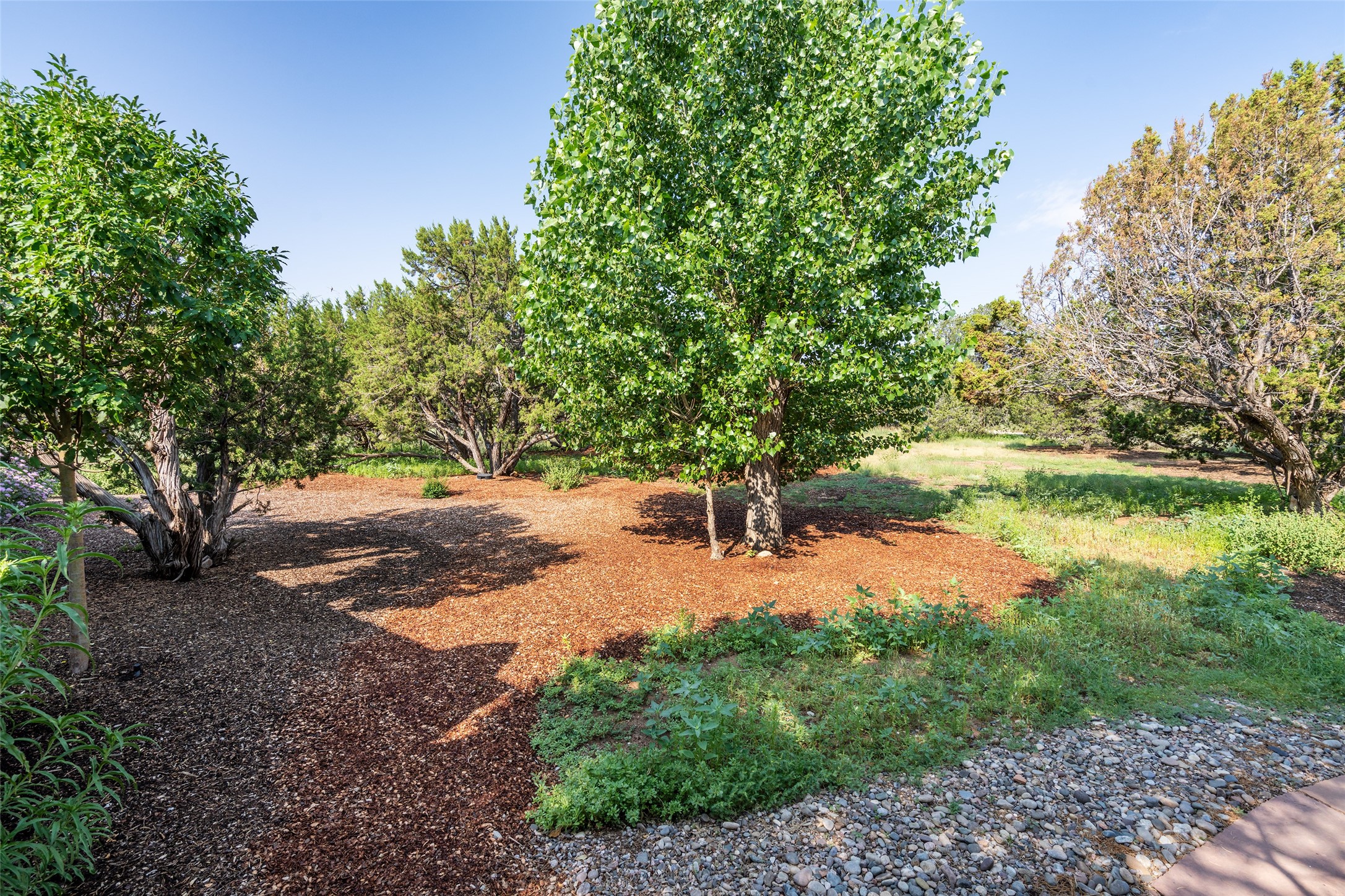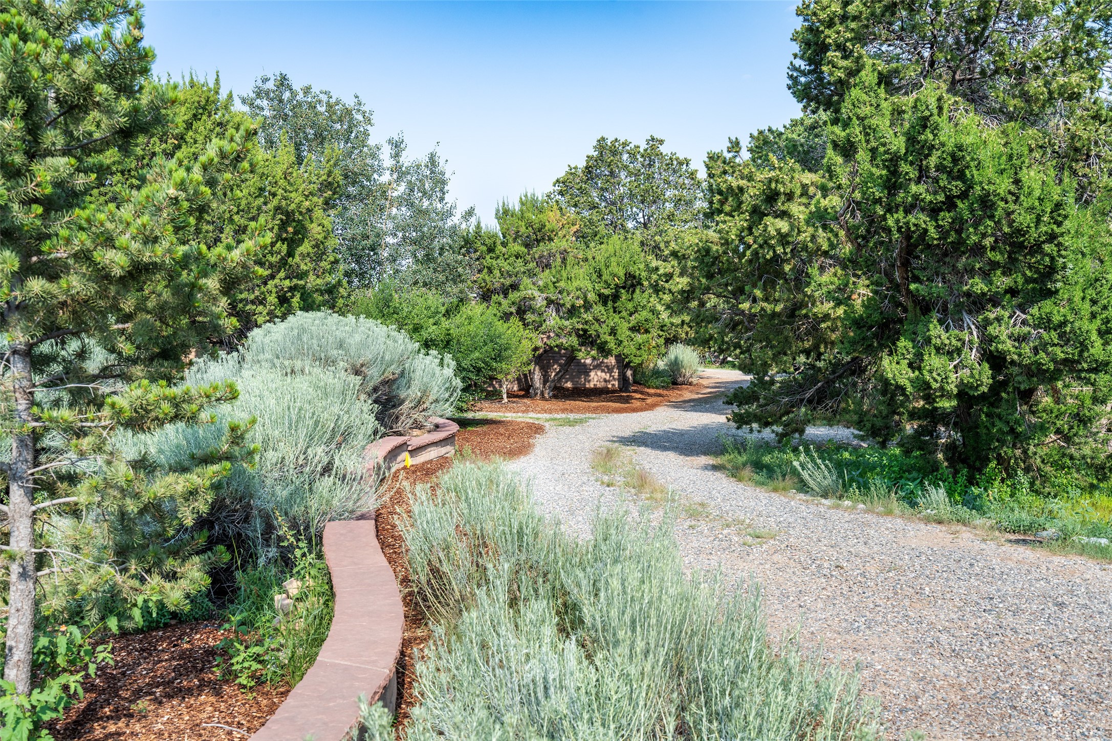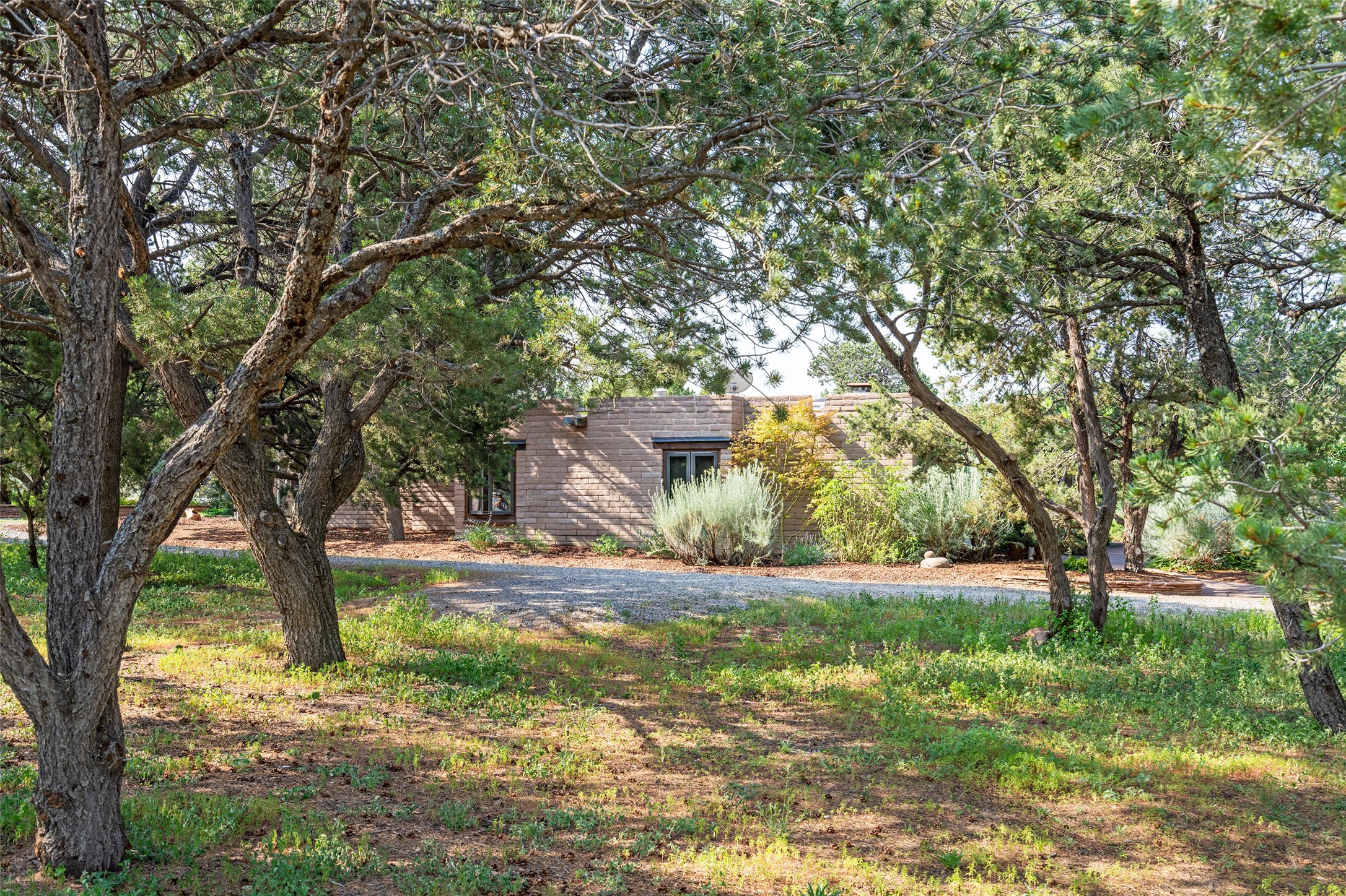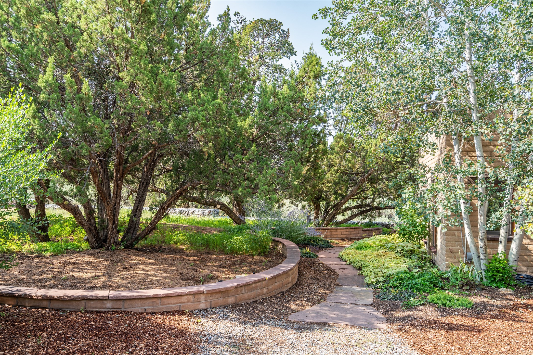 Nestled on 1.46 acres in the coveted Sol Y Lomas neighborhood, this exceptional property blends the earthy beauty of the Southwest with organic lines reminiscent of Frank Lloyd Wright. Thoughtfully curated by a master gardener, the grounds bloom with color and life--an oasis of natural wonder. Lovingly owned by the same family since 1978, the property includes an updated 2-bedroom, 2-bathroom main house (2,063 sq. ft.) and a charming 1-bedroom, 1-bathroom guest house (563 sq. ft.), connected by a breezeway draped in grapevines. Inside the main house, brick flooring and beamed ceilings carry a sense of grounded elegance throughout. At the heart of the home is the kitchen, with open shelving that connects seamlessly to the generous dining and sitting areas--perfect for casual gatherings or quiet evenings. The main living room, with views of the lush front courtyard, is anchored by a wood-burning fireplace and exudes warmth and comfort. The primary suite also features a fireplace and direct access to the western patio, inviting you to enjoy the surrounding beauty. Its bathroom is filled with natural light and includes a sculpted vessel soaking tub and a glass-walled walk-in shower. The guest bedroom, currently used as an office, offers yet another fireplace and the same warm, organic charm. The guest house feels like a step back in time, with its vintage full kitchen, spacious bedroom with ensuite bath, and access to a private patio--ideal for guests or creative retreat space. With timeless presence and inspired design, this remarkable property is a sanctuary of comfort, natural elegance, and casual sophistication.