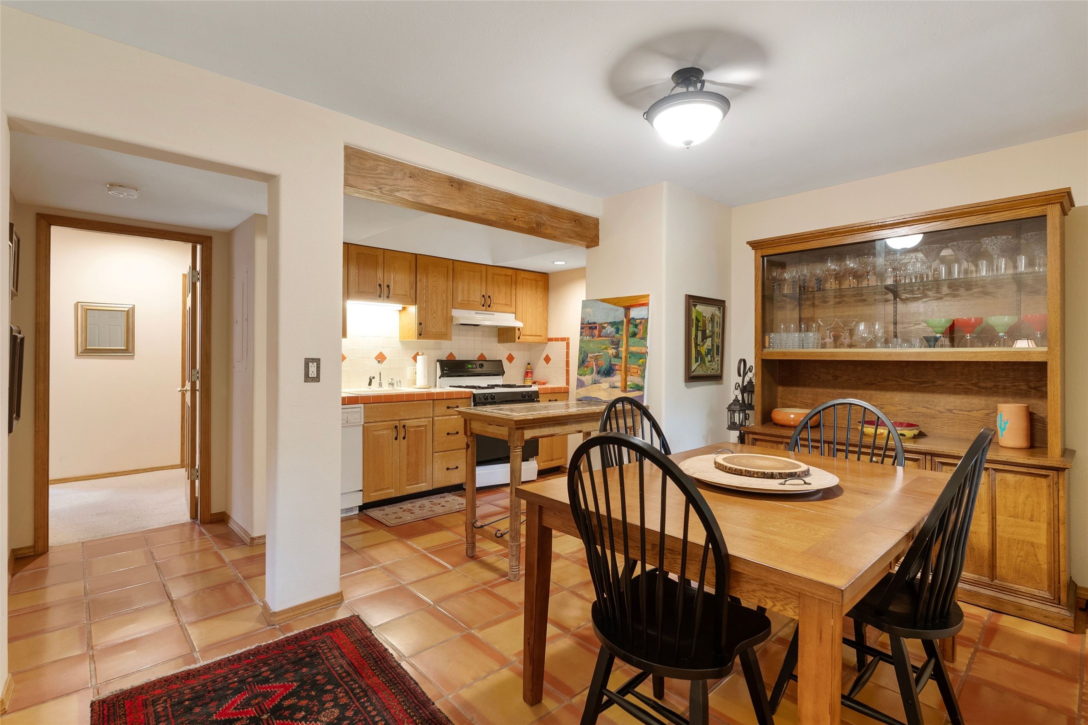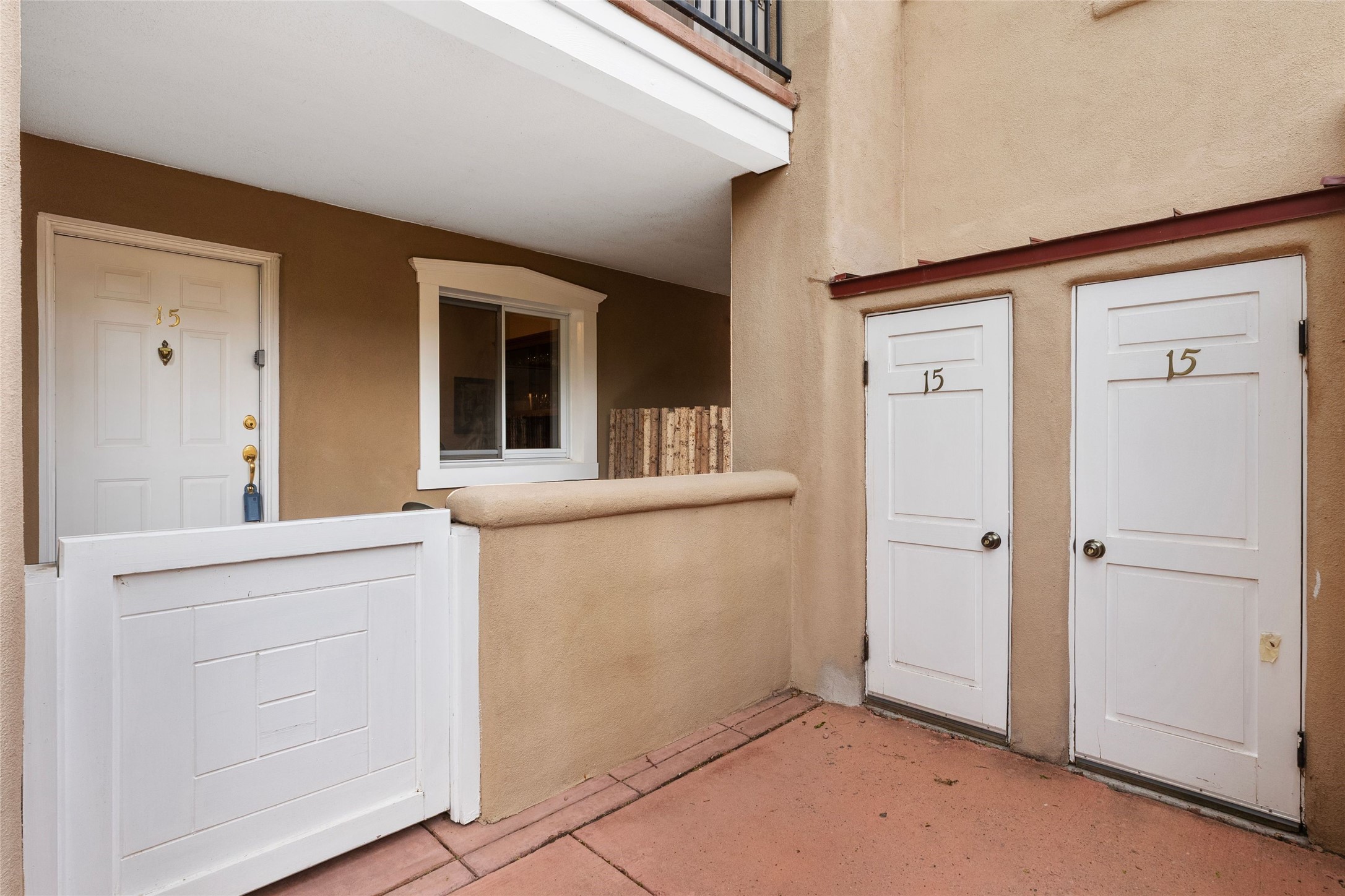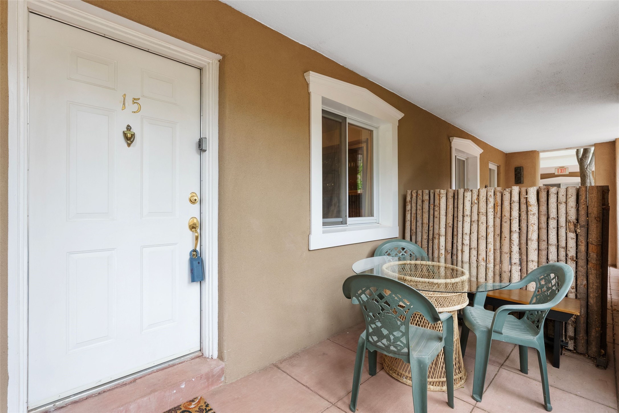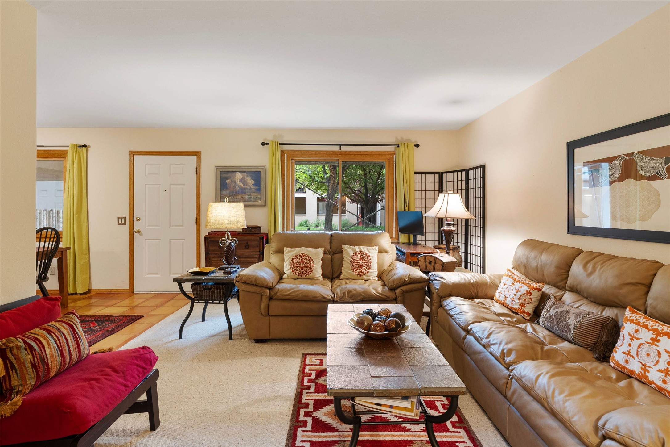 Absolutely ideal condo in coveted El Matador! Ideal because this unit is ground level, positioned to enjoy the gracious centered courtyard. Greenery is hard to find in Santa Fe and this "garden of eden" (to quote a neighbor) is a green oasis!You will often enjoy the shaded patio in the front: the white gate is low enough to encourage a chat with neighbors walking by. And off the bedroom is another more secluded patio, sunny for plants, and quiet for reading. This patio is a bonus because the bolted door opens to the parking spaces, and the parking spot for this unit is directly across. Think of the easy access for groceries, suitcases, etc.When you are looking at the photos keep in mind the unit comes completely furnished, with high-end furniture choices. The spaces are logical and well planned, there is a good flow from room to room, yet privacy in the bedrom if someone wants to go to bed early.This is a terrific location regardless of your agility. You can enjoy life just sitting in the front portal. Or, for a morning walk, a stroll through Ft Marcy Park would get your steps in for the day. This community park also has a swimming pool, exercise classes, small gym. And, if you have a dog, they would certainly enjoy this park - abundant dog smells! And, further walking can take you into the heart of town within a few blocks. Numerous restaurants in all prices ranges, local coffee shops, and truly excellent shopping possibilities - and of course, our Santa Fe Plaza. Festivals and activities year around, with numerous markets and celebrations, musical events and lots of happy people!