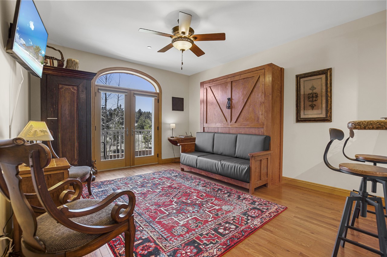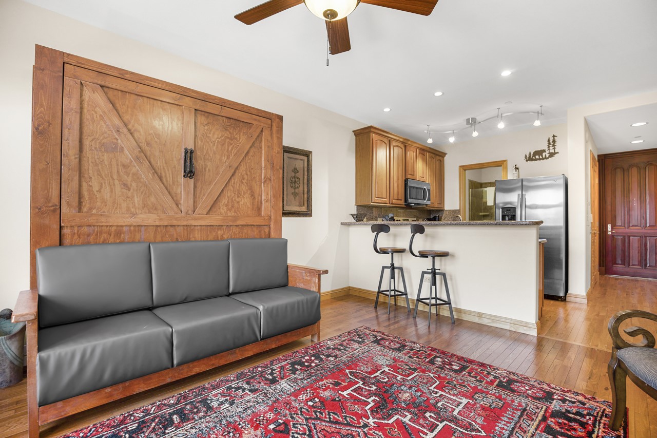 A RARE OPPORTUNITY TO OWN ONE OF THE VERY FEW LUXURY STUDIO CONDOMINIUMS IN THE GRANDE WITH VIEWS OF THE ANGEL FIRE SKI AREA! Don't miss your chance to own this second floor, Studio condo featuring a custom made Queen sized Murphy bed that easily converts your living room into a cozy bedroom. The unit also features a kitchen, laundry and full bathroom. Condo 212 offers breathtaking views of the Angel Fire Ski Slopes, and the surrounding mountains. Perfectly situated for year-round adventure, this mountain retreat provides winter skiing and mild summer weather with easy access to miles of hiking, mountain biking trails, a PGA golf course and country club, and serene Monte Verde Lake. Local restaurants and shops are within walking distance. Inside, this luxury condo features abundant natural light, peaceful surrounds, and baseboard radiant heating. Step onto the balcony to enjoy stunning sunrise views over the mountains with your morning coffee. This tastefully decorated and fully furnished retreat is ideal for quick getaways, and it also may offer an excellent short-term rental opportunity (Not guaranteed at closing, discuss limitations with listing Broker). Personal property not on the Exclusion List are included, providing a move-in ready property. Top-Tier Owner ONLY common Amenities Include: ** Private BBQ deck with scenic mountain views ** Ornate Club Room for gatherings and relaxation ** State-of-the-art fitness center with men's and women's showers & a dry sauna ** Secure private locked storage cages for owners ** Keyless secured building entry with FOB or access code ** Elevator access to all floors. Don't miss your chance to own a luxurious, low-maintenance mountain getaway in one of Angel Fire's most sought-after communities!