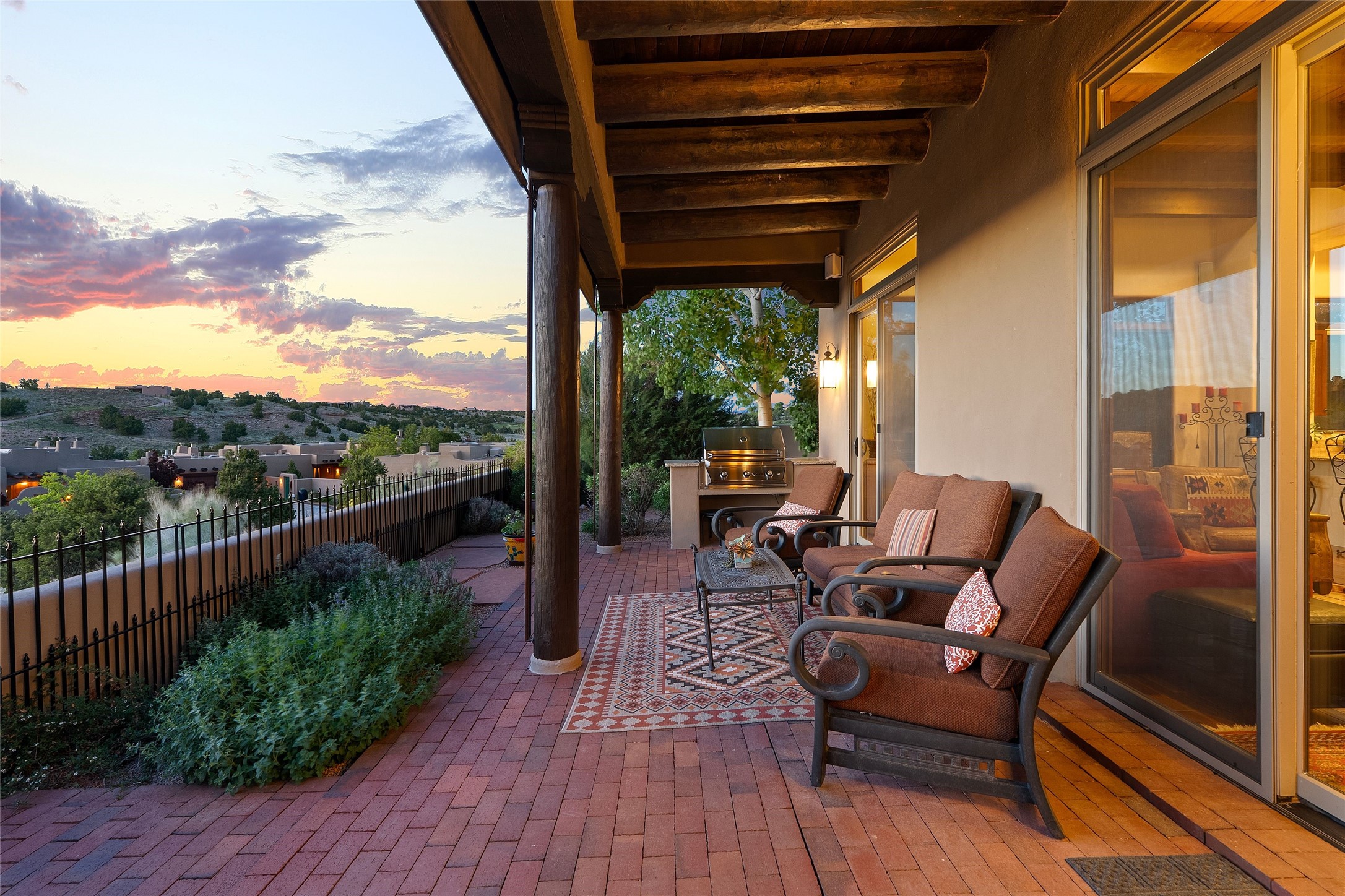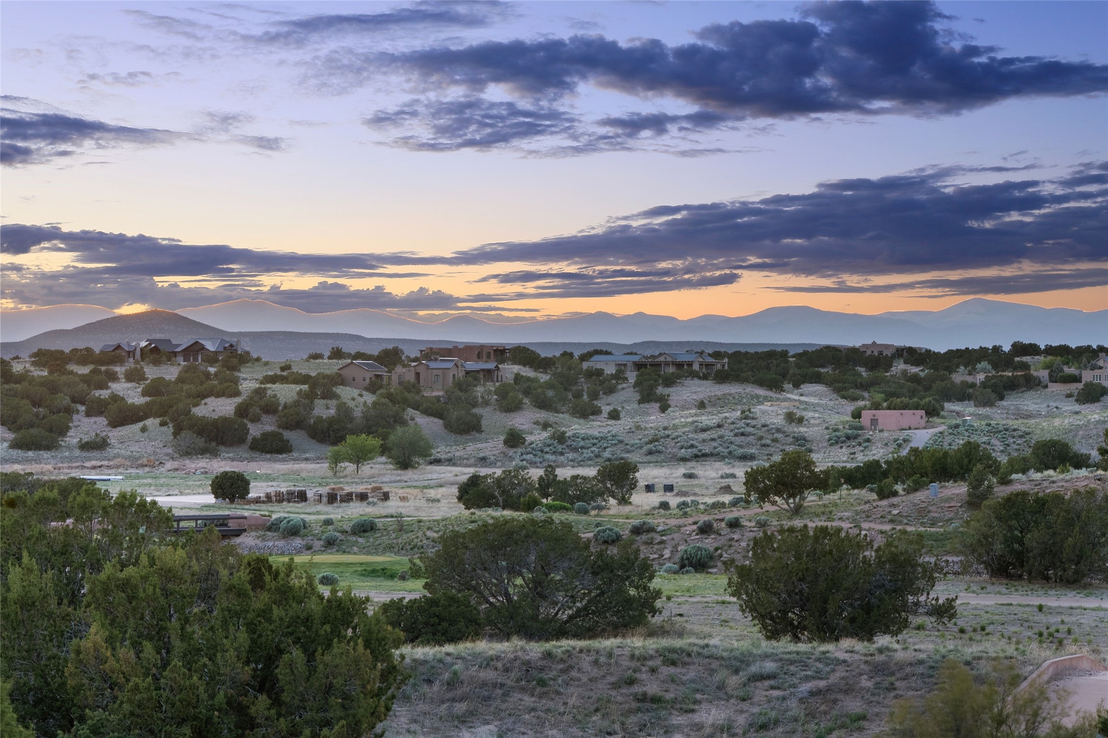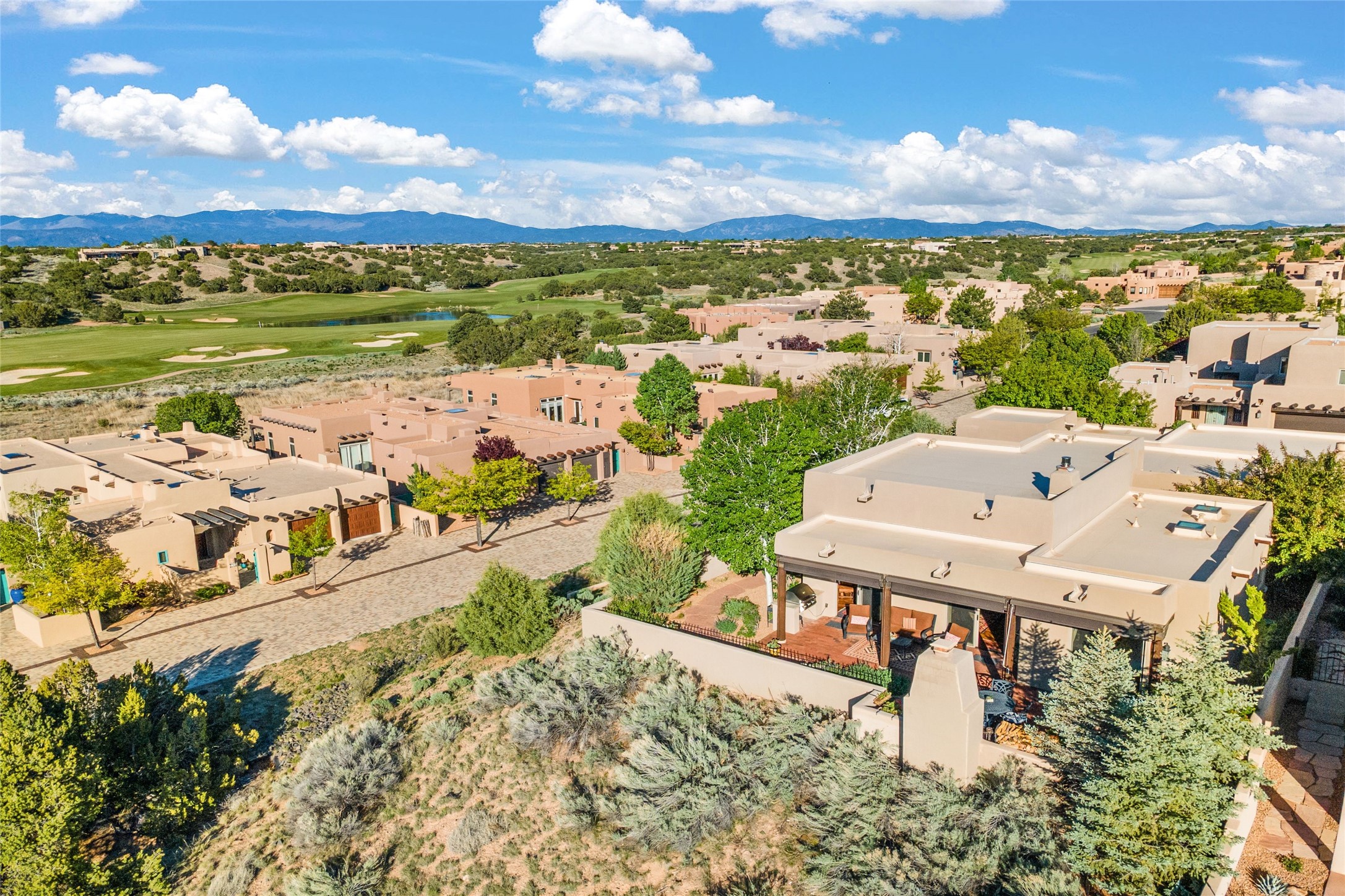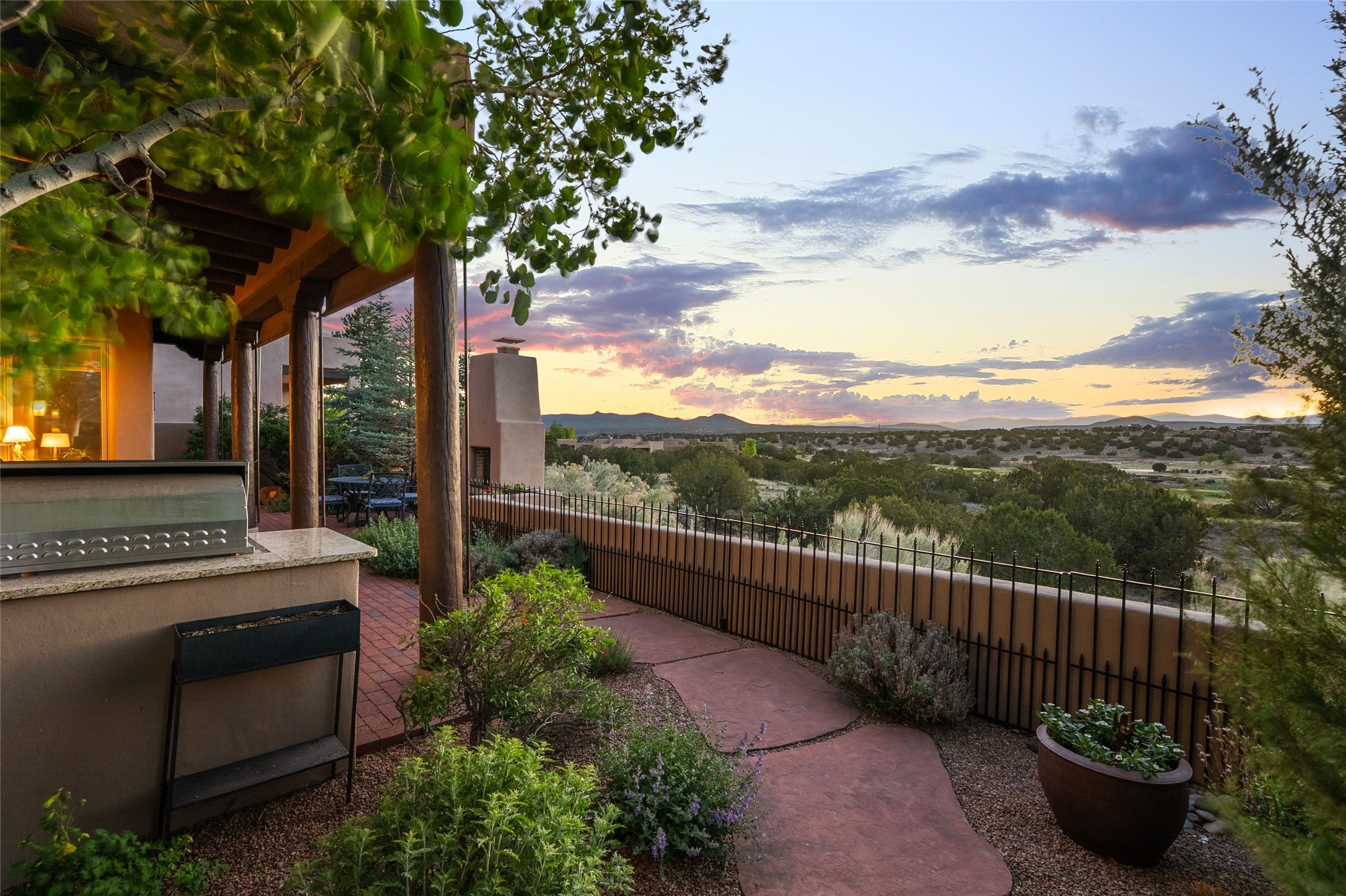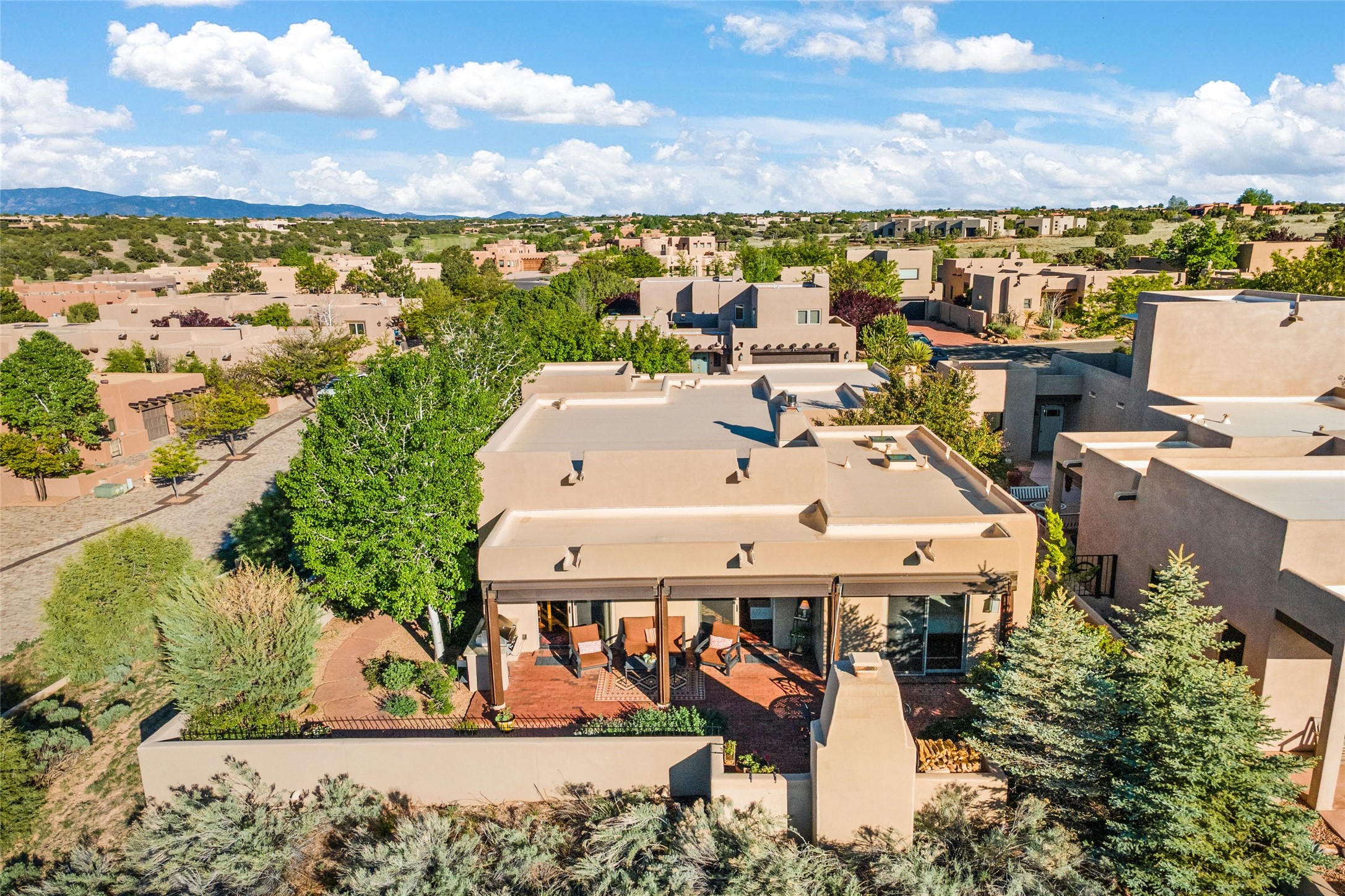 Enjoy Panoramic views of the Golf Course as well as the Jemez & Sangre de Cristo Mountainsfrom this 3 Bed / 3 Bath "Lock & Leave" home with a private, detached casita, located on anelevated corner lot in Gated Las Campanas. Double courtyard doors lead to a private oasiswith a brick patio surrounded by mature trees, flagstone walkways & a soothing outdoor waterfeature. Dining al fresco with a Mountain view is your choice at either of 2 outdoor wood-burning fireplaces. Upon entering the home, 2 hand-hewn doors open to a full-length foyerwindow looking into an inviting entry courtyard, awaiting the perfect sculpture or water feature.The Living / Dining area is an open concept layout with a gas fireplace plus 2 sliding doors thatlead to the Back Portal with Golf Course & Jemez Views. The Kitchen includes a 36"KitchenAid 6-Burner Gas Range/Oven, Microwave, Bosch Dishwasher, Whirlpool French DoorRefrigerator & large bar for casual meals. The Master Bedroom Suite enjoys the same Golf &Jemez views with its own private patio, en-suite bathroom with 2 separate sinks, walk-in closet,glass walk-in shower, deep soaking tub & compartmented water closet. Bedroom Two issequestered from the Master and has direct access to Bath Two. Steps away from the mainhome, through the entry courtyard, guests will be delighted with the welcoming 1 Bed / 1 BathCasita with a wet bar, microwave & refrigerator. This Lock & Leave home with Golf Course,Jemez & Sangre de Cristo Mountain views is the perfect Santa Fe get-away or primary homefor the ultimate Santa Fe lifestyle.