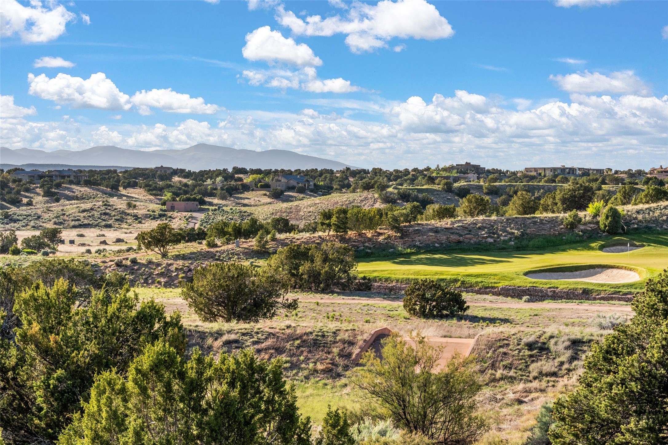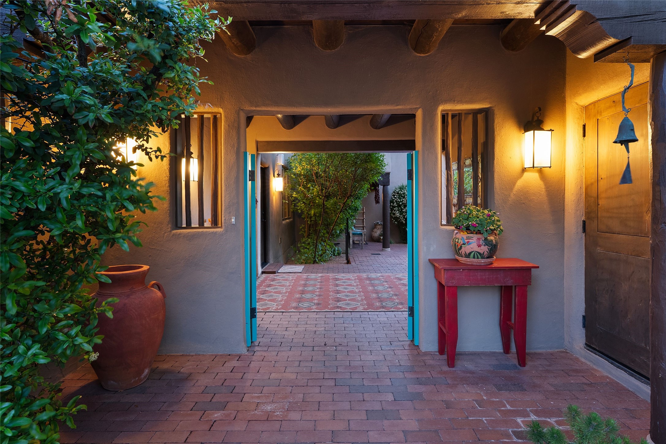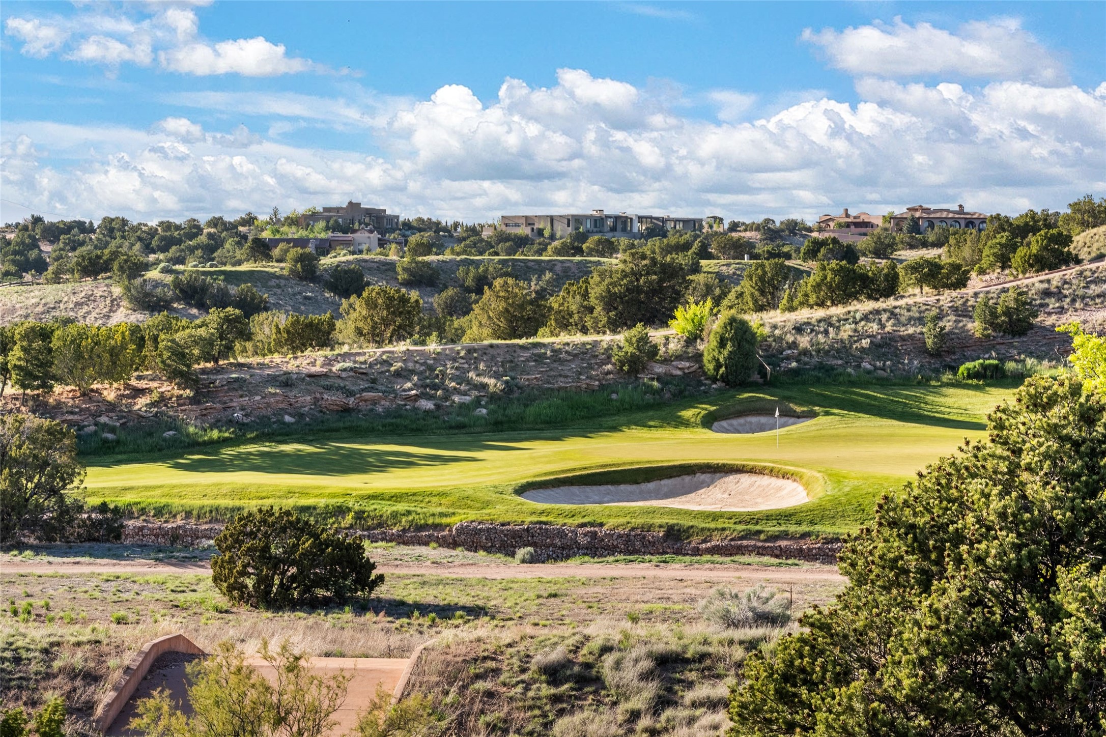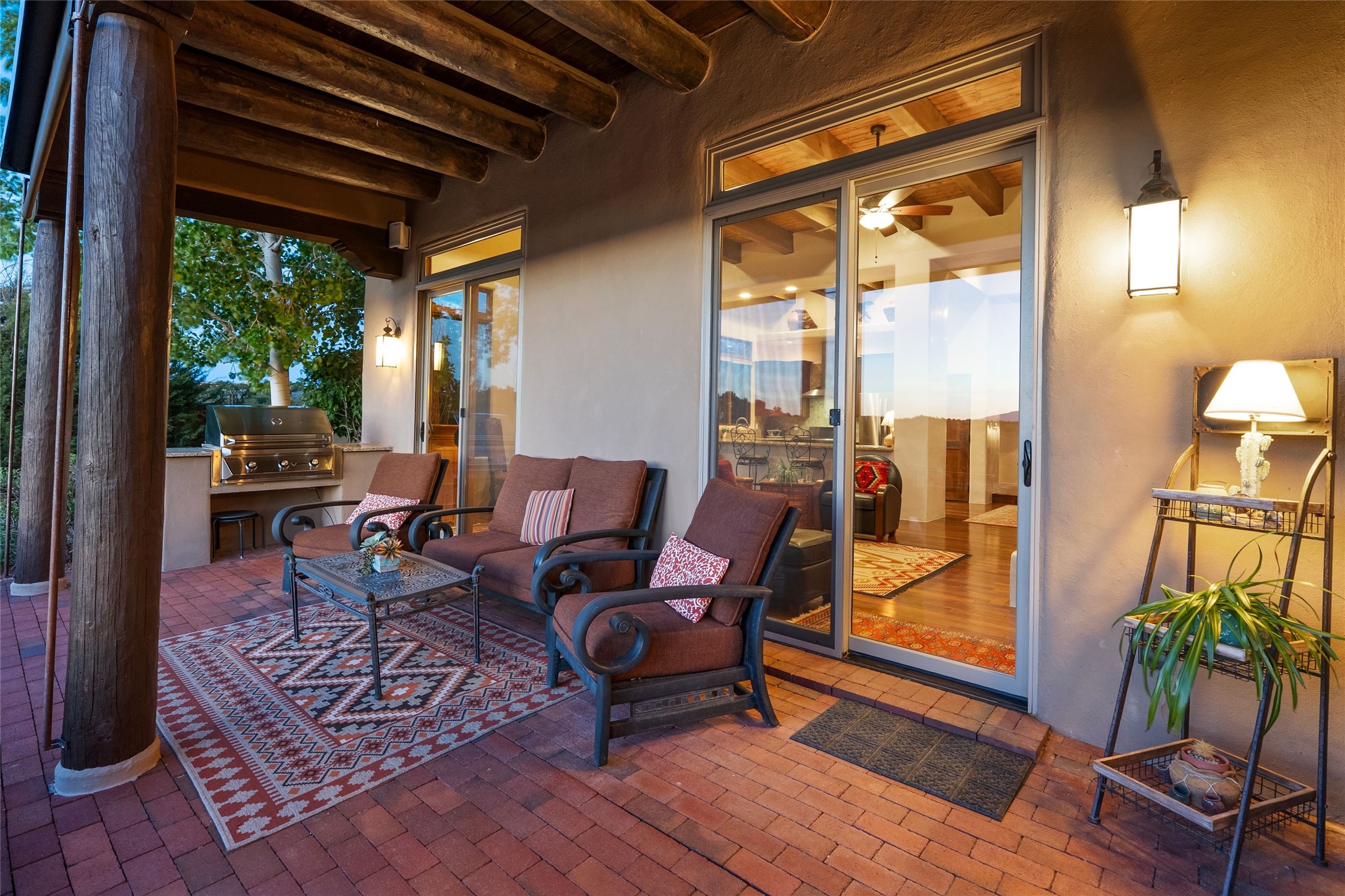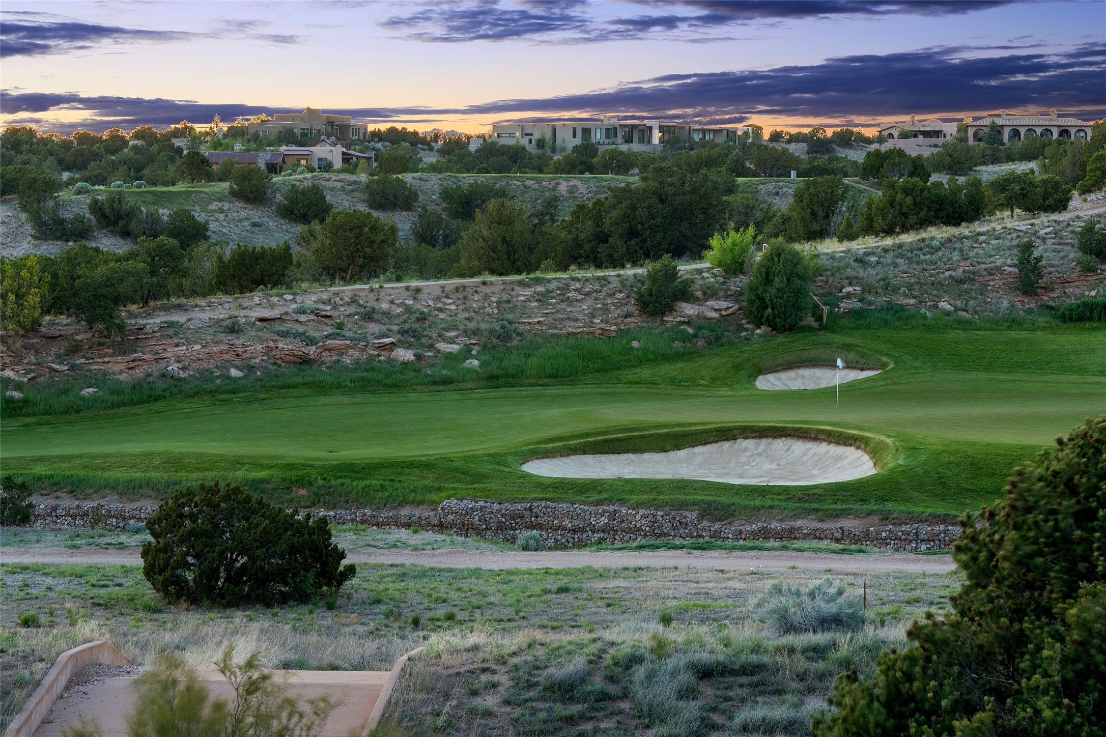Enjoy Panoramic views of the Golf Course as well as the Jemez & Sangre de Cristo Mountainsfrom this 3 Bed / 3 Bath "Lock & Leave" home with a private, detached casita, located on anelevated corner lot in Gated Las Campanas. Double courtyard doors lead to a private oasiswith a brick patio surrounded by mature trees, flagstone walkways & a soothing outdoor waterfeature. Dining al fresco with a Mountain view is your choice at either of 2 outdoor wood-burning fireplaces. Upon entering the home, 2 hand-hewn doors open to a full-length foyerwindow looking into an inviting entry courtyard, awaiting the perfect sculpture or water feature.The Living / Dining area is an open concept layout with a gas fireplace plus 2 sliding doors thatlead to the Back Portal with Golf Course & Jemez Views. The Kitchen includes a 36"KitchenAid 6-Burner Gas Range/Oven, Microwave, Bosch Dishwasher, Whirlpool French DoorRefrigerator & large bar for casual meals. The Master Bedroom Suite enjoys the same Golf &Jemez views with its own private patio, en-suite bathroom with 2 separate sinks, walk-in closet,glass walk-in shower, deep soaking tub & compartmented water closet. Bedroom Two issequestered from the Master and has direct access to Bath Two. Steps away from the mainhome, through the entry courtyard, guests will be delighted with the welcoming 1 Bed / 1 BathCasita with a wet bar, microwave & refrigerator. This Lock & Leave home with Golf Course,Jemez & Sangre de Cristo Mountain views is the perfect Santa Fe get-away or primary homefor the ultimate Santa Fe lifestyle.