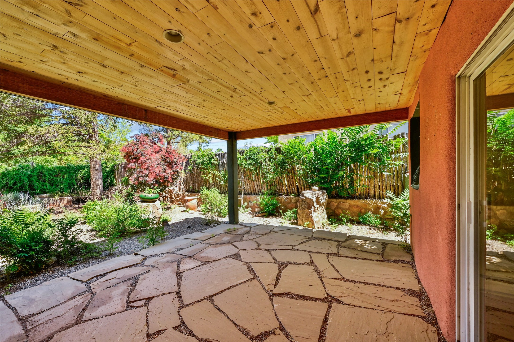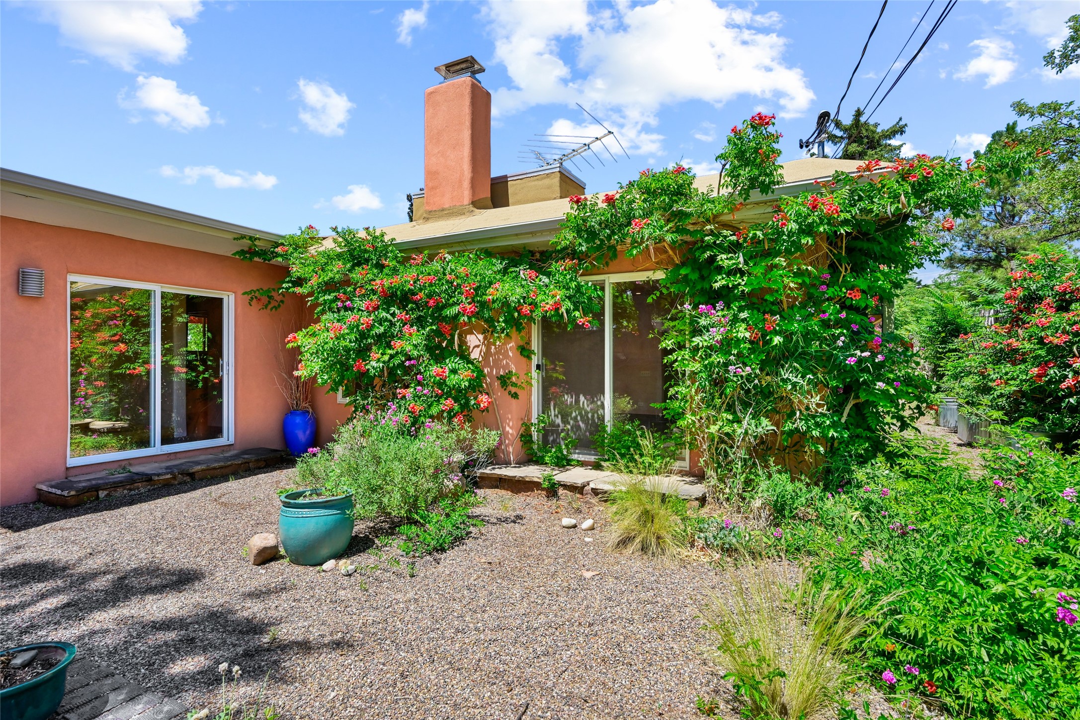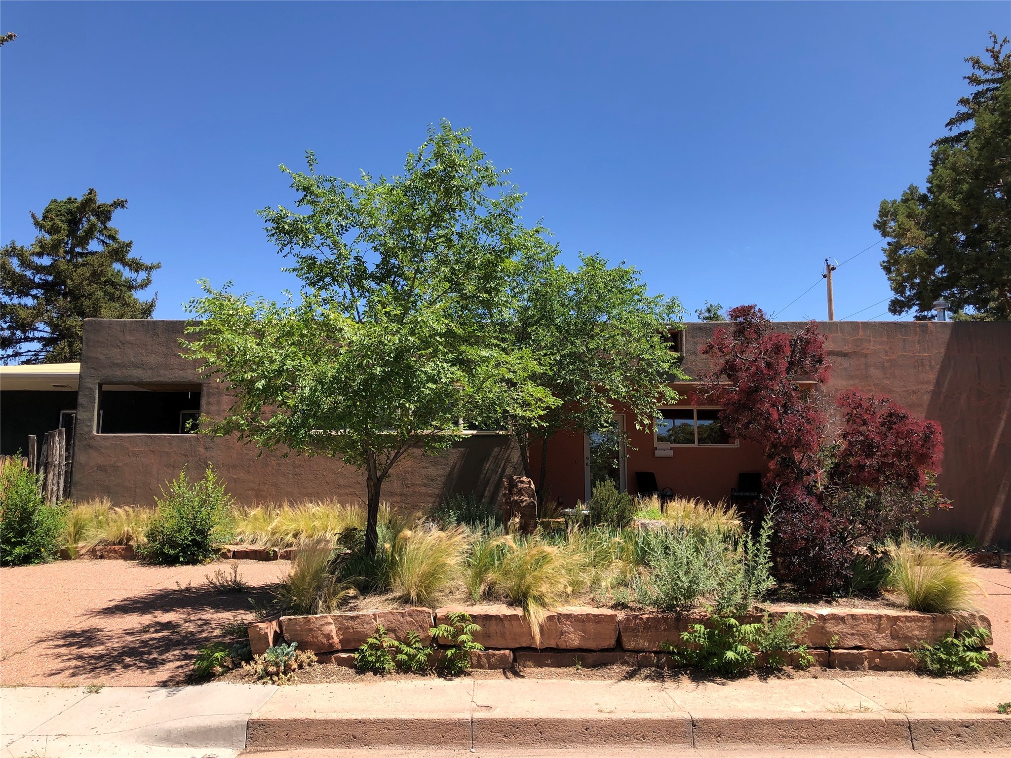 This unique and versatile home in Casa Solana is ideal for a growing family, multi-generational living or savvy investor. The owner has expanded the home to include two separate living spaces. The original home has a primary bedroom suite with a full bath, a second bedroom or office, living area and kitchen. The owner's wing features an open concept kitchen and great room with a wood burning fireplace, an artfully designed primary bedroom and bath, a second bedroom, bathroom, as well as a flex space for a home office and artist studio. Both units have off-street parking and excellent outdoor entertaining spaces. This property offers a fantastic investment opportunity, allowing you to live in one unit and rent out the other or both. Just minutes to shopping, the Plaza and the Railyard.