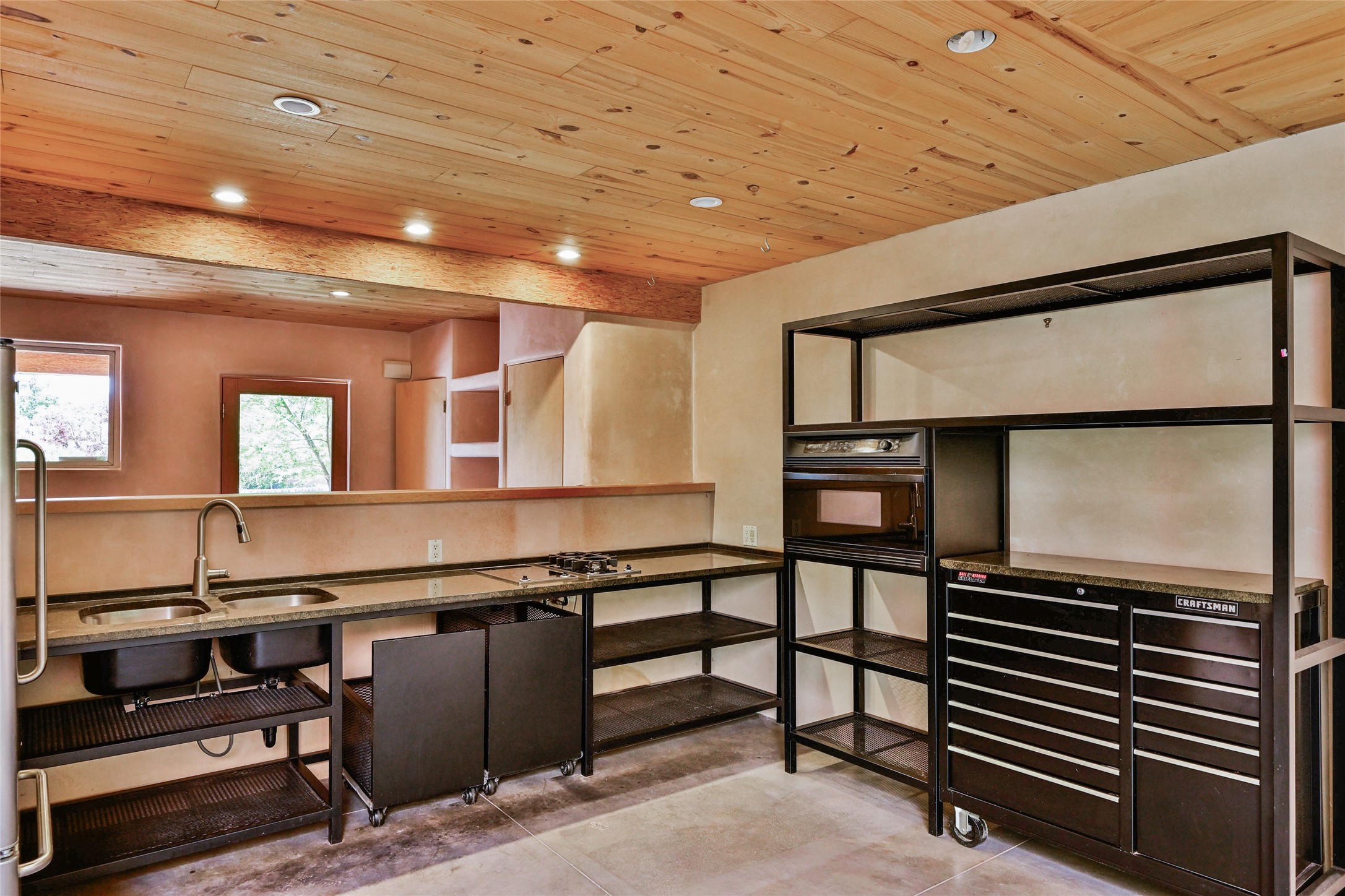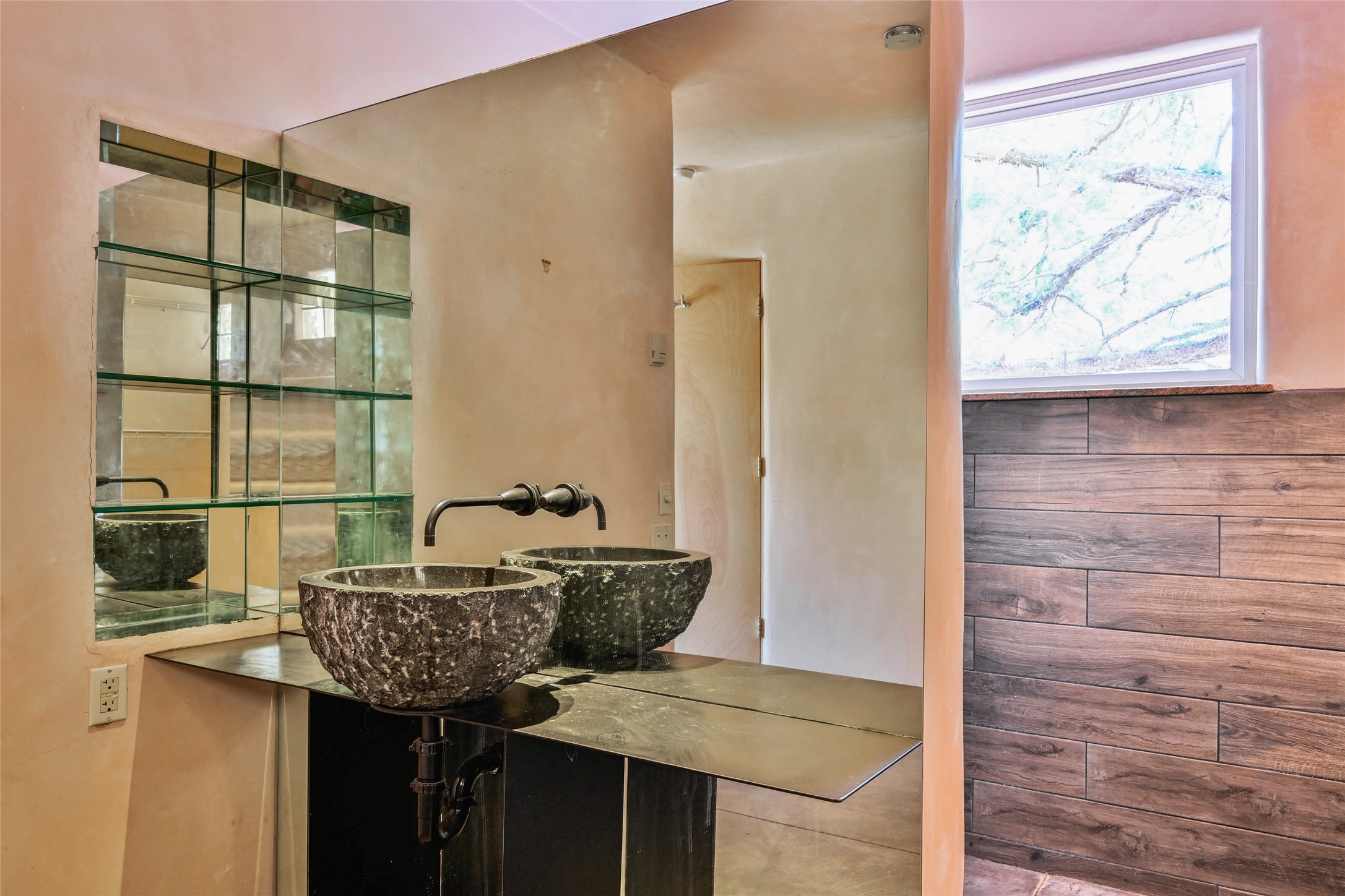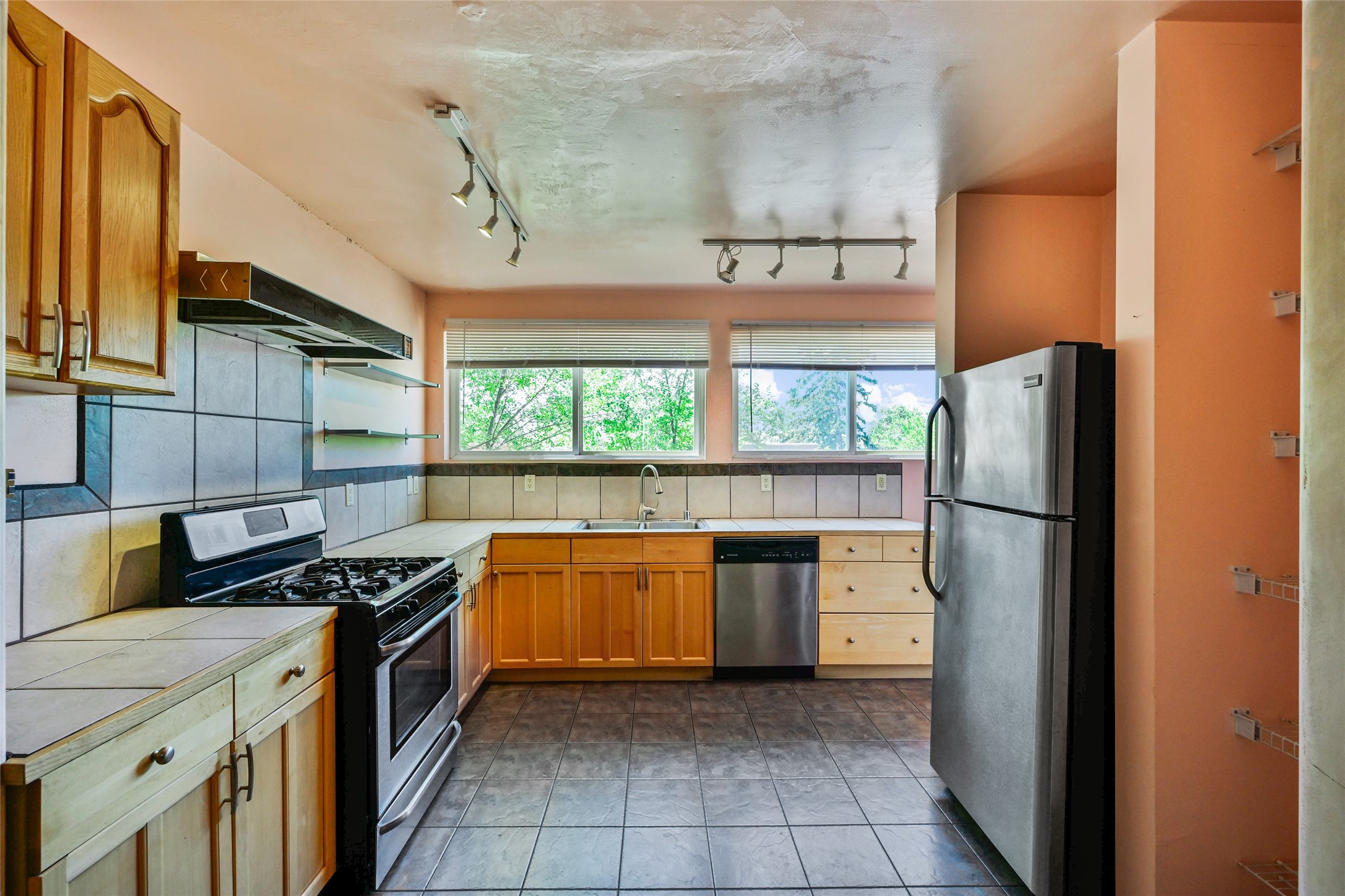 This unique and versatile home in Casa Solana is ideal for a growing family, multi-generational living or savvy investor. The owner has expanded the home to include two separate living spaces. The original home has a primary bedroom suite with a full bath, a second bedroom or office, living area and kitchen. The owner's wing features an open concept kitchen and great room with a wood burning fireplace, an artfully designed primary bedroom and bath, a second bedroom, bathroom, as well as a flex space for a home office and artist studio. Both units have off-street parking and excellent outdoor entertaining spaces. This property offers a fantastic investment opportunity, allowing you to live in one unit and rent out the other or both. Just minutes to shopping, the Plaza and the Railyard.