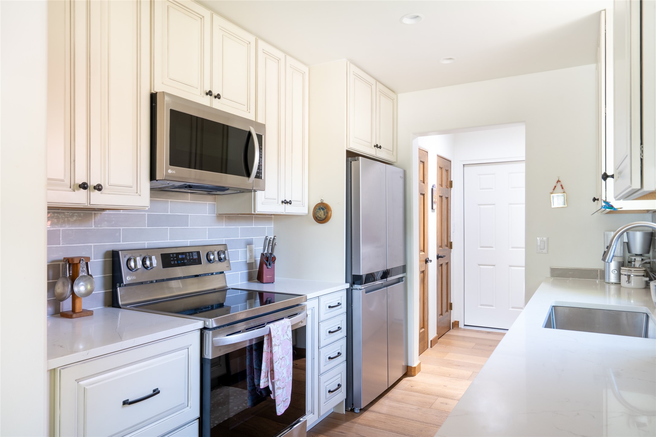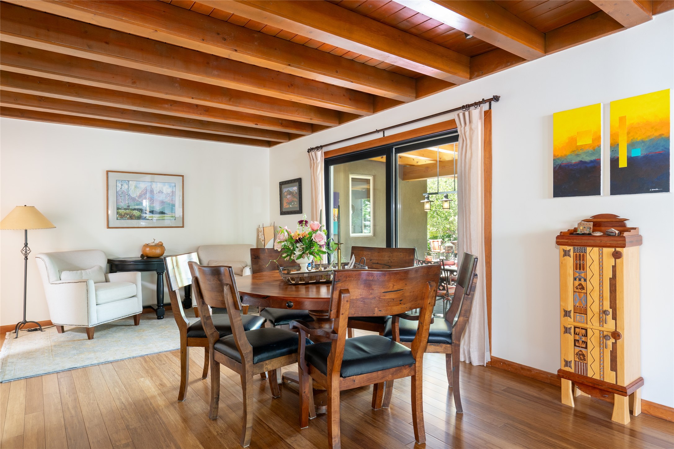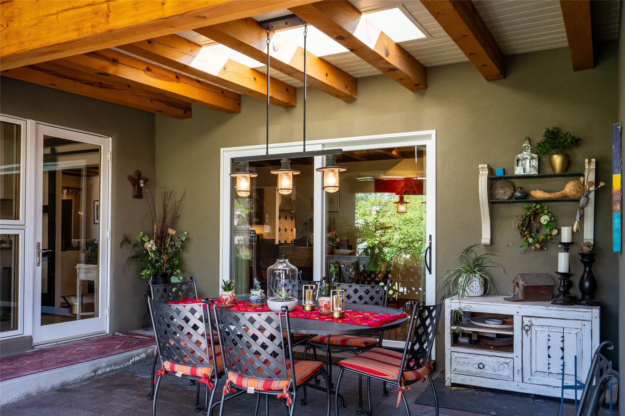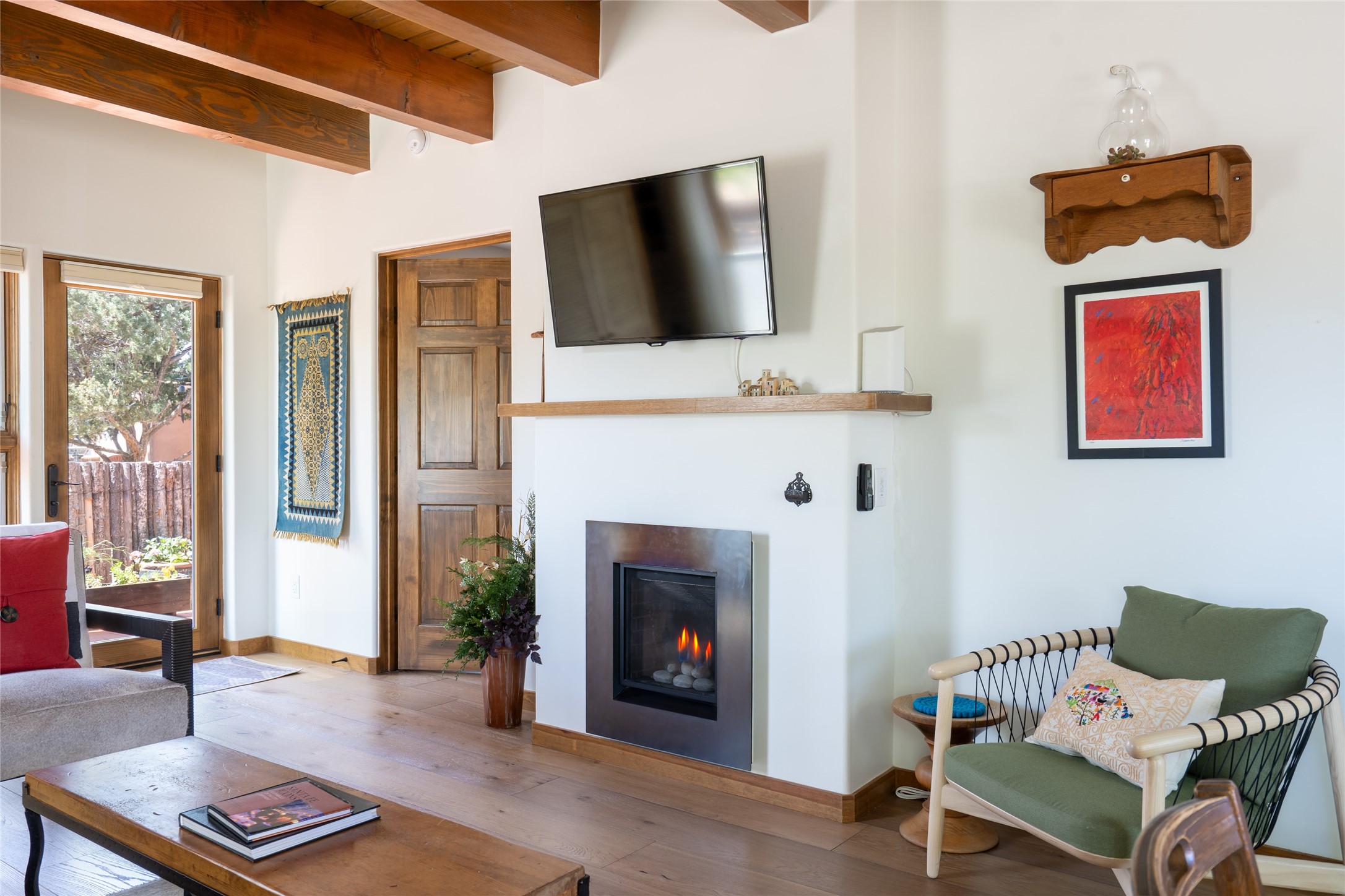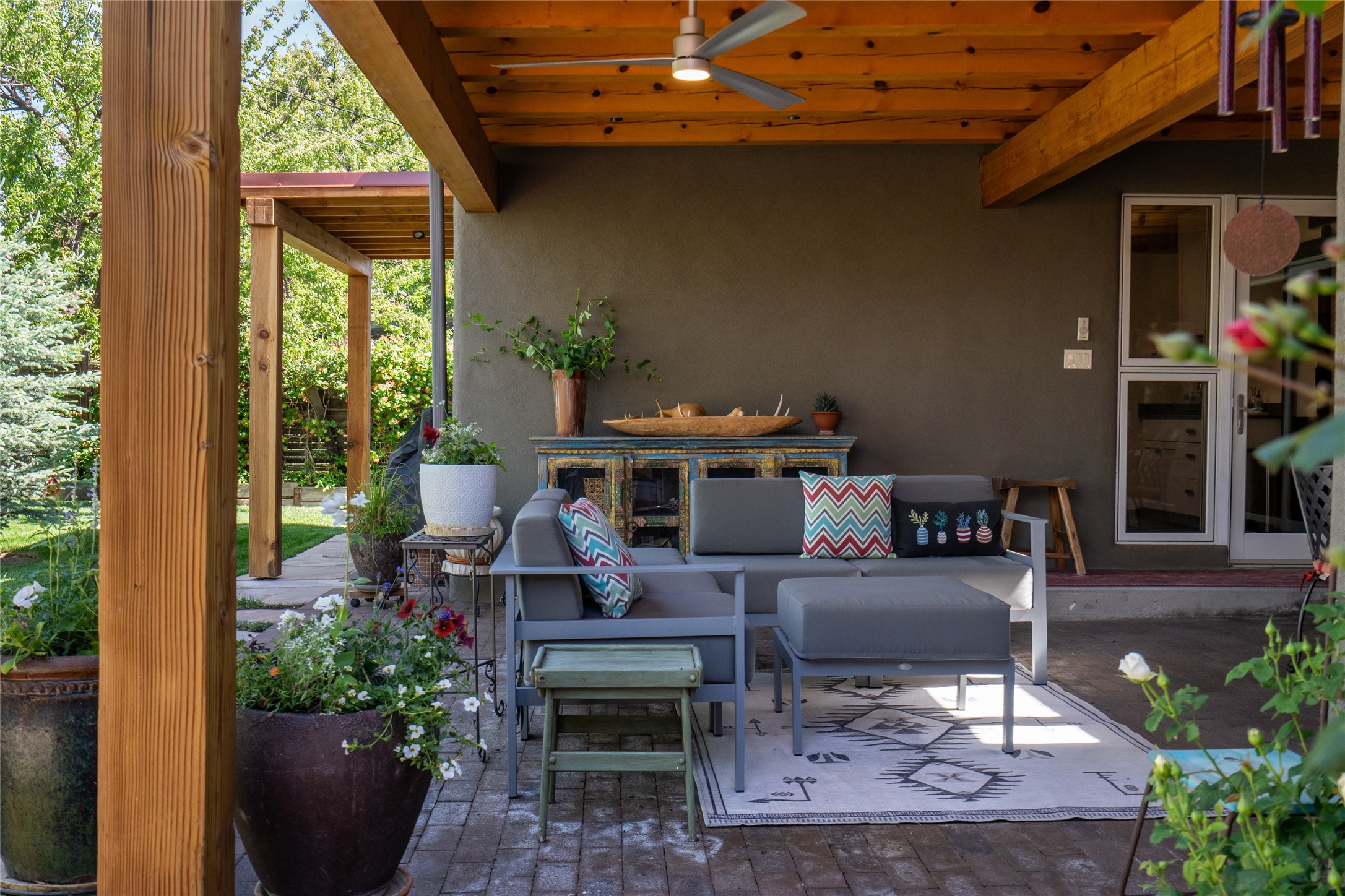 Iconic Stamm home located on a quiet cul-de-sac in a charming centrally-located Santa Fe neighborhood. Extensively remodeled and expanded, this gem features lush, mature landscaping including fruit trees and multiple outdoor spaces--perfect for entertaining or relaxing in a true gardener's paradise. The main home retains the beloved warmth of Stamm construction, with hardwood floors, beamed ceilings, and a cozy fireplace, while offering thoughtful upgrades throughout. Its flexible layout has no interior steps and includes two exceptional additions: an attached one-bedroom casita with a private entrance, solid rental history, and an active short-term rental permit--ideal for generating income, hosting guests, or caring for a loved one --and a spacious studio with its own bathroom, offering endless possibilities as a creative workspace, office, gym, or additional guest suite. Combining character, function, and versatility, this property is just minutes from shopping, restaurants, parks, and the Santa Fe Plaza. Don't miss the opportunity to discover a truly exceptional home.