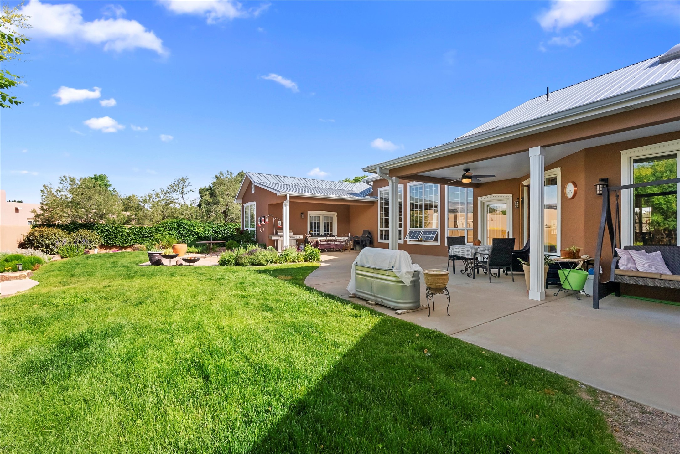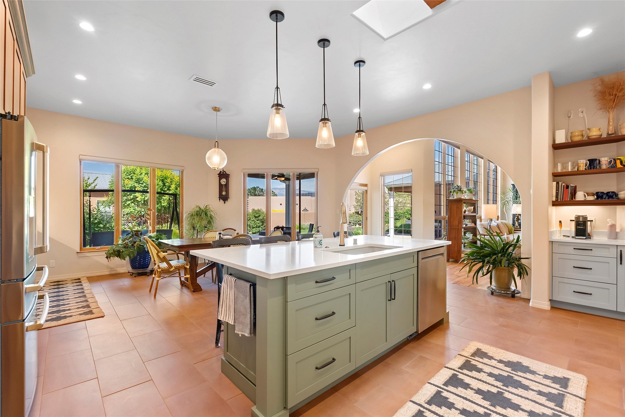 Experience refined desert living in this custom estate, nestled on 1.17 acres of artfully curated gardens and tranquil outdoor spaces. Recently renovated, the main residence blends timeless design with thoughtful upgrades--vaulted ceilings, built-ins, radiant heat, dual ovens, and a stunning remodeled kitchen with custom cabinetry and coffee nook. The fully equipped casita is ADA-compliant and ideal for guests or multigenerational living. Owned solar, deep well, epoxy garage, and extensive landscaping--every detail reflects care. This property is complete with a workshop, greenhouse and fenced in garden area, perfect for your hobbies! A rare blend of privacy, sustainability, and elegance.