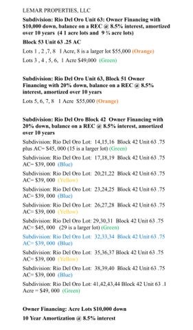Multiple lots available in this development. Lots are sold at a minimum of a .75 package. Each package ranging .75-1.25. Prices range 39,000$-$55,000. Lots are mostly zoned Residential. One of the lots available it the package is zoned Commercial. Please refer to pictures for lots available. Owner financing terms are very feasible. $10,000 down, 10 year call, & a 8.5% interest.
