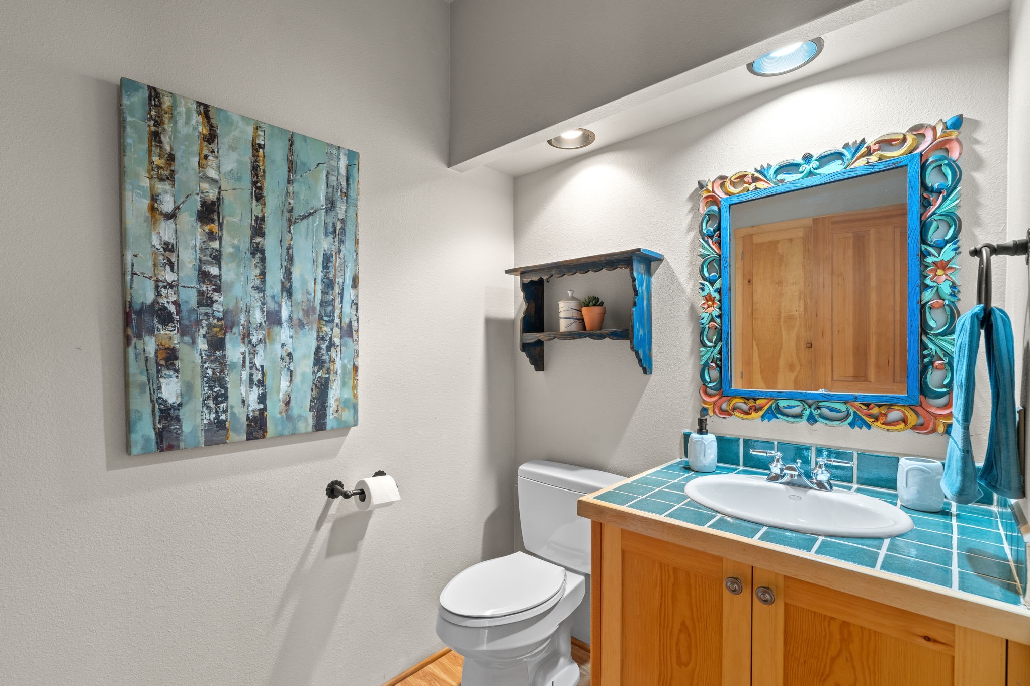 Sophisticated In-Town Living in highly sought-after Estancias Primera on charming La Viveza Court. Leave your home and walk to the Plaza via the lush arroyo. This two-story home has three outside living with an open living/dining/kitchen floor plan with wood-burning Kiva fireplace, plaster walls, wood floors and vigas, a main level powder room and tree-scaped patio. The two well-sized bedrooms have doors to walk out on to the terrace and feature en-suite full baths. In addition to a heated two-car garage with shelving, there are two nicely-sized storage areas. Estancias Primera is known for its reasonable HOA fees, privacy, and has a seasonal swimming pool, tennis courts and a clubhouse. This is the perfect lock-and-leave or full-time home. In five minutes, you're at the Plaza or Dale Ball trail system and in 20 minutes, the ski basin. The home has radiant floor heating and mini splits for air conditioning and additional heating.