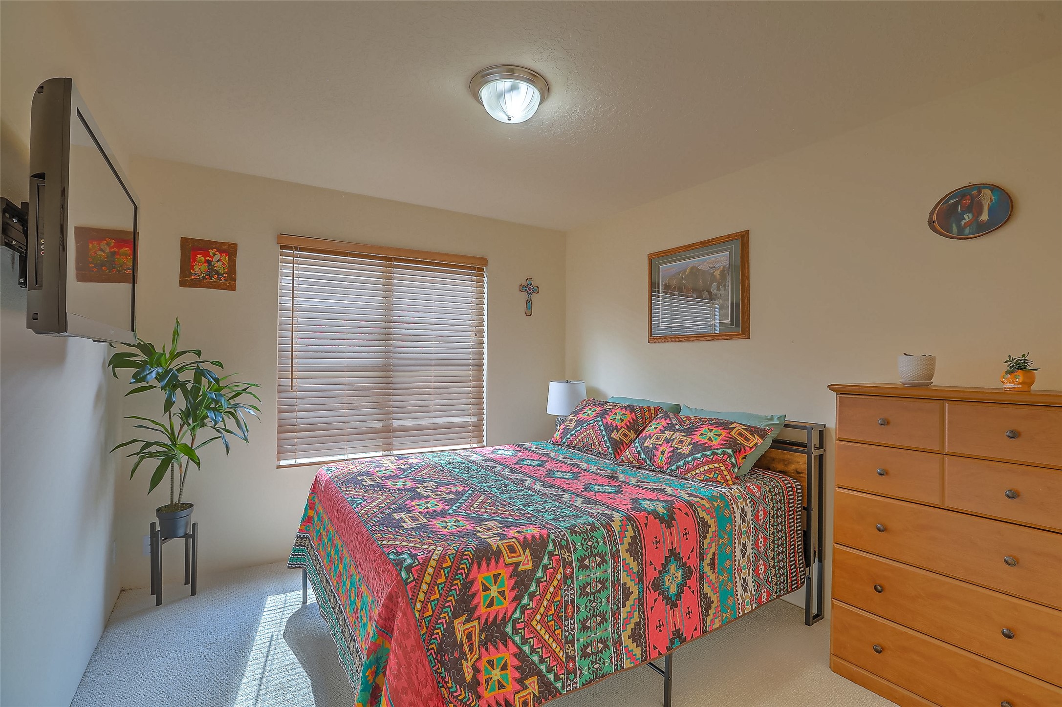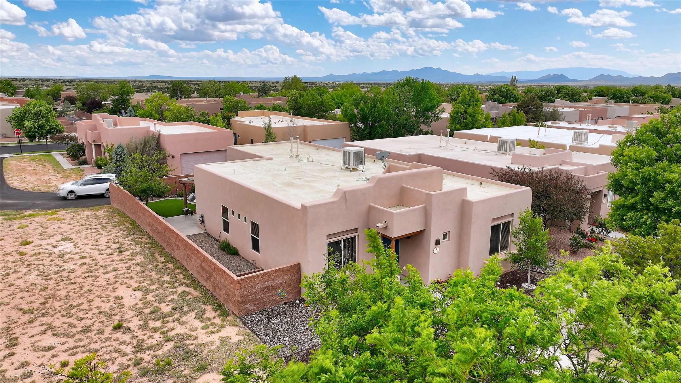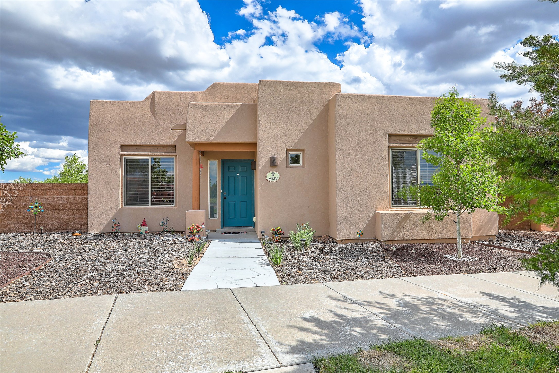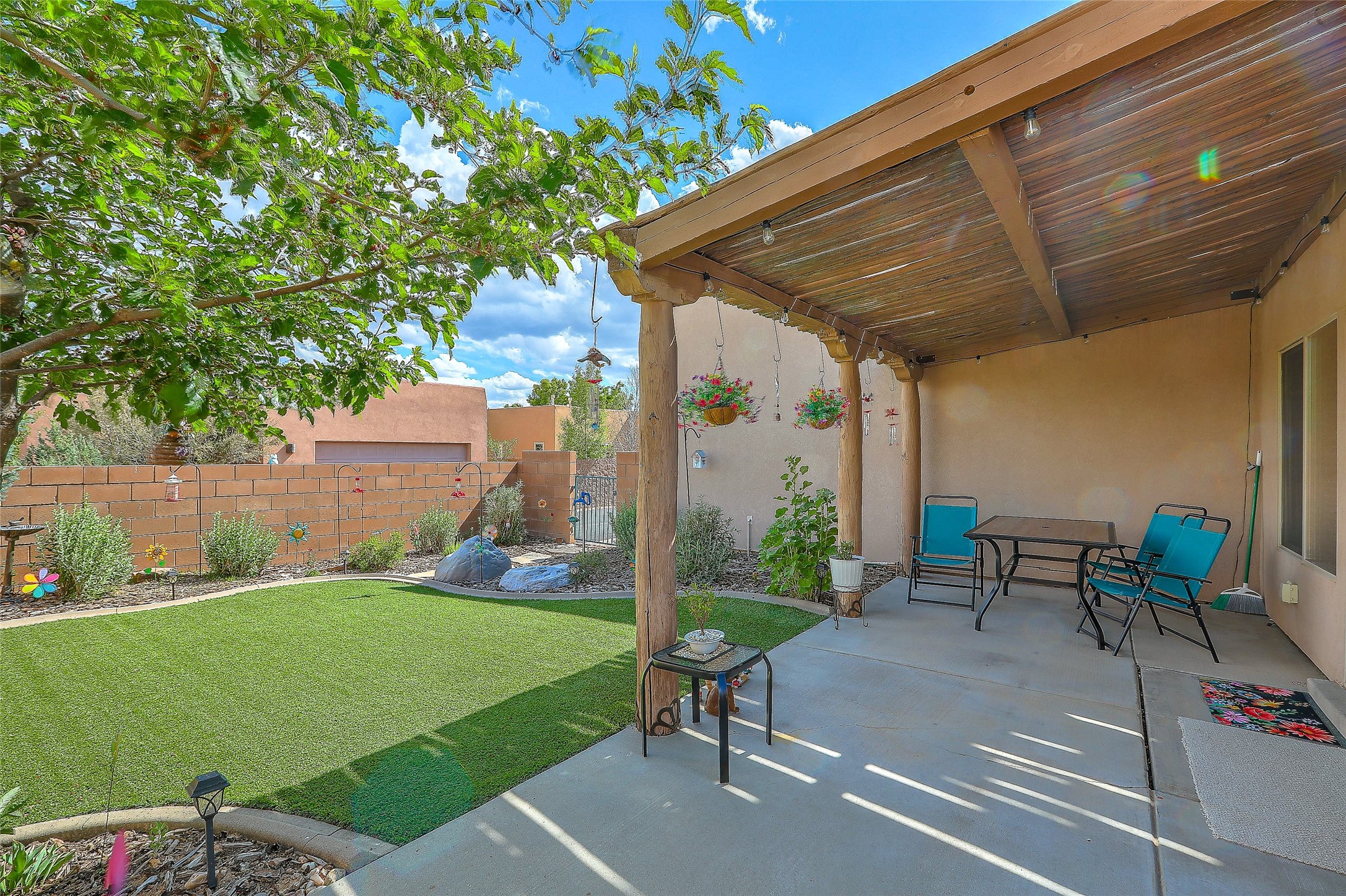 Well loved and cared for home. Move-In Ready with thoughtful touches! Why wait to build? Well designed, this updated lovely home with a newer roof, stucco, & appliances. Spacious layout and great outdoor space. Lots of privacy, end unit with open space and views surrounding it. One level, light and bright & impeccably clean. Guest parking out front of home. 2 car attached garage off alley for easy access. HOA includes trash pickup, road maintenance & snow removal. Community parks, walking, biking and hiking trails everywhere! The open-concept design combines the large kitchen dining area and the main large living room space. Outside, the covered portal showcases to a private backyard oasis enclosed by a privacy wall. Beautiful landscaping, combined with astroturf for pets, allows for beauty with low maintenance. Night time skies for relaxing while stargazing at night. Located in the highly desirable Rancho Viejo community, this home is part of a unique village concept dedicated to open space. With more than 14 miles of scenic walking trails and numerous parks, residents enjoy a serene and active lifestyle. Plus, you're roughly 14 miles from the Santa Fe Plaza, making it easy to experience all the culture, dining, & entertainment Santa Fe has to offer. Don't miss this rare opportunity to own this newly updated home in a tree filled community--schedule your showing today, this one won't be on the market long!