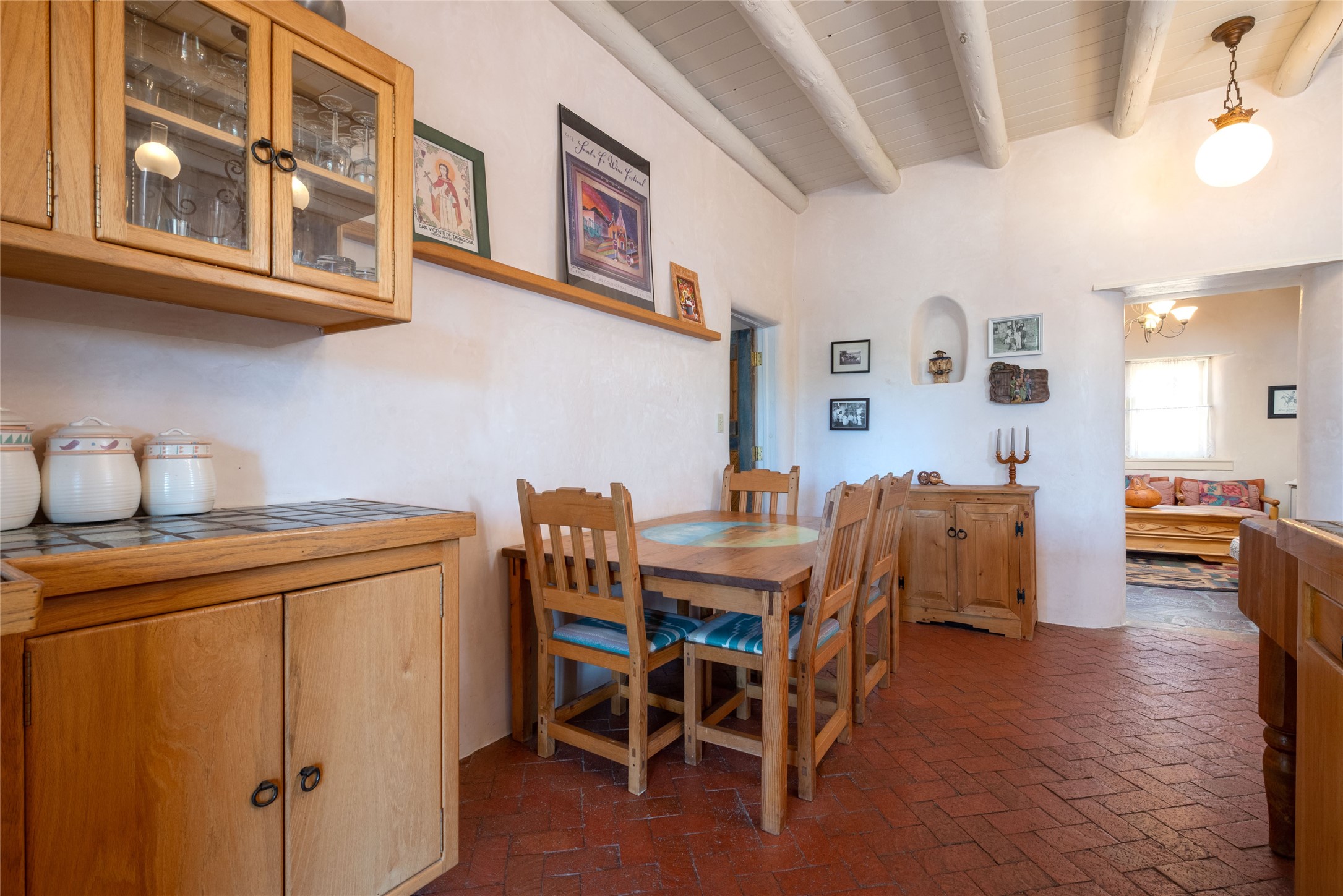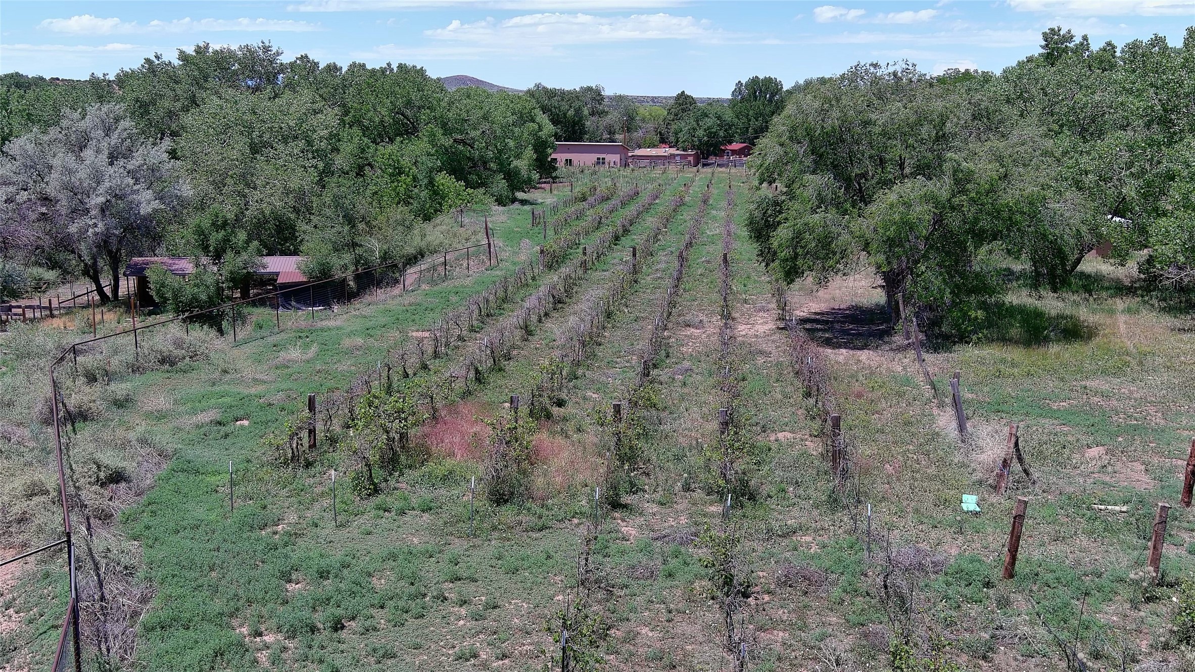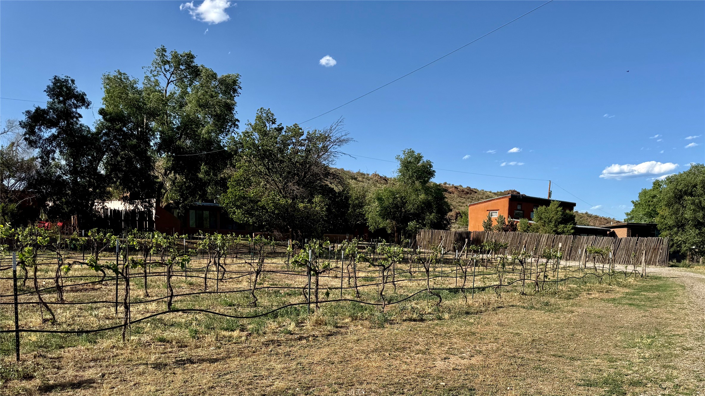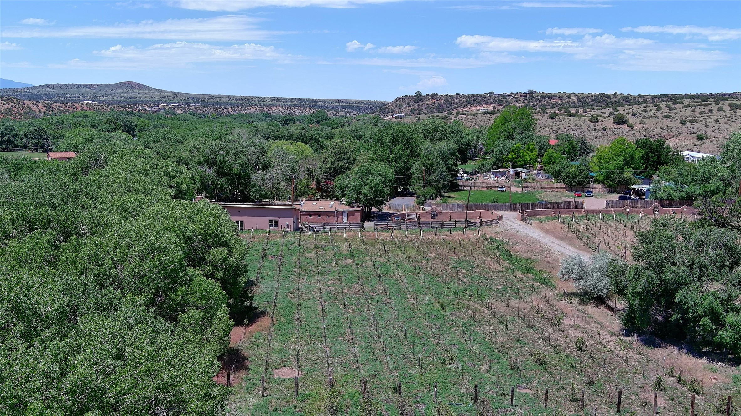 La Cienega Vineyard Estate - Four Parcels with Adobe Homes, Studios & Acequia Water Rights. Discover a unique opportunity in the heart of historic La Cienega--a vibrant 6-acre vineyard comprising four separately deeded parcels, rich with potential and authentic New Mexico charm. Anchored by two traditional adobe homes, the estate is steeped in regional character and surrounded by natural beauty. The main house features 3 bedrooms, 2 baths, and showcases classic Santa Fe style with brick floors, vigas, and elegant touches throughout. The adobe main residence is a quintessential historic home in the La Cienega Village. The second adobe home offers additional living space or rental income potential. In addition to the homes, the property includes a partially completed two-story apartment--ready for your finishing touches--and several studio structures that could be transformed into creative workspaces, studios, rentals or other uses associated with the Vineyard. The well-maintained vineyard is nourished by valuable acequia water rights, ensuring sustainable growth and offering agricultural possibilities for wine production, agritourism, or farm-to-table ventures. With flexible uses and multiple dwellings already in place, this rare offering is ideal for a variety of uses--live/work, multi-generational living, a creative retreat, or a boutique vineyard business. Properties with this combination of history, water, and opportunity are seldom available in La Cienega