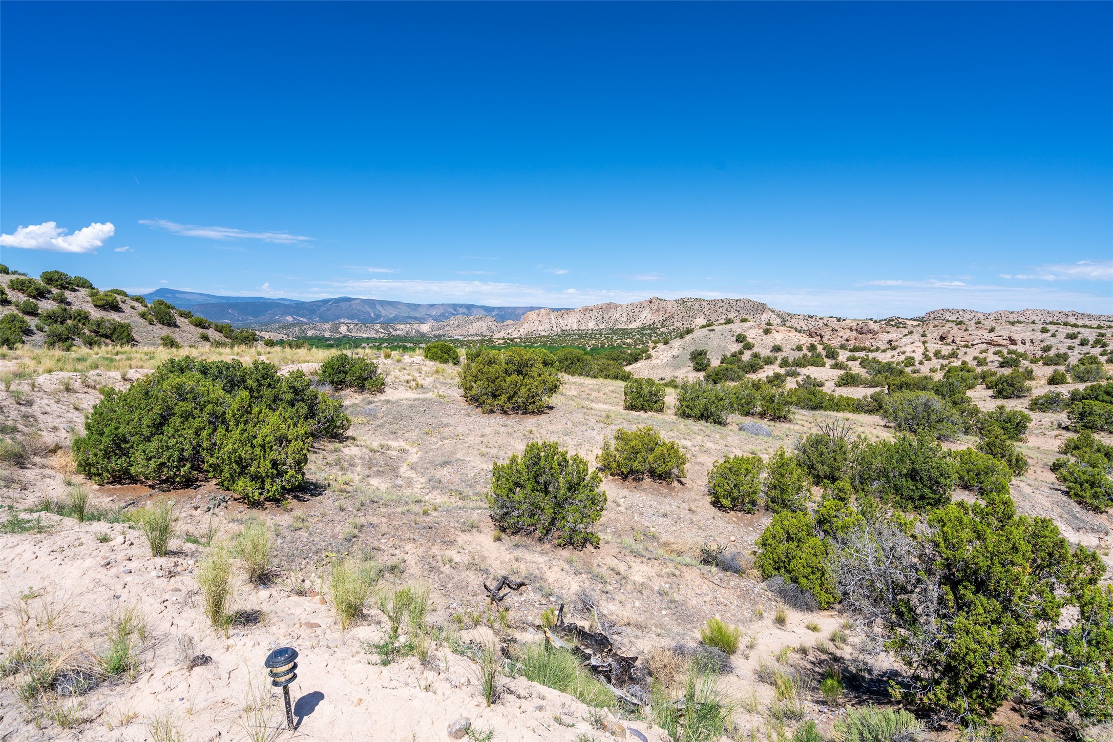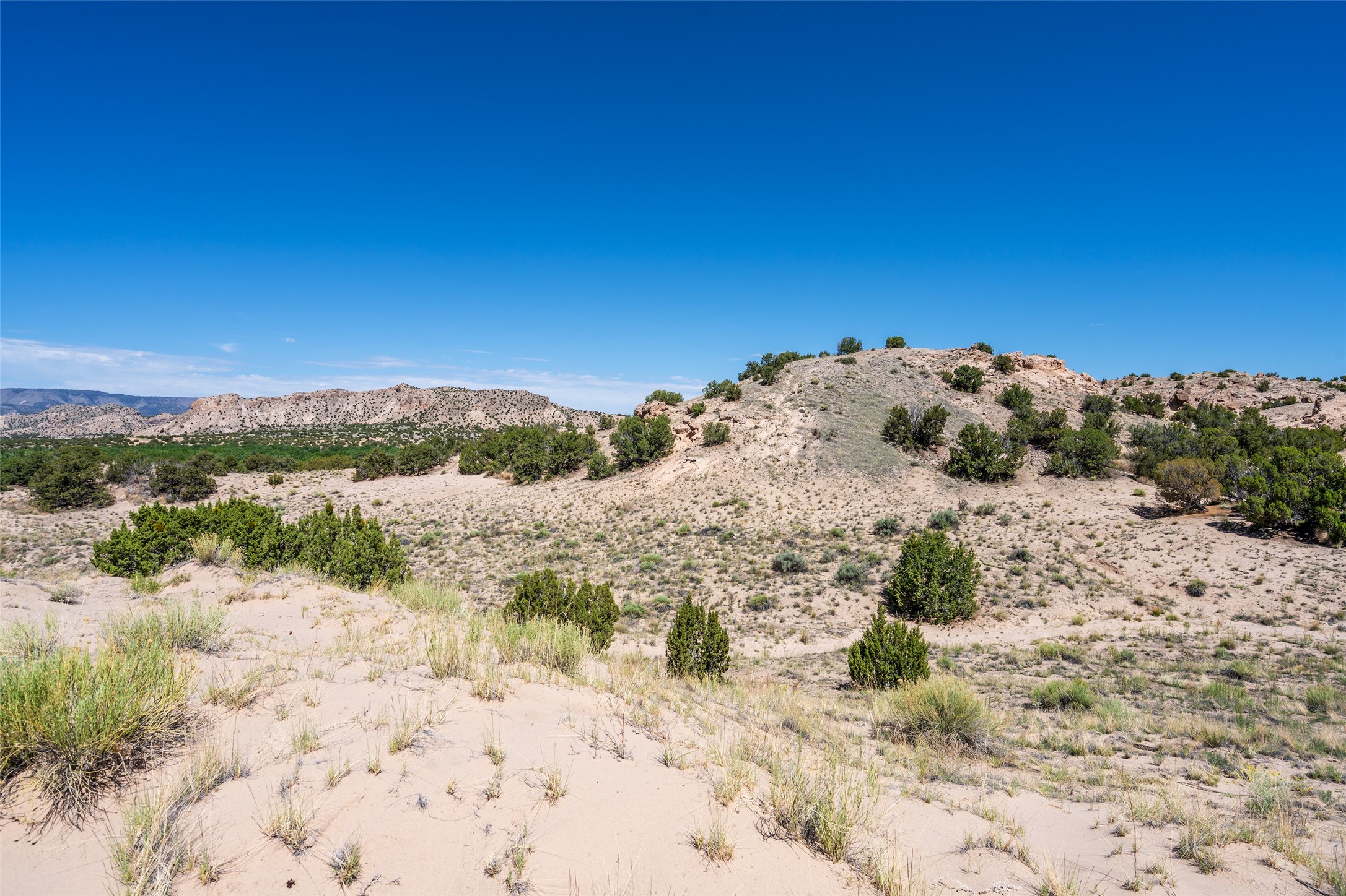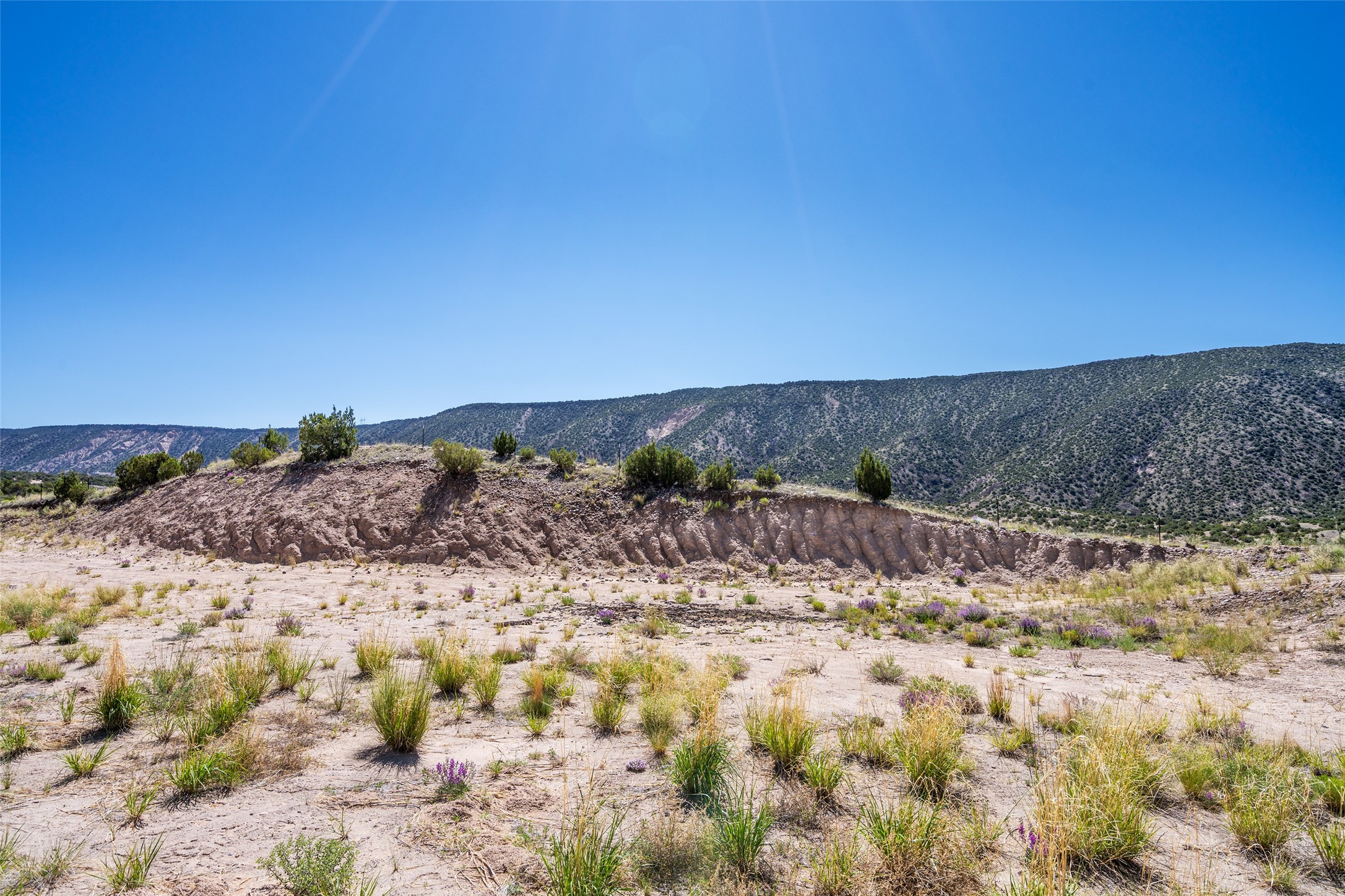 Amazing views without having a bumpy, out of the way trek up a mountain. This kind of opportunity doesn't come very often. Build your dream home, wake up to spectacular sights over the valley, but still have access directly off highway 285, and still feel secluded because of the hills on either side of the entrance which give buffers between home and highway. Perfection! The higher area has already been flattened in preparation for building. This point overlooks arroyos, valleys. and mountain formations. Electricity isn't very far away. Access directly off 285 will make other utilities easier to bring in as well. Not a far commute to Los Alamos. Two lots being sold together for a total of 3.93 acres.