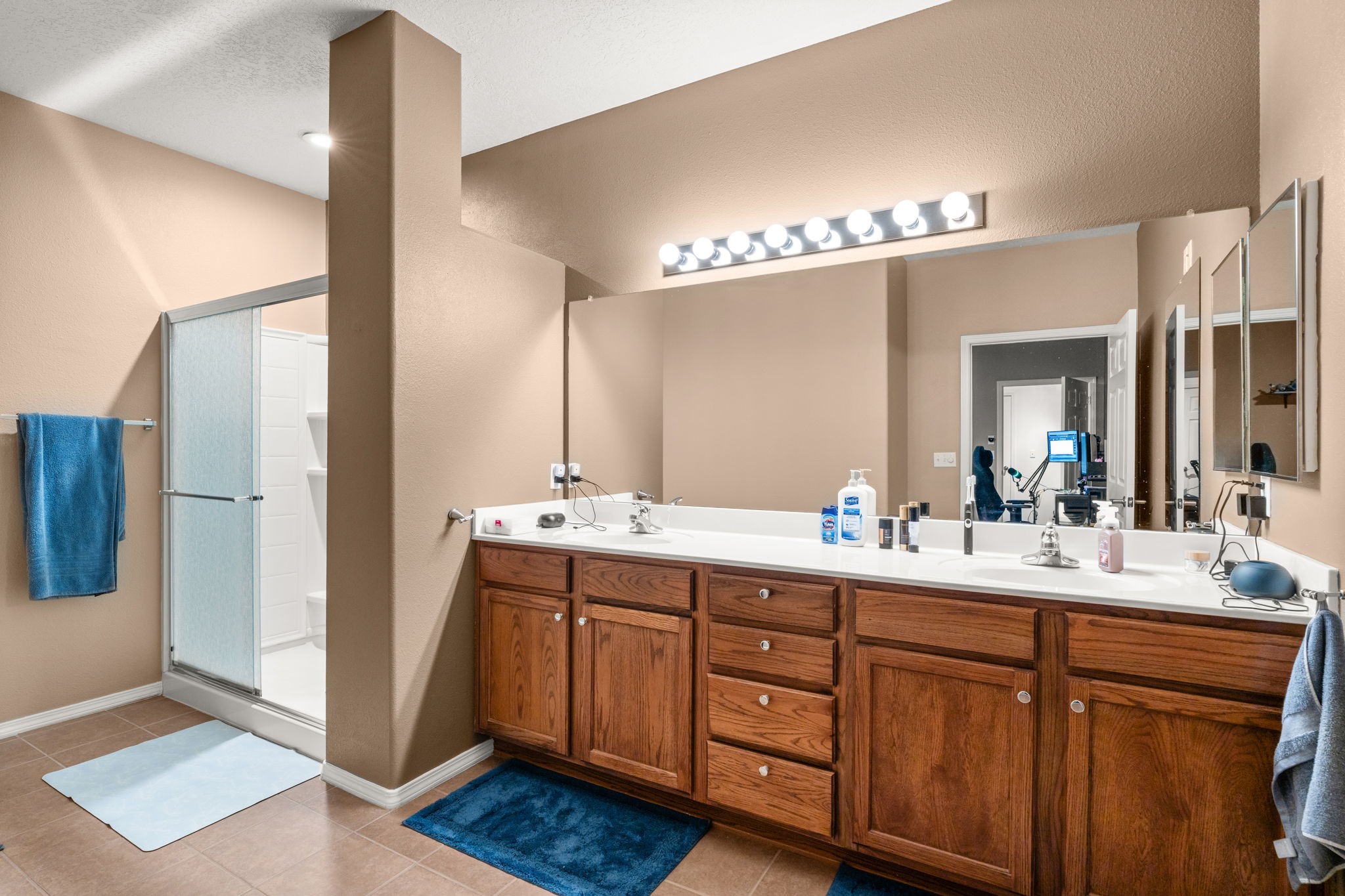 Nestled in the desirable Turquoise Trail community, 3 Canyon Cliff Drive is a beautifully maintained single-level home offering 3 bedrooms, 2 bathrooms, and 1,783 square feet of comfortable living space. Built in 2007, the home features a thoughtful split floor plan with wide hallways and no interior steps, making it ideal for all stages of life with excellent potential for easy conversion to ADA. The spacious great room is open to the kitchen and dining areas, and sliding doors lead to a private outdoor patio. The well-appointed kitchen includes ample storage, under-cabinet lighting, a pantry, microwave, and gas cooking--perfect for those who love to cook and entertain.The generous primary suite features a large walk-in shower and double vanity, while the two additional bedrooms offer generous sized closets and easy access to a full guest bathroom with a deep soaking tub. A convenient laundry room, spacious room sizes, ceiling fans, and updated window blinds add to the home's appeal.Outside, the wraparound yard is ready for gardening or outdoor relaxation. An oversized one-car garage provides direct entry into the home. Recent upgrades include a resurfaced roof and a new hot water heater installed in 2022. Comfort is ensured year-round with forced air heating and refrigerated air conditioning. The community includes access to a beautifully maintained park with playground and ample parking. Conveniently located near major corridors, shopping centers, and medical facilities, this home is a true gem offering comfort, and convenience!