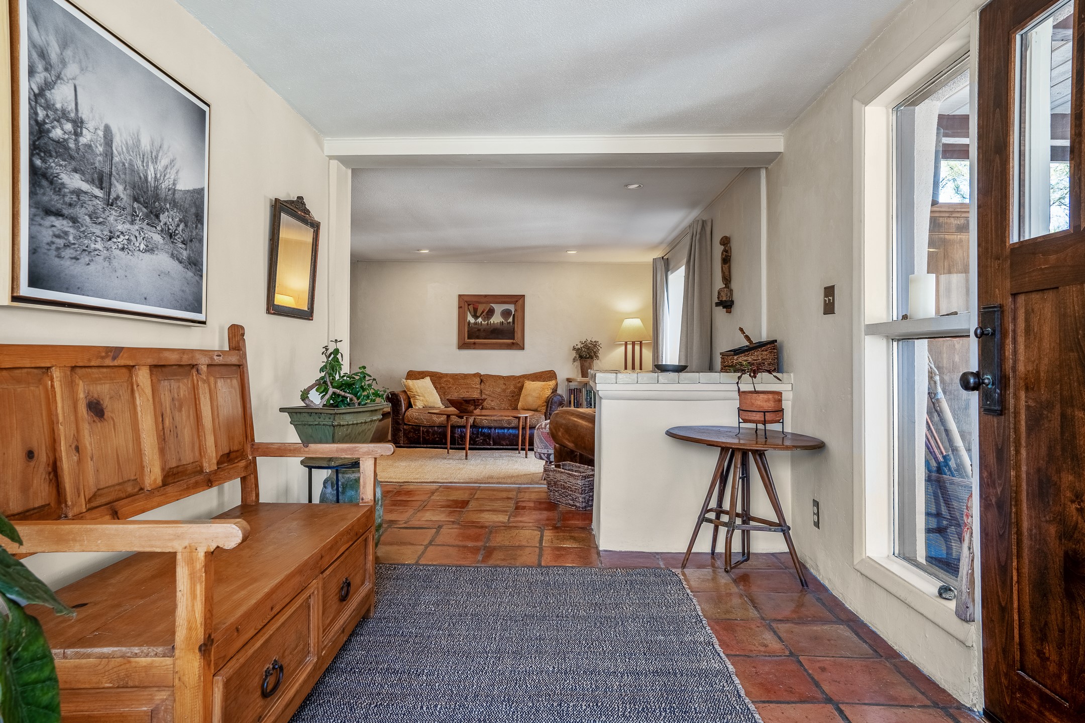Historic Charm Meets Modern Elegance.Discover the perfect blend of historic charm and modern updates in this stunning, mostly adobe home located in the heart of Tesuque. This exquisite 3-bedroom, 2-bathroom residence features a spacious double-sided fireplace and an expansive dining area. The recently remodeled chef's kitchen boasts soapstone countertops, a quartz sink, and locally crafted cabinetry, including a hand-hewn mahogany pantry. The single-level layout ensures a seamless flow throughout the home. Interior highlights include a light-filled artist studio, skylights, handmade antique Saltillo tile floors, a Reverse Osmosis water system, a new washer and dryer, and a newer heating system (installed in 2022). Additional features include outdoor storage, a large attic, and ample parking.Step outside to a charming courtyard adorned with apple, pear, and pine trees--perfect for lounging during the warmer months. The native plant landscaping, surrounded by majestic Cottonwood trees, adds to the home's serene ambiance.Located just a few minutes' drive from Santa Fe Plaza, this home is conveniently near Tesuque Market and the Santa Fe Opera. Nature lovers will appreciate the proximity to the Santa Fe National Forest hiking trails and the Windsor Trail, with the soothing sound of the Rio Tesuque greeting you at the front door.This home is a rare find in the historic and highly sought-after Tesuque Village area of Northern New Mexico. It is part of a two-home condominium association with zero HOA fees. For more information, please visit http://tesuque-charm.com/