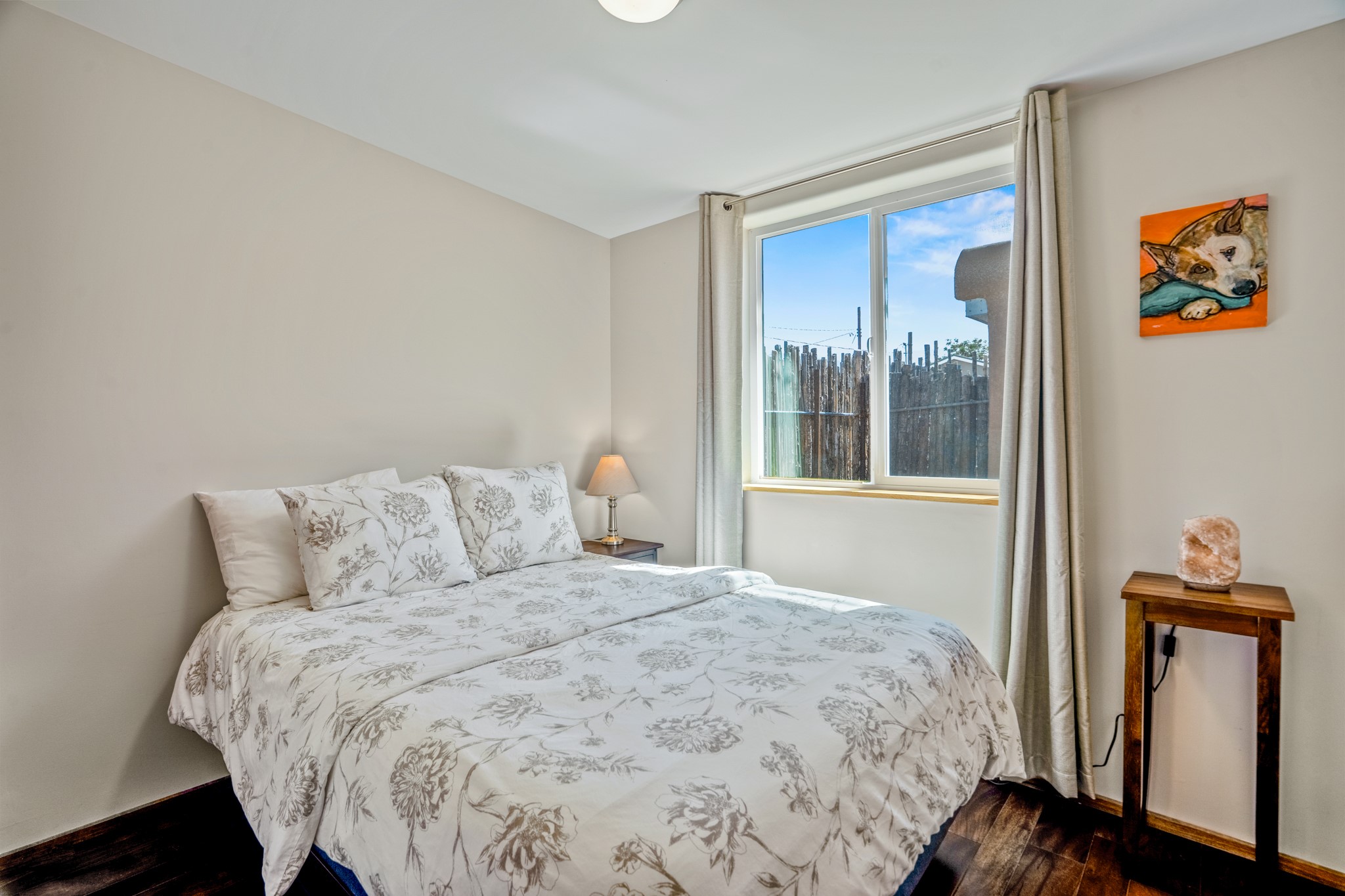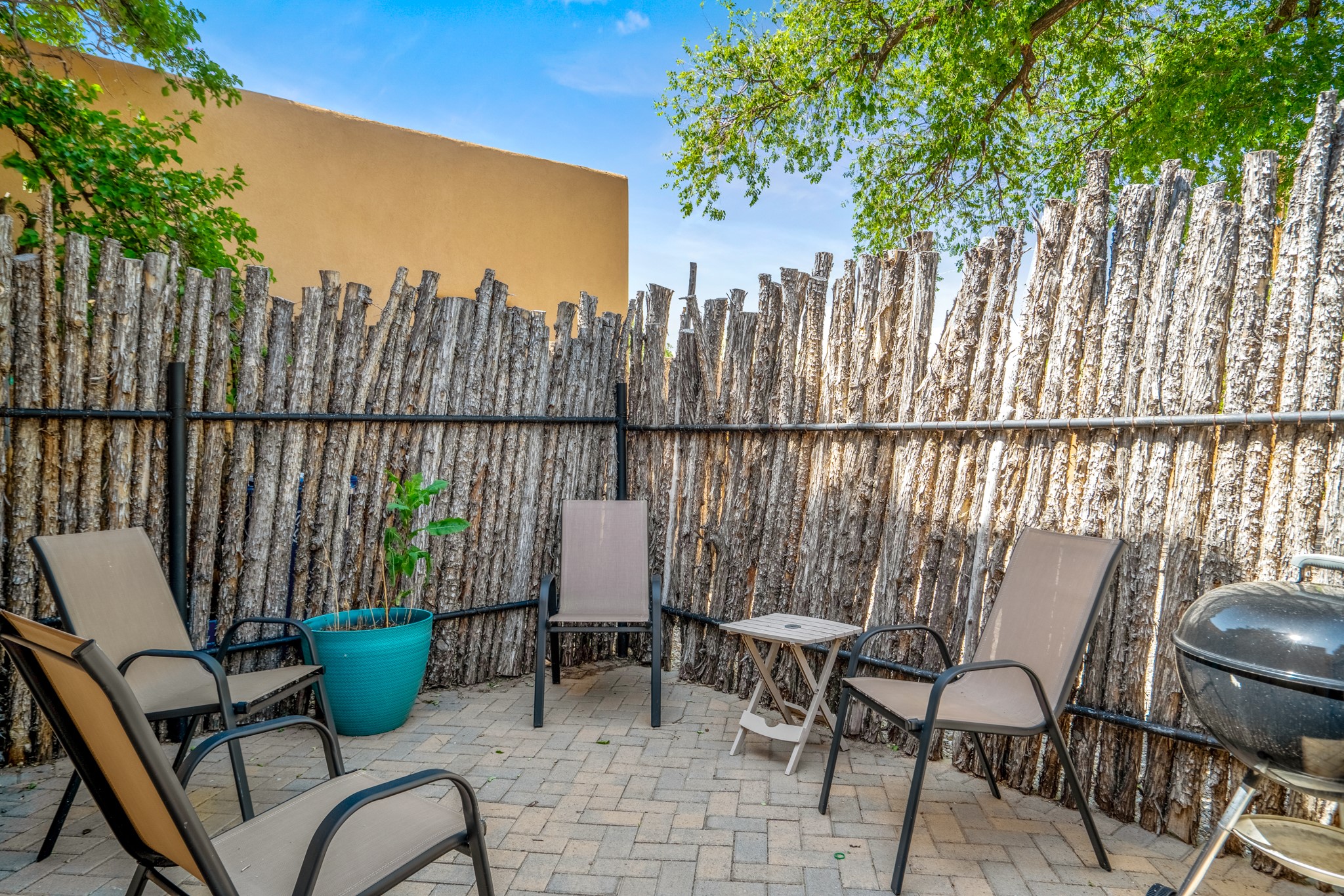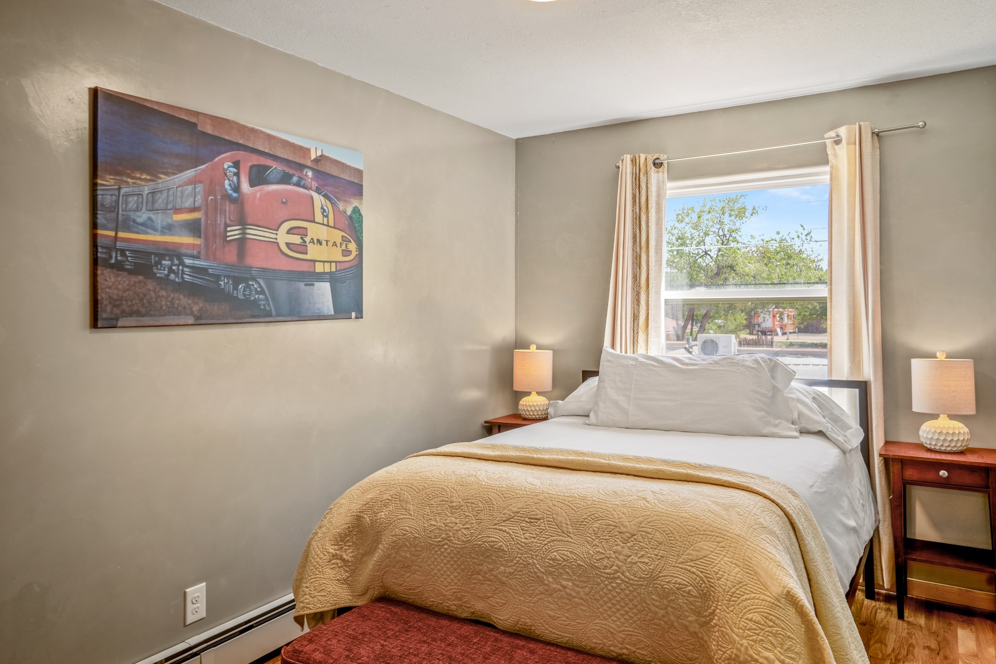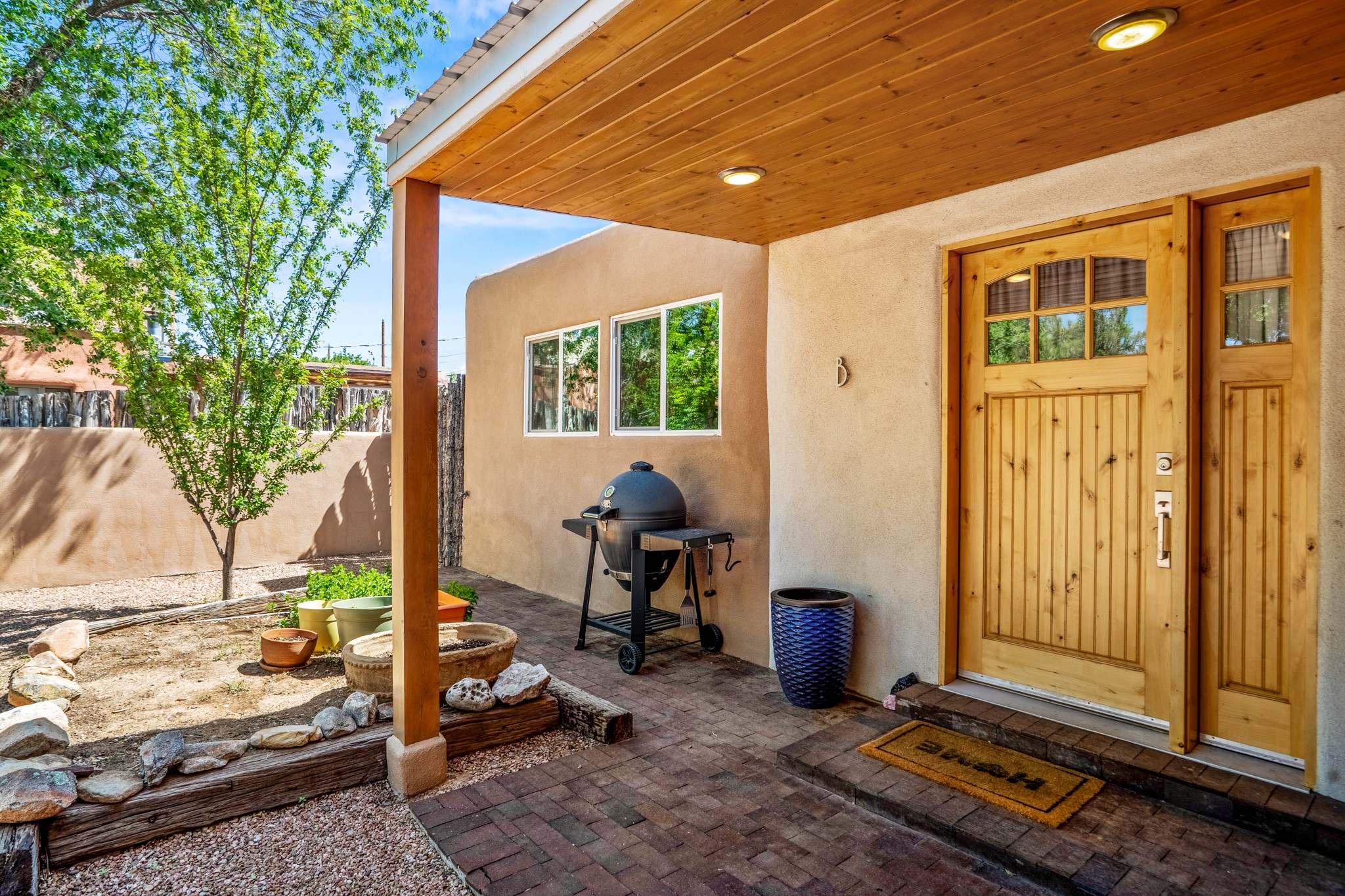 Versatile Income Property Just One Block from the Railyard District! Just steps from the vibrant Santa Fe Railyard, this thoughtfully renovated compound offers flexibility, privacy, and excellent income potential. The single-level 3-bedroom, 2-bathroom main residence spans 1,487 sq. ft., with an open-concept kitchen/living/ dining area featuring beautiful Venetian plaster walls, butcher block countertops, and direct access to a private back courtyard. The primary suite includes a spacious walk-in closet and its own secluded patio. Comfort is ensured year-round with in-floor radiant heating and central A/C. Set to the side for maximum privacy, the 1,192 sq. ft. guest house offers 3 bedrooms, 2 bathrooms, a full kitchen, its own laundry, and a serene courtyard shaded by tall trees--an ideal retreat for guests or a proven income-producing rental. Separating the two dwellings is a 300 sq. ft. workshop/storage room that adds even more functionality to the property.This is a rare opportunity to live just one block from the Railyard--with space to live, host, create, or invest.