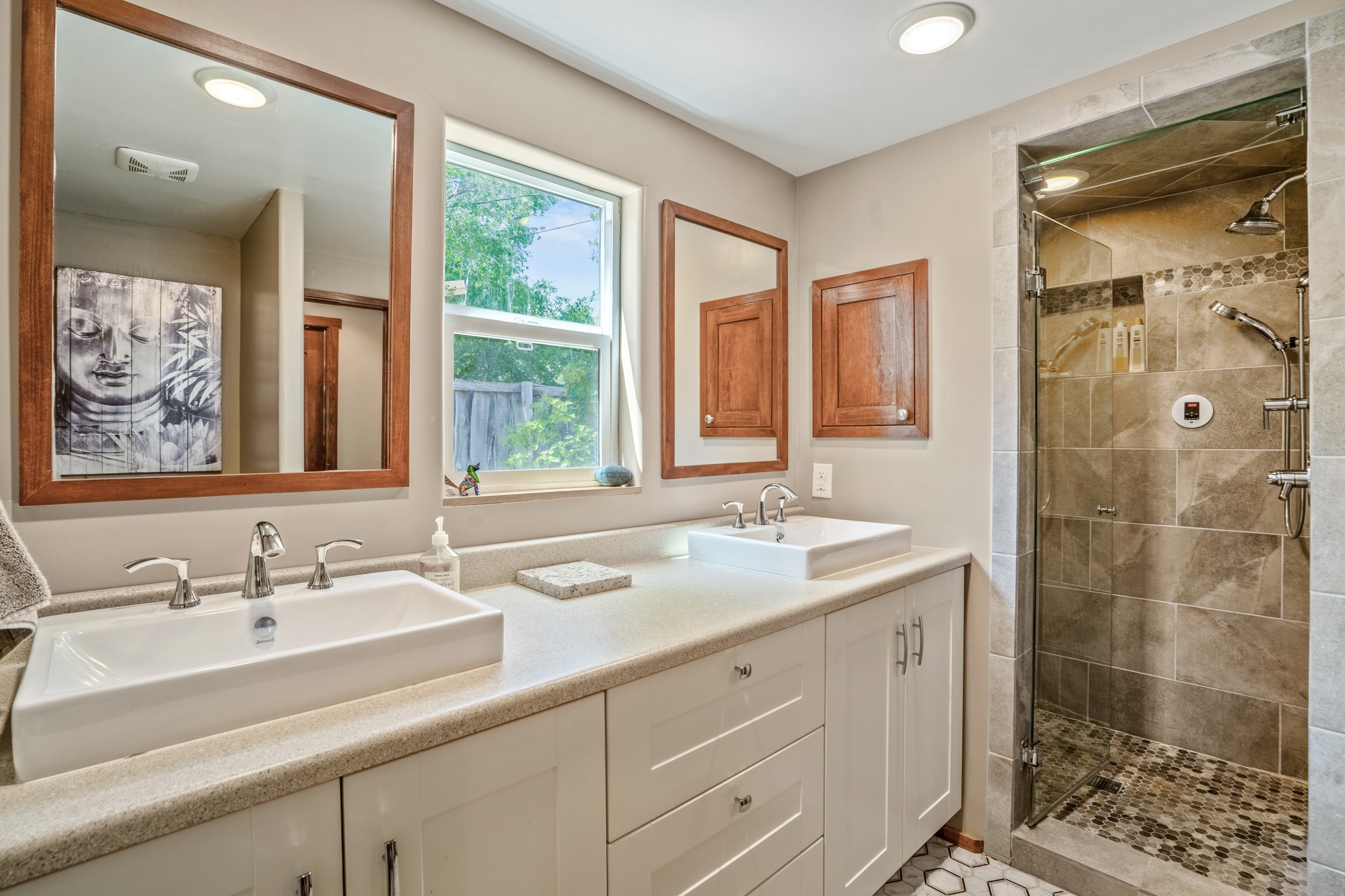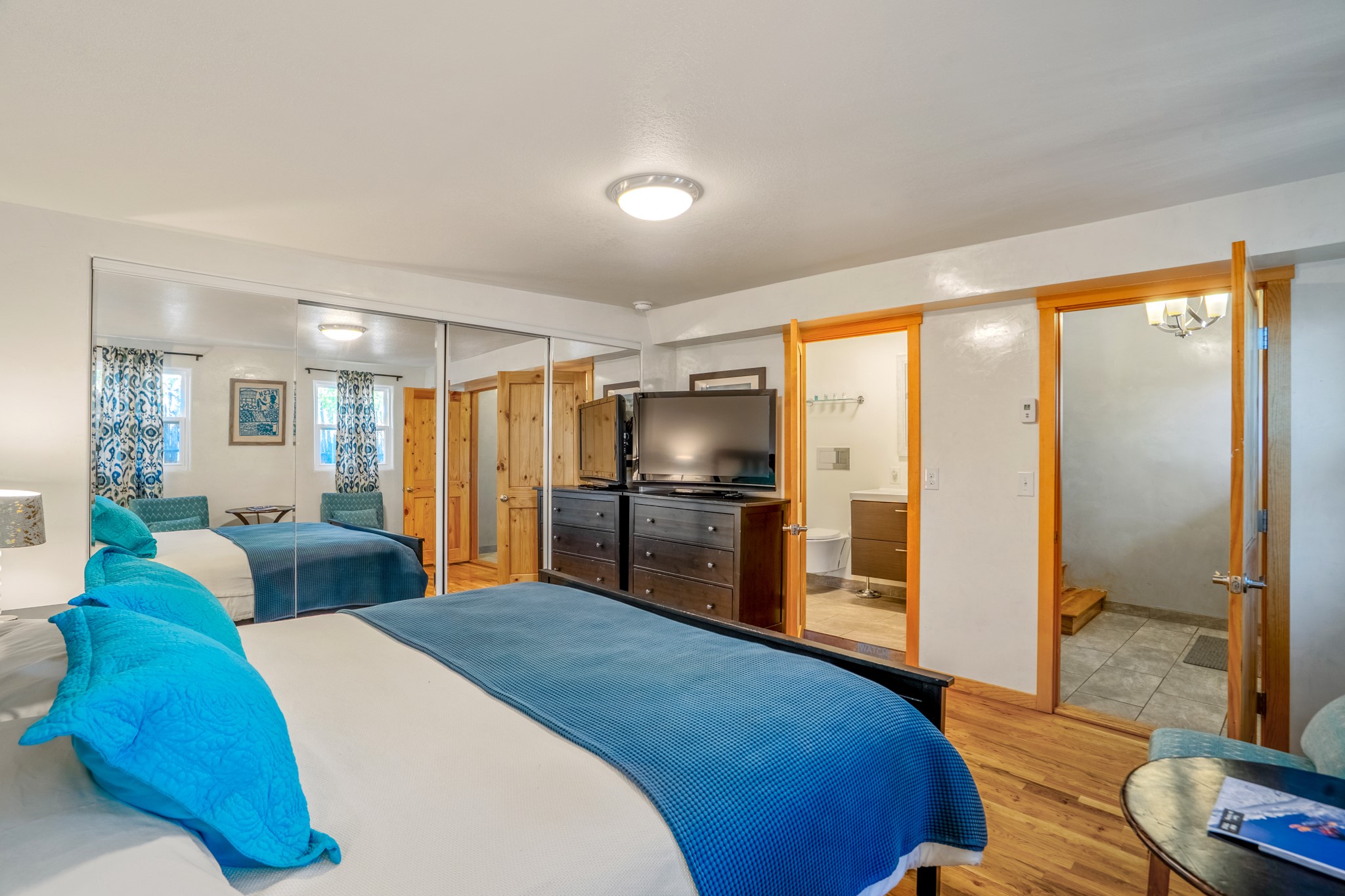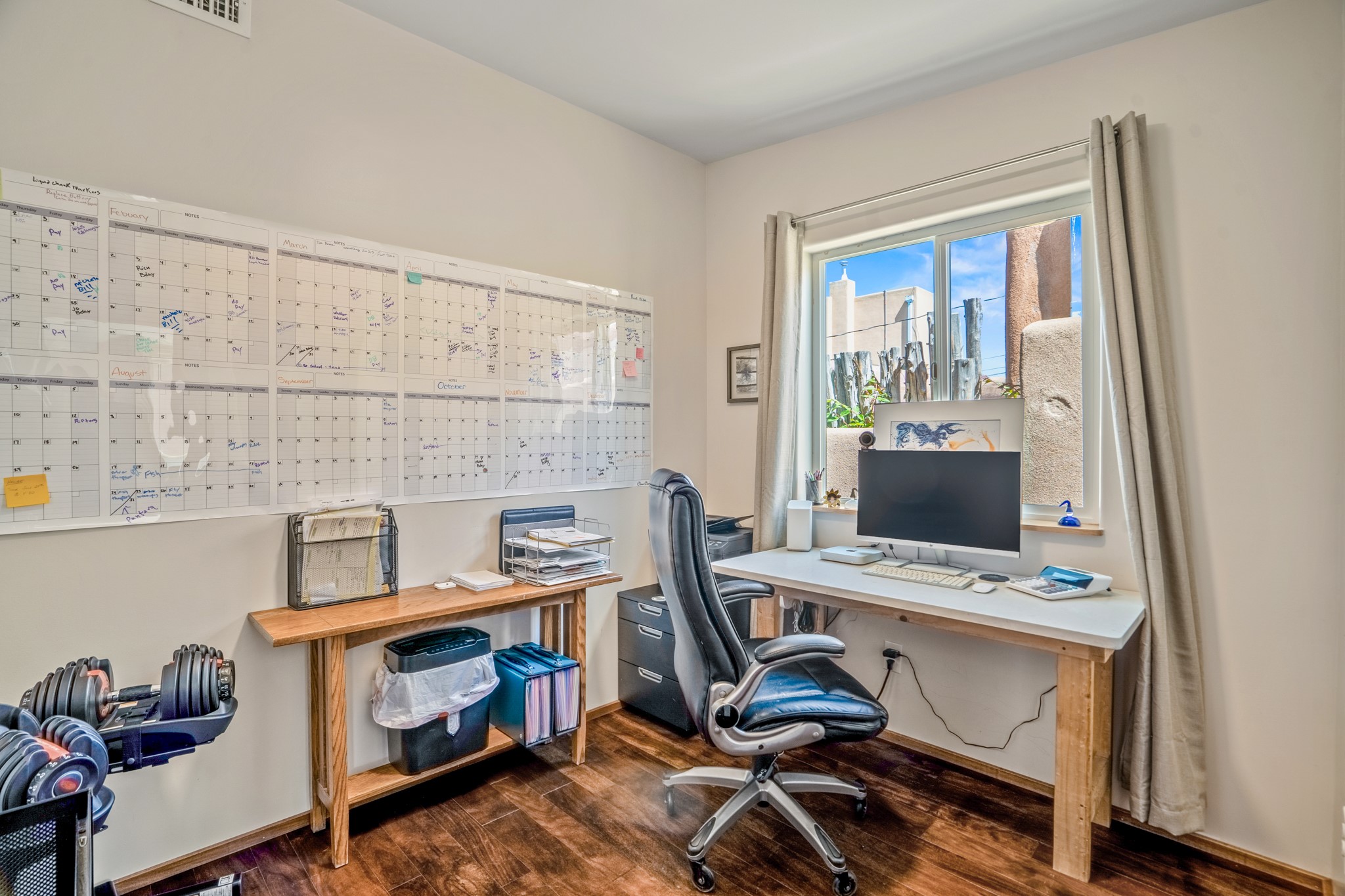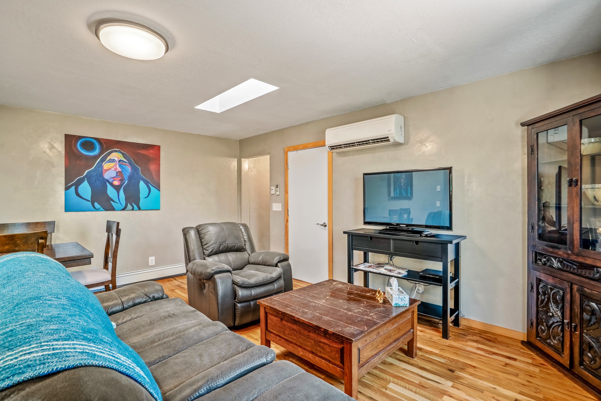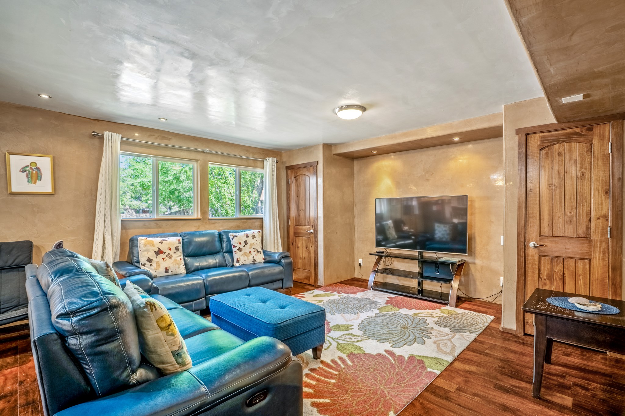 Versatile Income Property Just One Block from the Railyard District! Just steps from the vibrant Santa Fe Railyard, this thoughtfully renovated compound offers flexibility, privacy, and excellent income potential. The single-level 3-bedroom, 2-bathroom main residence spans 1,487 sq. ft., with an open-concept kitchen/living/ dining area featuring beautiful Venetian plaster walls, butcher block countertops, and direct access to a private back courtyard. The primary suite includes a spacious walk-in closet and its own secluded patio. Comfort is ensured year-round with in-floor radiant heating and central A/C. Set to the side for maximum privacy, the 1,192 sq. ft. guest house offers 3 bedrooms, 2 bathrooms, a full kitchen, its own laundry, and a serene courtyard shaded by tall trees--an ideal retreat for guests or a proven income-producing rental. Separating the two dwellings is a 300 sq. ft. workshop/storage room that adds even more functionality to the property.This is a rare opportunity to live just one block from the Railyard--with space to live, host, create, or invest.