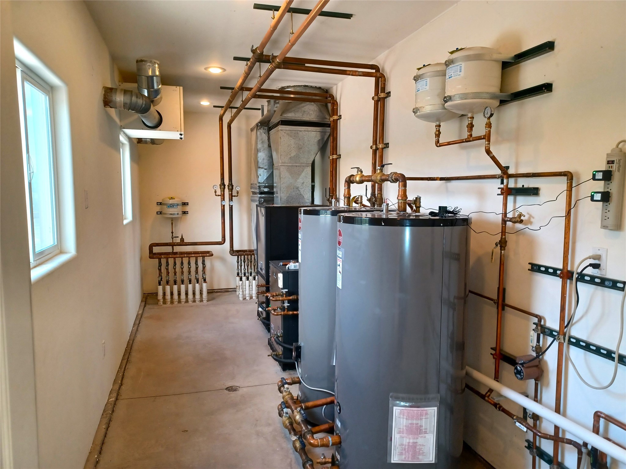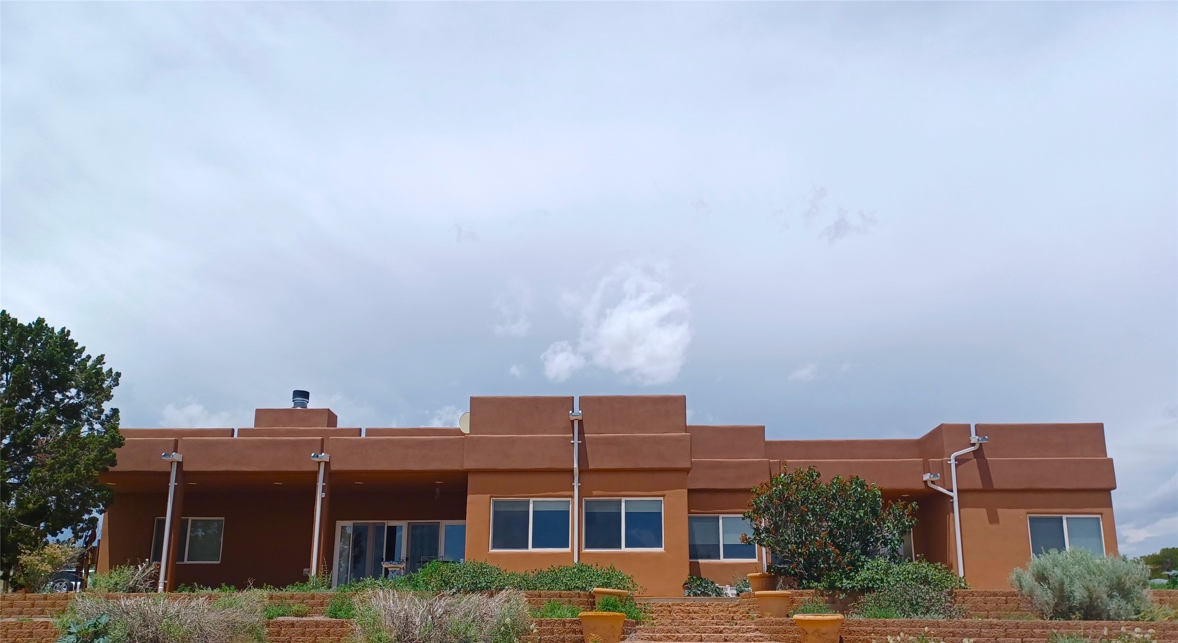 Welcome to the exceptional property located at 64 Coyote Trail in Santa Fe County. Situated on over 20 acres, this distinguished luxury home represents a meticulously planned and executed estate, achieving complete independence from fossil fuels. The residence features a contemporary geothermal system for heating and cooling, effectively replacing propane and natural gas, alongside a substantial solar photovoltaic array that not only powers the home but also contributes energy back to the grid. The property maintains a connection to PNM to ensure continued electric service. Furthermore, a private well and septic system enhance this home's self-sufficiency, resulting in remarkably low operating costs throughout the year.The residence encompasses 3,619 square feet and includes three bedrooms and three bathrooms. The master suite is particularly noteworthy, featuring two separate, luxurious ensuite bathrooms on opposing sides, all wheelchair accessible as the rest of the home. Additional interior features include a wood burning fireplace and a formal dining room. The property also boasts a generous 1,786 square foot temperature controlled garage, suitable for 6 + vehicles or use as a workshop. Constructed with superior quality on a concrete slab, this remarkable home reflects uncompromising standards.I invite you to schedule a private viewing of this unique property at your earliest convenience. Please be advised that showing times are limited, and the listing Broker is required to be present for all appointments. There is not a for sale sign on the street and the gate remains locked except for confirmed showings.