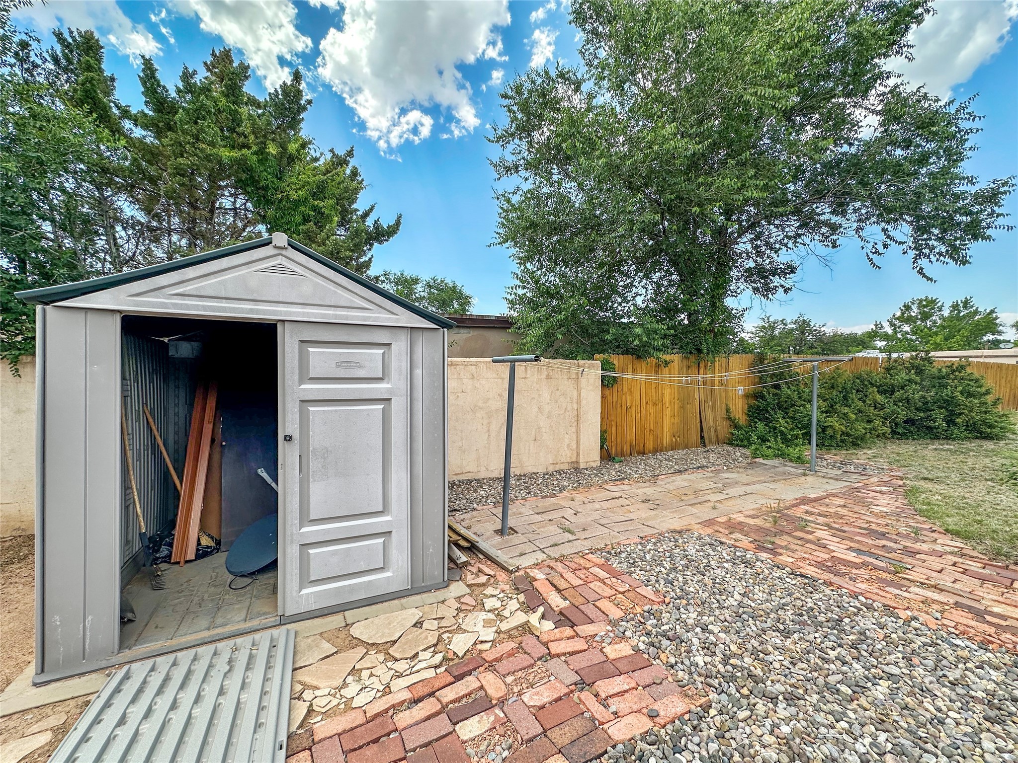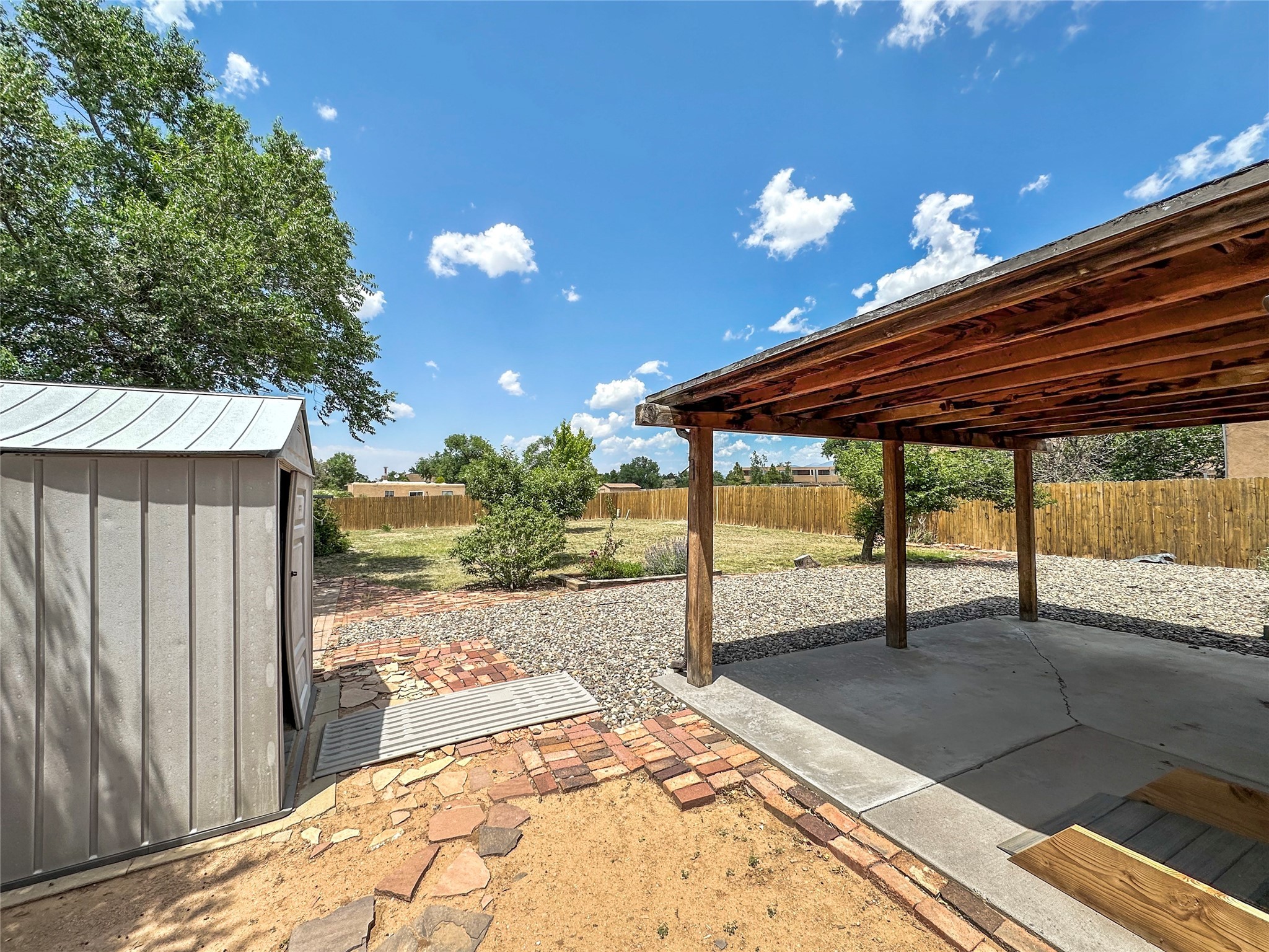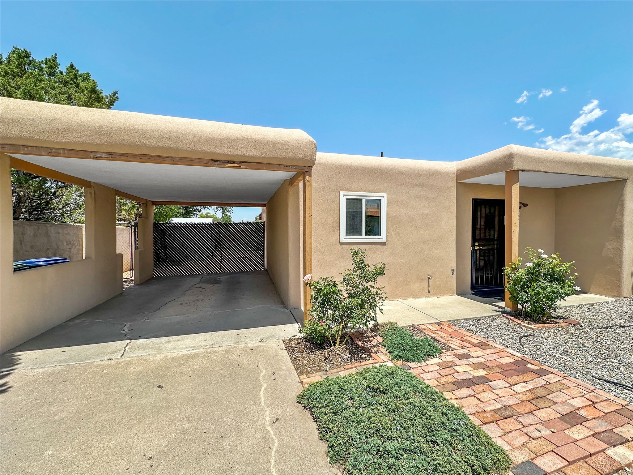 This charming 2-bedroom, 1-bathroom home is move-in ready and waiting for its next owner. Situated on a spacious lot, it offers plenty of room to enjoy the privacy of the backyard and covered portal. The home features a step-free entrance, a bathroom with grab bars, and a ramp at the back door for quick access to the backyard. Whether you're cozying up by the kiva fireplace during cooler months or relaxing in the shade of the generous back patio on warm summer days, this home offers comfort and charm year-round.