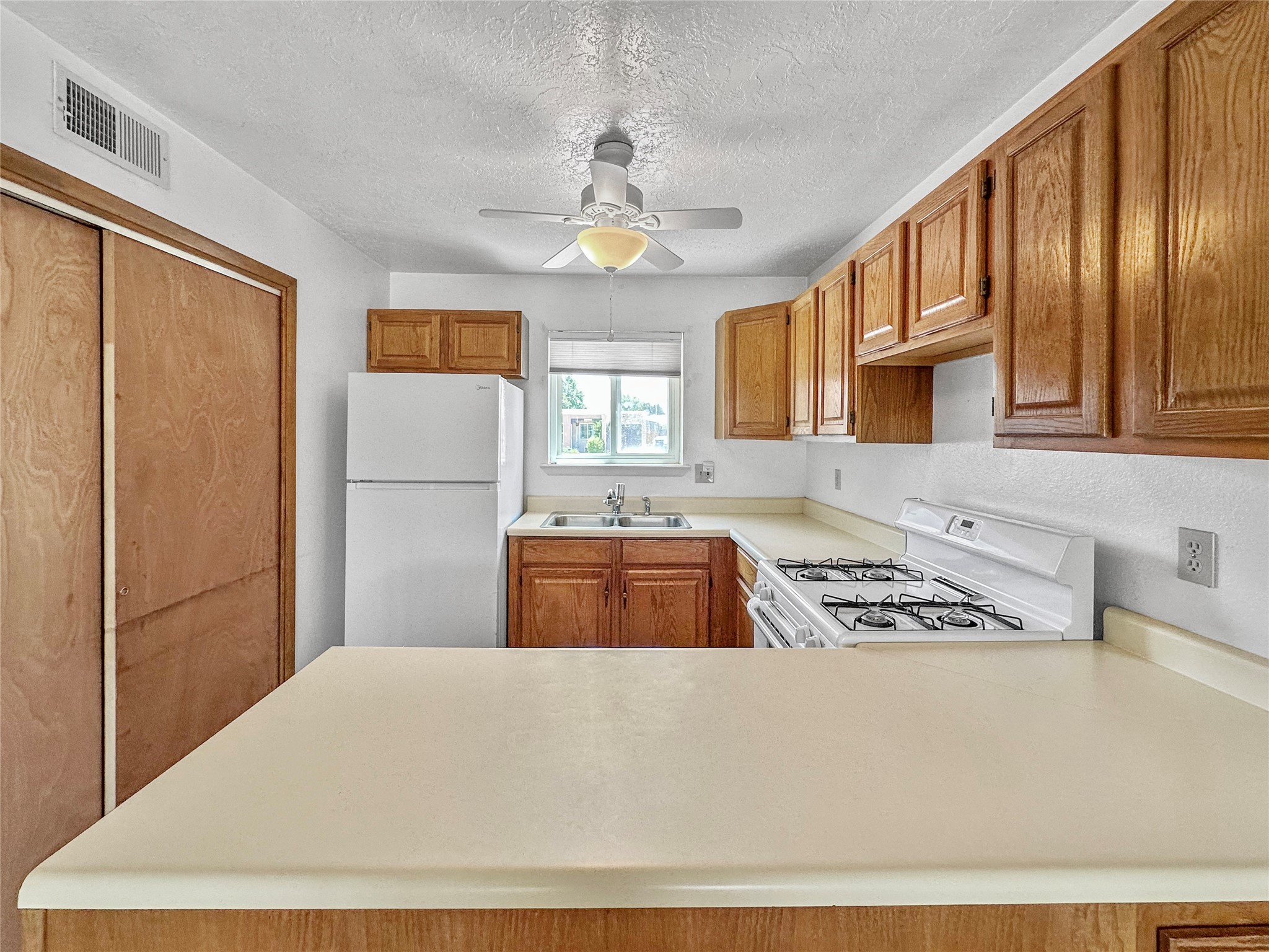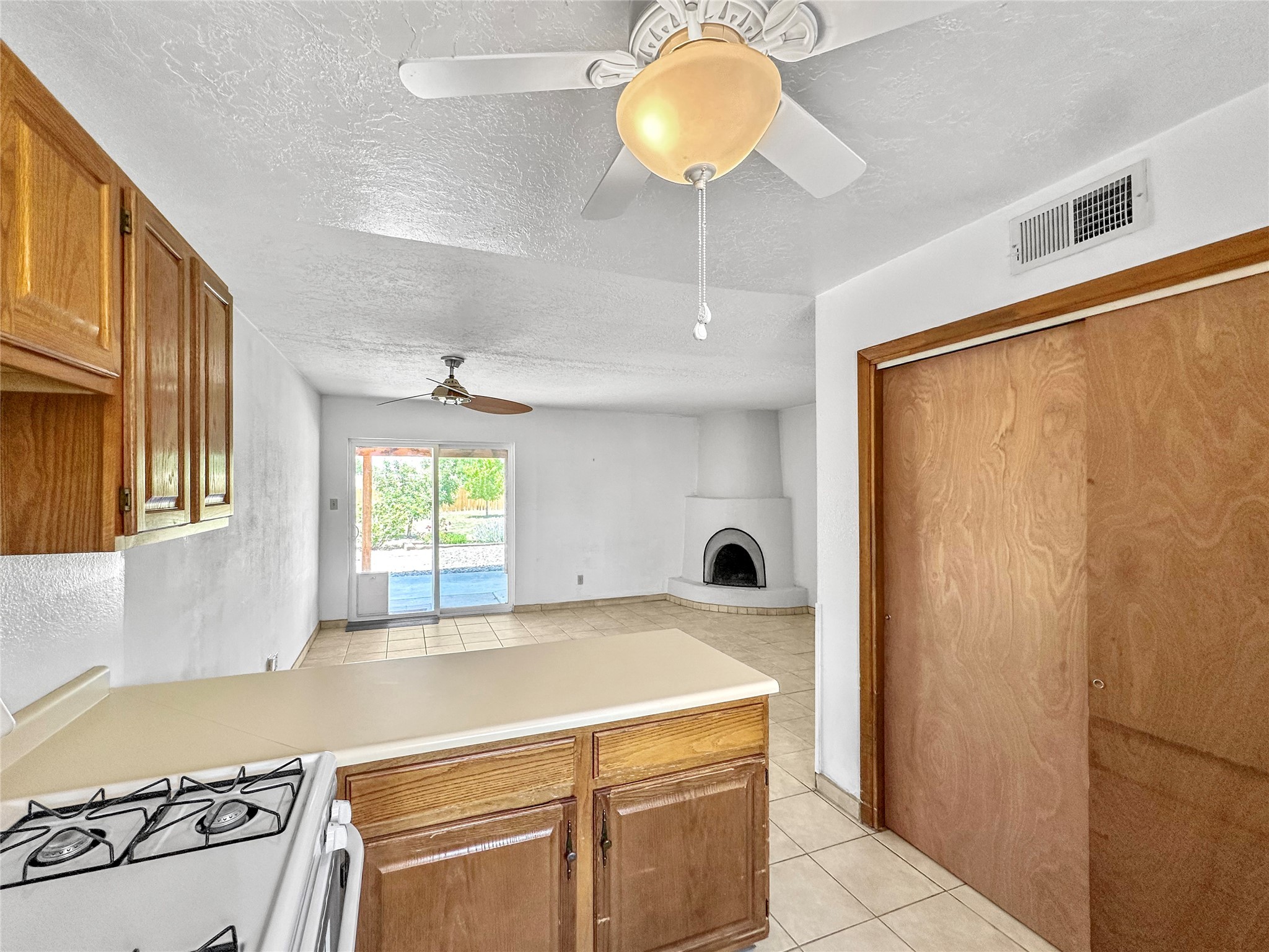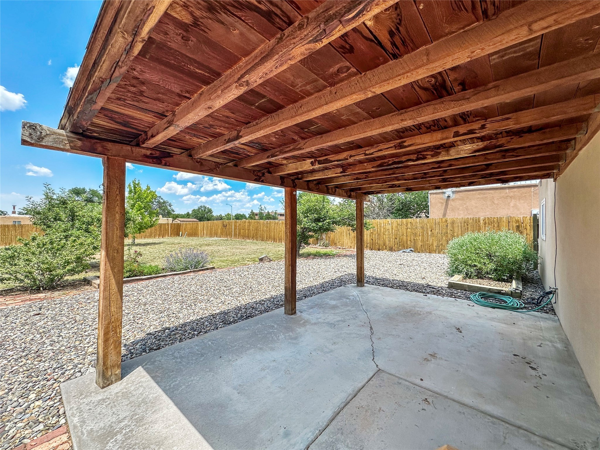 This charming 2-bedroom, 1-bathroom home is move-in ready and waiting for its next owner. Situated on a spacious lot, it offers plenty of room to enjoy the privacy of the backyard and covered portal. The home features a step-free entrance, a bathroom with grab bars, and a ramp at the back door for quick access to the backyard. Whether you're cozying up by the kiva fireplace during cooler months or relaxing in the shade of the generous back patio on warm summer days, this home offers comfort and charm year-round.