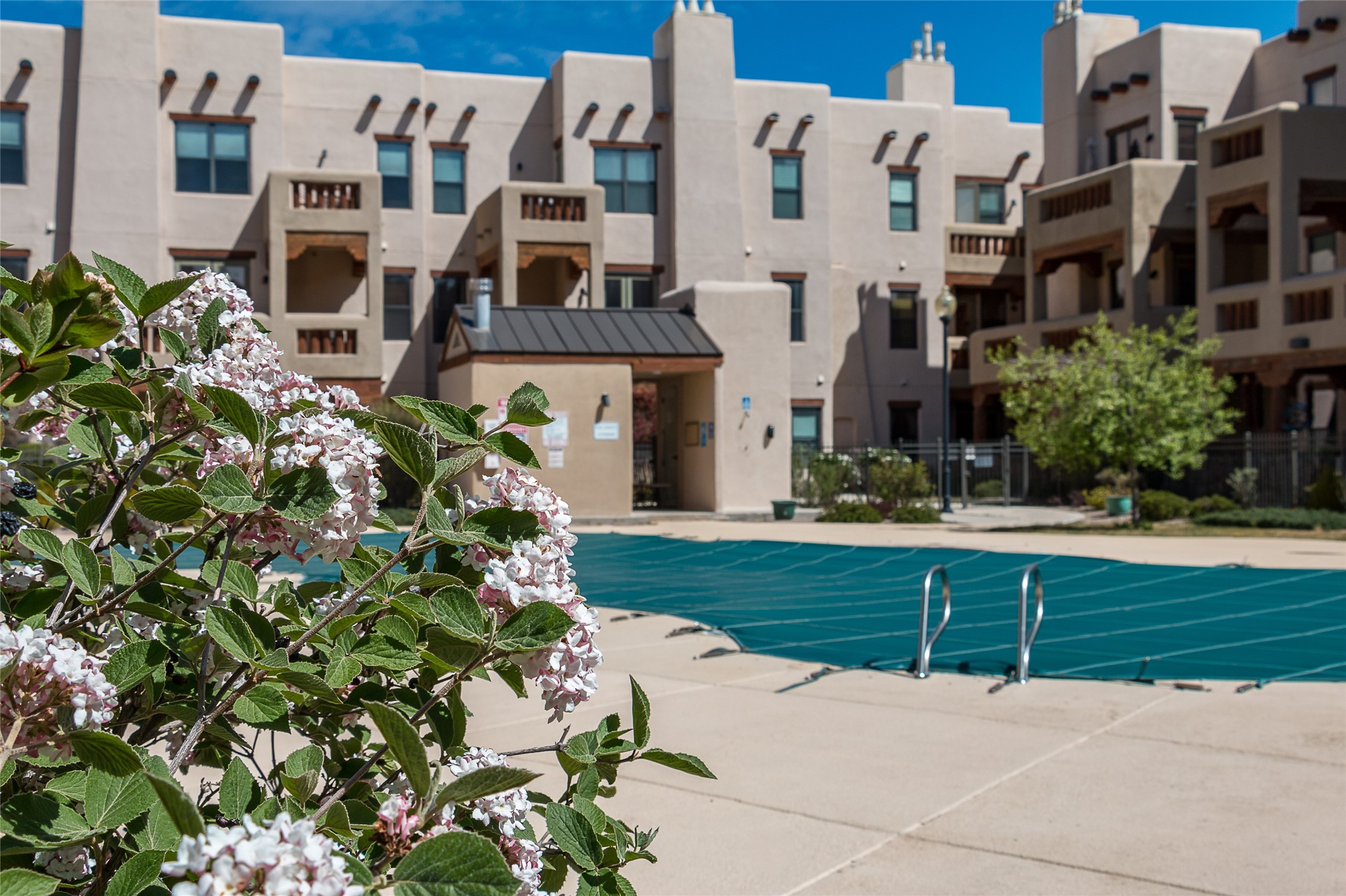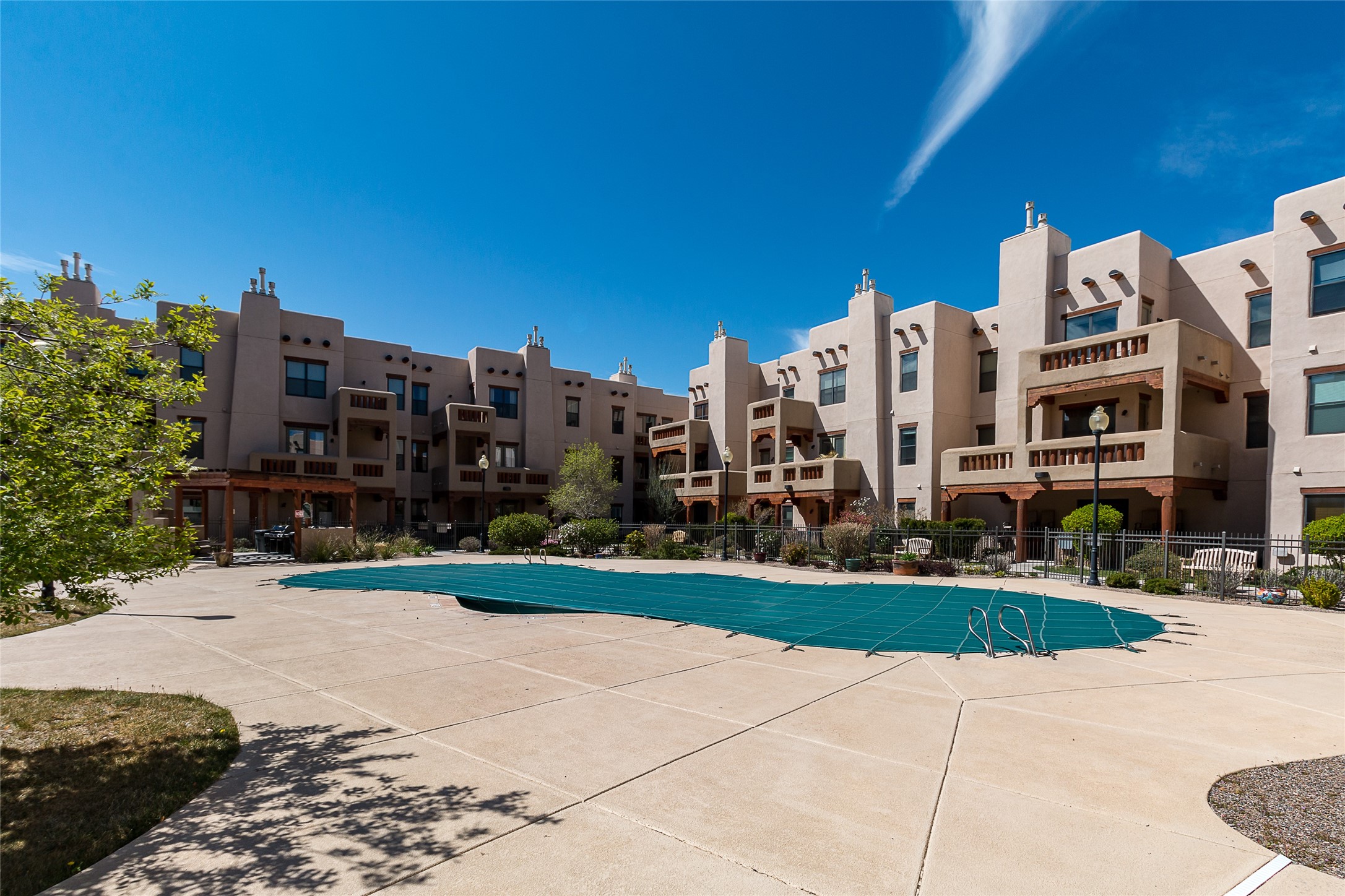 Welcome to 1405 Vegas Verdes #136, a beautifully maintained 1-bedroom, 1.5-bath condo located in the gated community of The Alameda. This ground-floor unit offers the perfect blend of Southwest character and everyday functionality, with features like wood vigas, a cozy corner fireplace, and a spacious open layout that flows from the kitchen to the living area. Step through the glass door to your private patio an ideal space for relaxing, dining al fresco, or unloading groceries. This unit has a storage unit as well, providing ample space for your vehicle, bikes, or extra belongings. Inside, you'll find a well-appointed kitchen with granite countertops and stainless steel appliances, a comfortable primary suite with full bath, and a separate powder room for guests. Additional conveniences include an in-unit washer and dryer, central air, and plenty of natural light throughout. Residents of The Alameda enjoy resort-style amenities including a swimming pool, fitness center, clubhouse, beautifully landscaped grounds, and secure gated access. Located near Santa Fe Place Mall, grocery stores, restaurants, and with easy access to Hwy 599, this condo offers low-maintenance living in one of Santa Fe's most desirable communities. Whether you're looking for a full-time residence, a lock-and-leave home, or a smart investment, this one has it all.