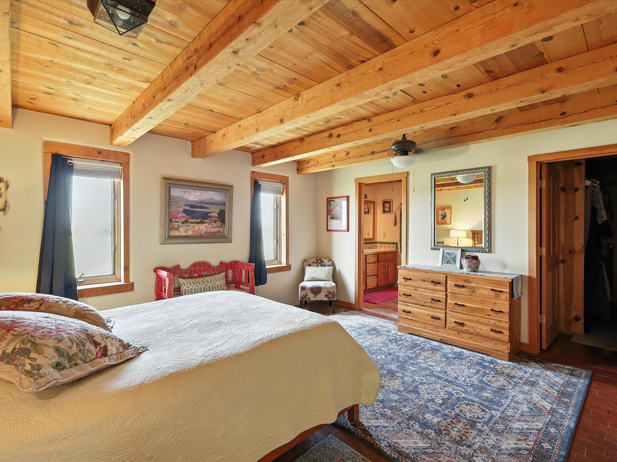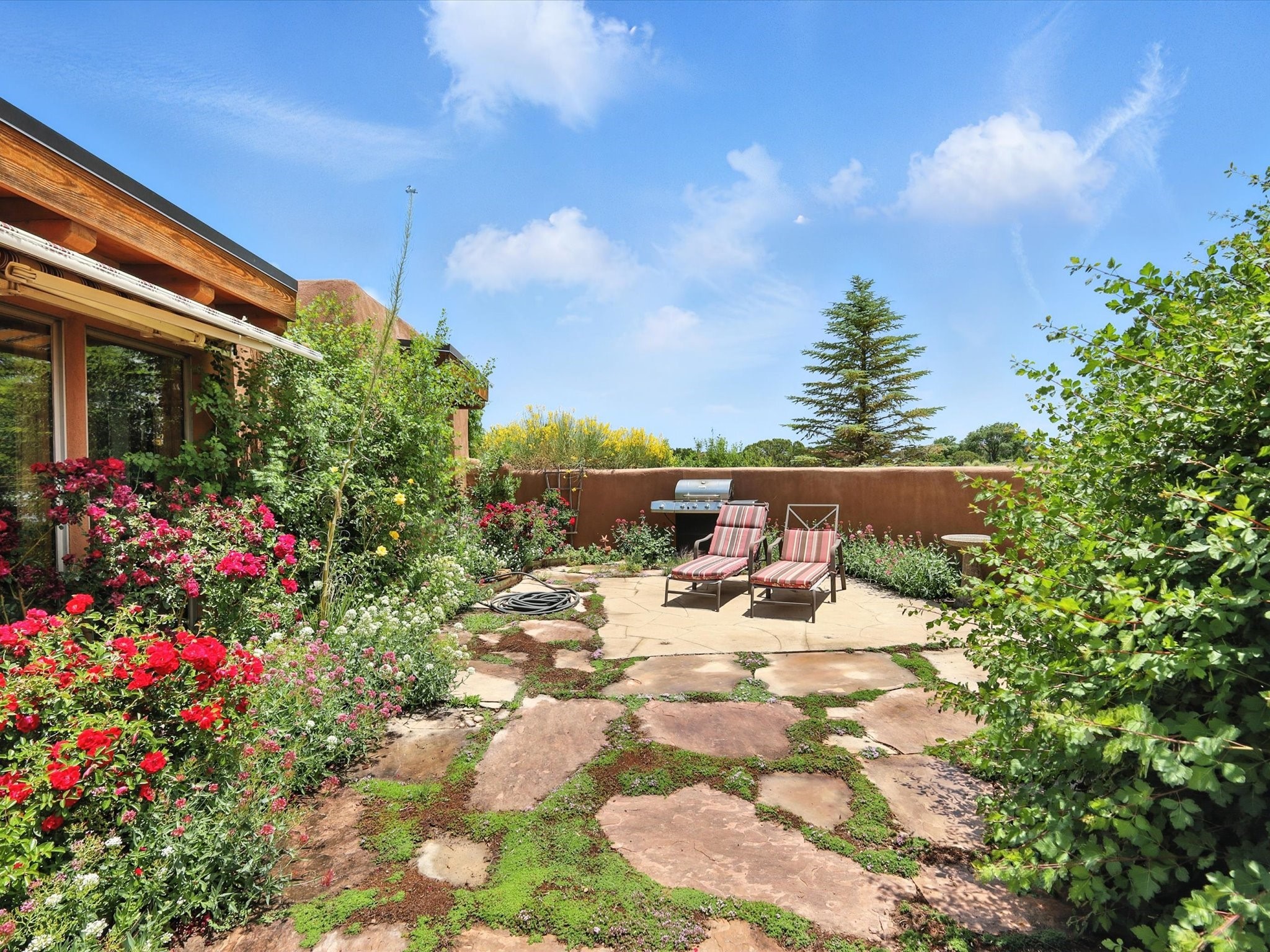Where Light, Land, and Legacy Converge - Timeless Adobe Beauty in Eldorado.Perched on the tranquil western edge of Eldorado, this soulful 3-bedroom, 2-bath adobe invites you into a lifestyle shaped by serenity, light, and the natural rhythms of Northern New Mexico. Every inch of this home is a celebration of Santa Fe tradition--thick adobe walls, brick floors warmed by radiant heat, and hand-hewn vigas that frame sky-filled ceilings.Step inside, and you're met with a palette of calm--a harmony of textures and tones that soothe and inspire. Sunlight dances across the interiors from every direction, casting a golden glow through generously proportioned rooms that feel both spacious and intimate. The gracious primary suite offers a quiet sanctuary, while guest rooms are perfectly sized for comfort and connection.Outside, the magic continues. Greet the sunrise on the east-facing wraparound portal, sip coffee in the fragrant courtyard garden, or retreat to the private south-facing patio, where vast skies and desert air restore the spirit. With panoramic vistas of the Sangre de Cristos and open land stretching to the horizon, this is a home that breathes with its surroundings.A rare gem in Eldorado, this property is minutes from Santa Fe's vibrant art, dining, and culture--yet it feels a world apart. Refined yet rooted, it's not just a home, it's a place to live your story.