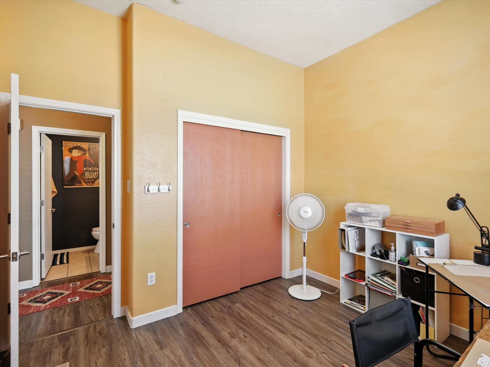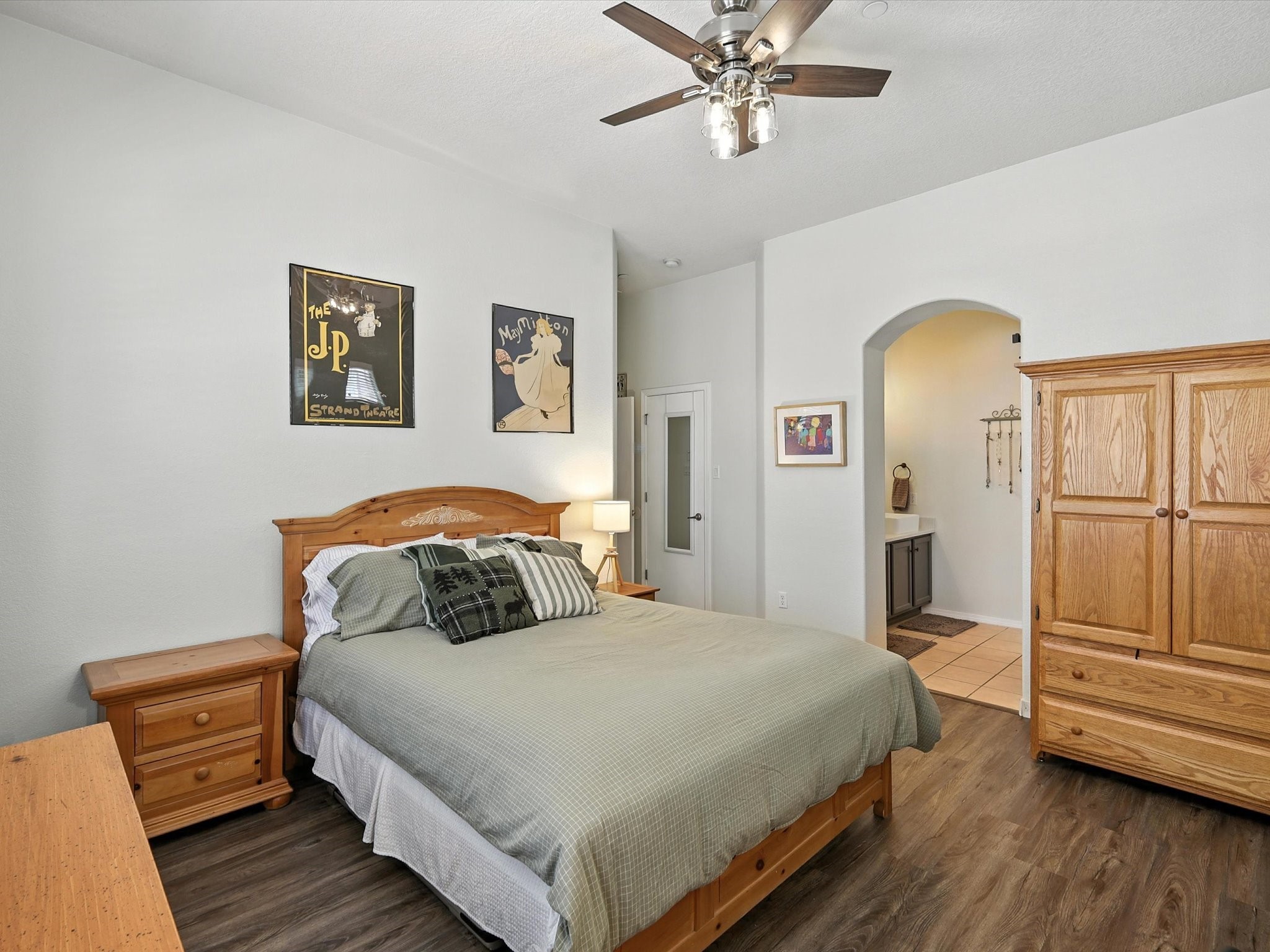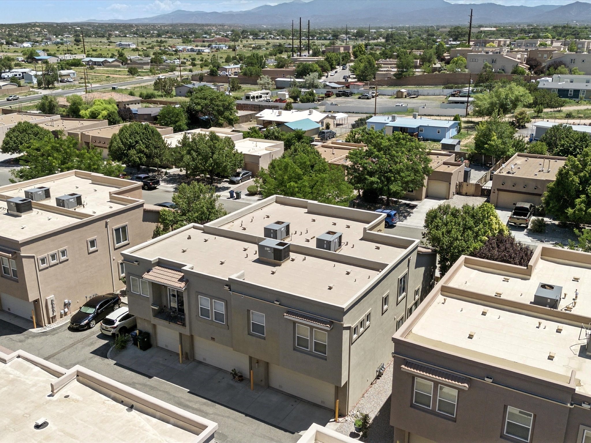 Bright, Spacious Condo with Mountain Views.Welcome to this beautifully maintained second-story condo that blends style, functionality, and comfort. Featuring a bright and open floor plan, this home invites natural light into every corner. The spacious kitchen is a true highlight with its island counter, walk-in pantry, new garbage disposal, and a separate laundry room equipped with a nearly new washer (just 6 months old).The primary bedroom has a spacious walk-in closet and a dual vanities. One of the bathrooms features a low-flush water-saving toilet, adding to the home's smart and eco-conscious features. The bedrooms, bathrooms, and hallway all have newer laminate tile flooring, installed just a couple of years ago--both stylish and easy to maintain.Step out onto the private balcony off the dining room and enjoy beautiful views of the Jemez Mountain Range--perfect for morning coffee or evening sunsets. For added peace of mind, the HVAC system was recently checked with parts replaced. You'll also enjoy central air, a one-car garage below, and friendly neighbors in a welcoming community.This condo is move-in ready with thoughtful updates and a comfortable layout that feels like home the moment you walk in.